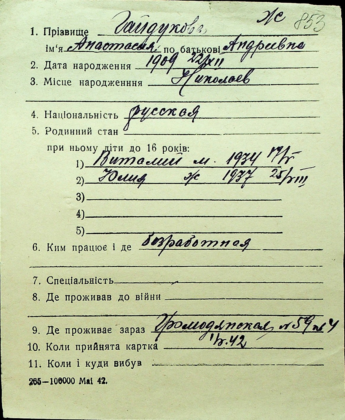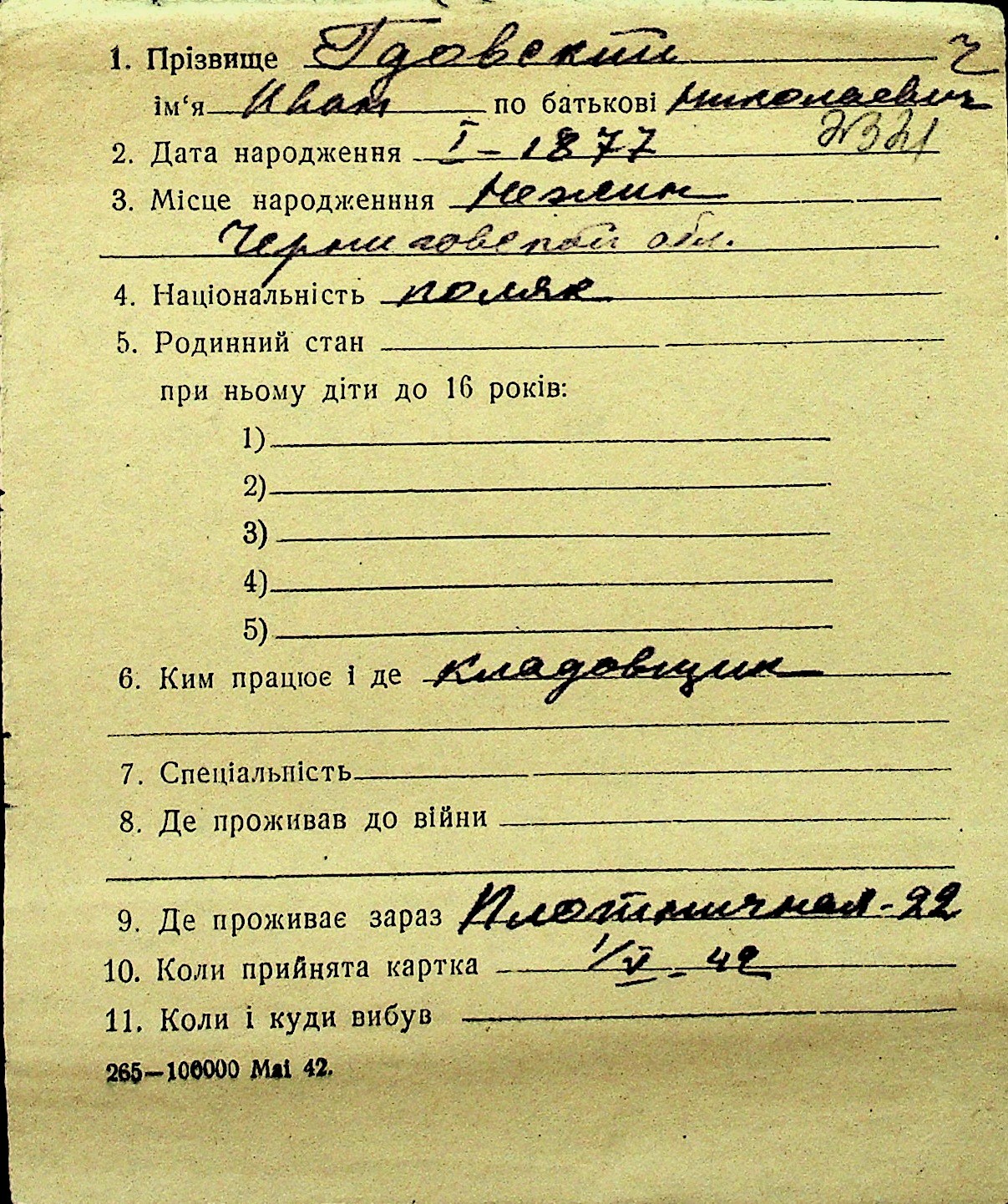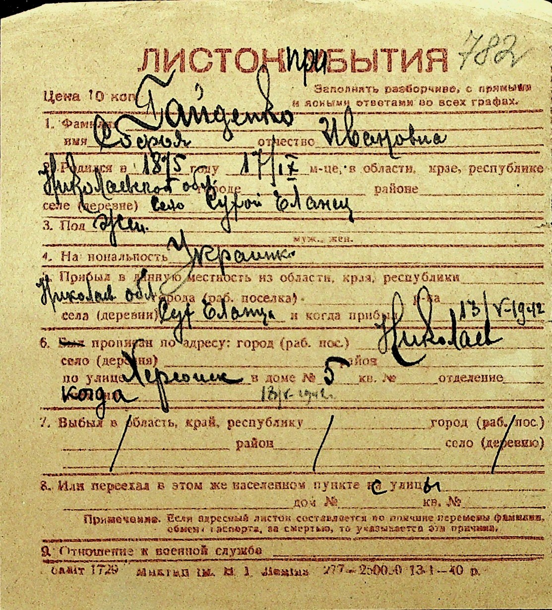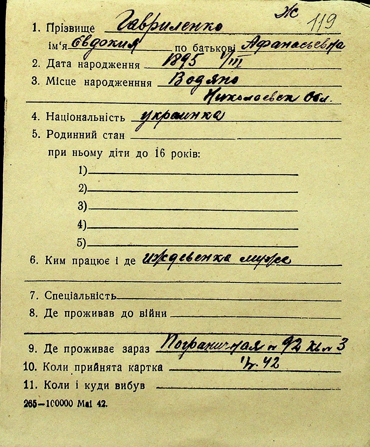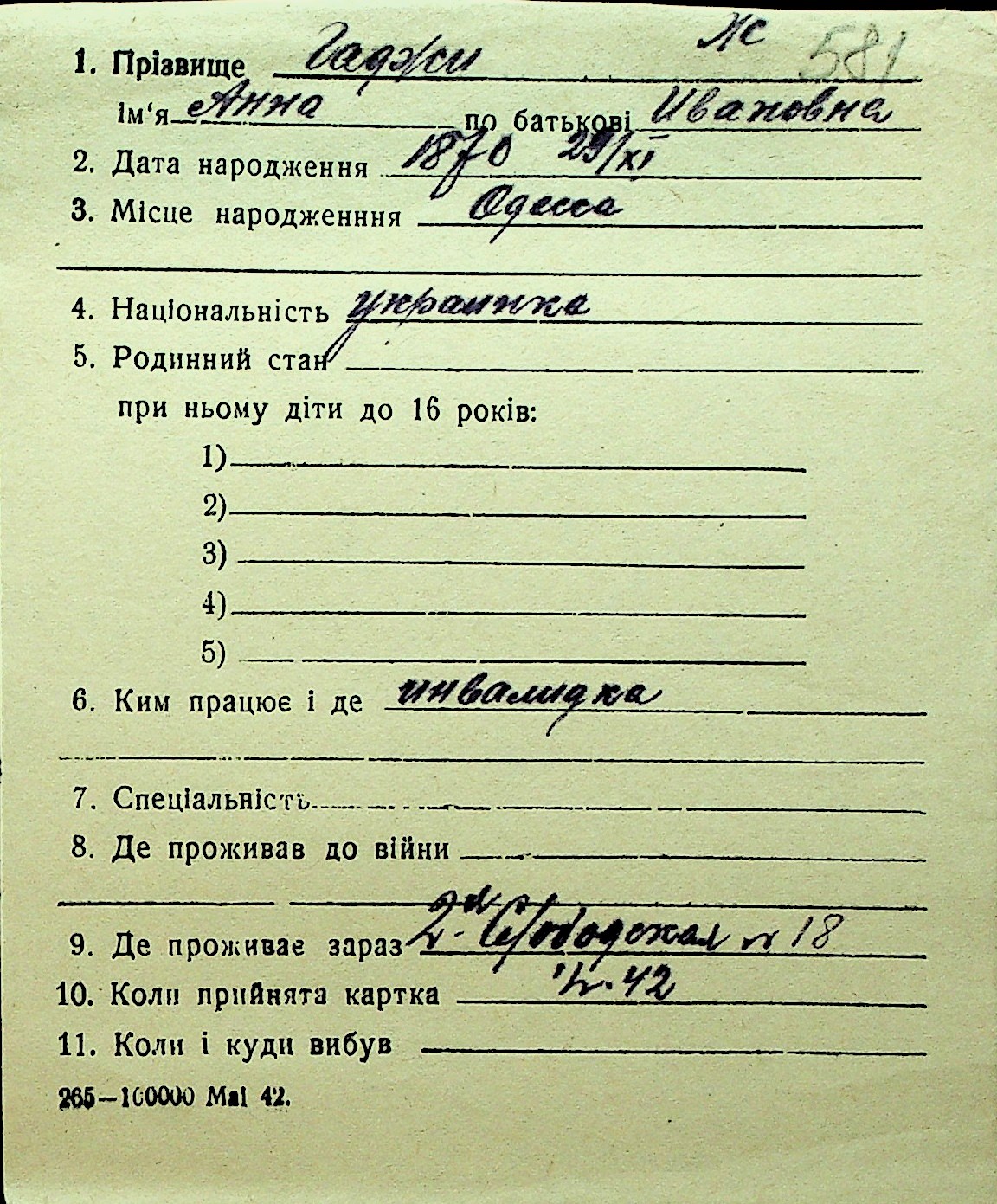 • • Перелік карток до фонду № Н-1016