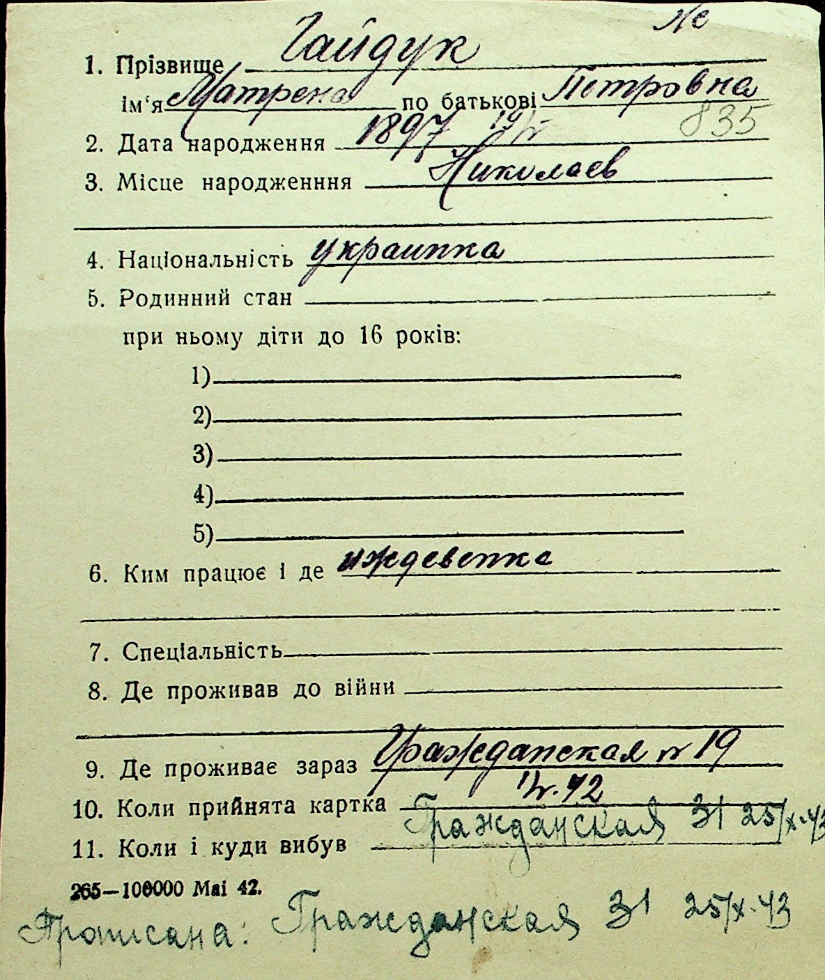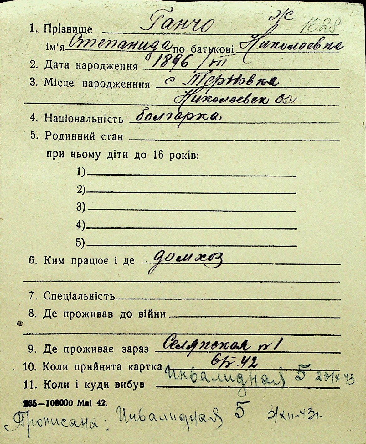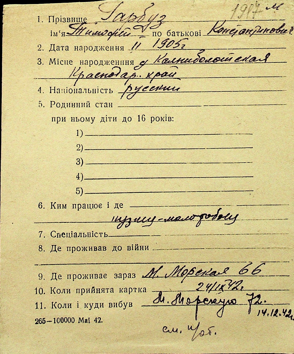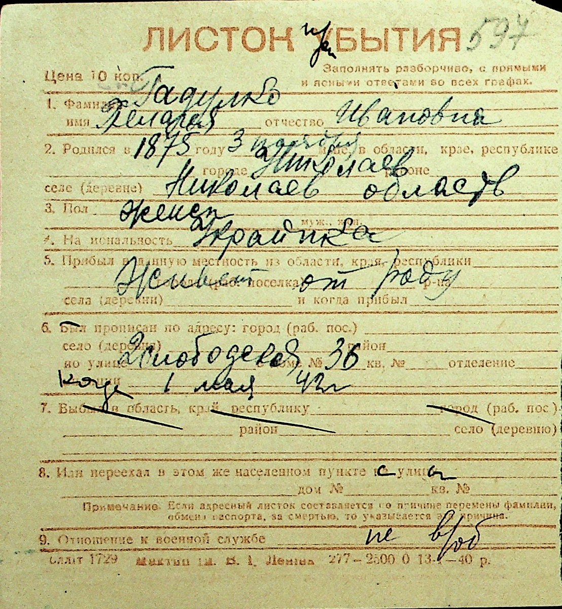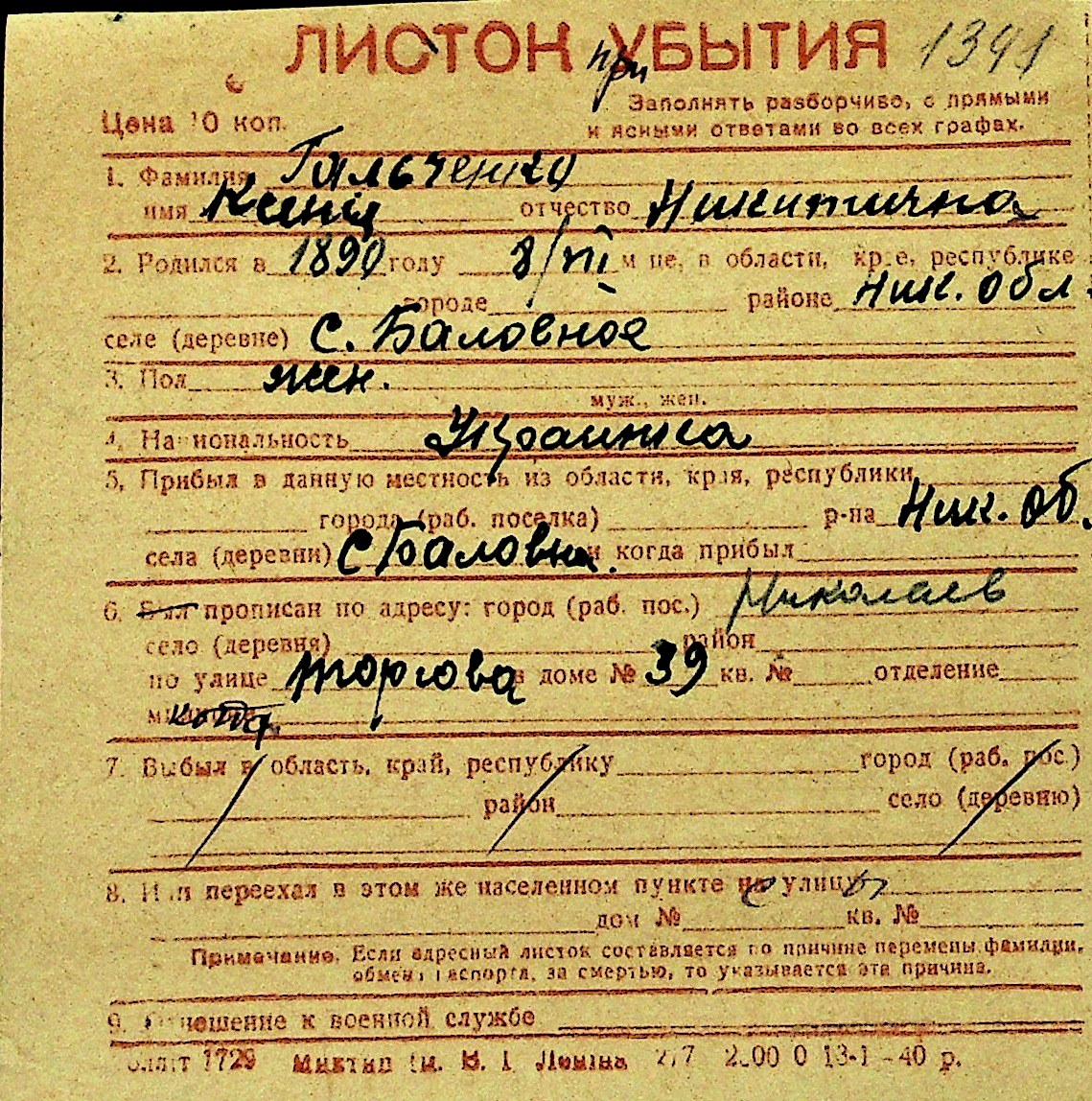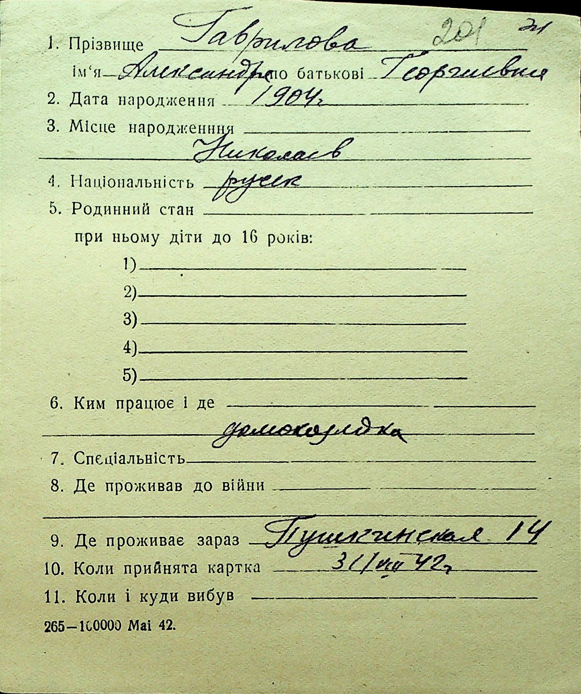 • • Перелік карток до фонду № Н-1016