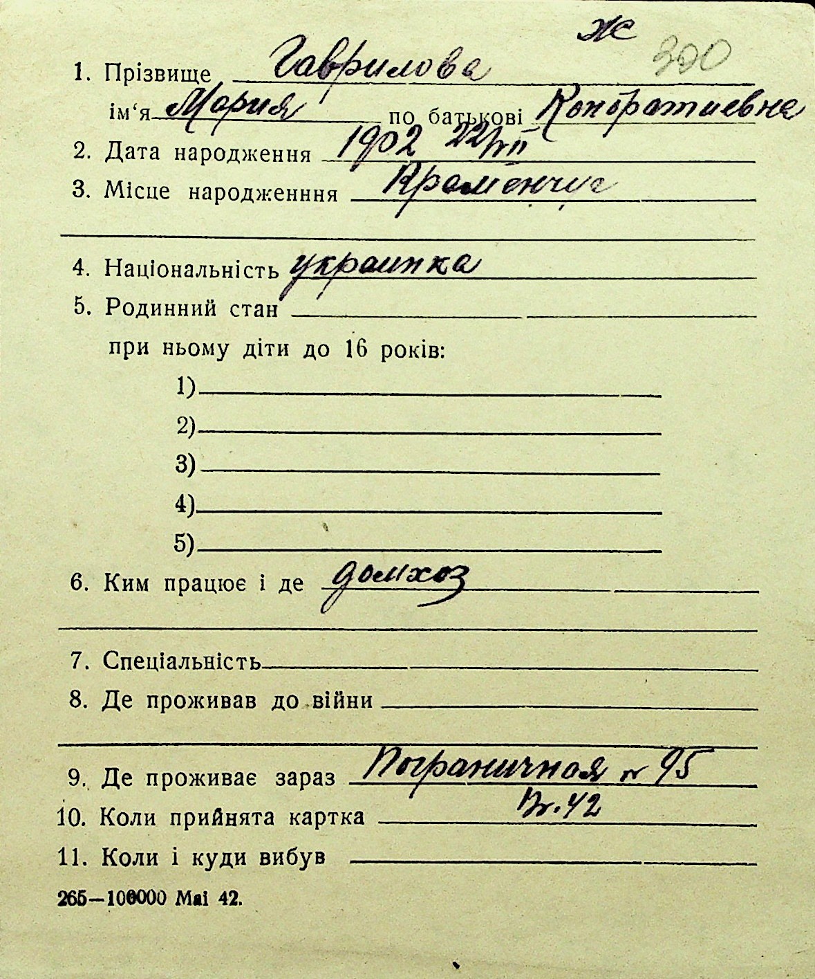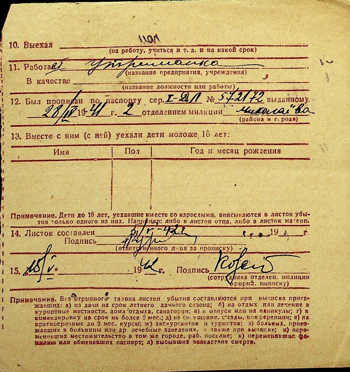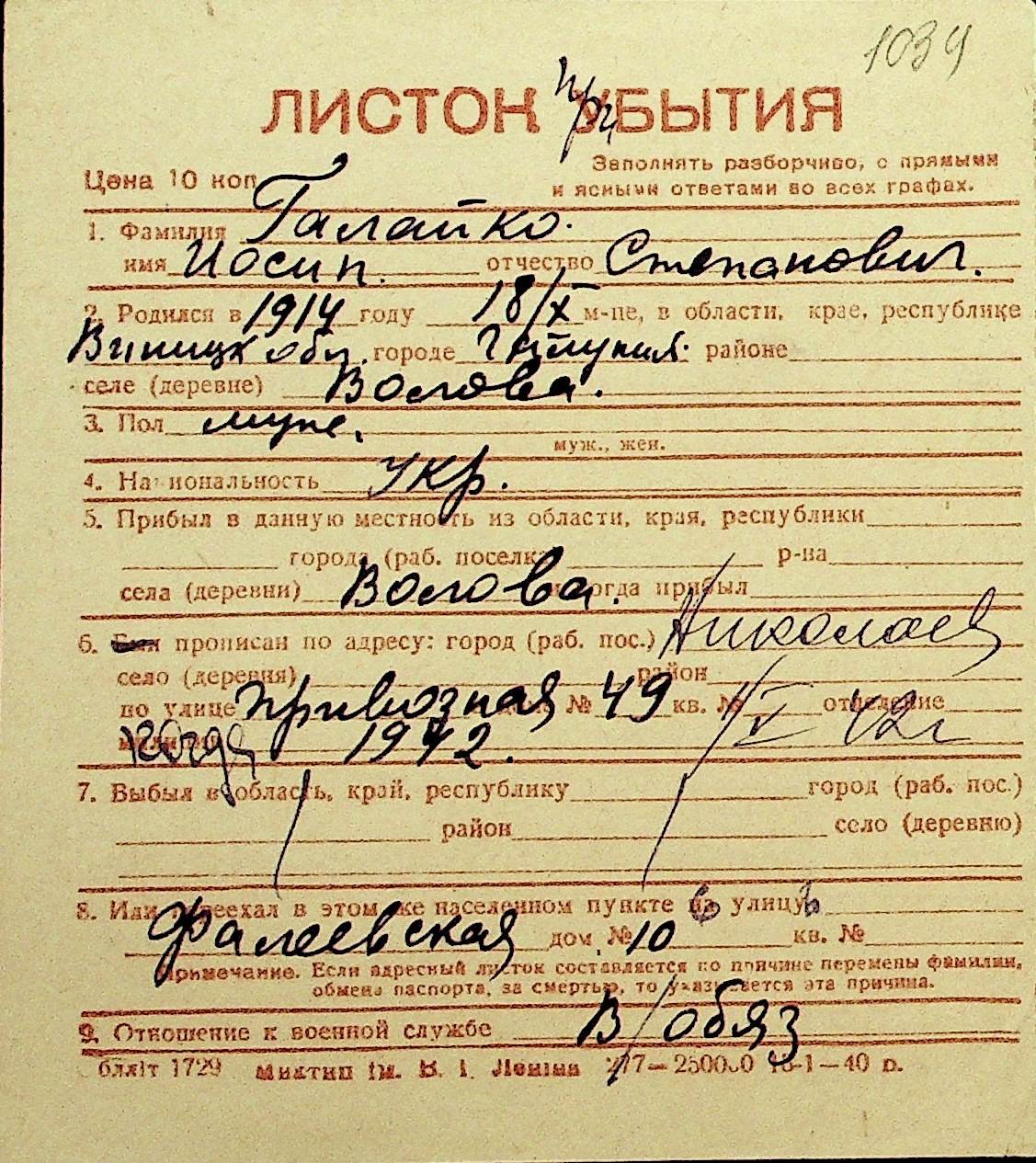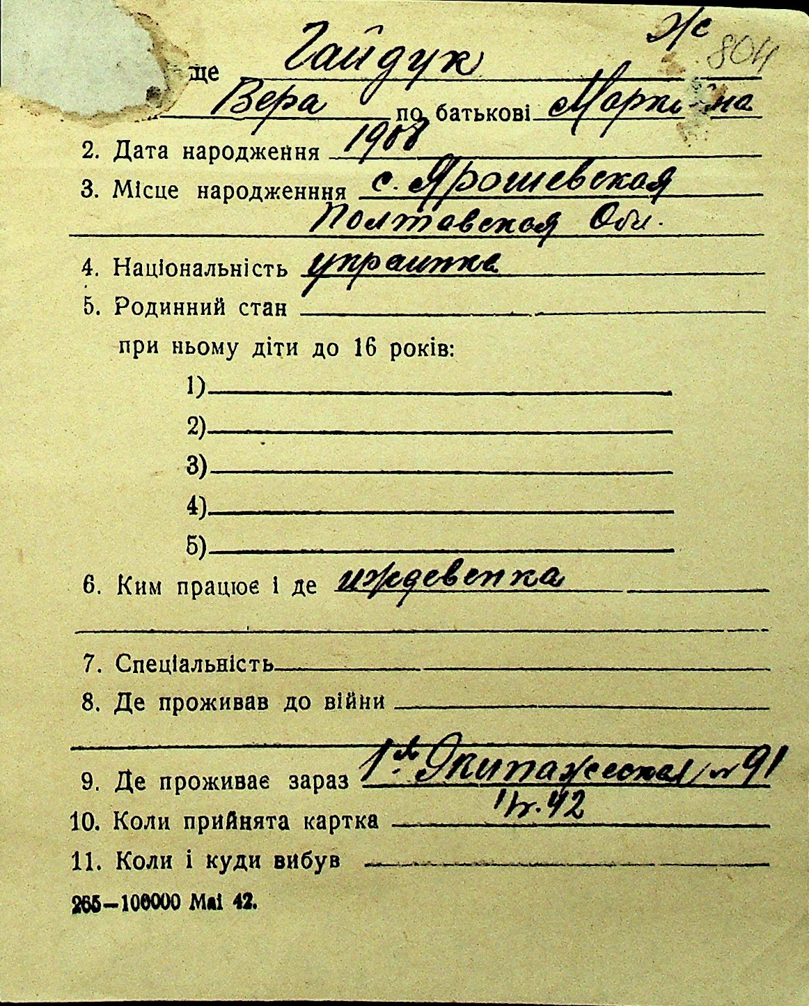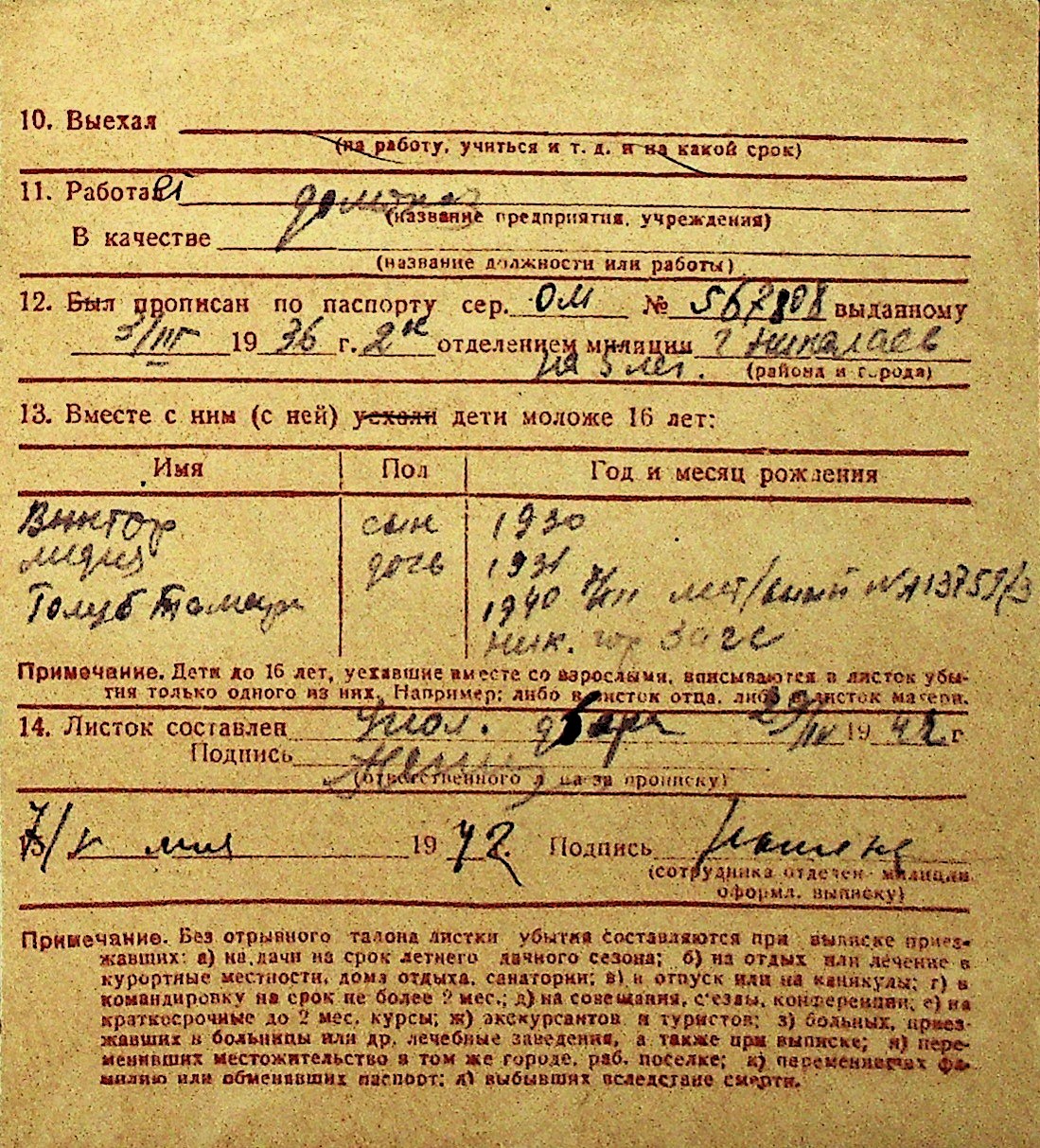 • • Перелік карток до фонду № Н-1016