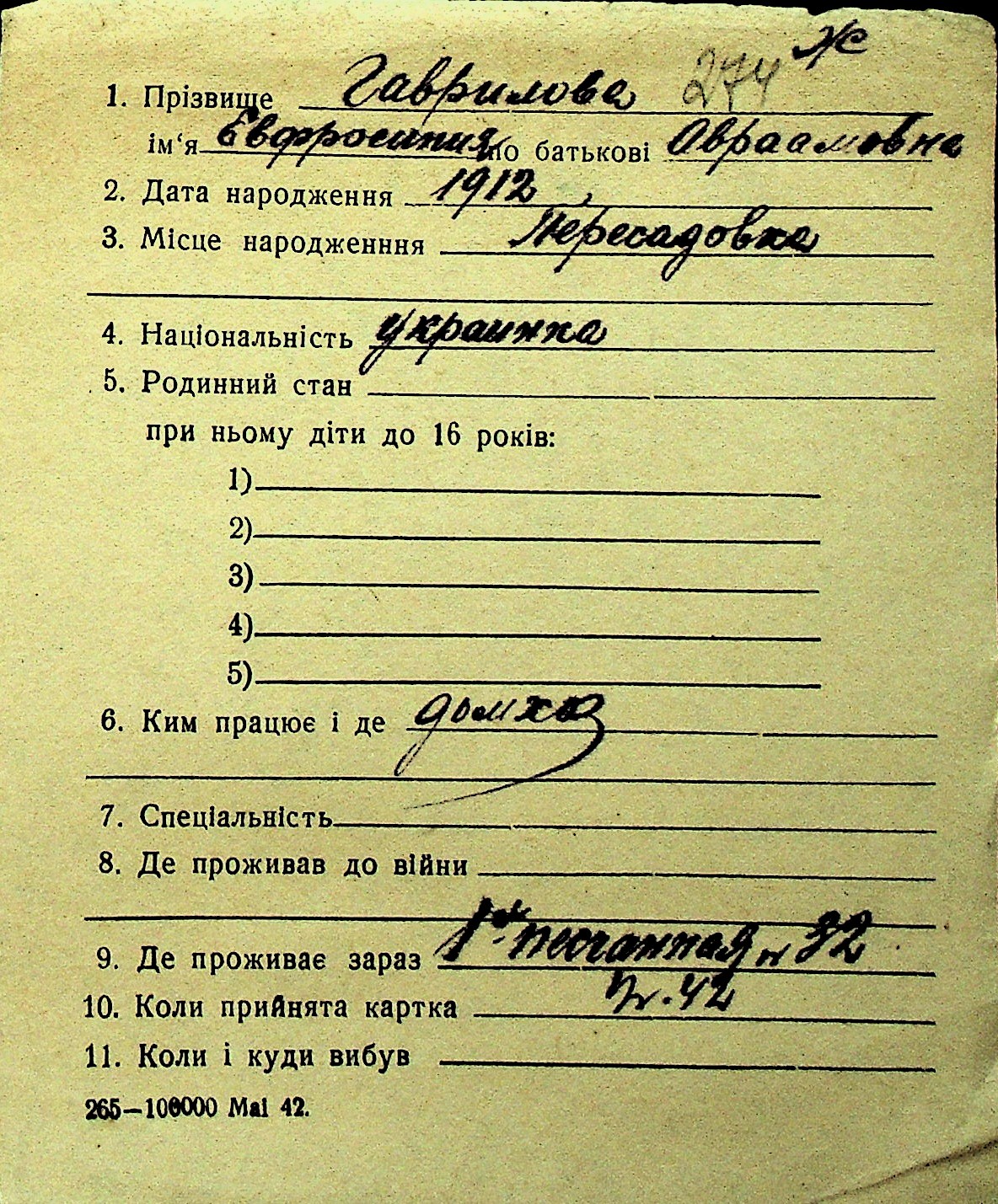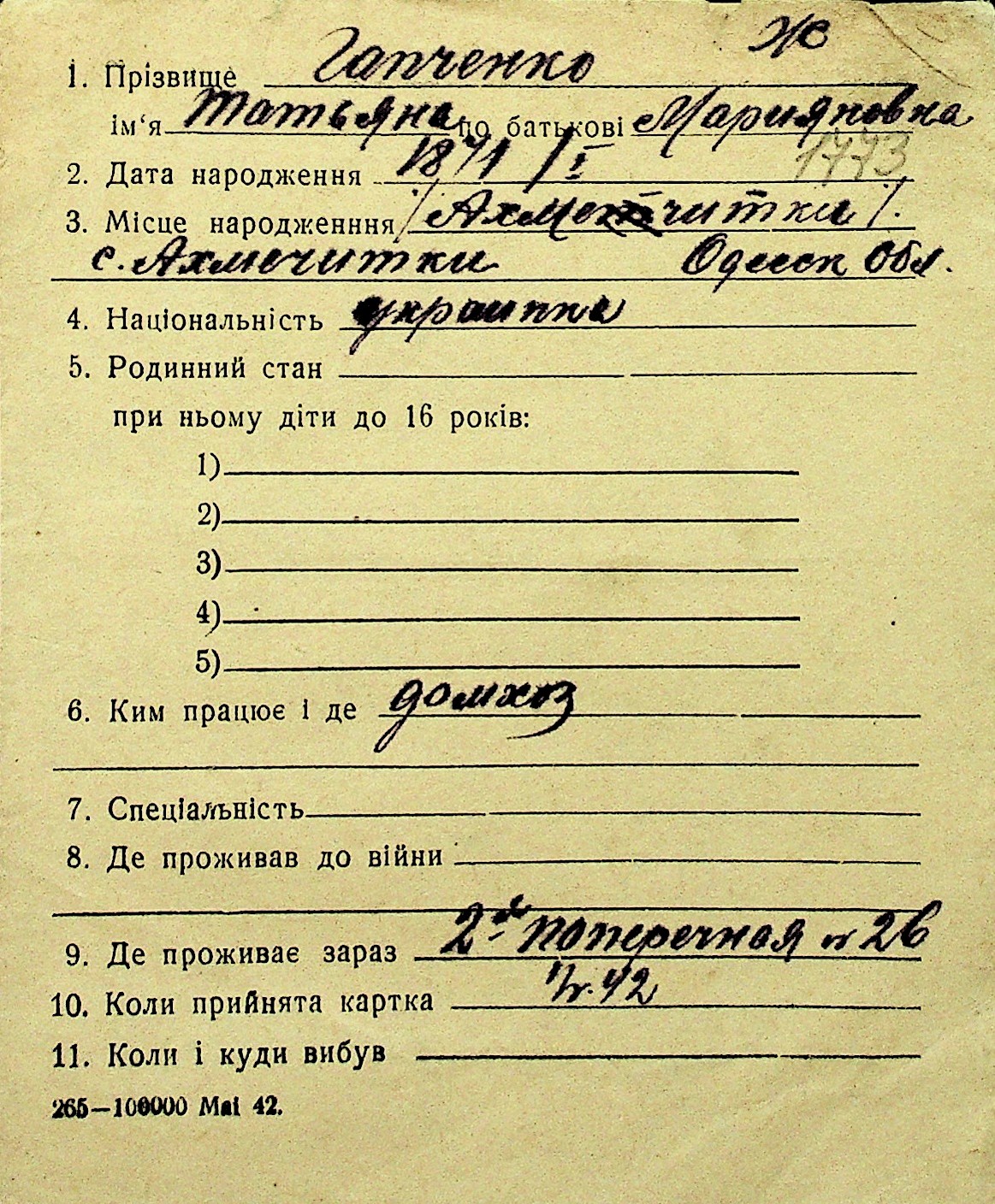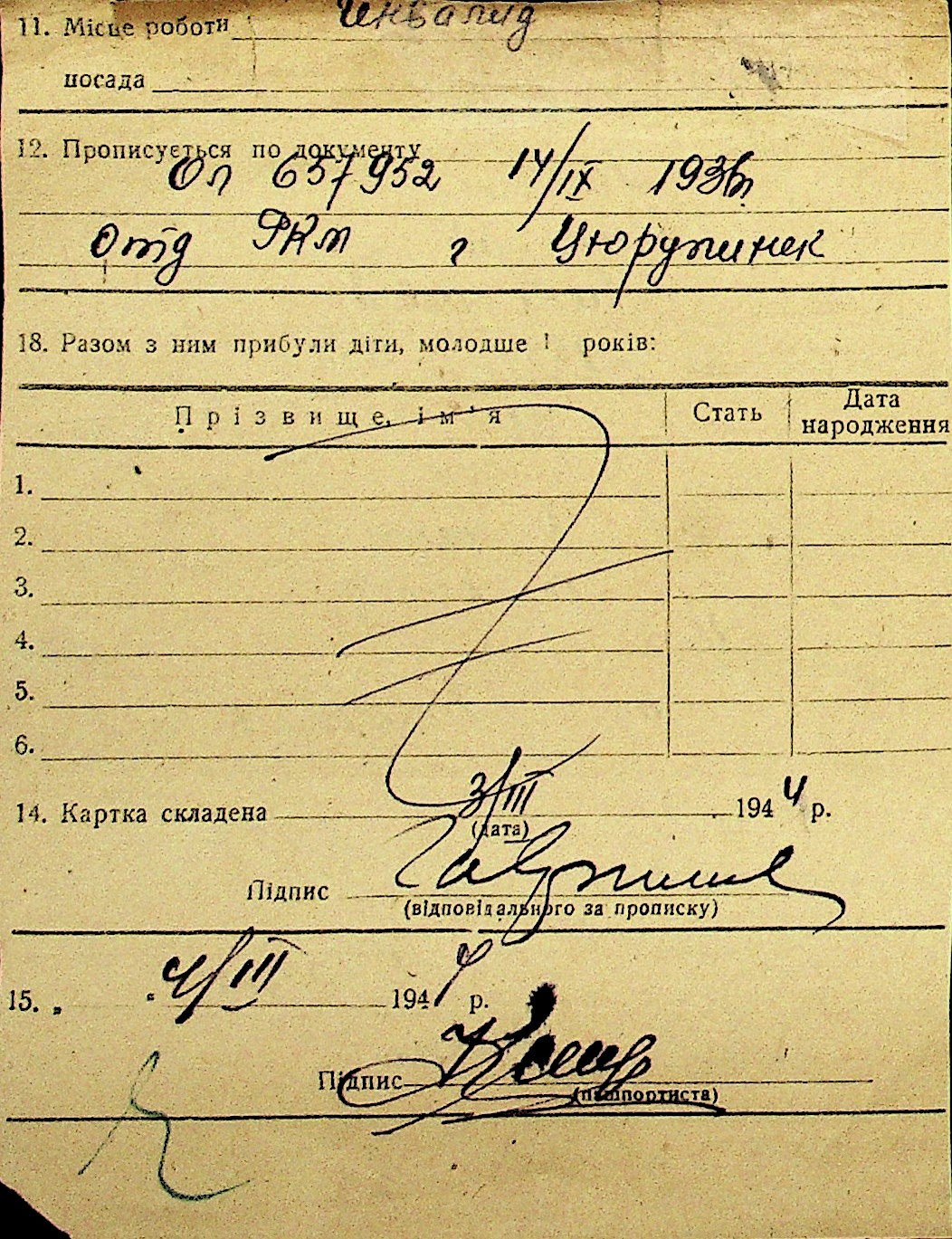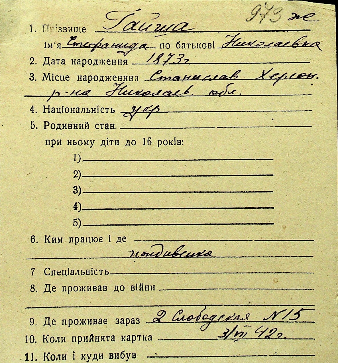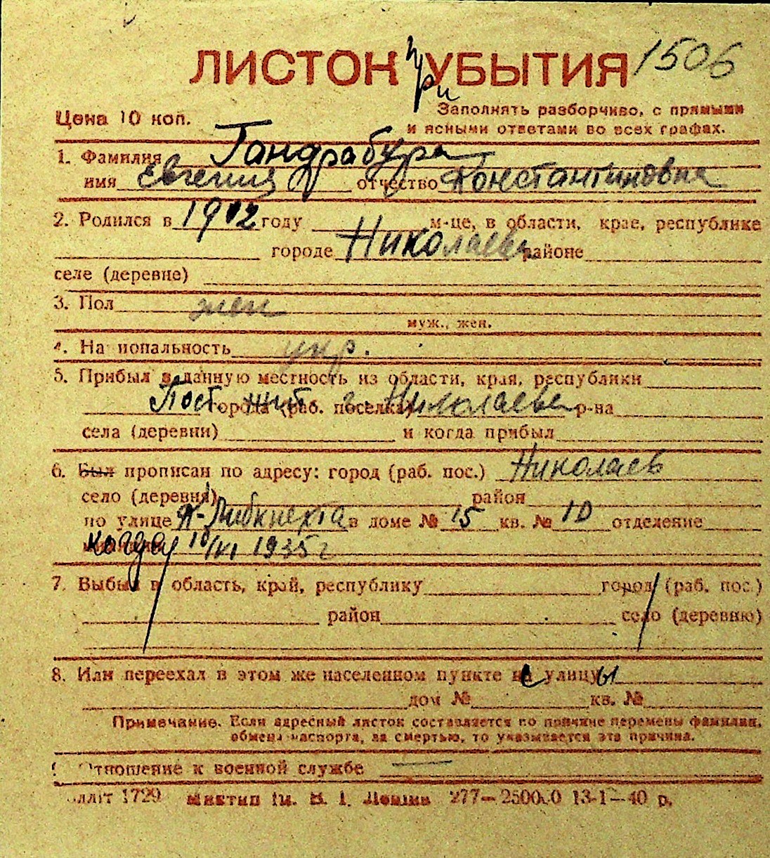 • • Перелік карток до фонду № Н-1016
