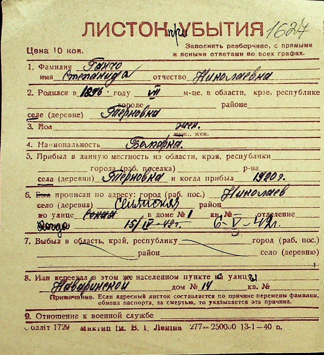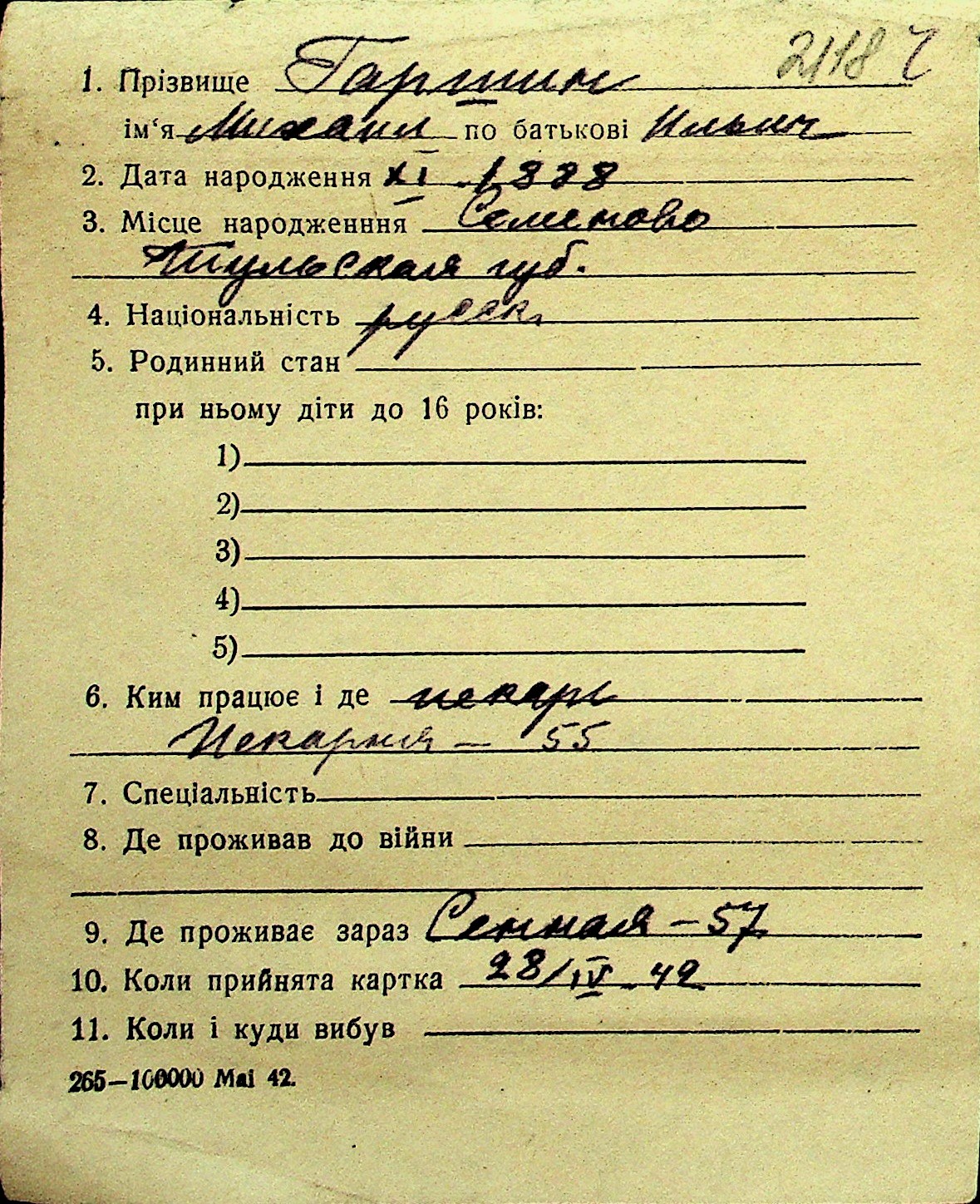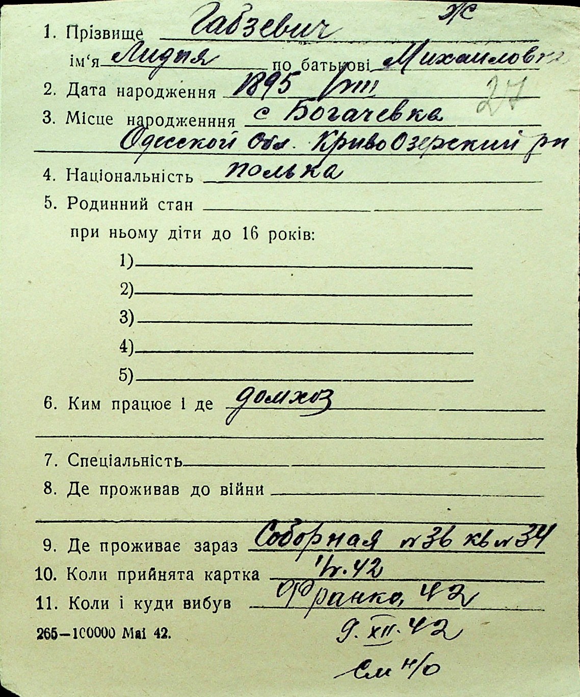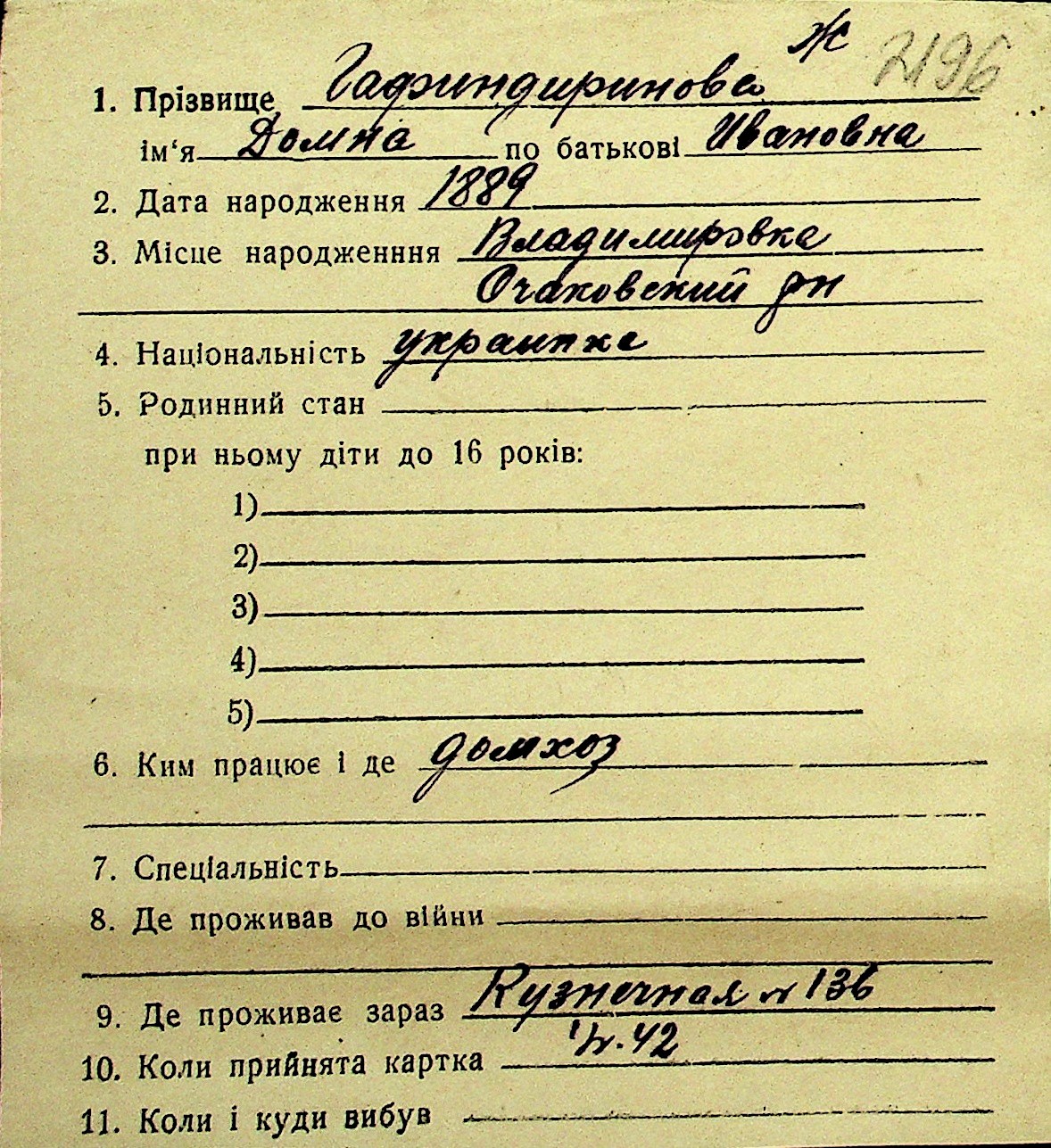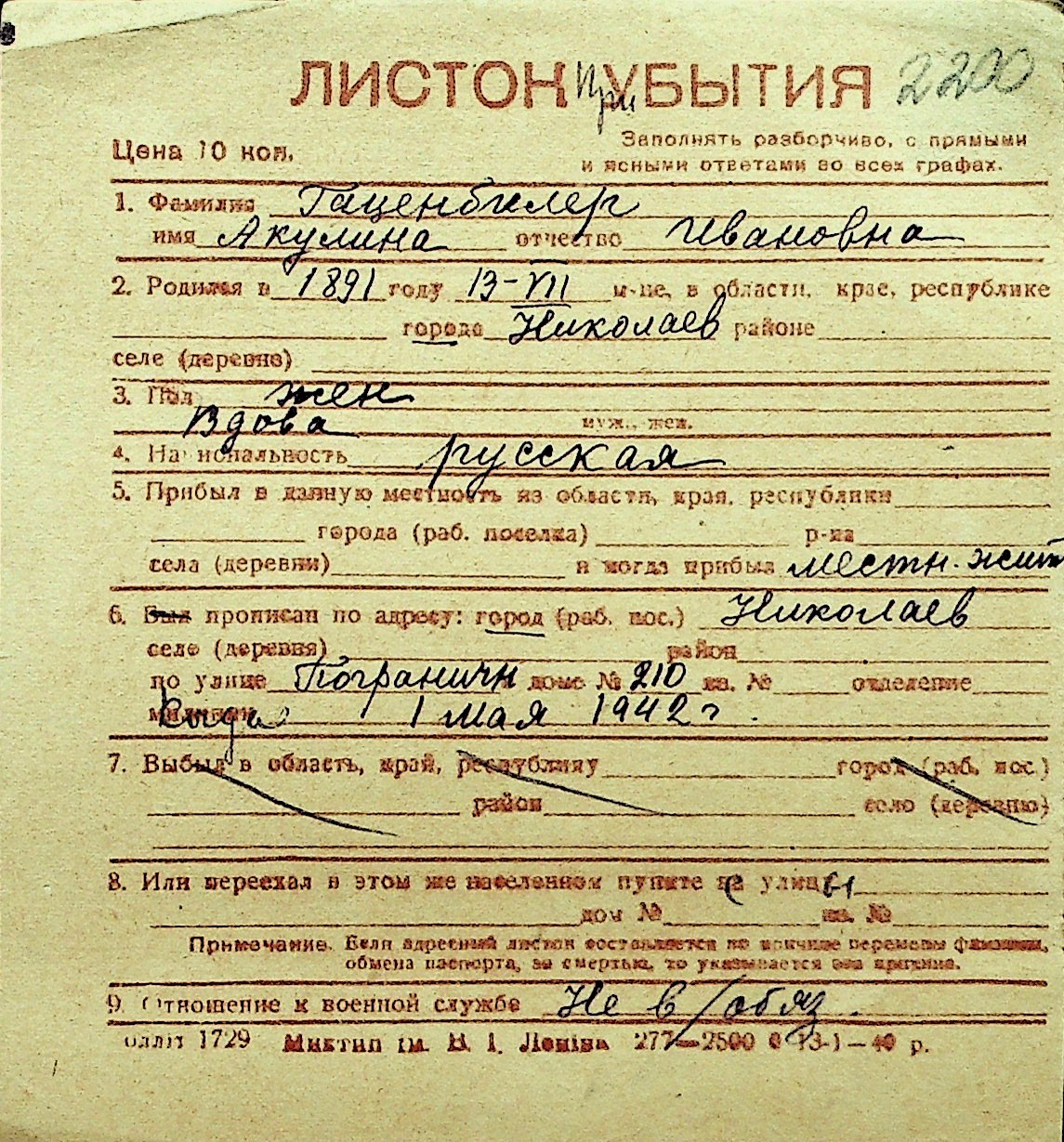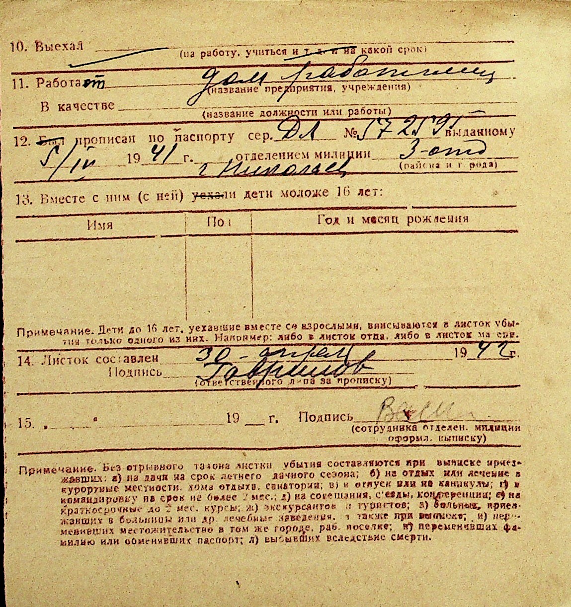 • • Перелік карток до фонду № Н-1016