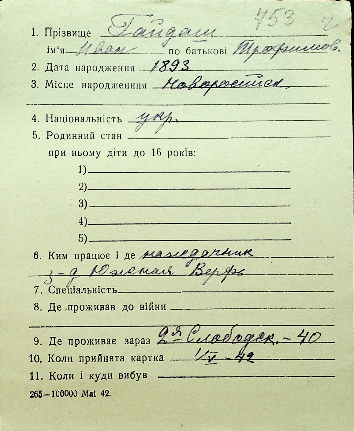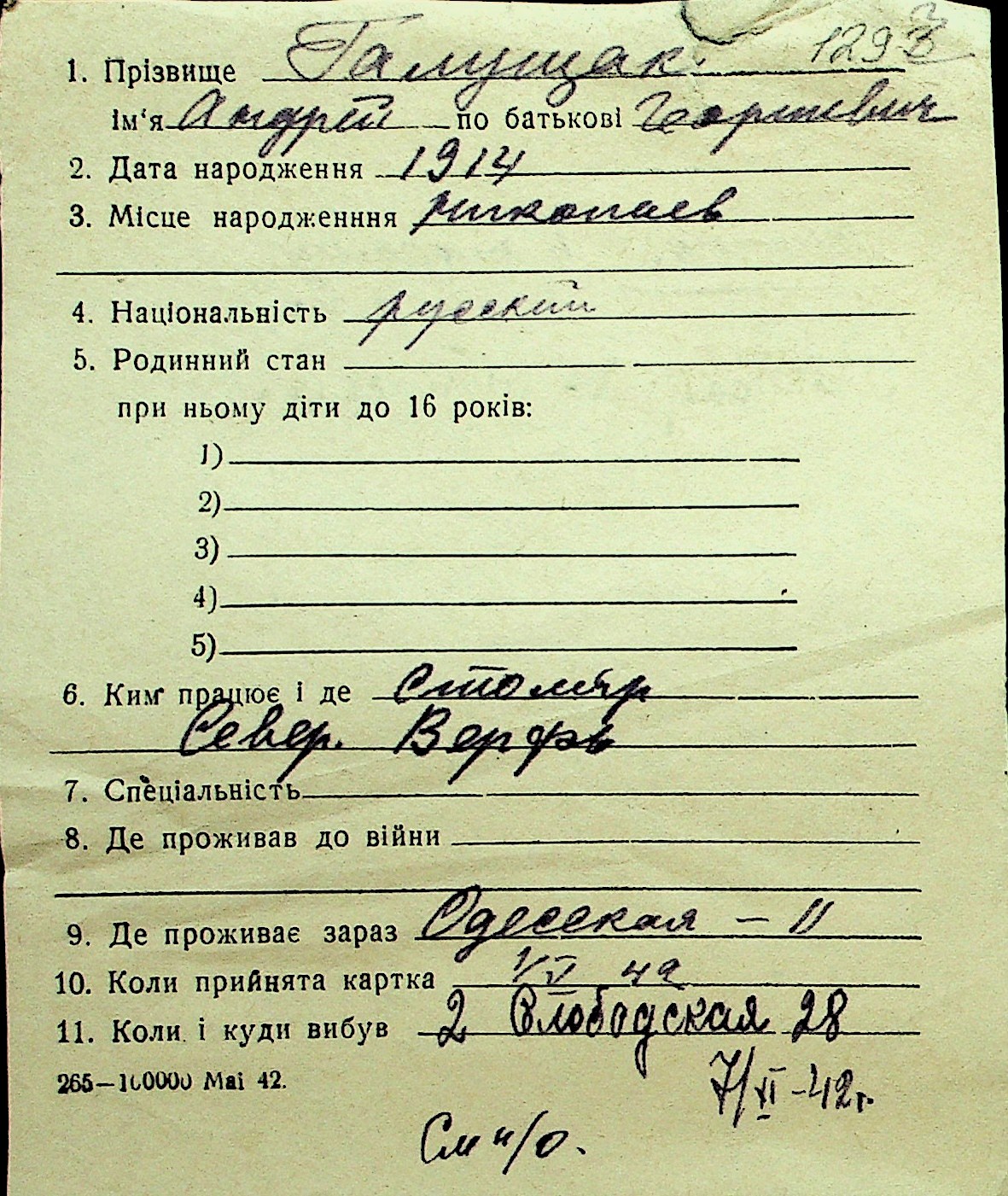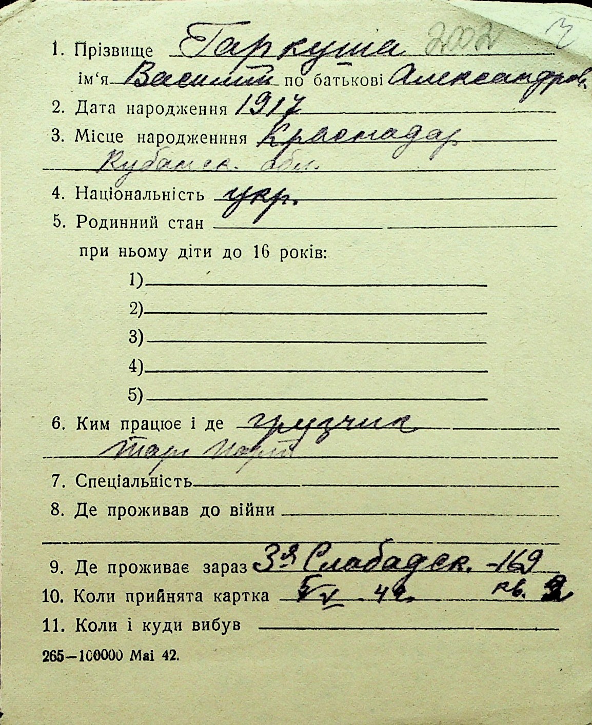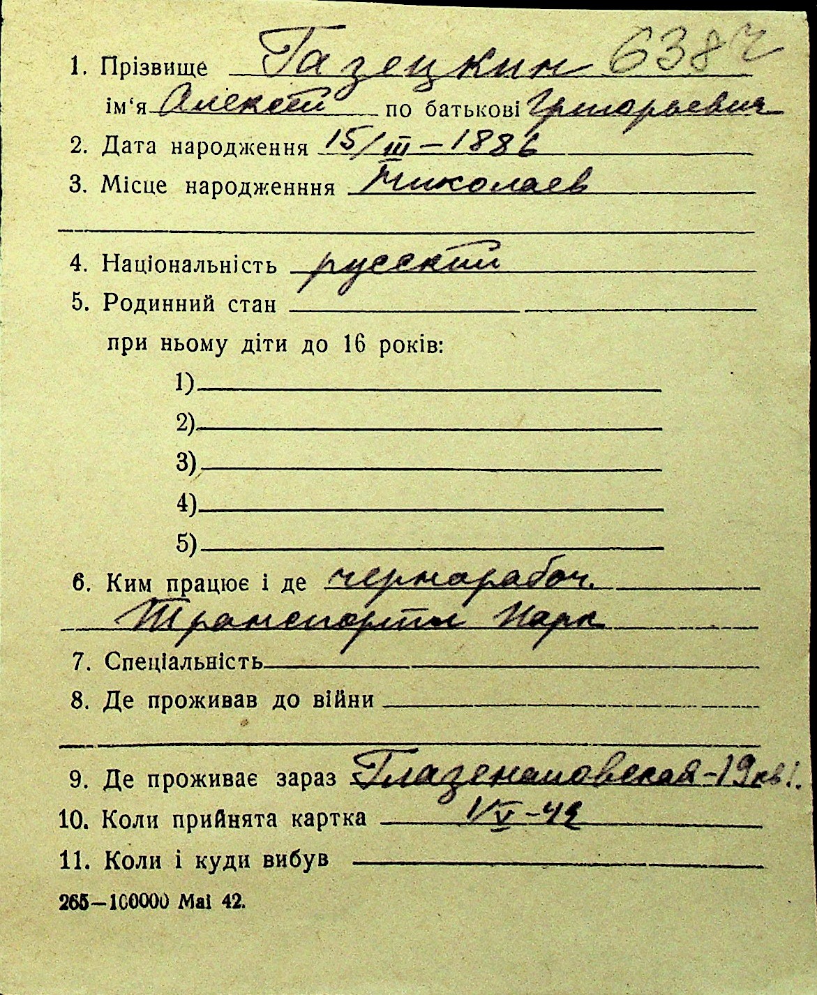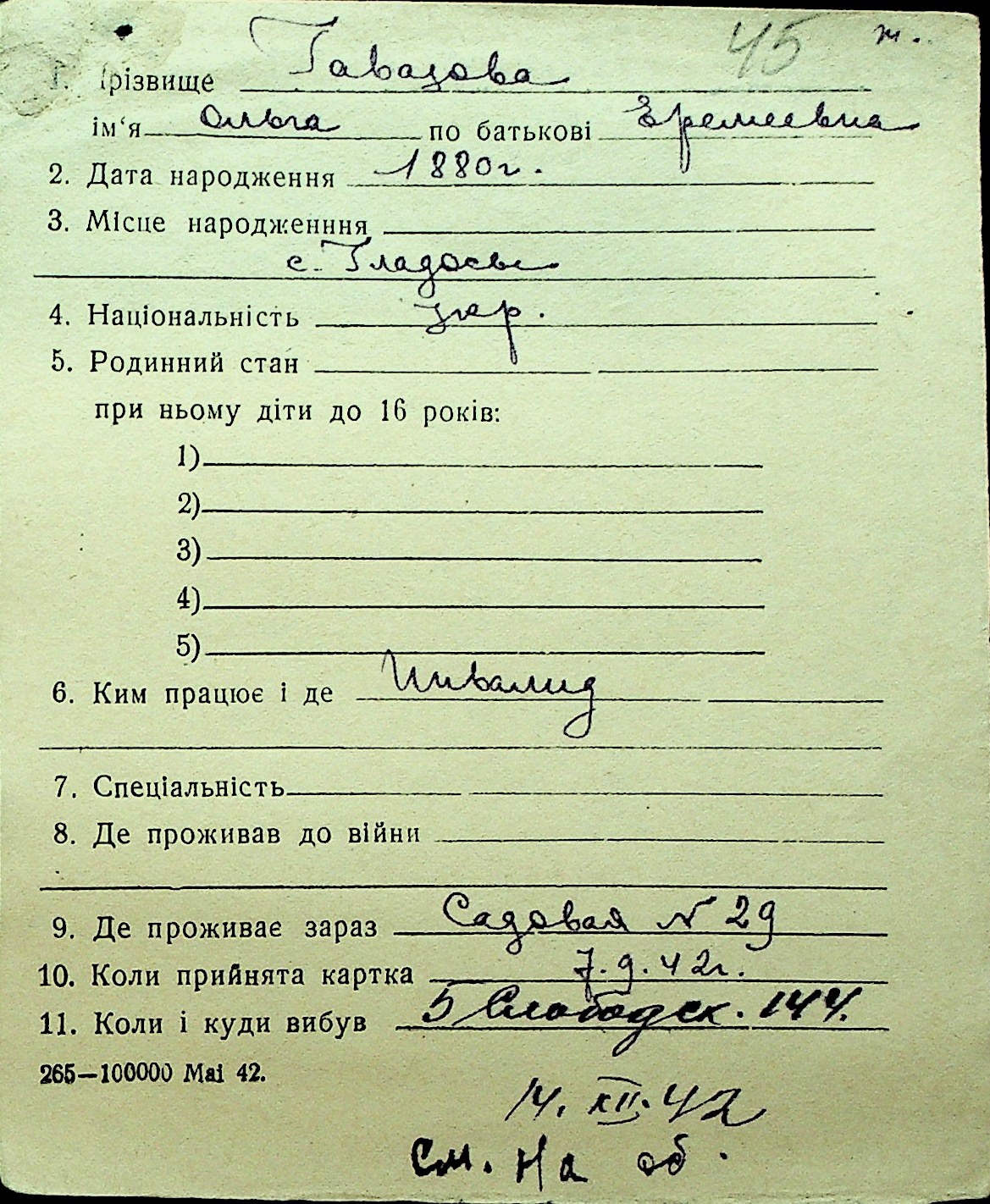 • • Перелік карток до фонду № Н-1016