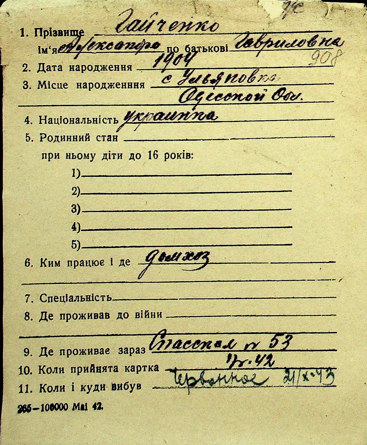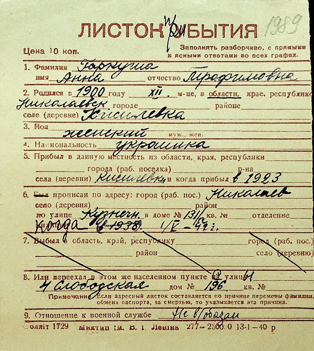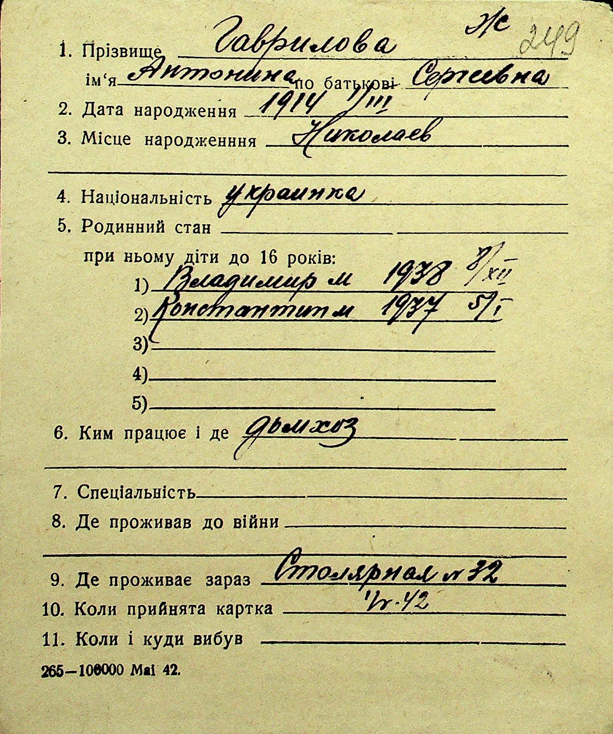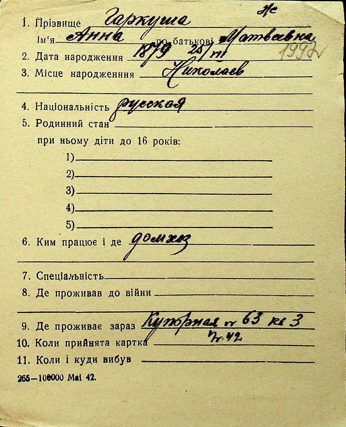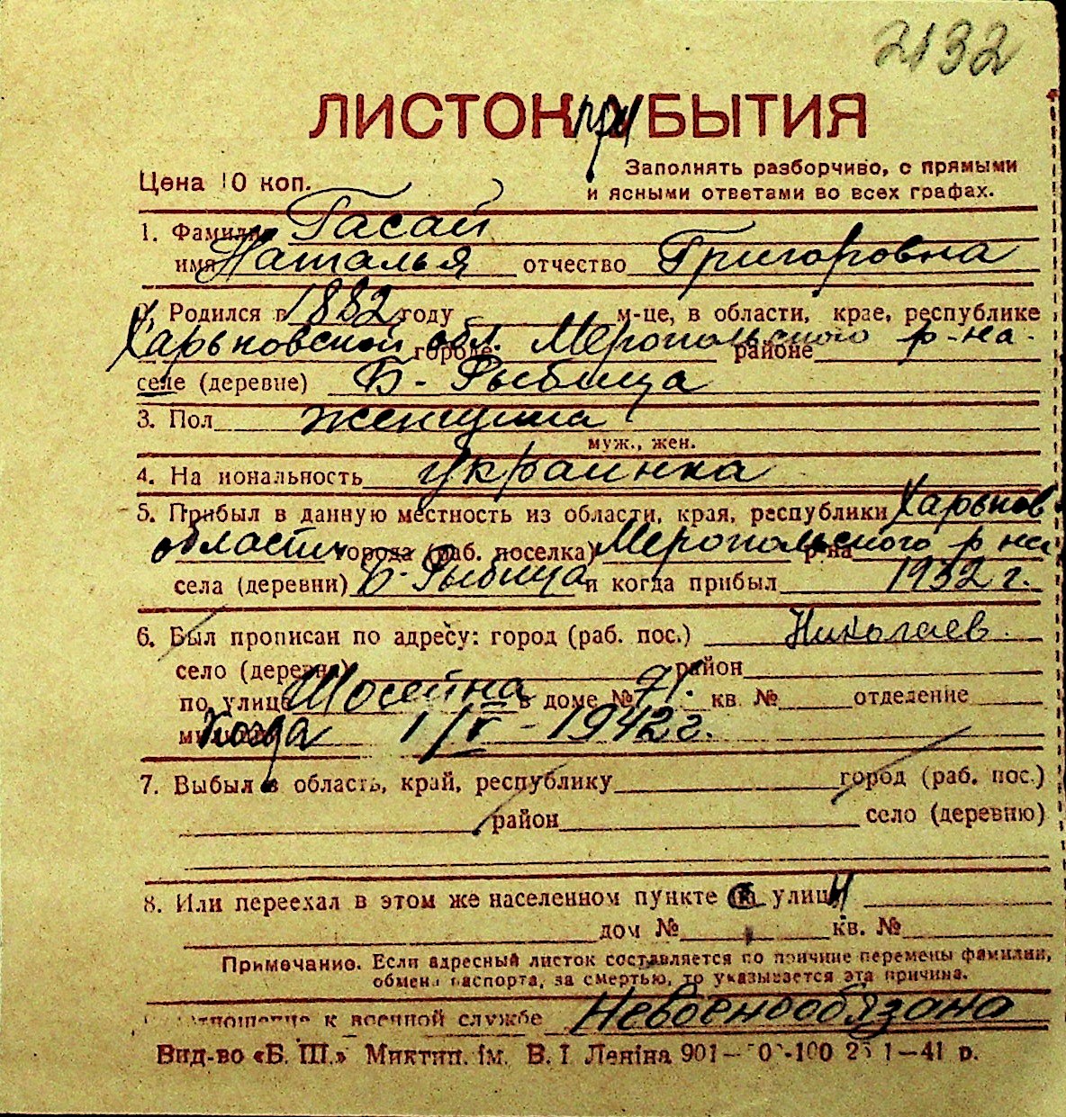• • Перелік карток до фонду № Н-1016