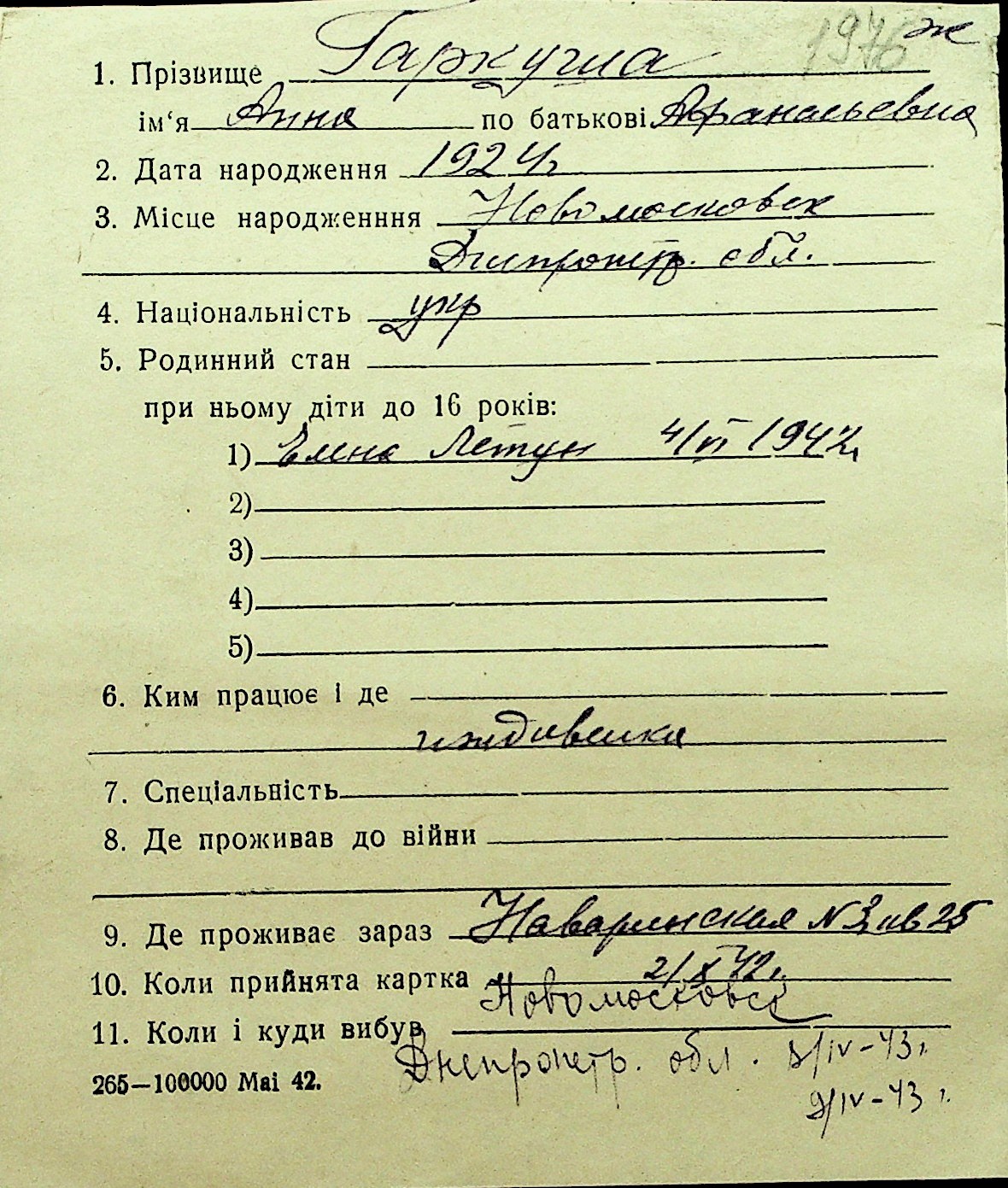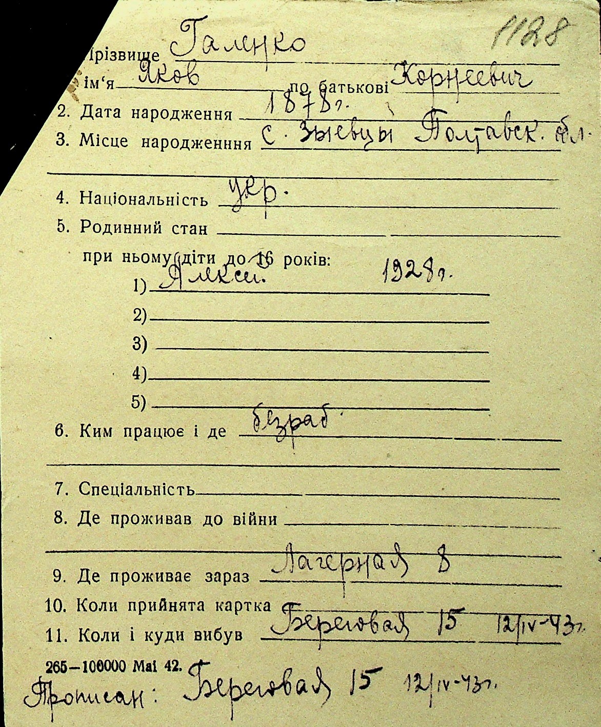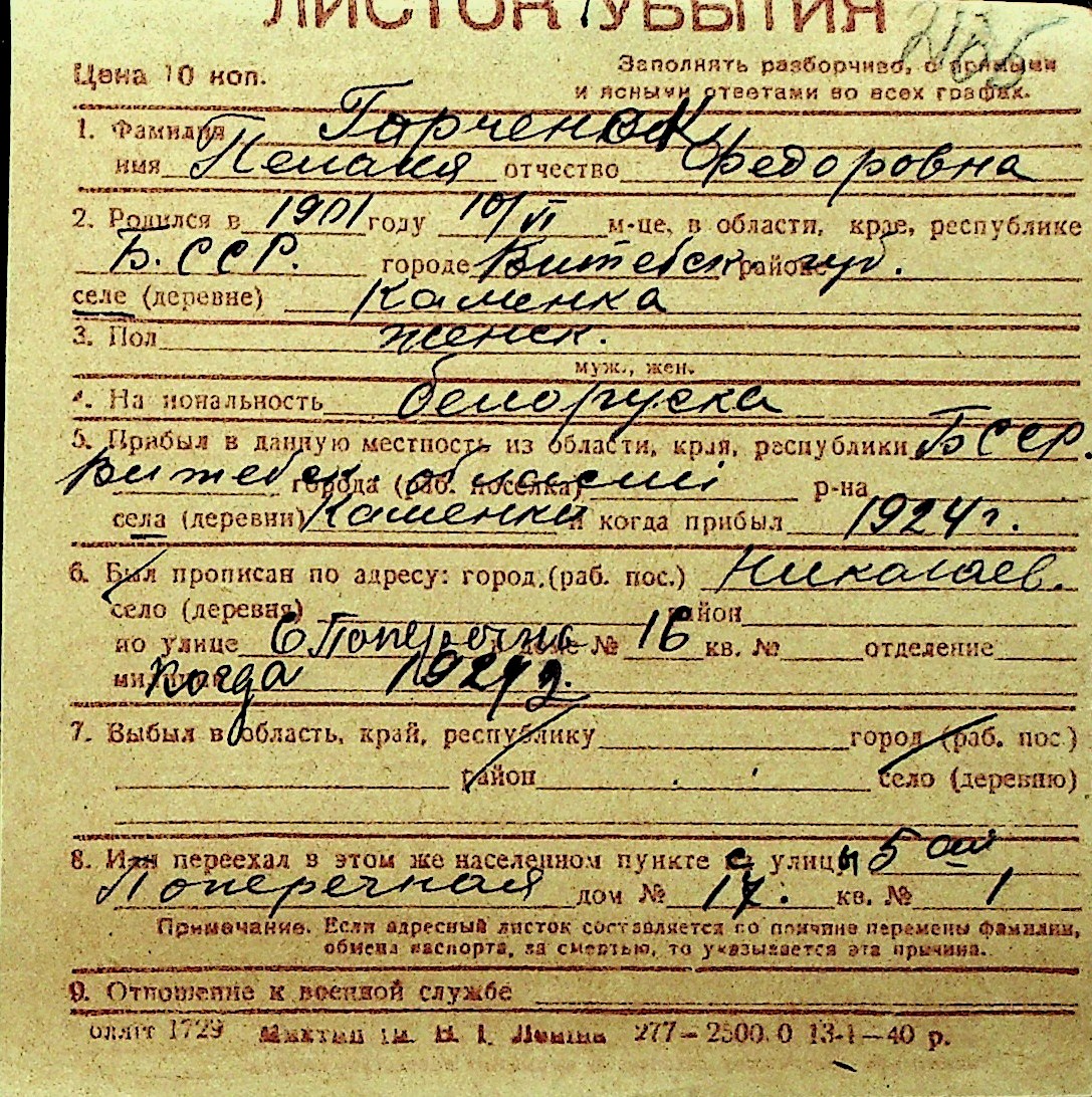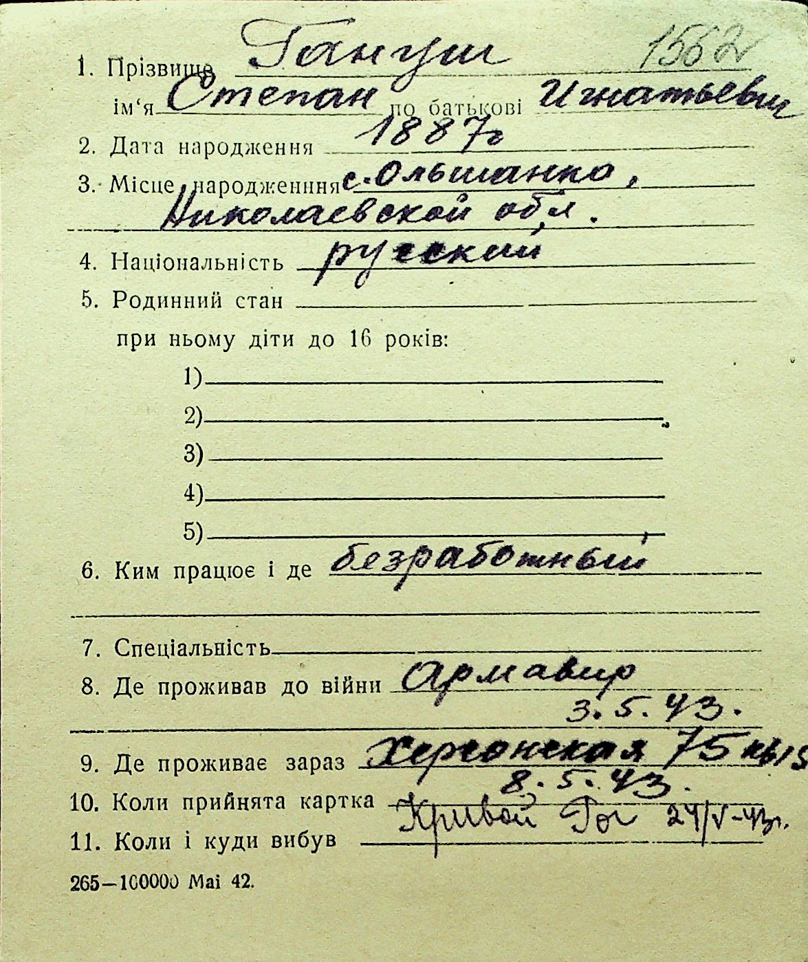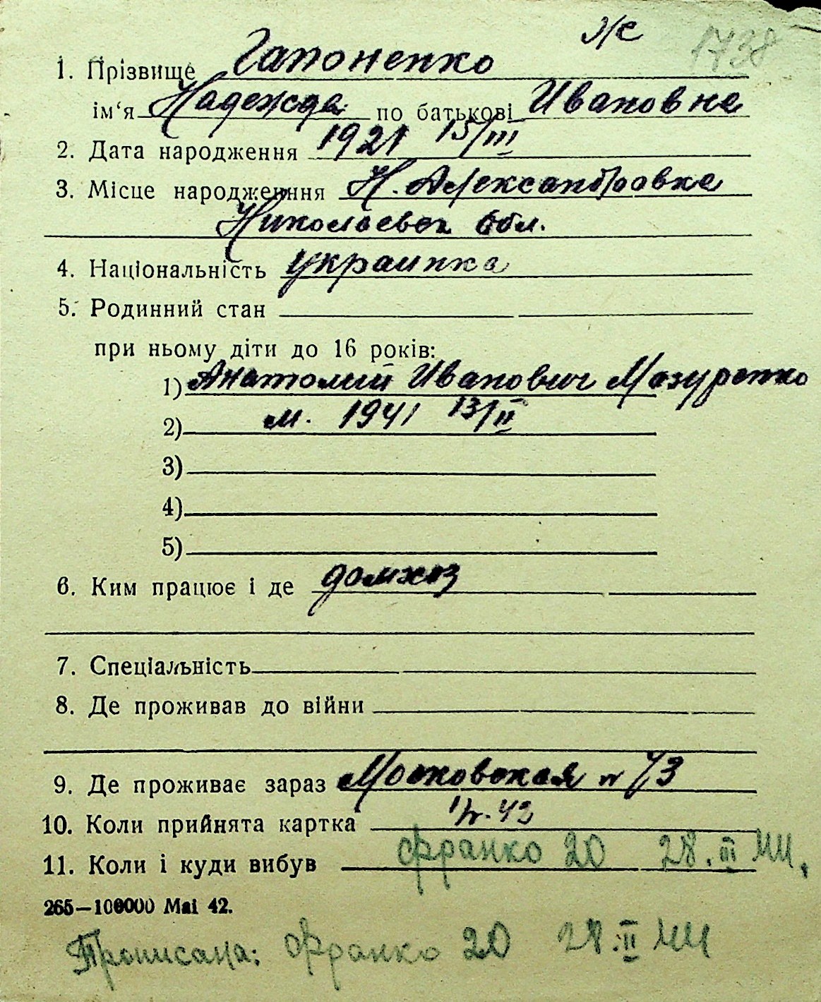 • • Перелік карток до фонду № Н-1016