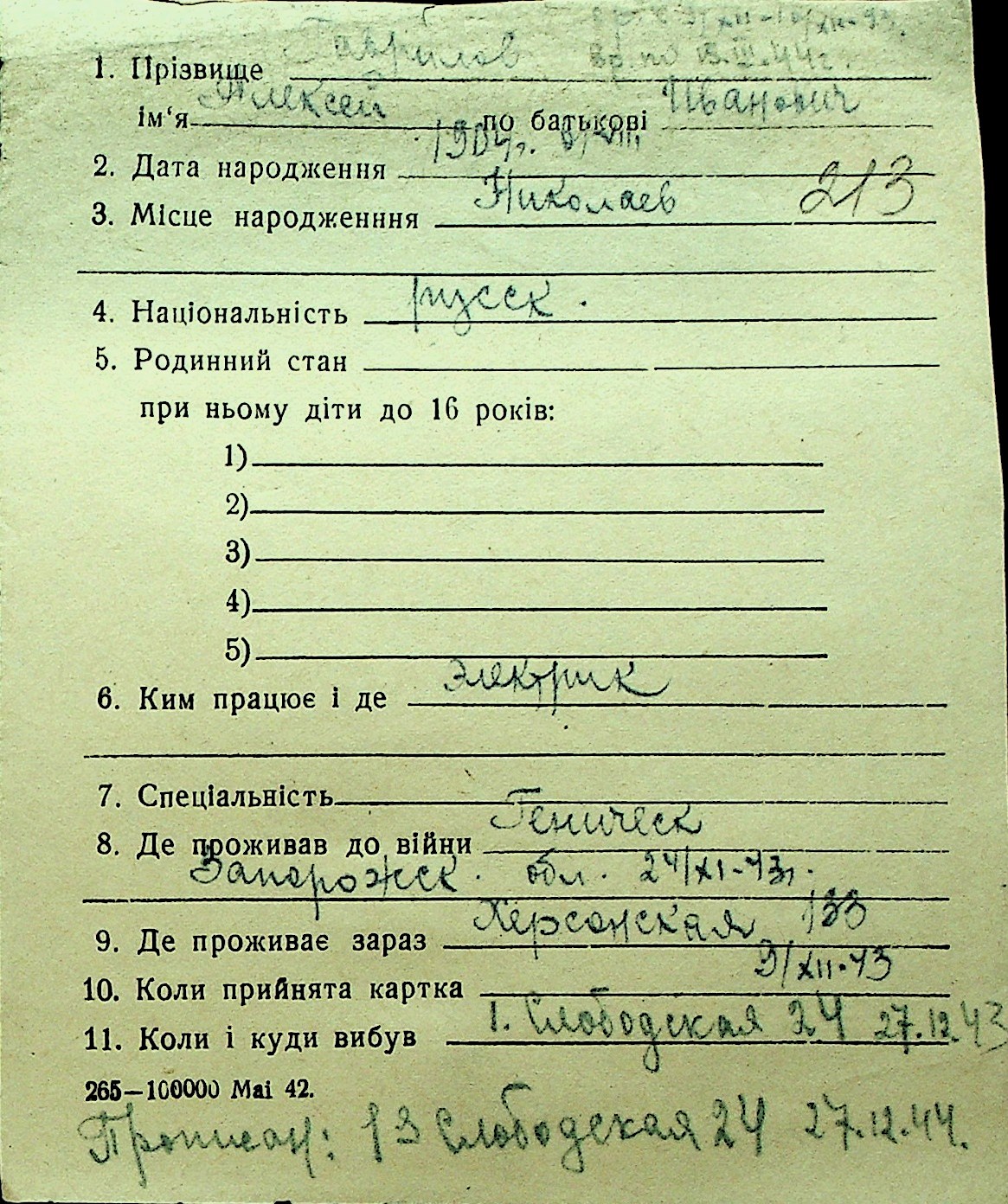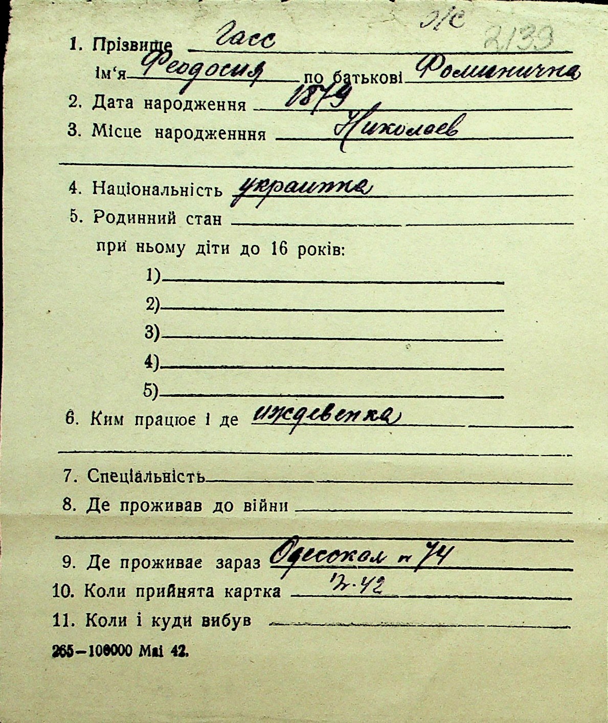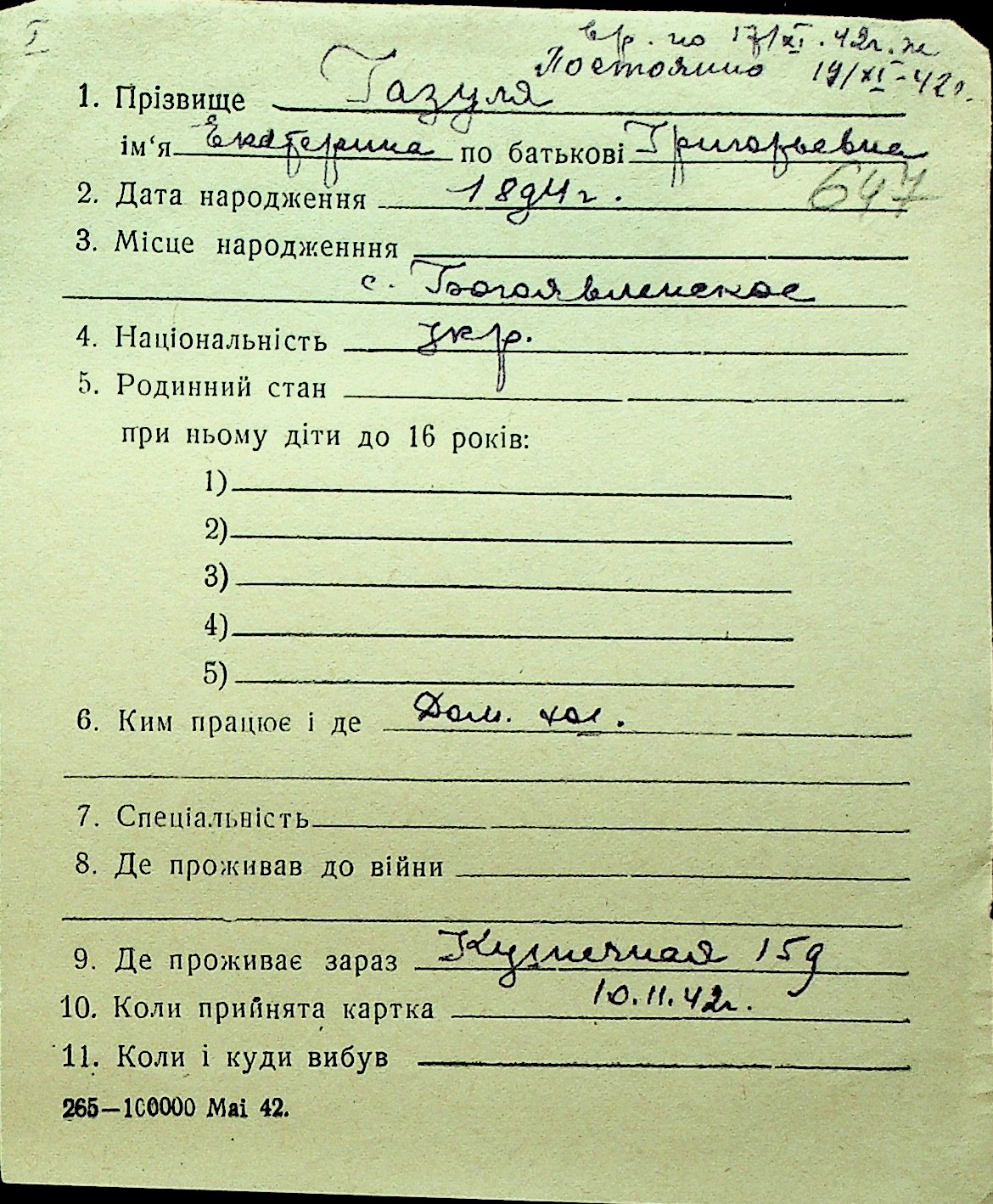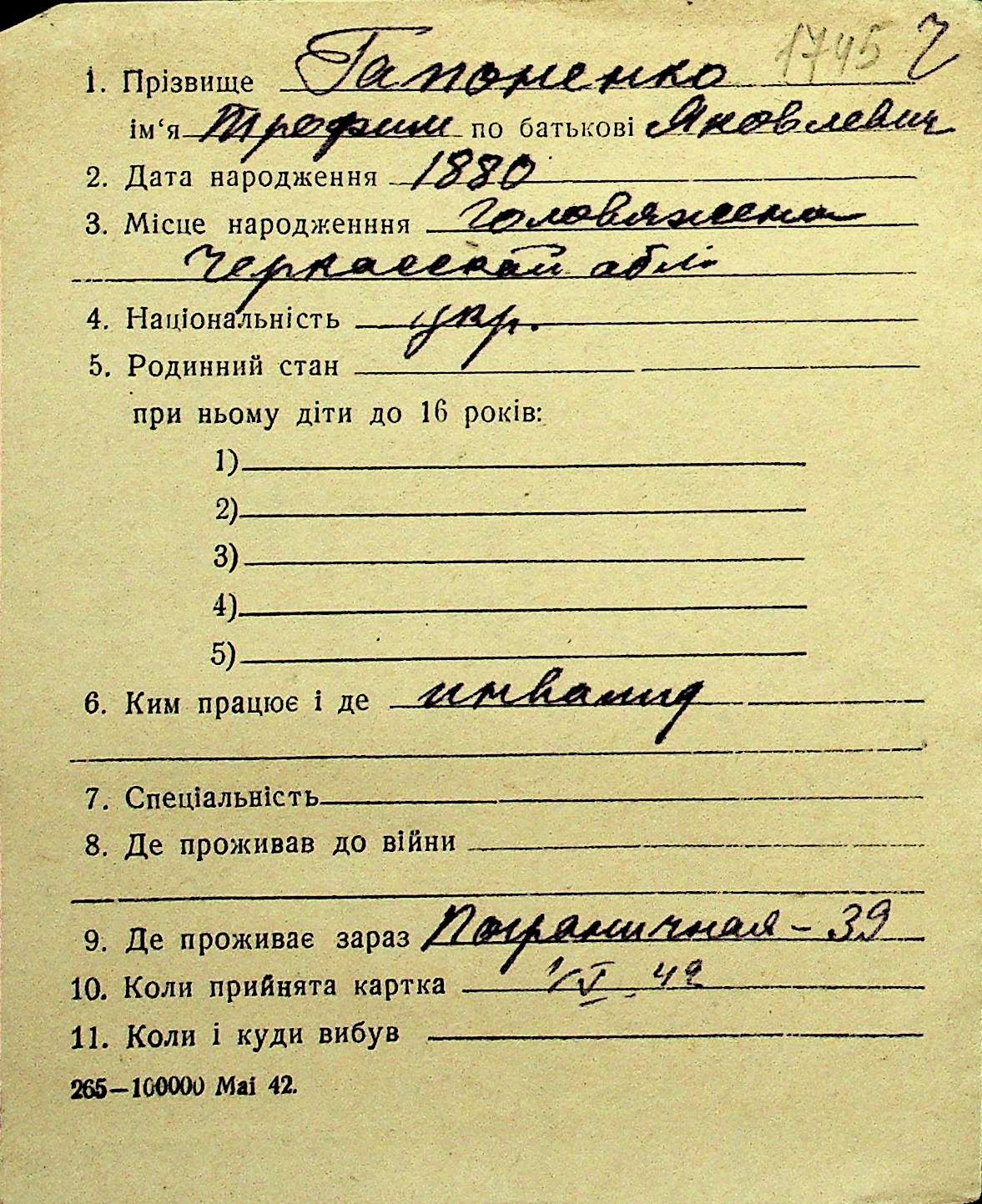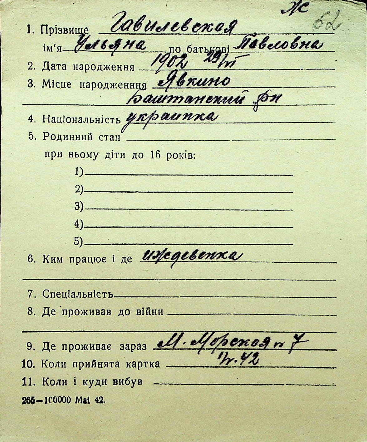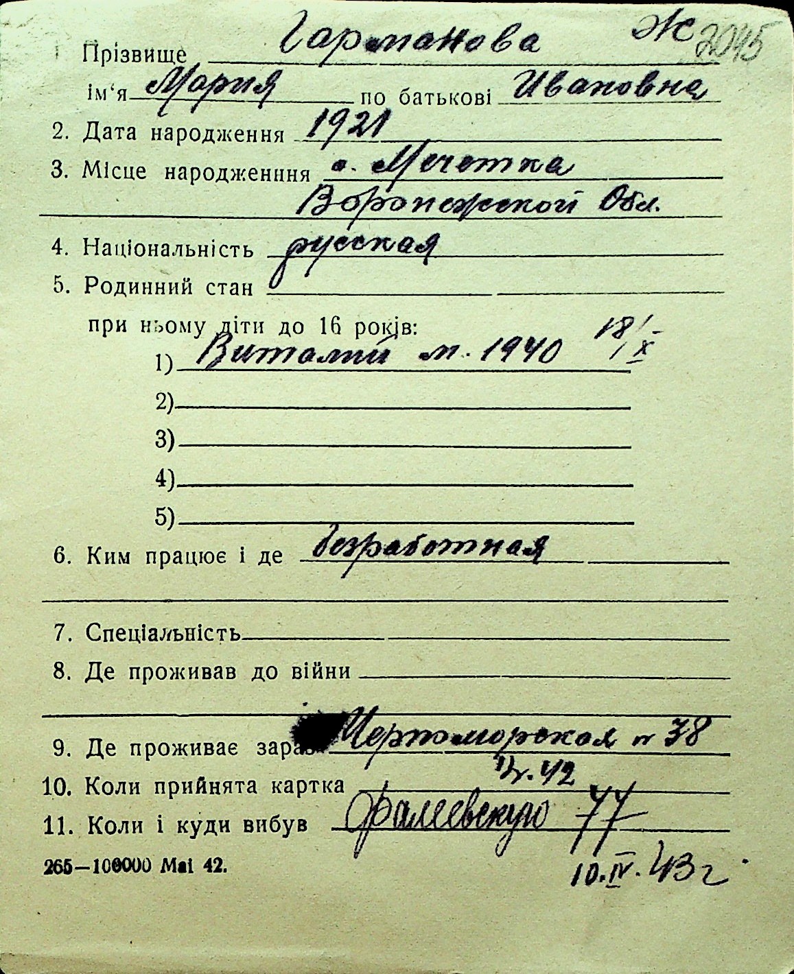 • • Перелік карток до фонду № Н-1016