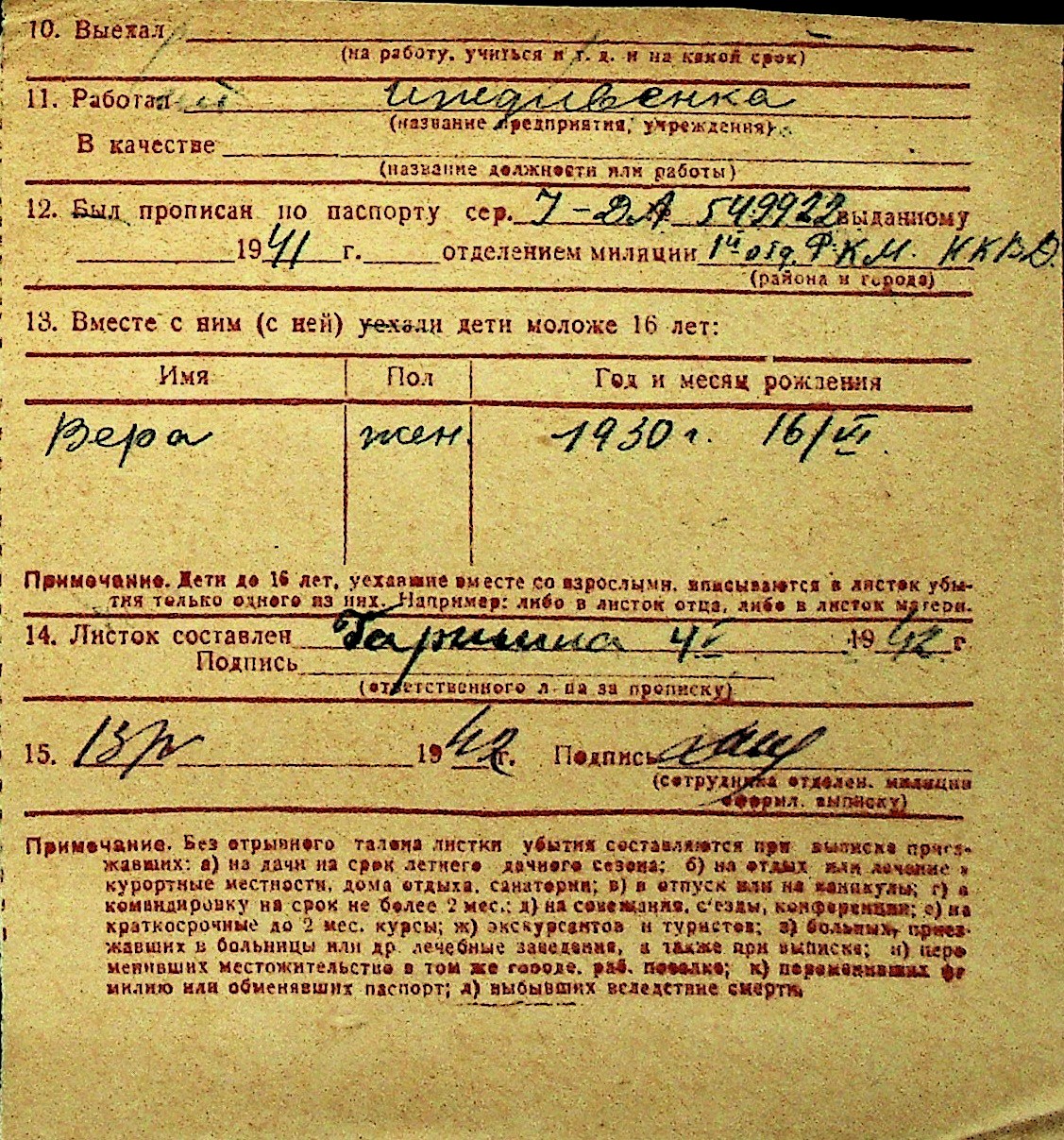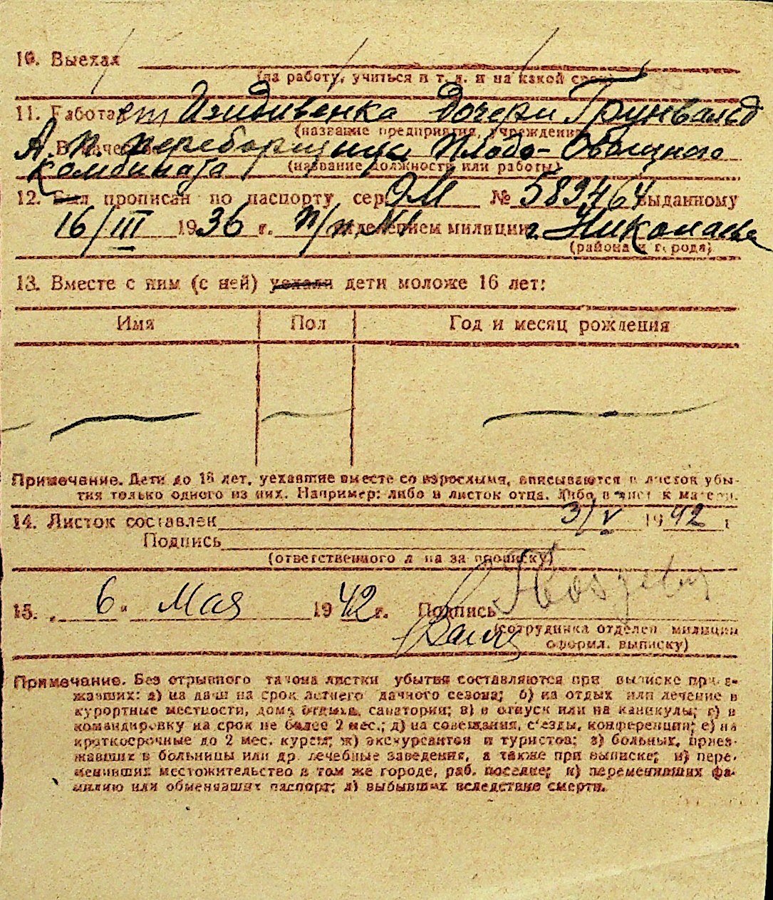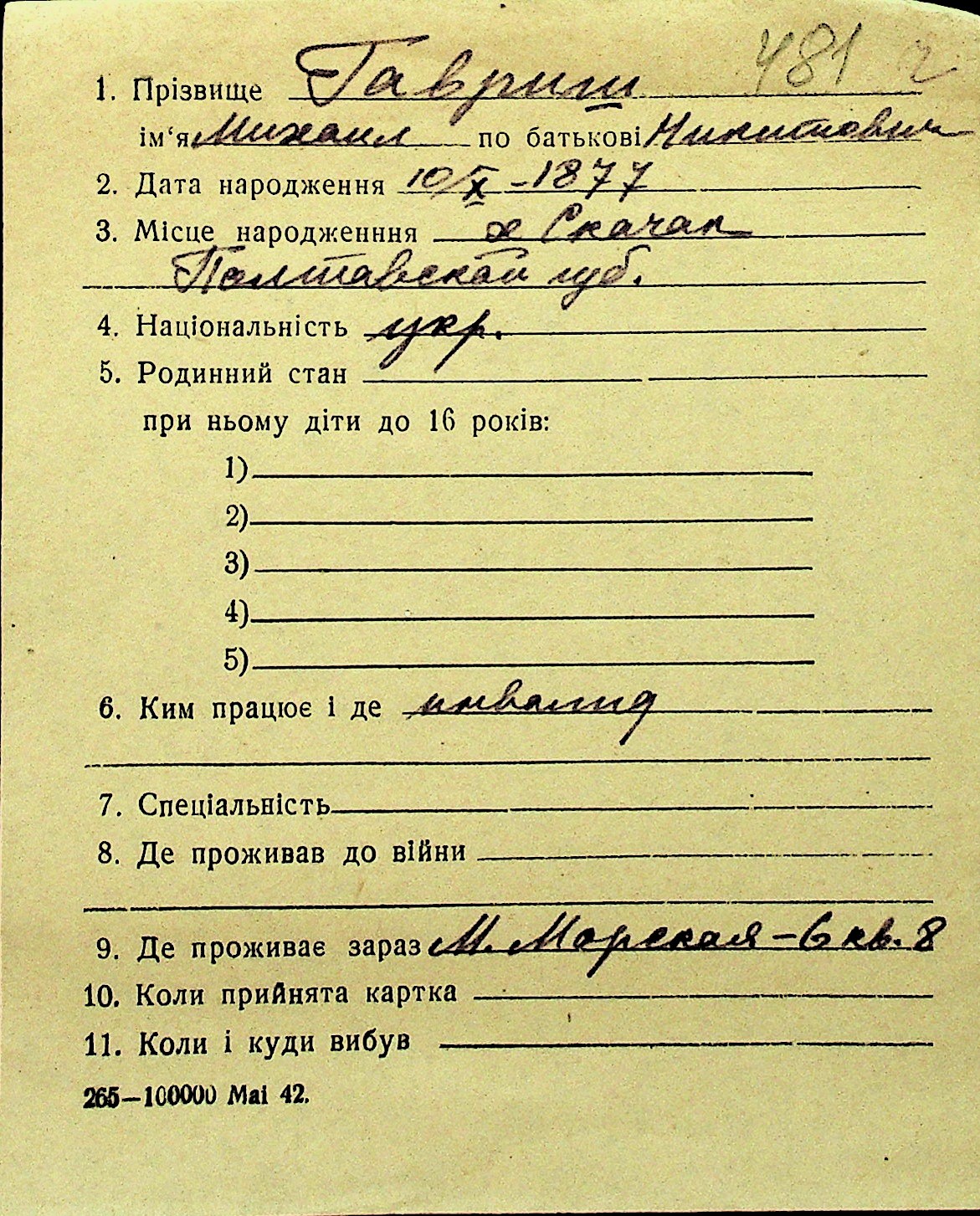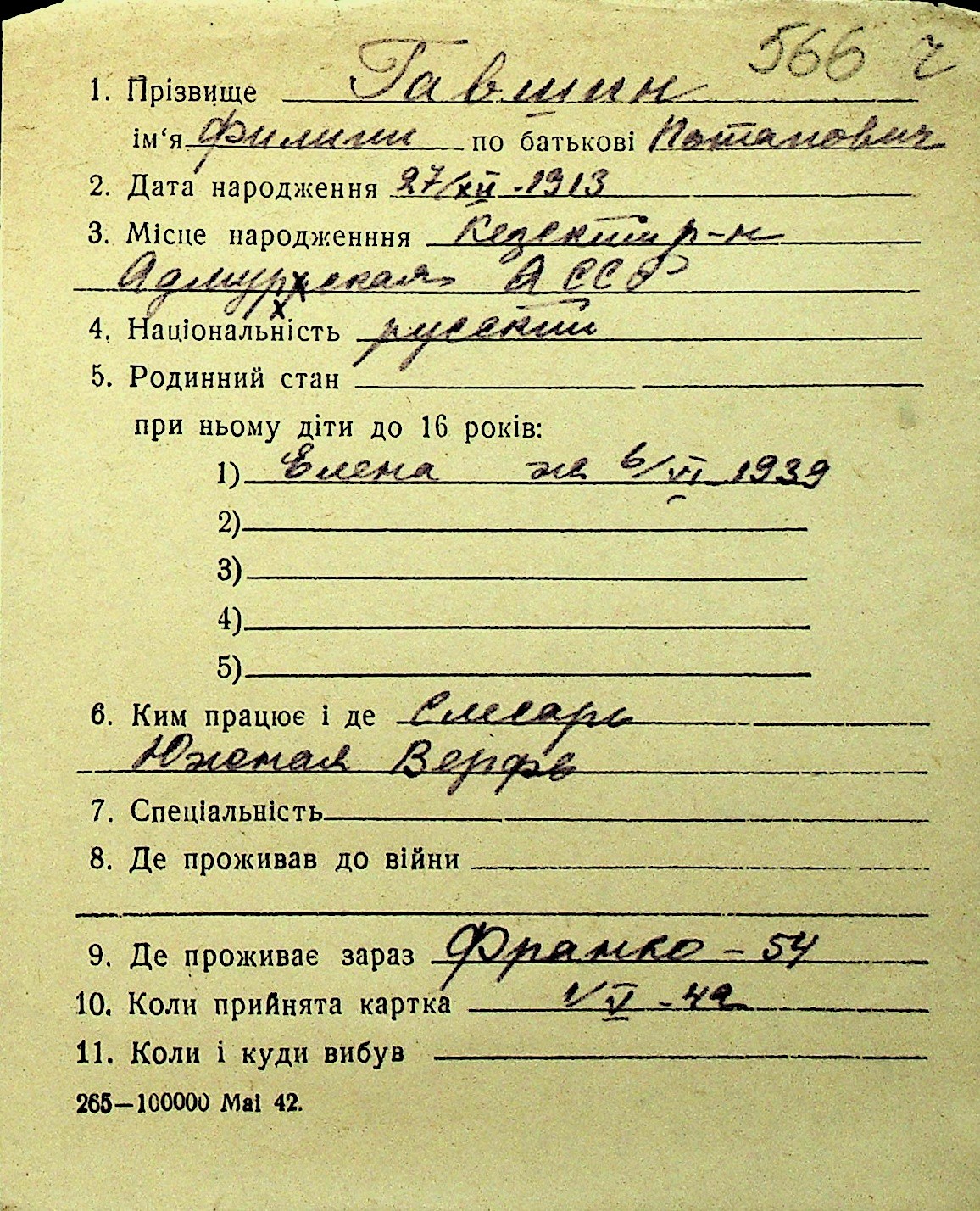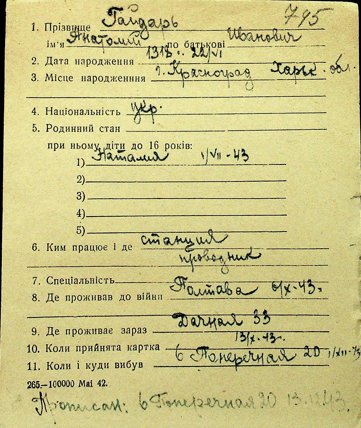 • • Перелік карток до фонду № Н-1016