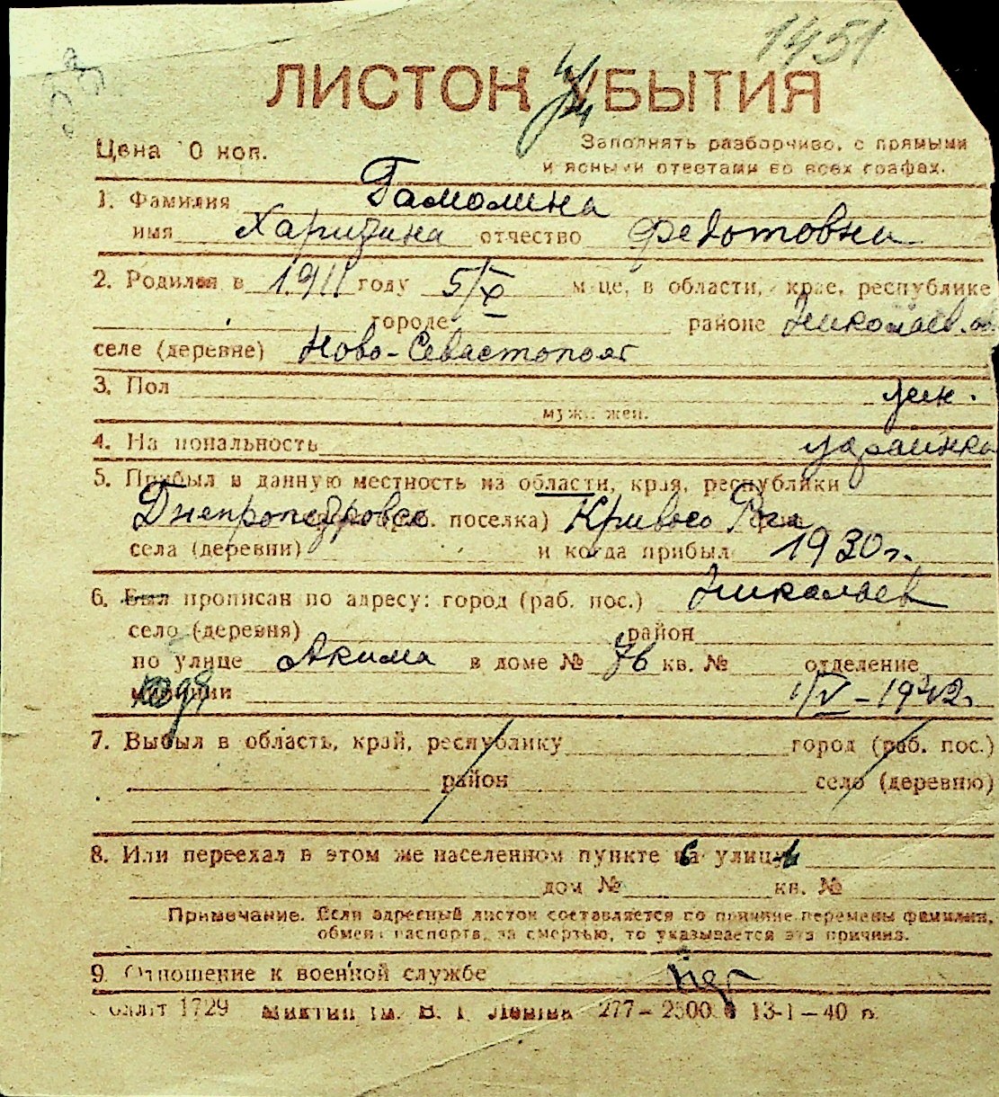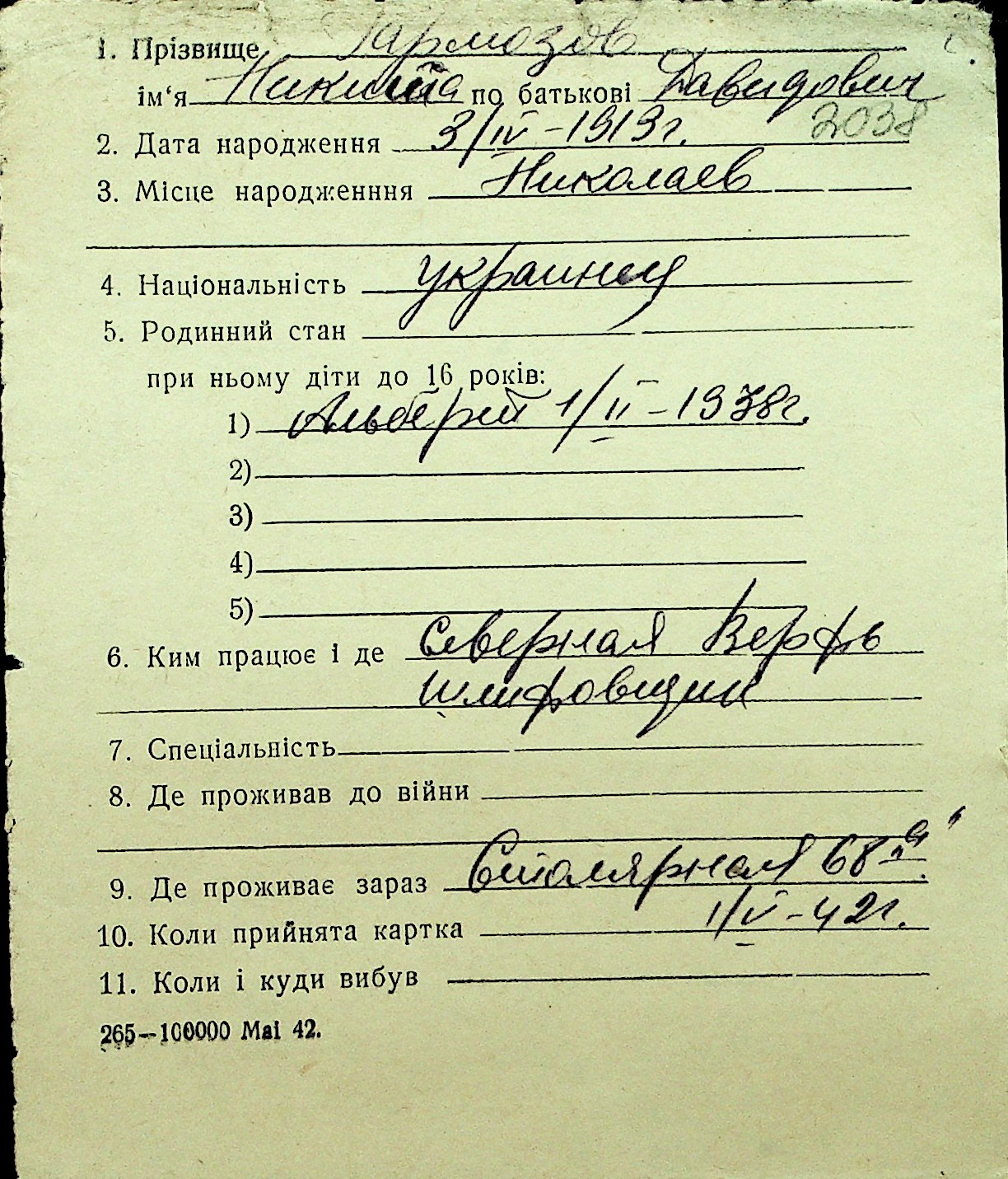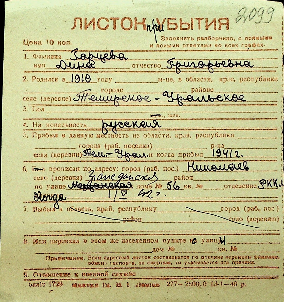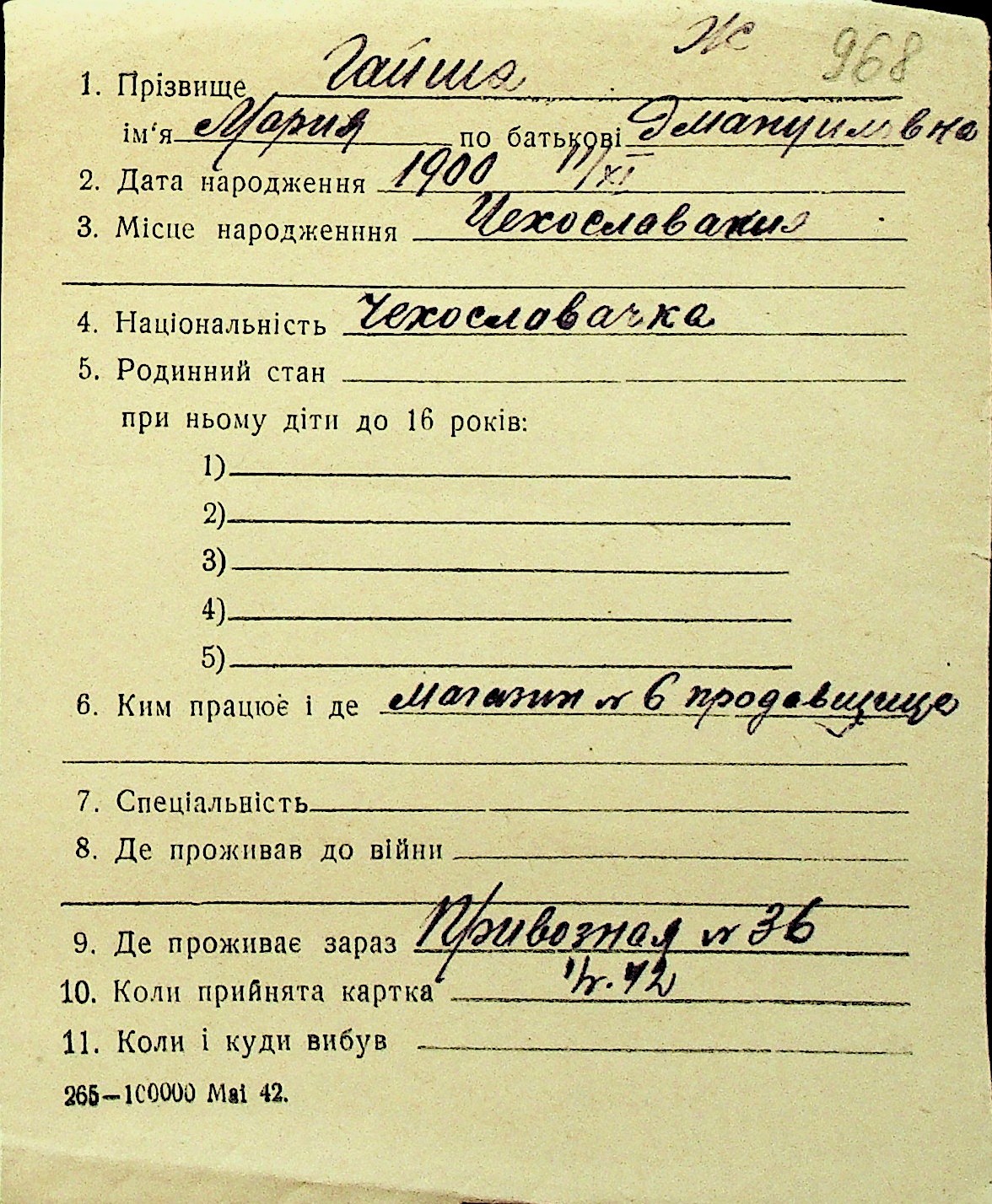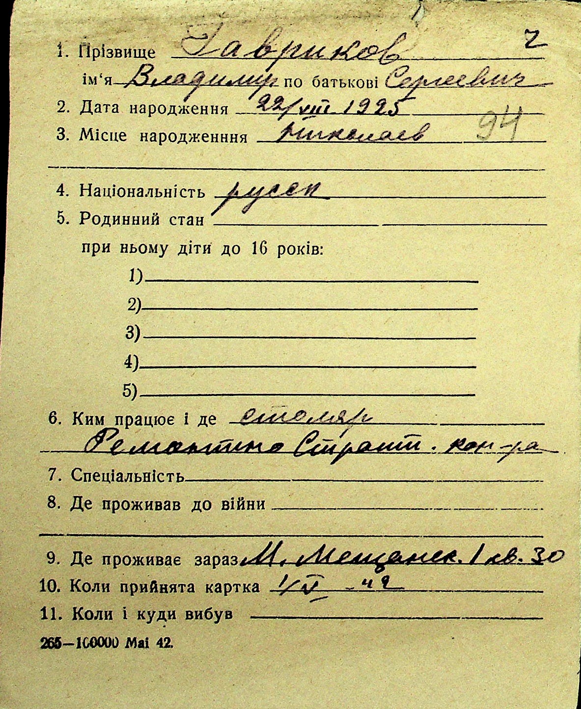 • • Перелік карток до фонду № Н-1016