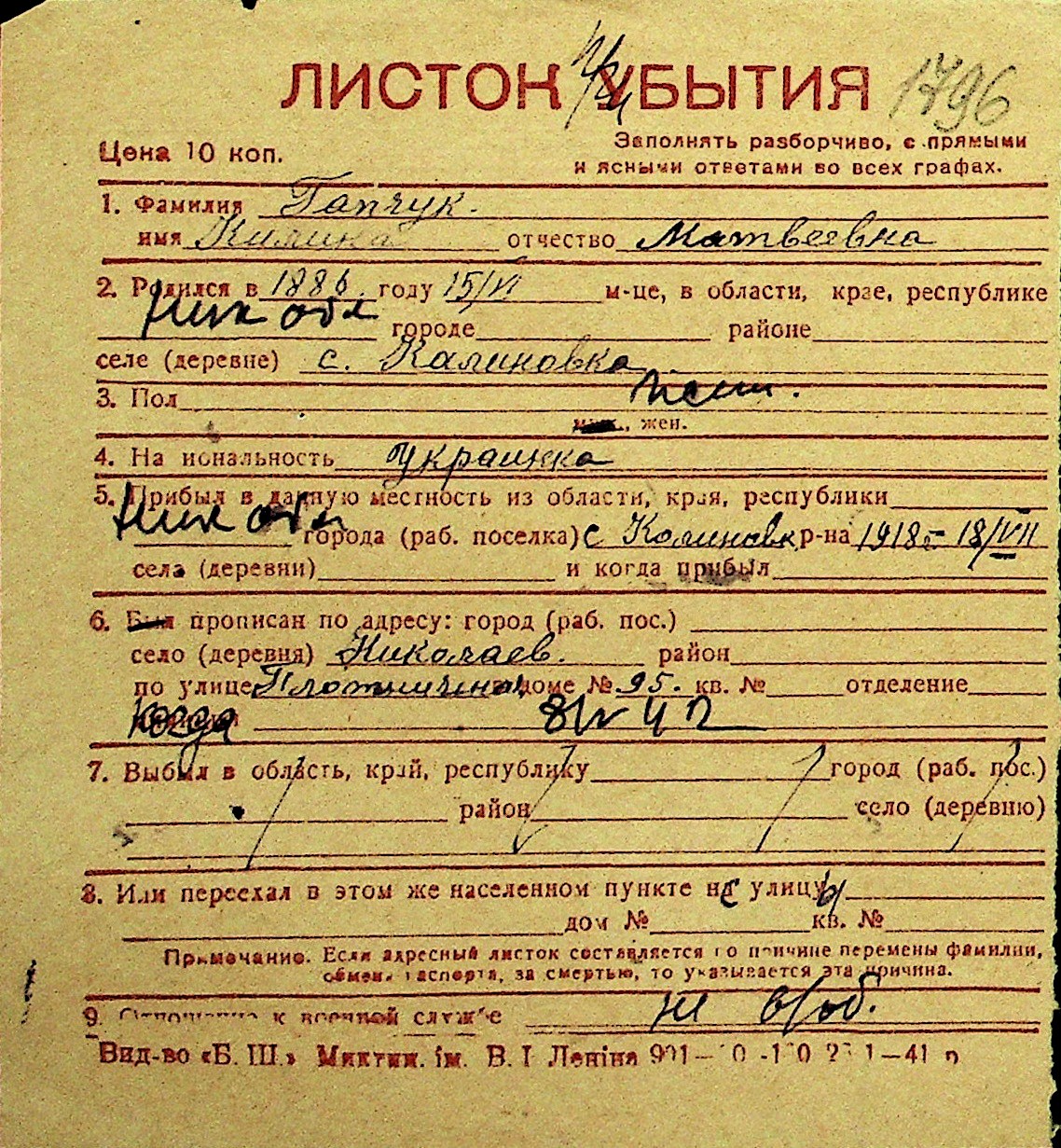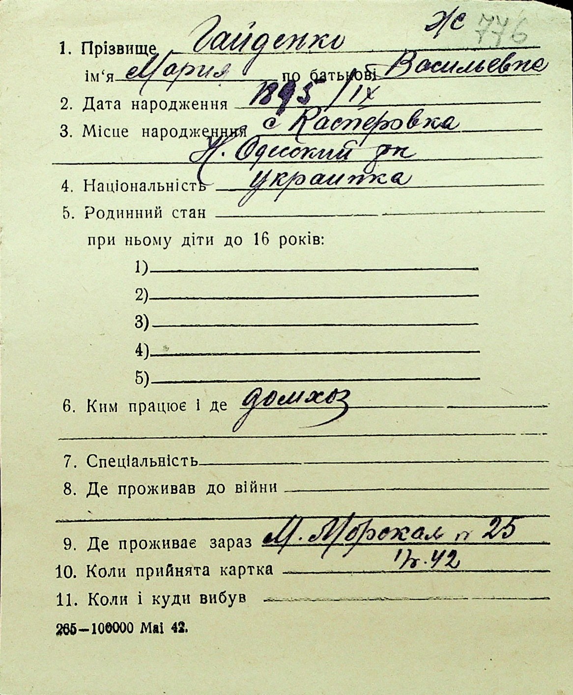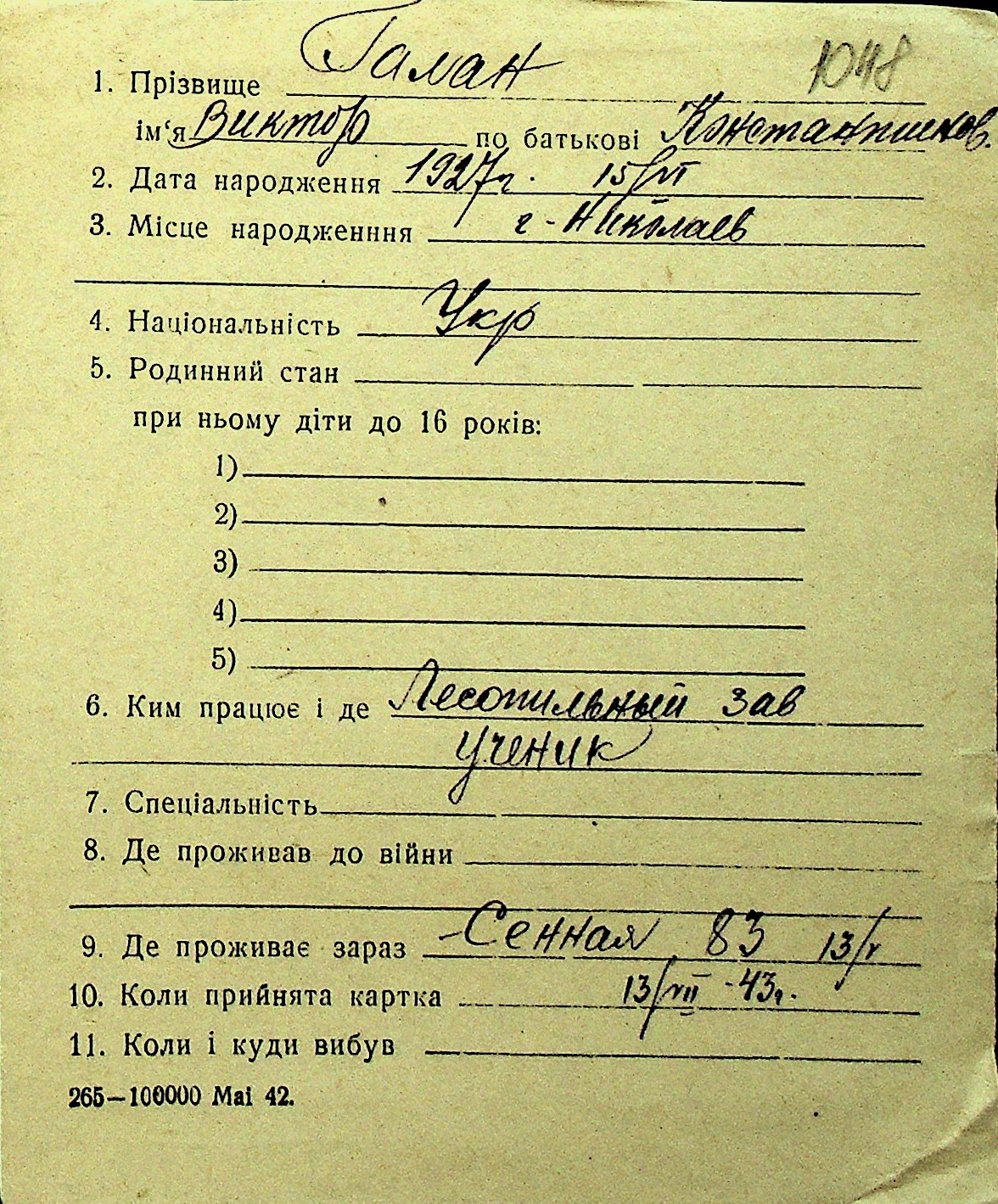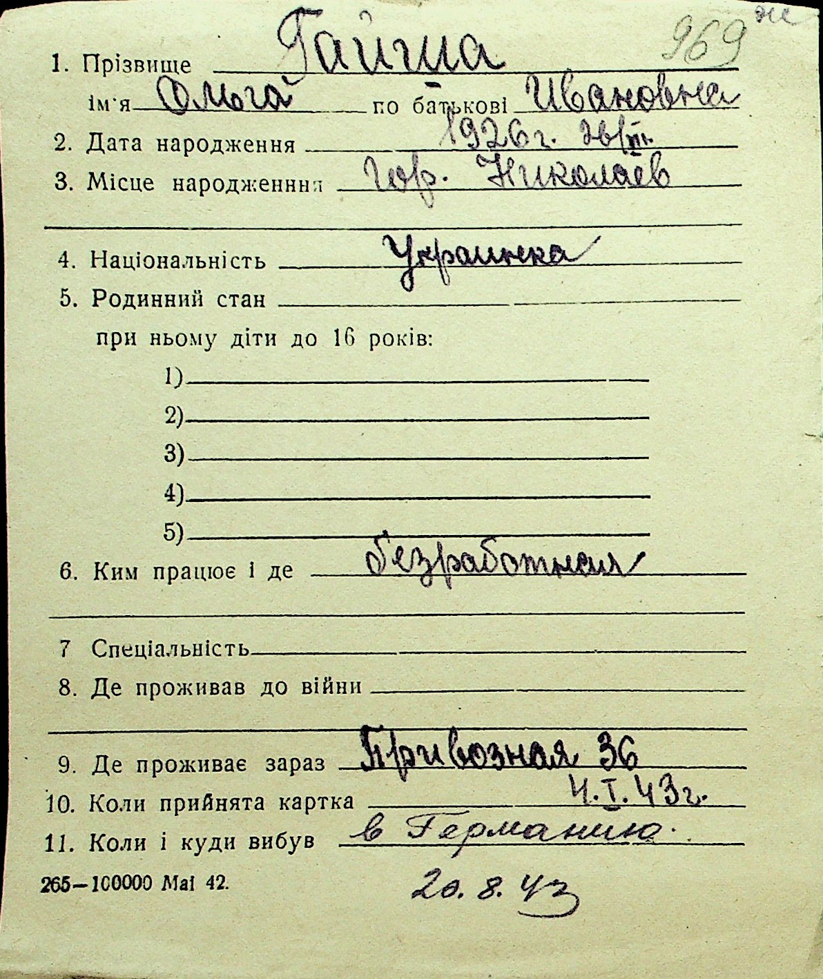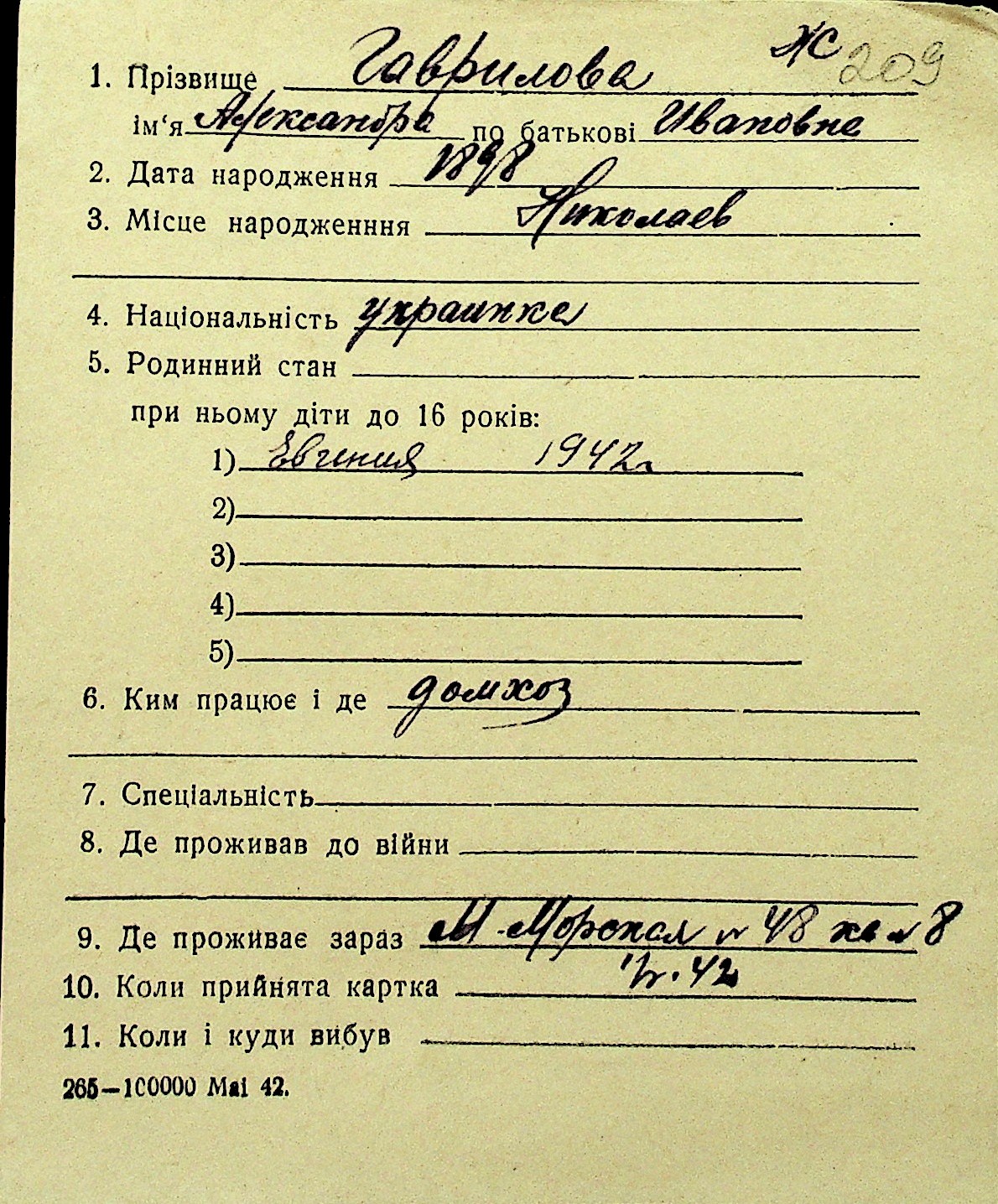 • • Перелік карток до фонду № Н-1016