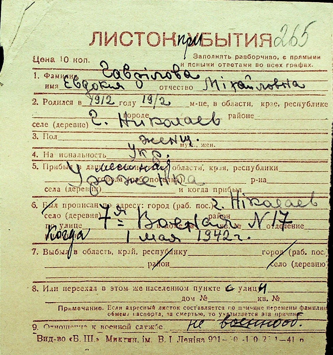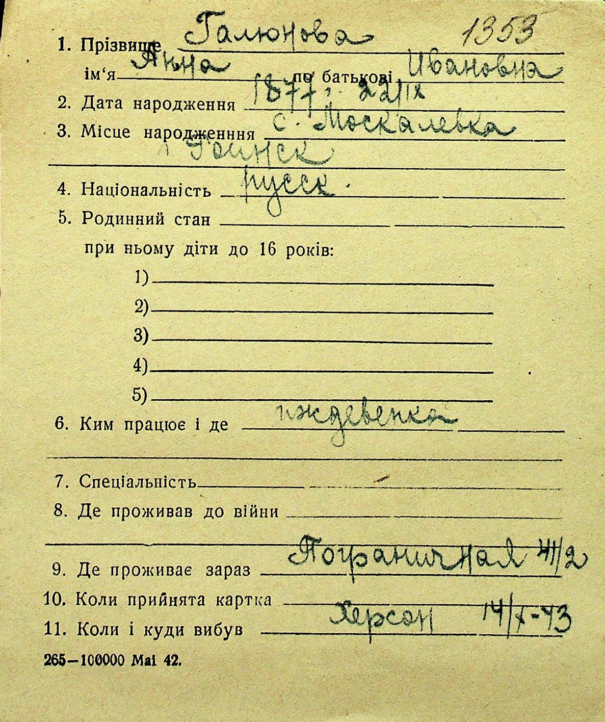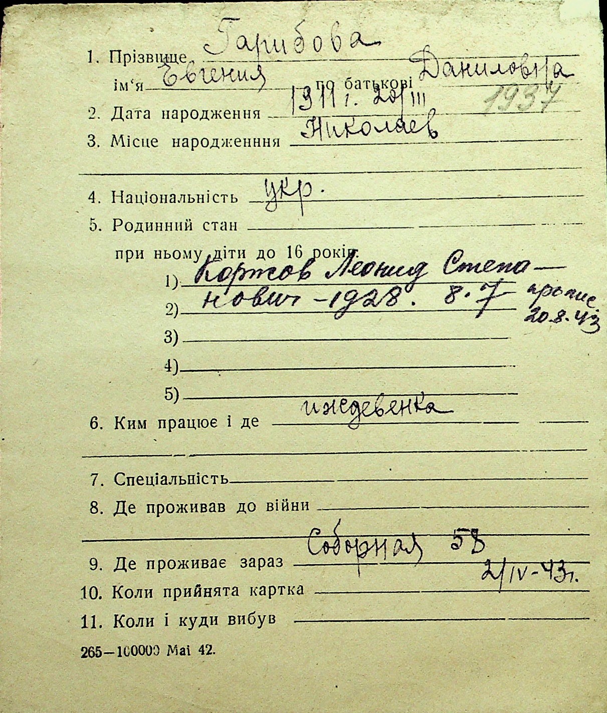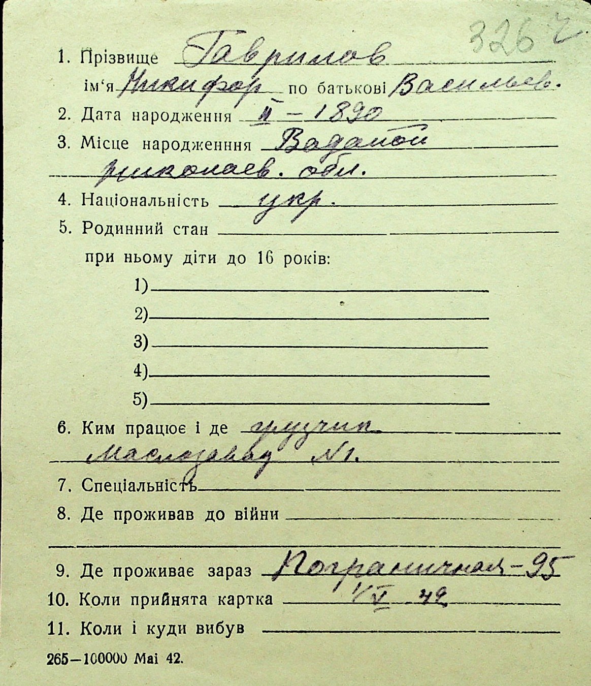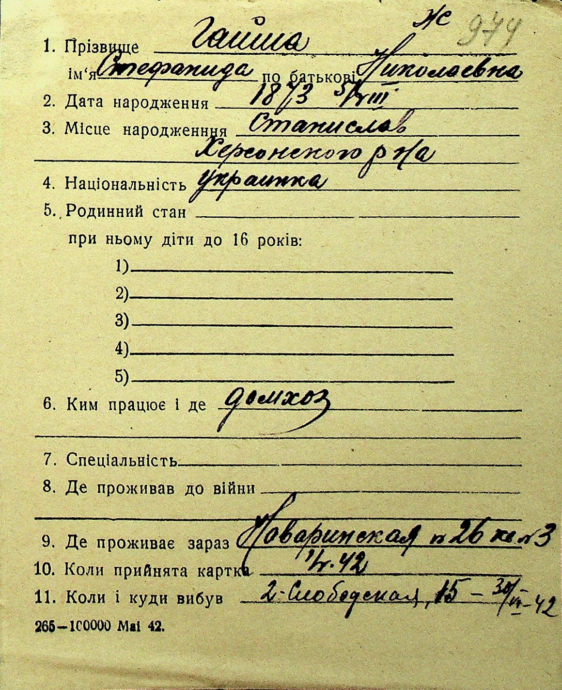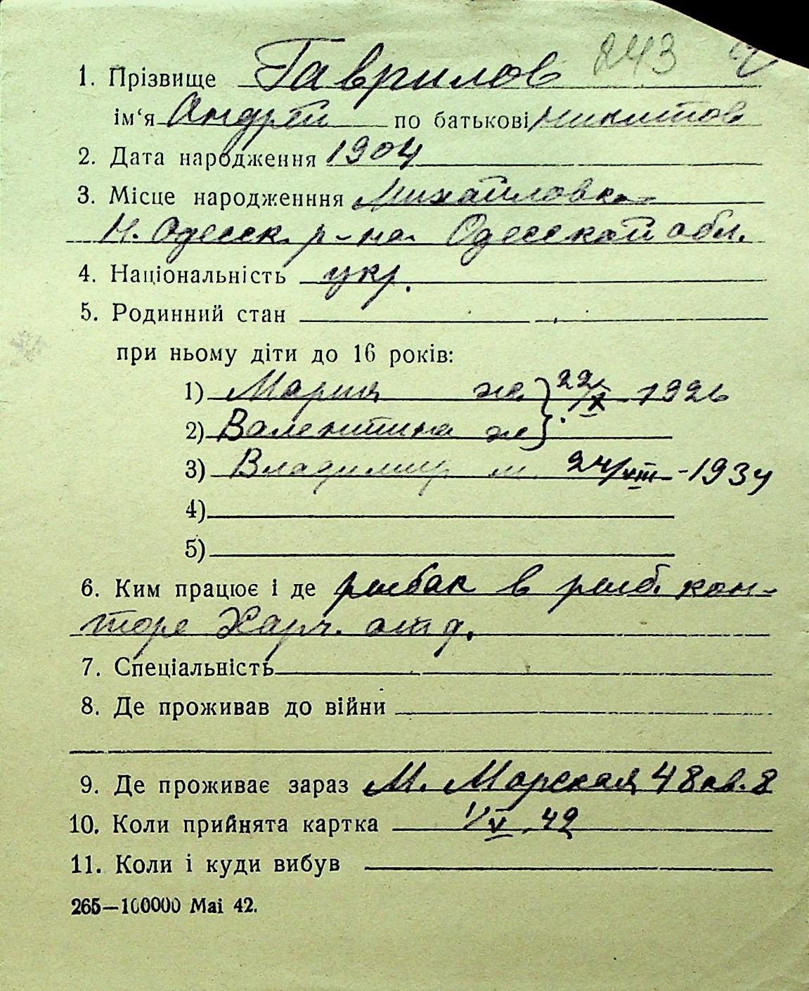 • • Перелік карток до фонду № Н-1016