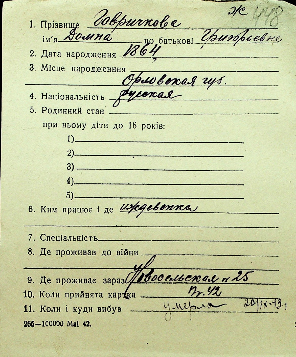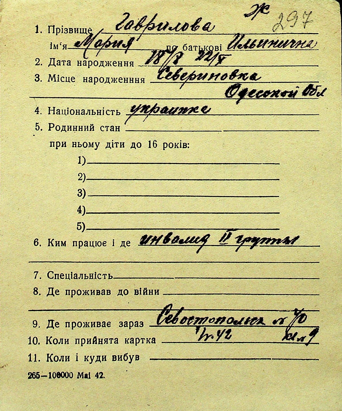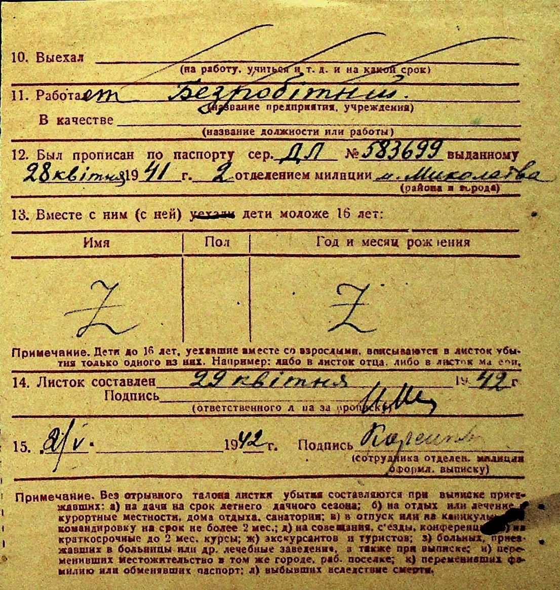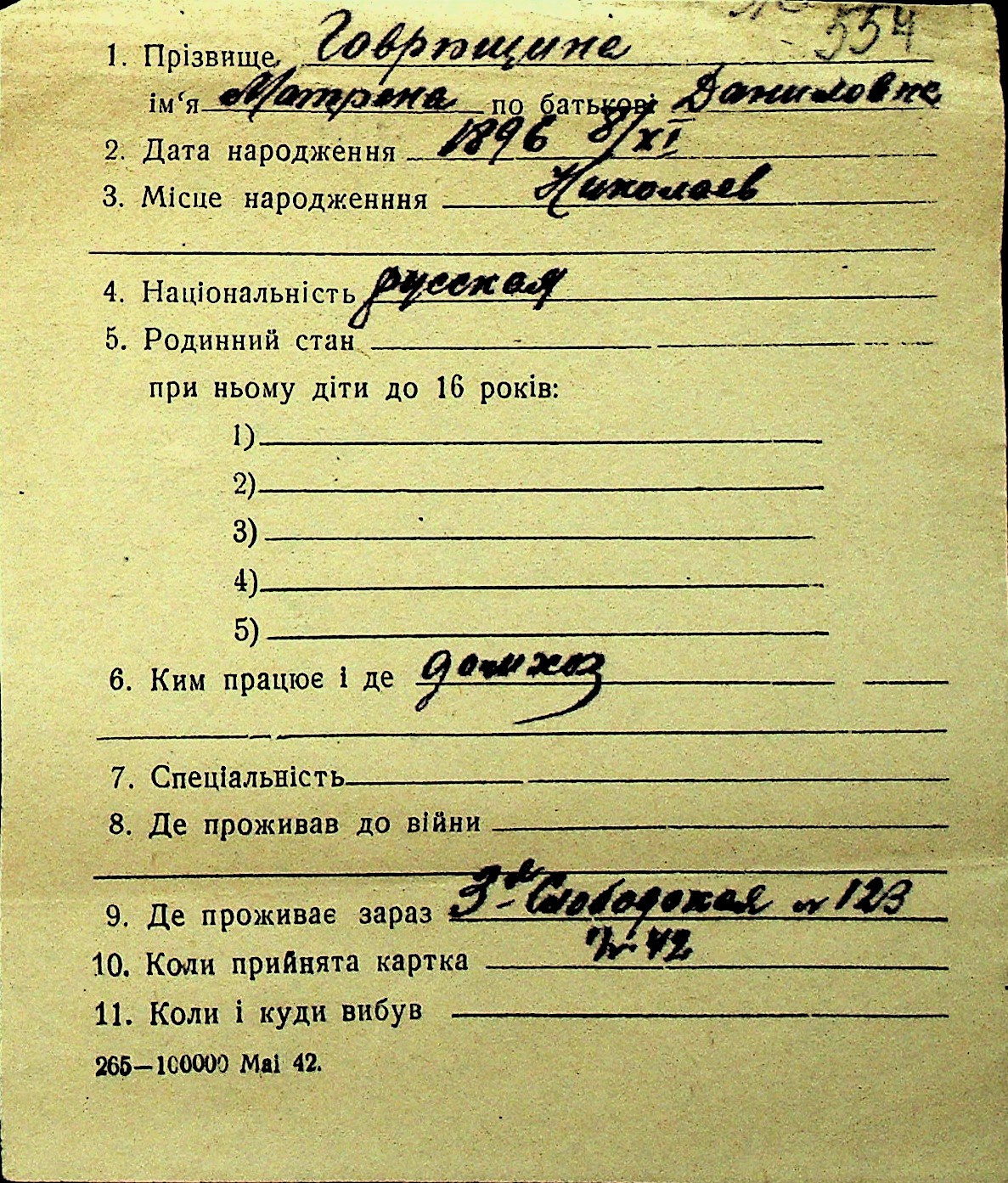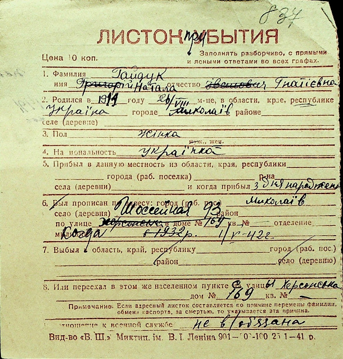 • • Перелік карток до фонду № Н-1016