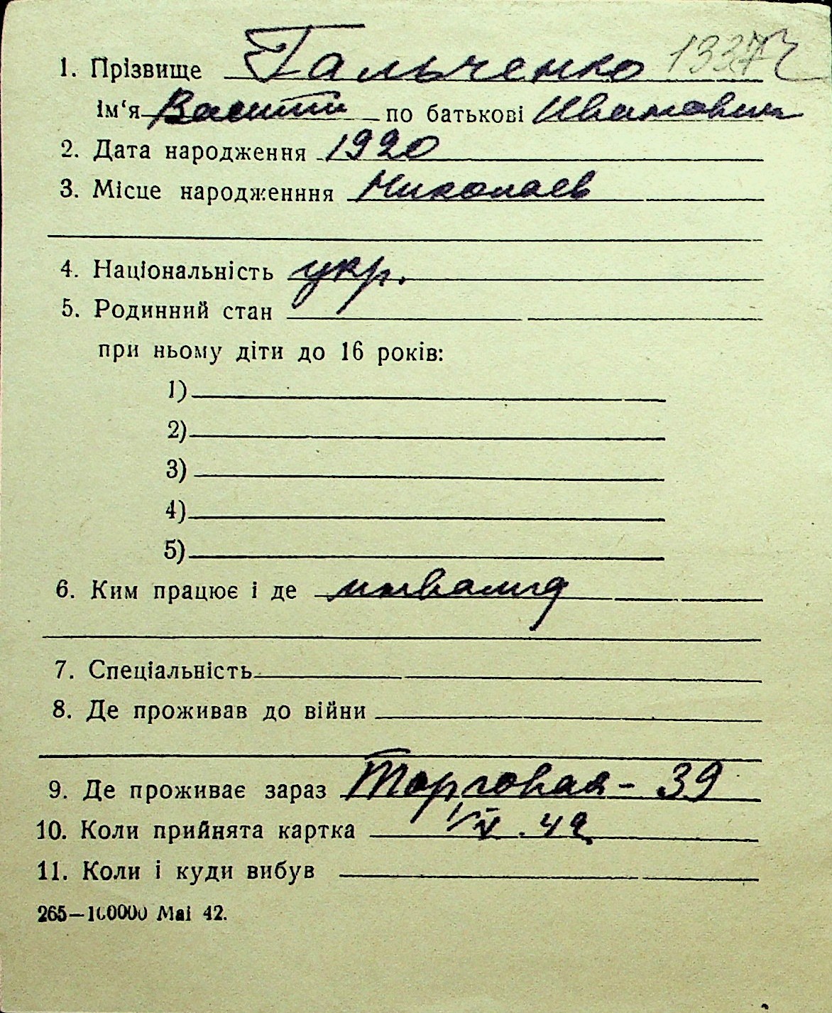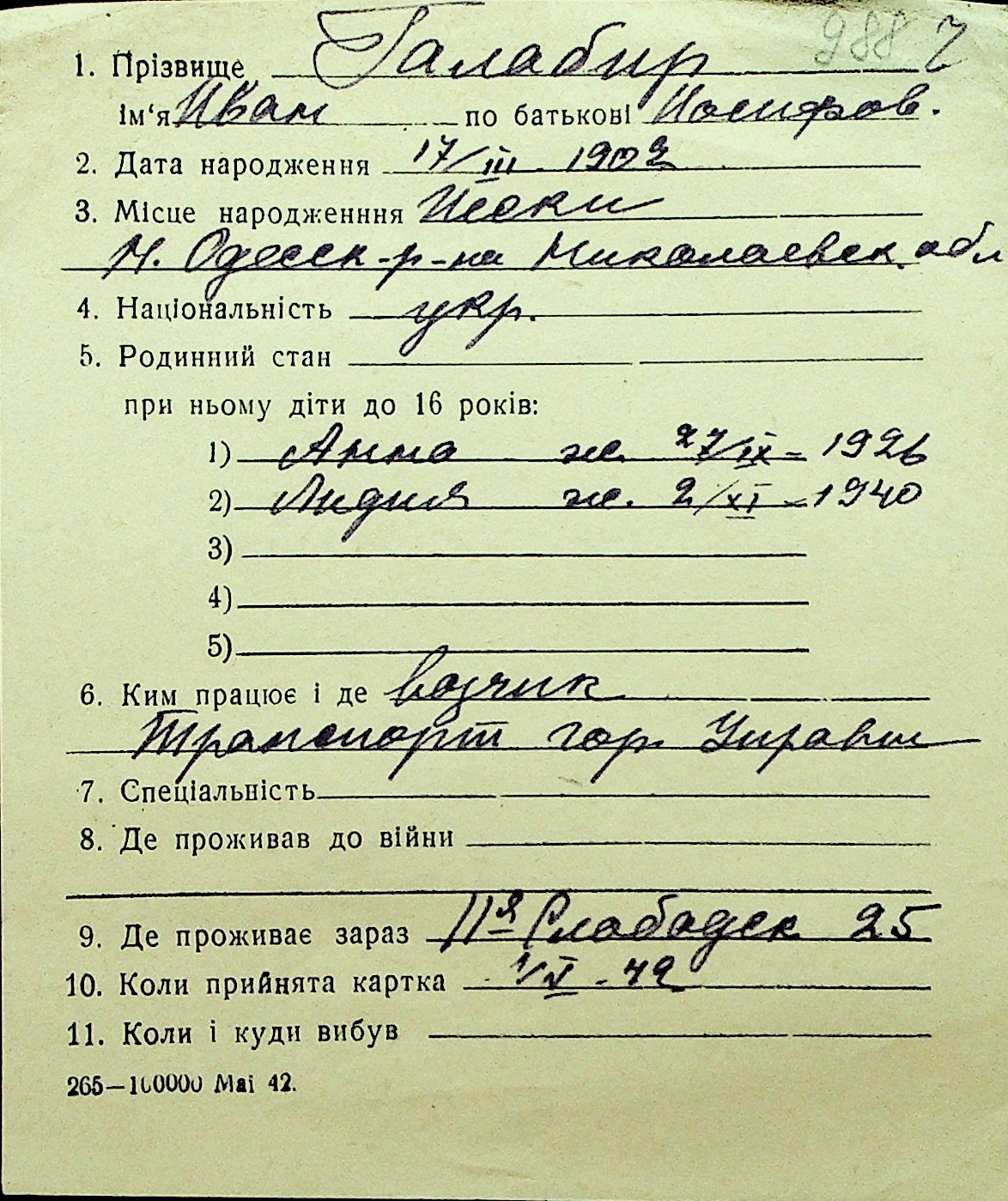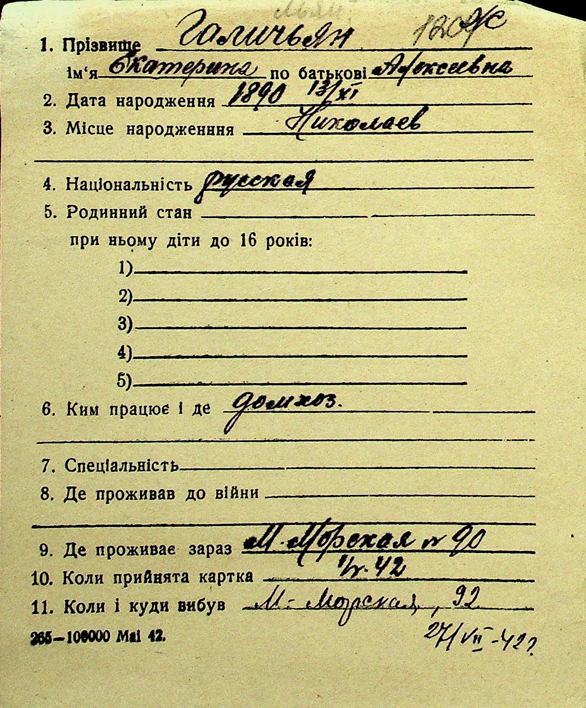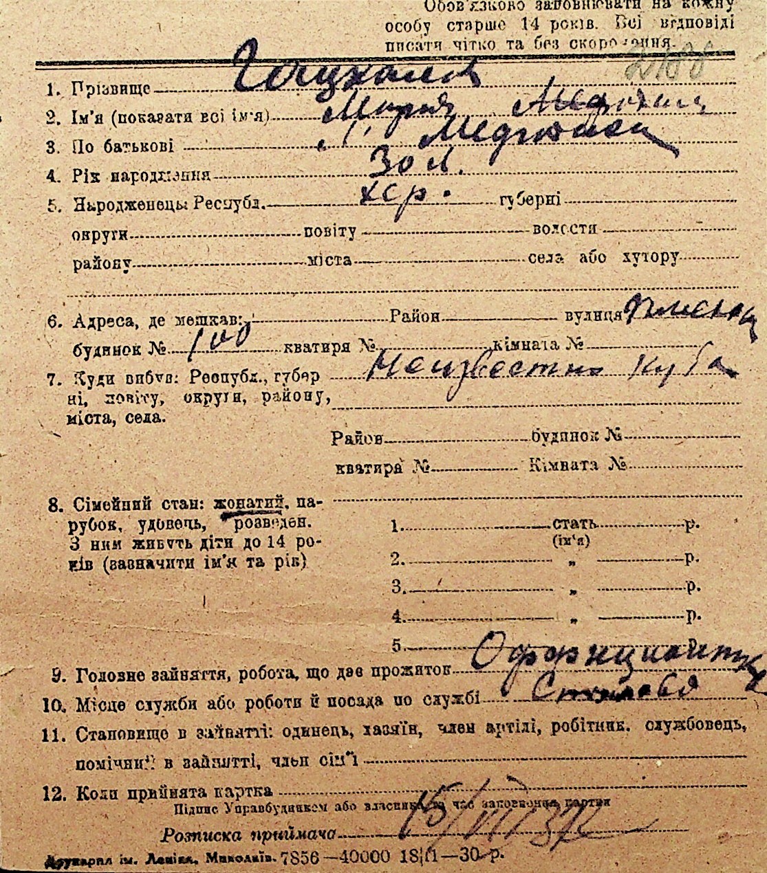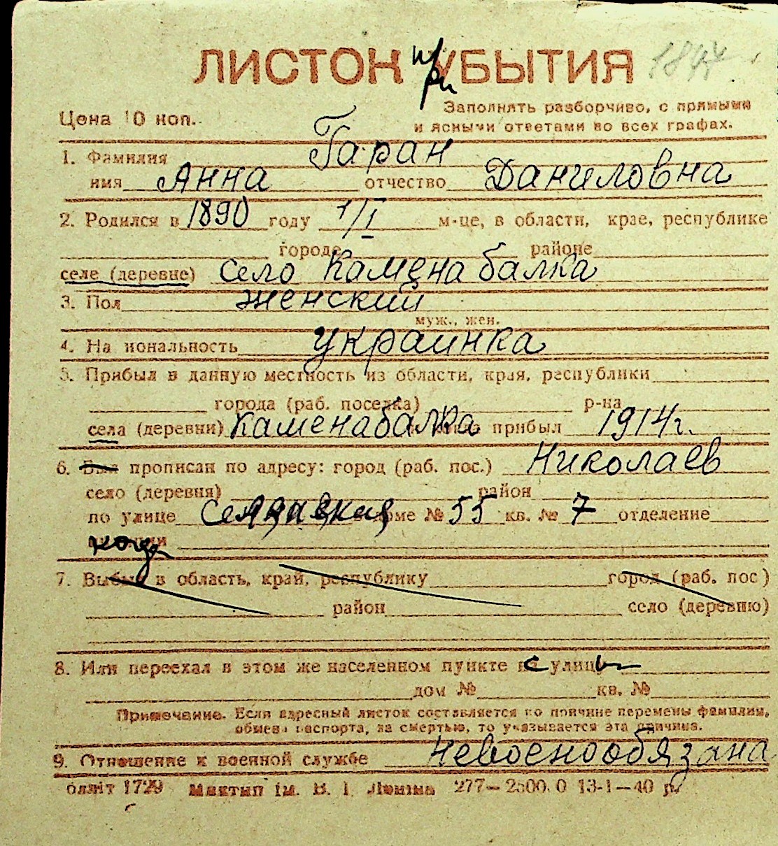 • • Перелік карток до фонду № Н-1016
