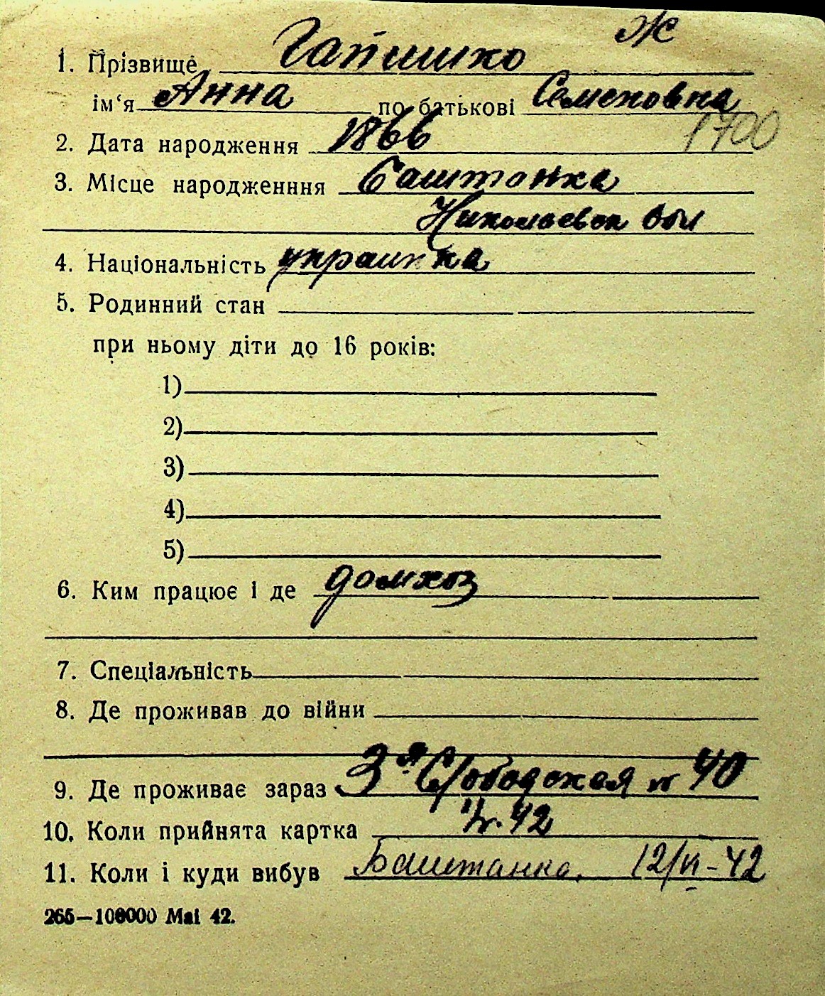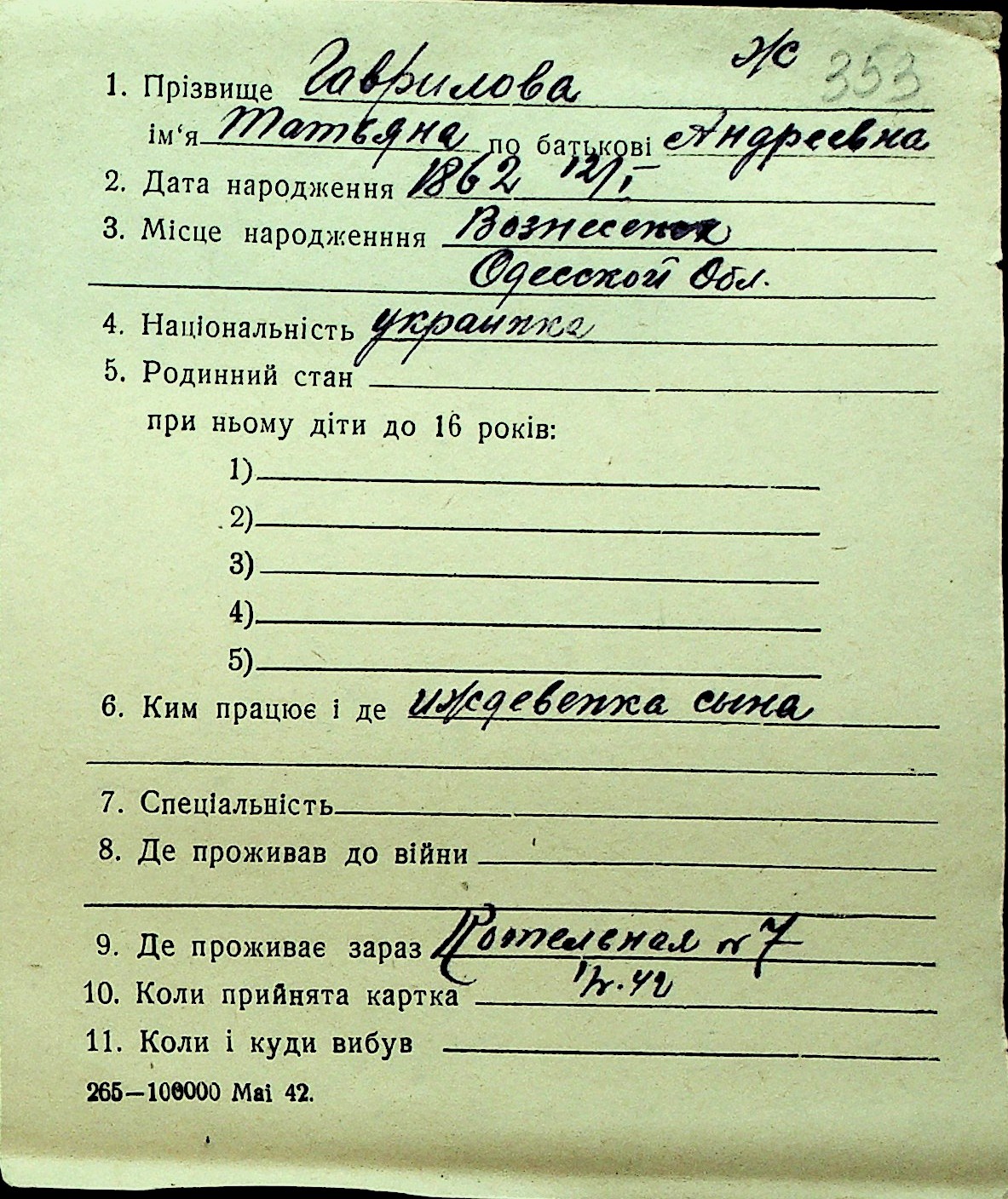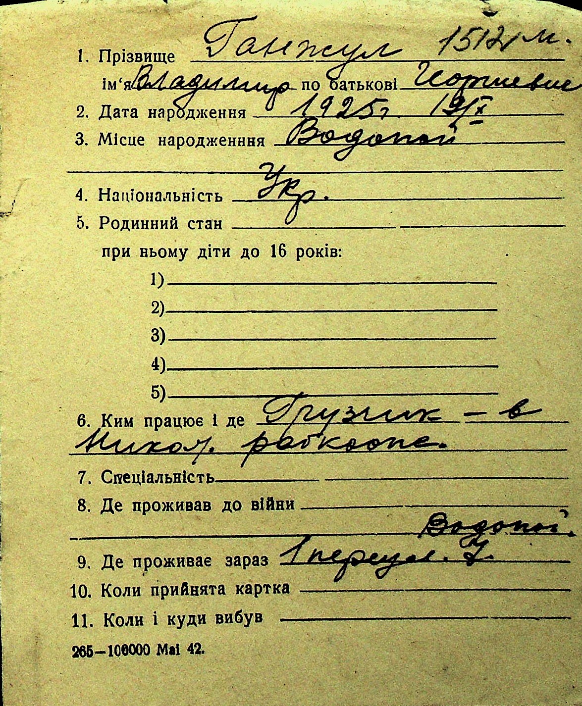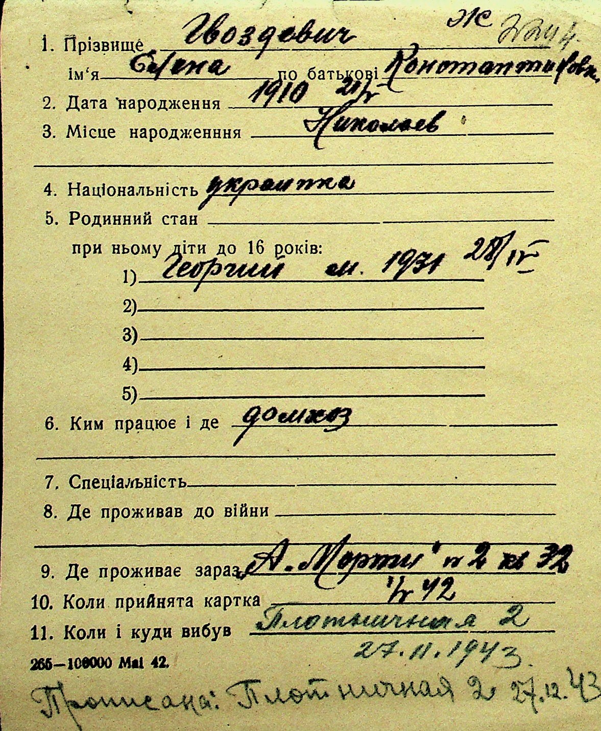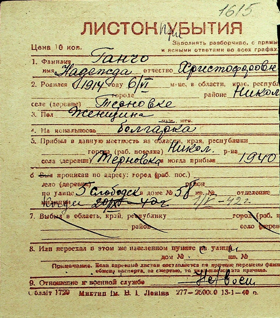 • • Перелік карток до фонду № Н-1016