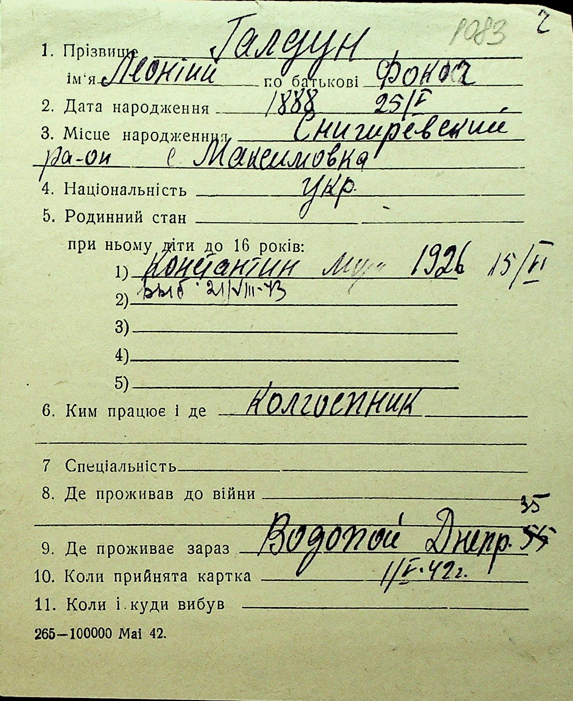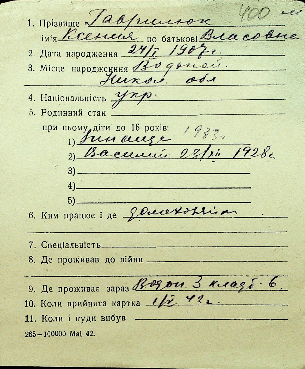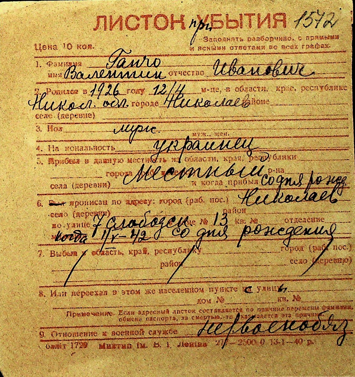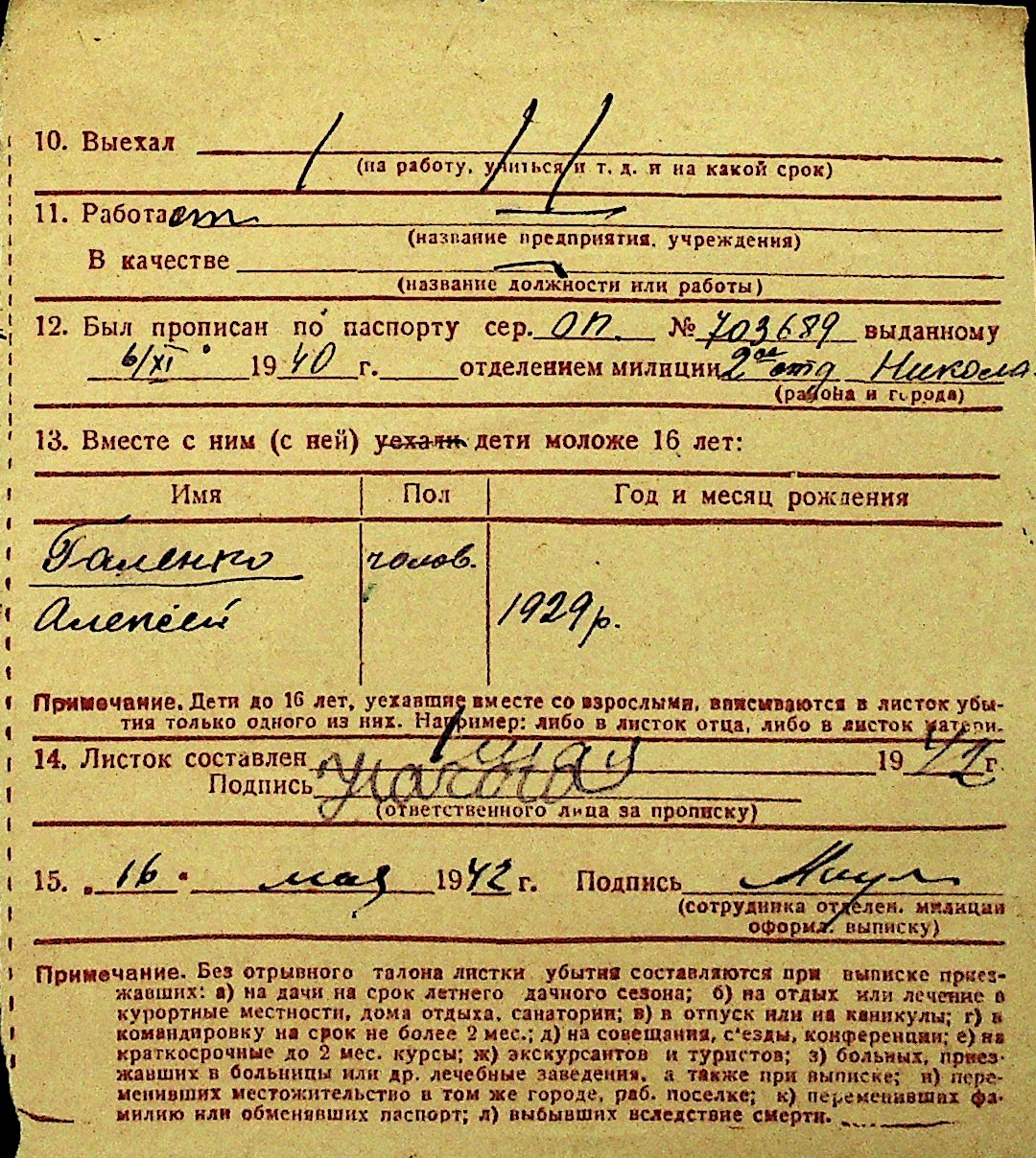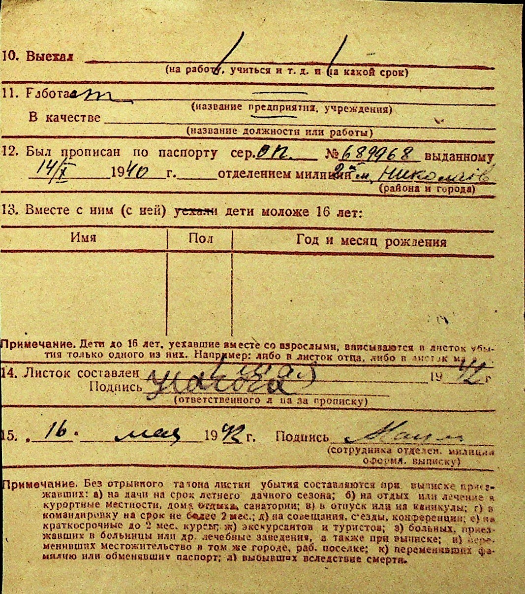 • • Перелік карток до фонду № Н-1016