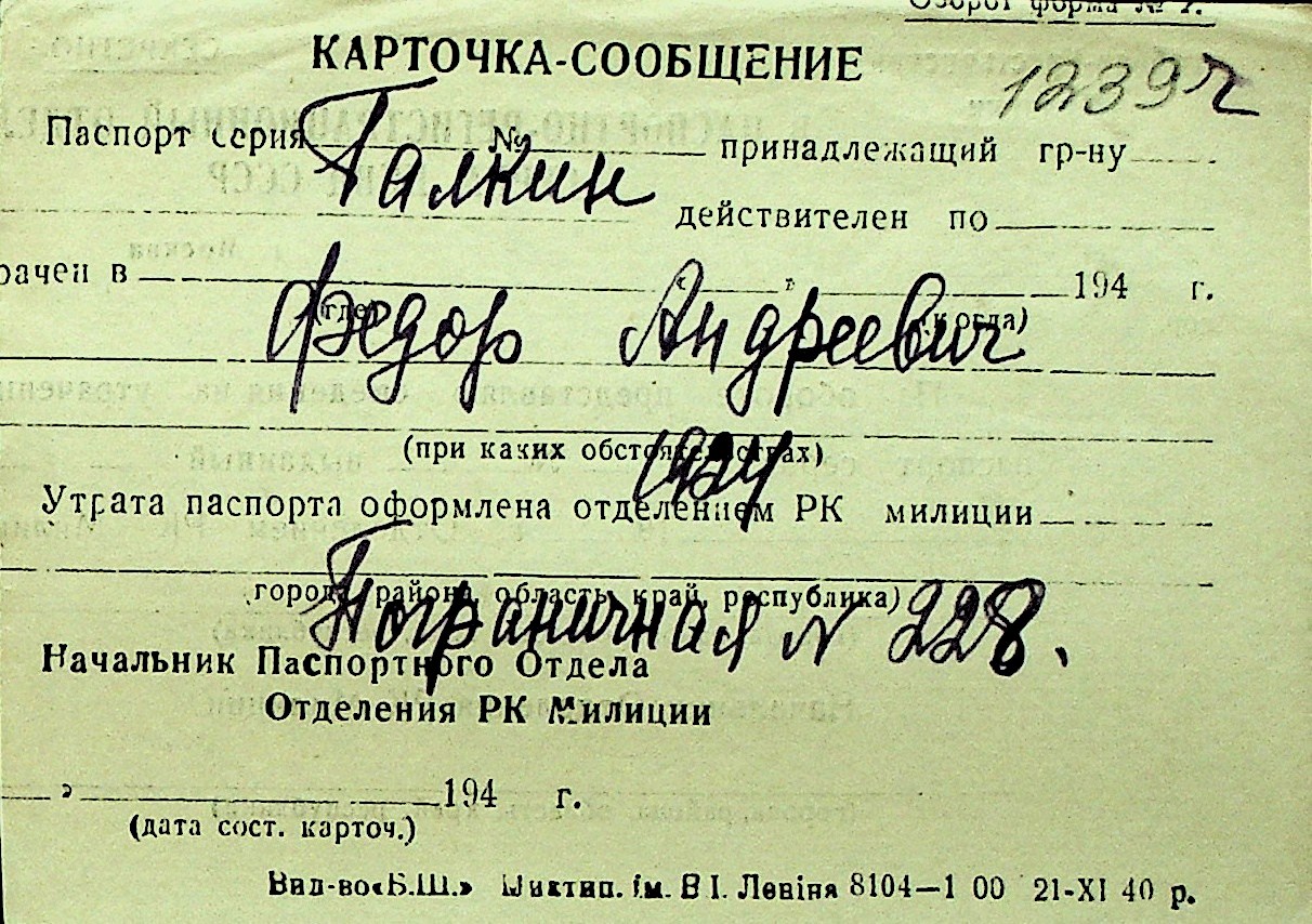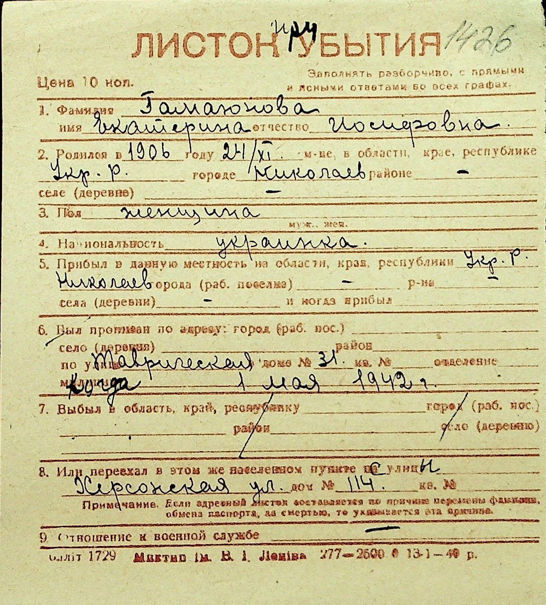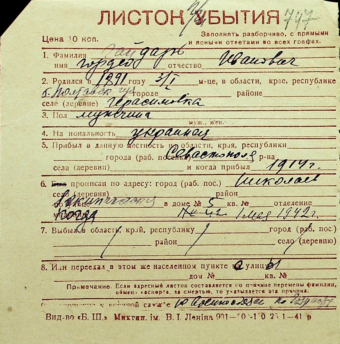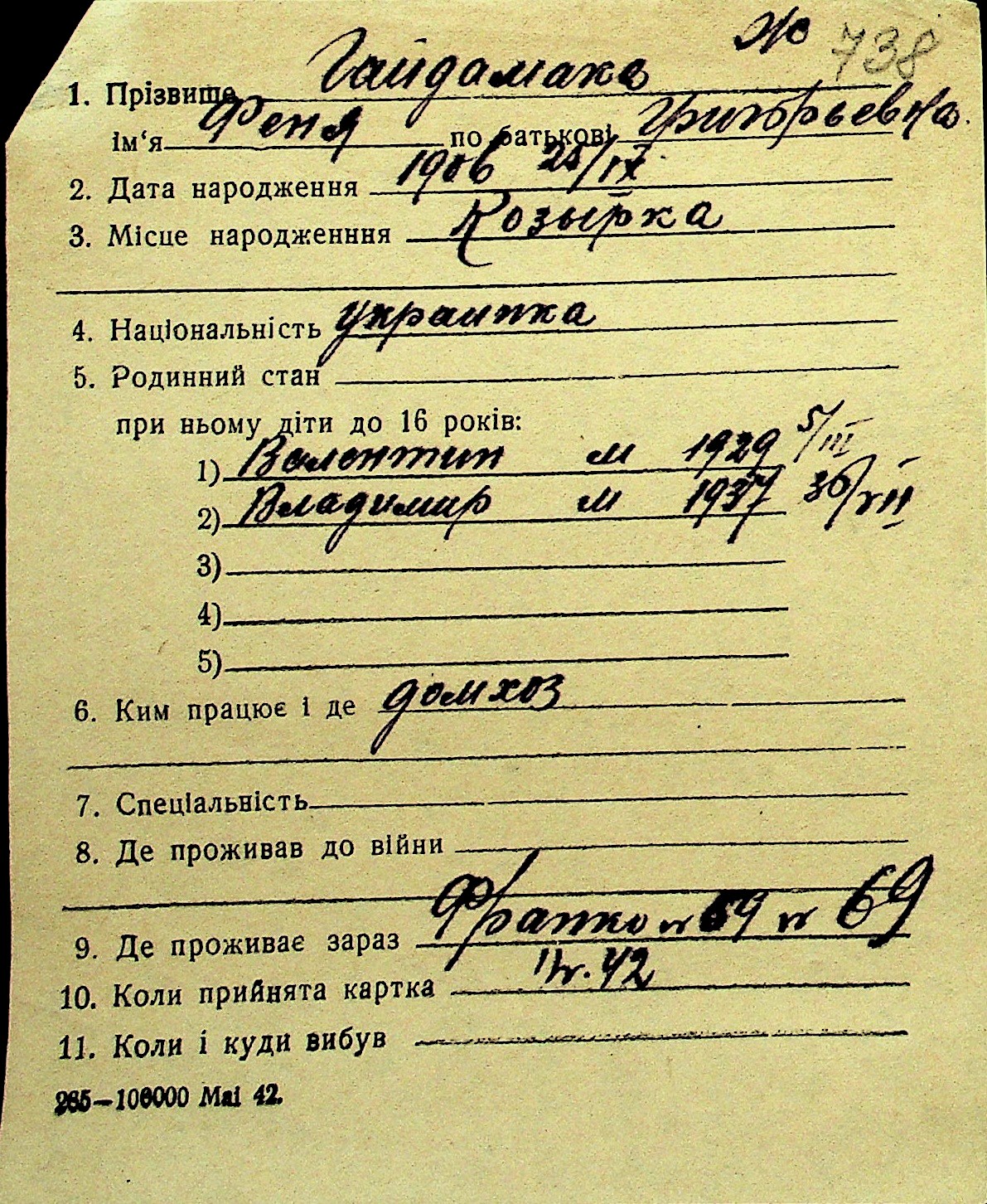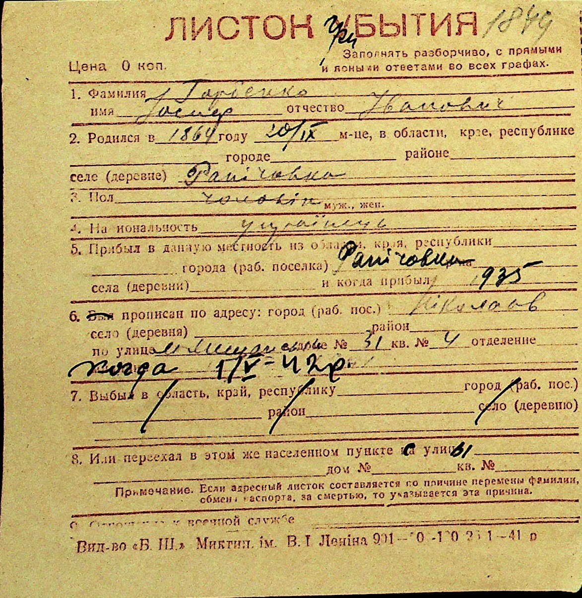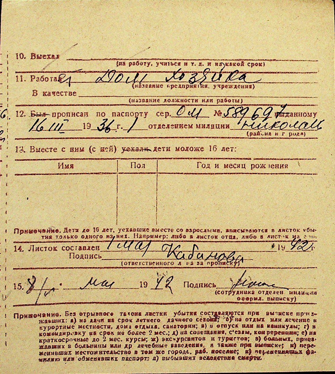 • • Перелік карток до фонду № Н-1016