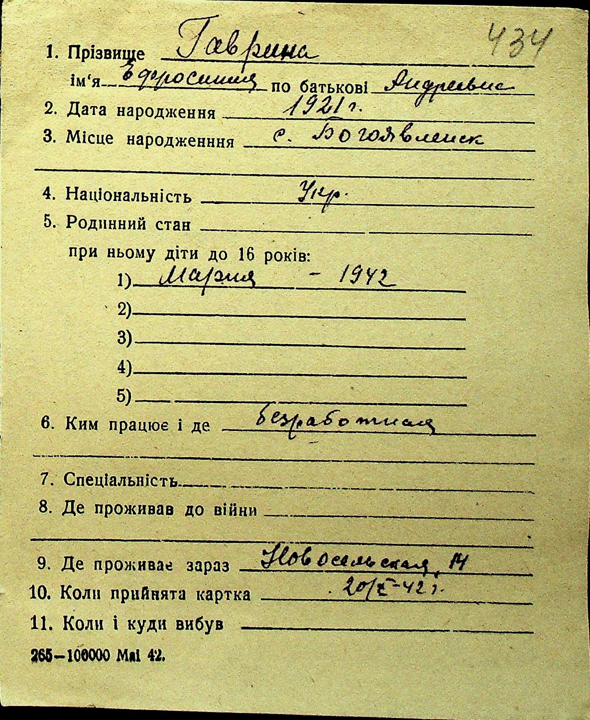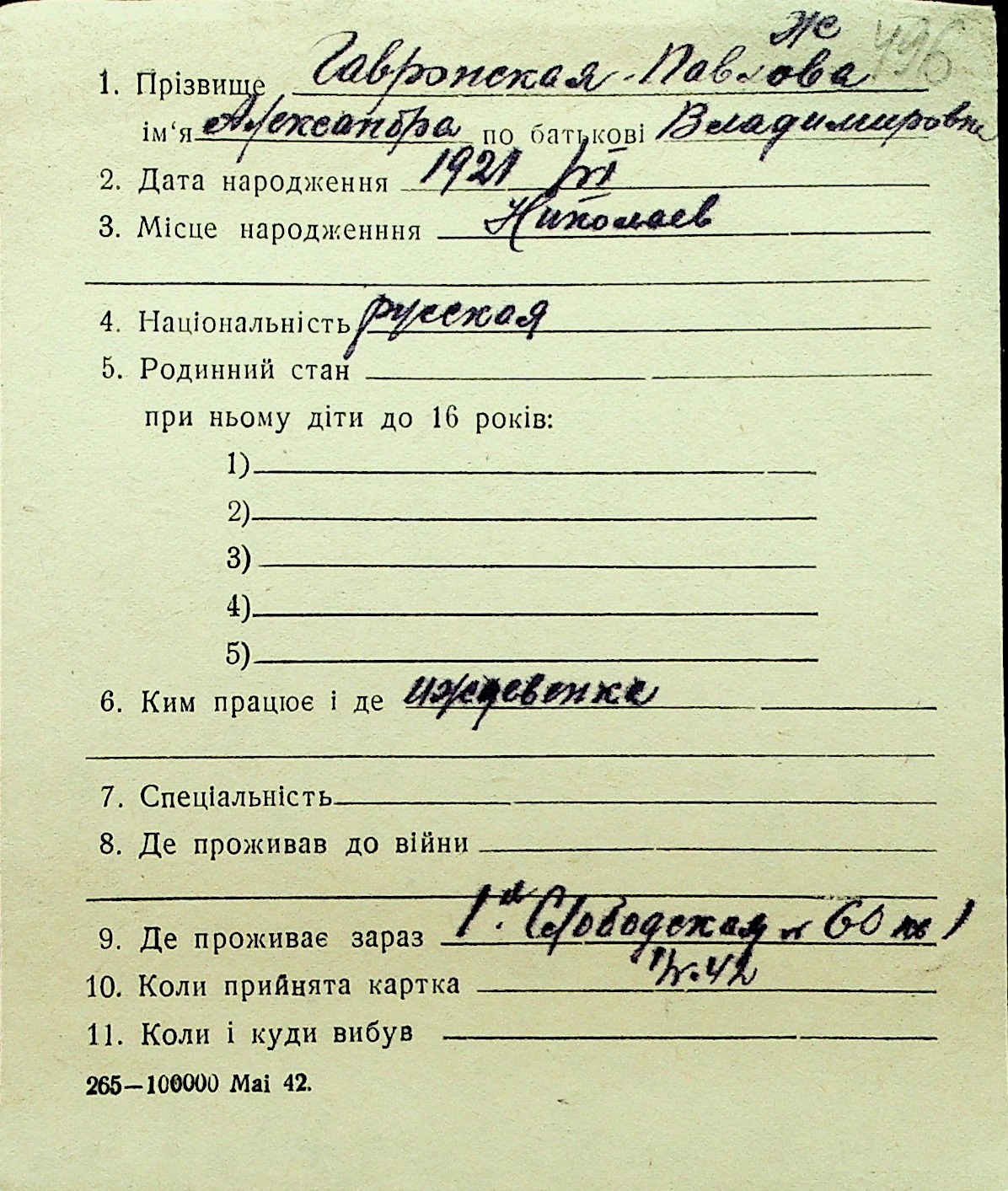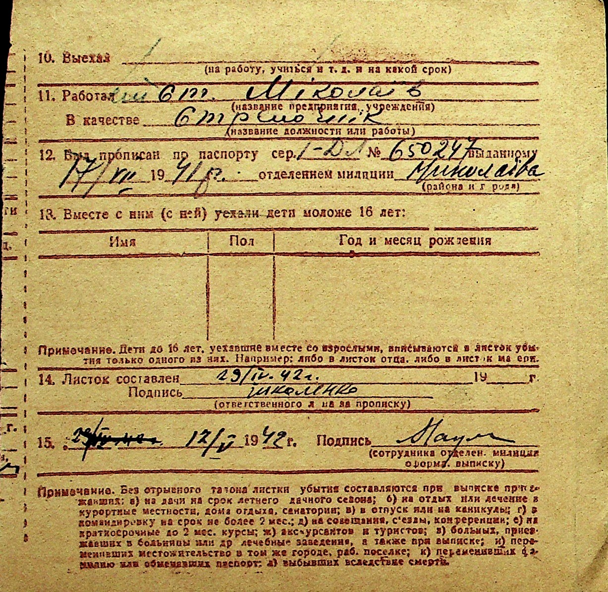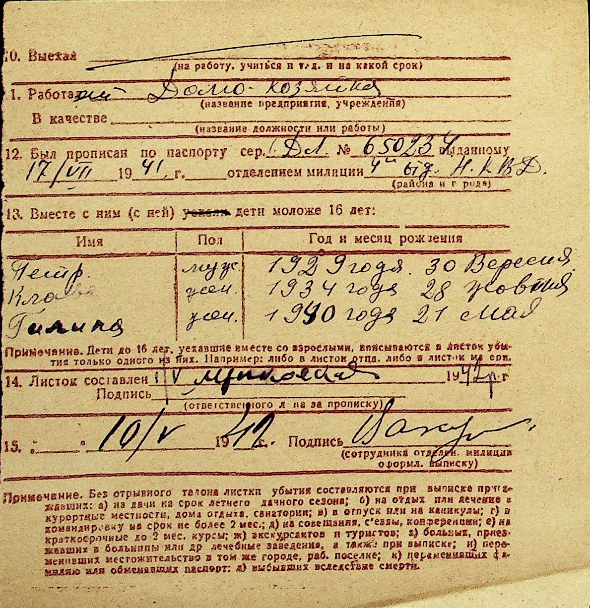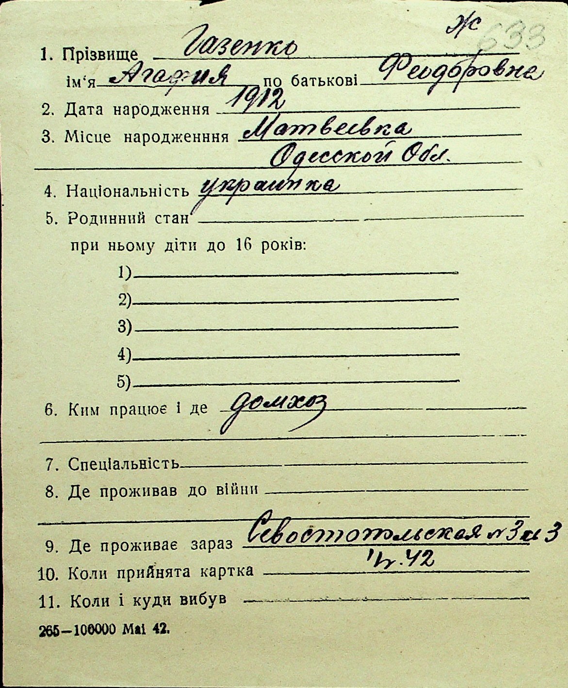 • • Перелік карток до фонду № Н-1016