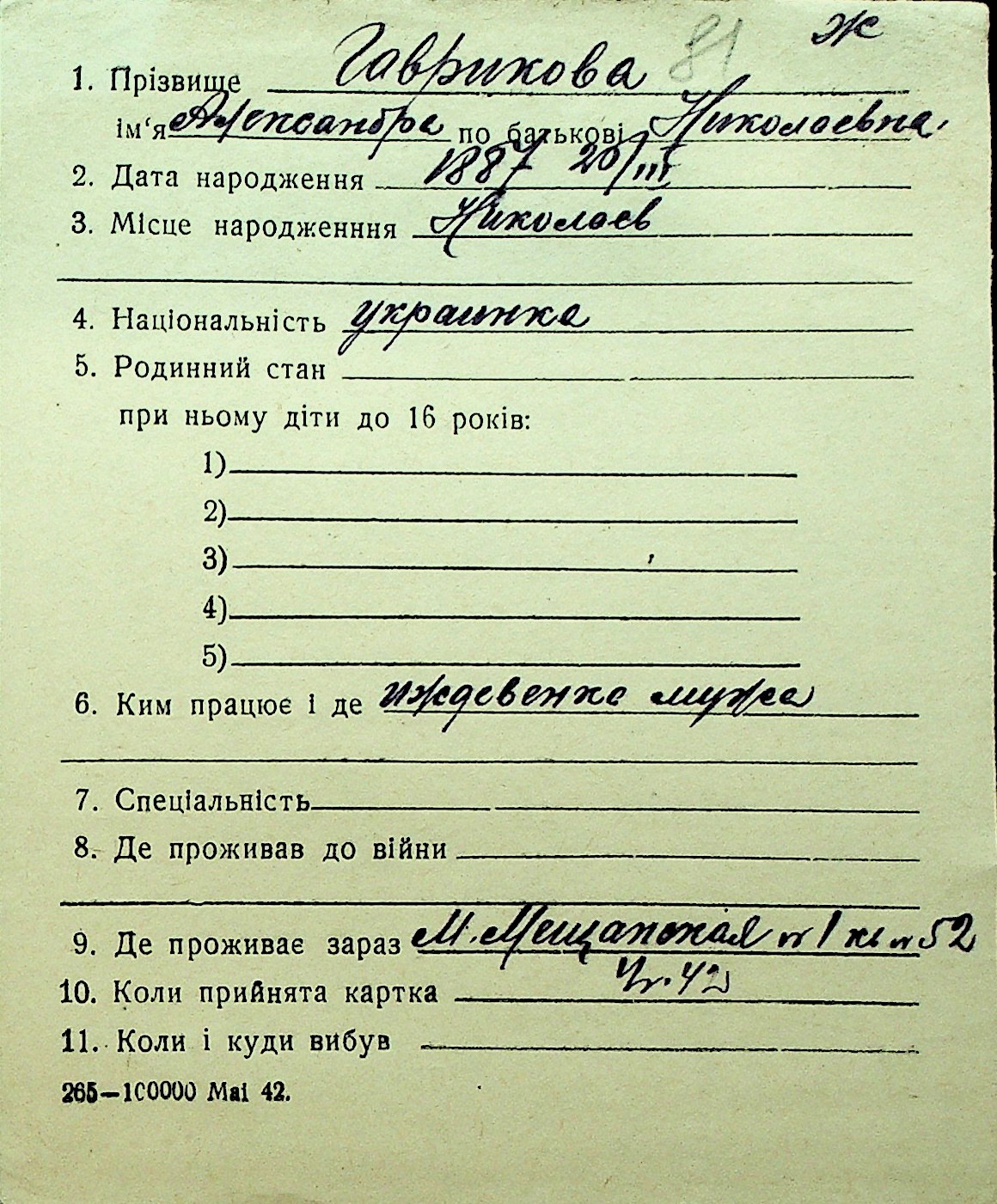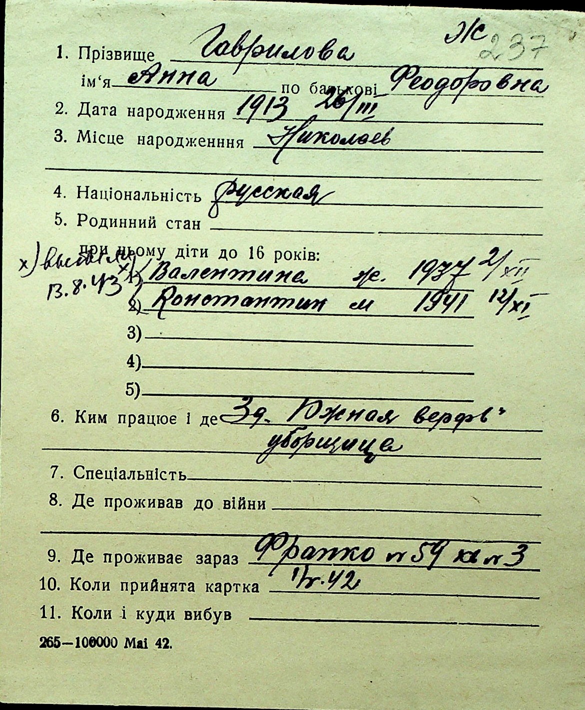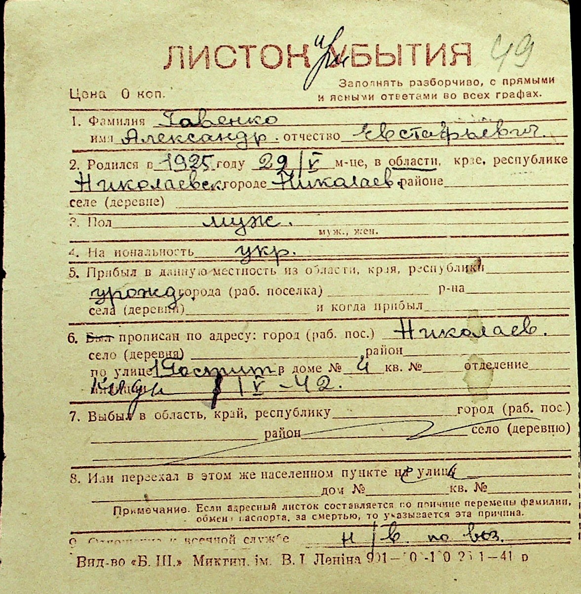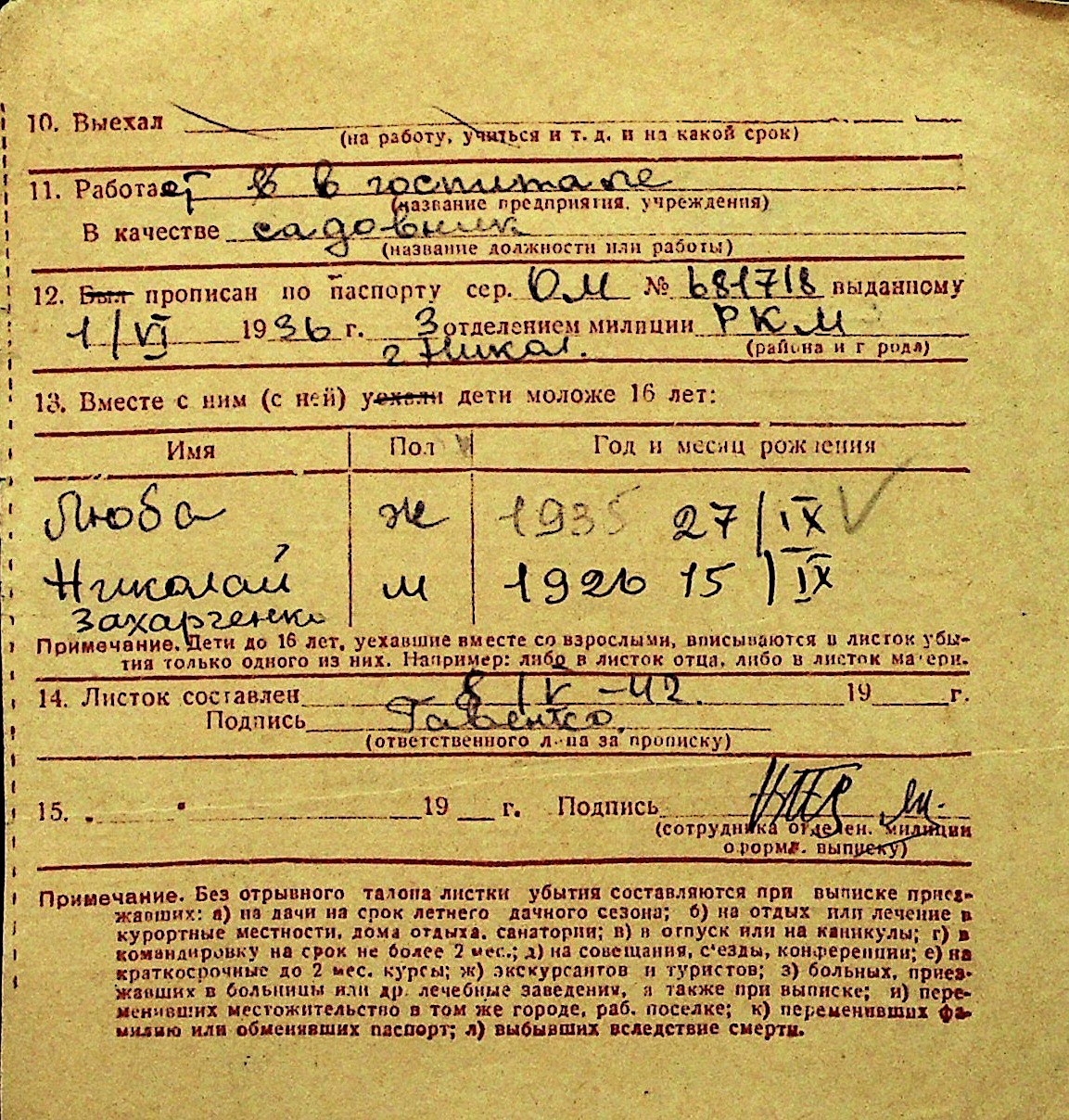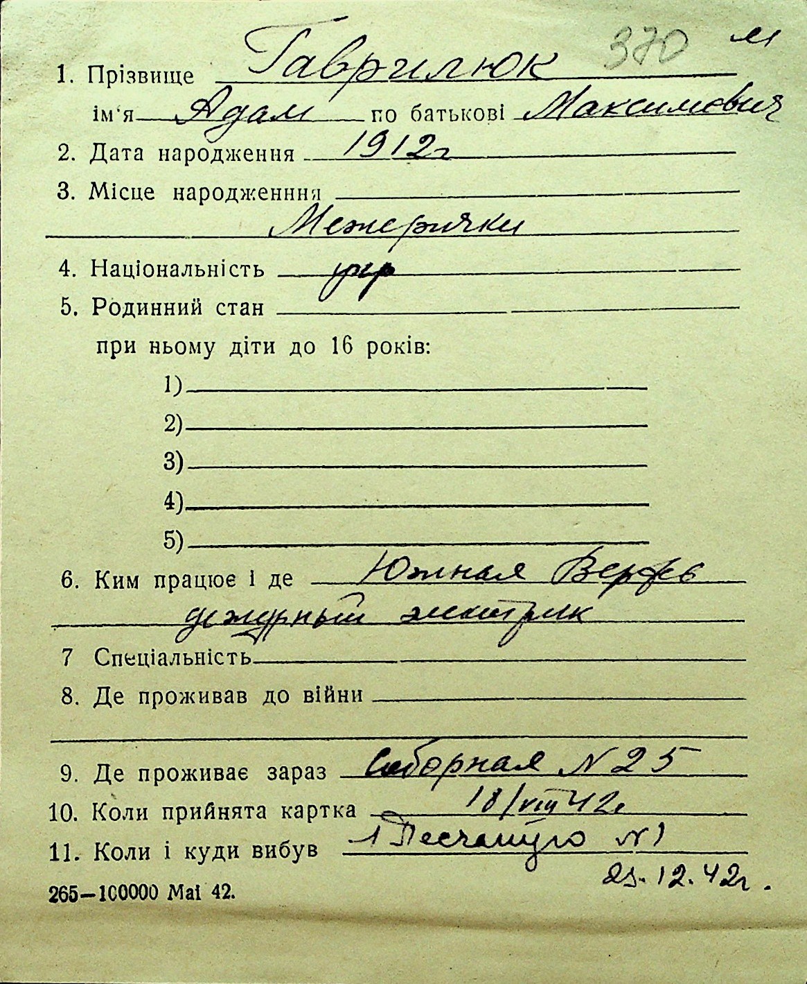 • • Перелік карток до фонду № Н-1016