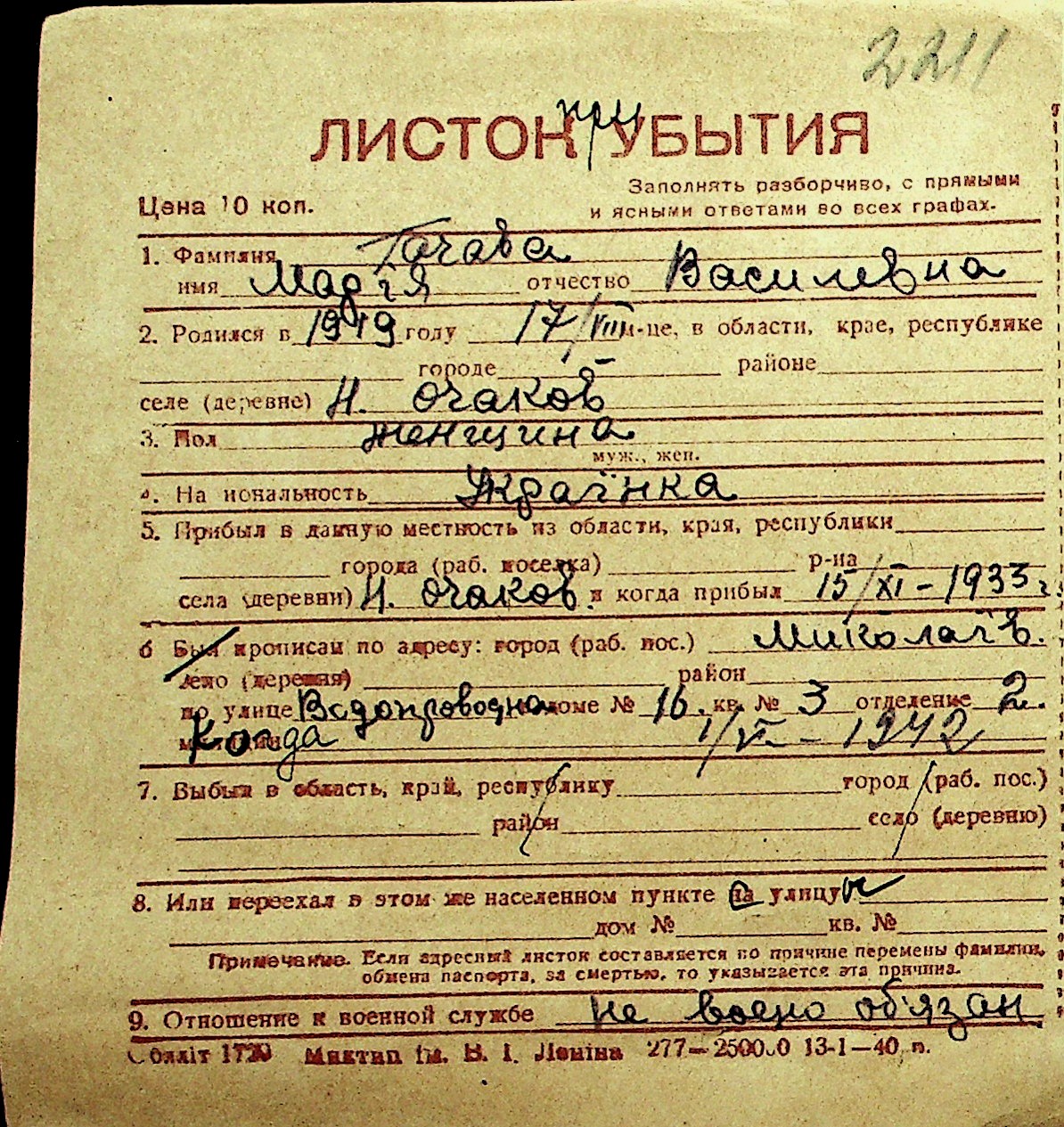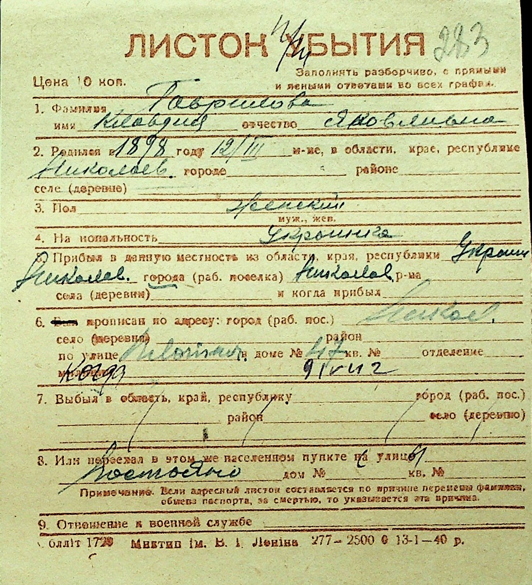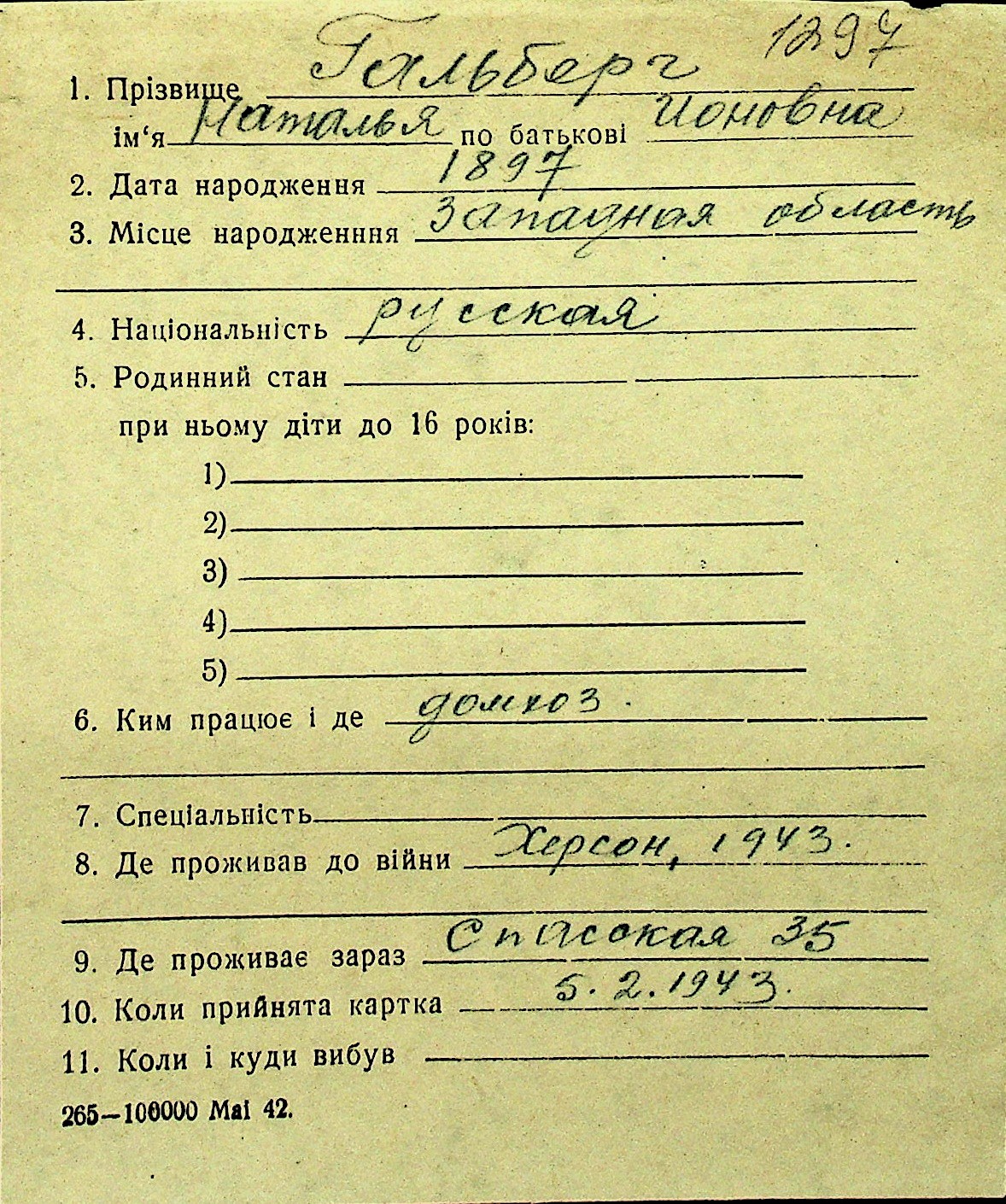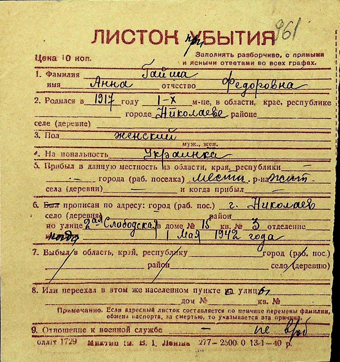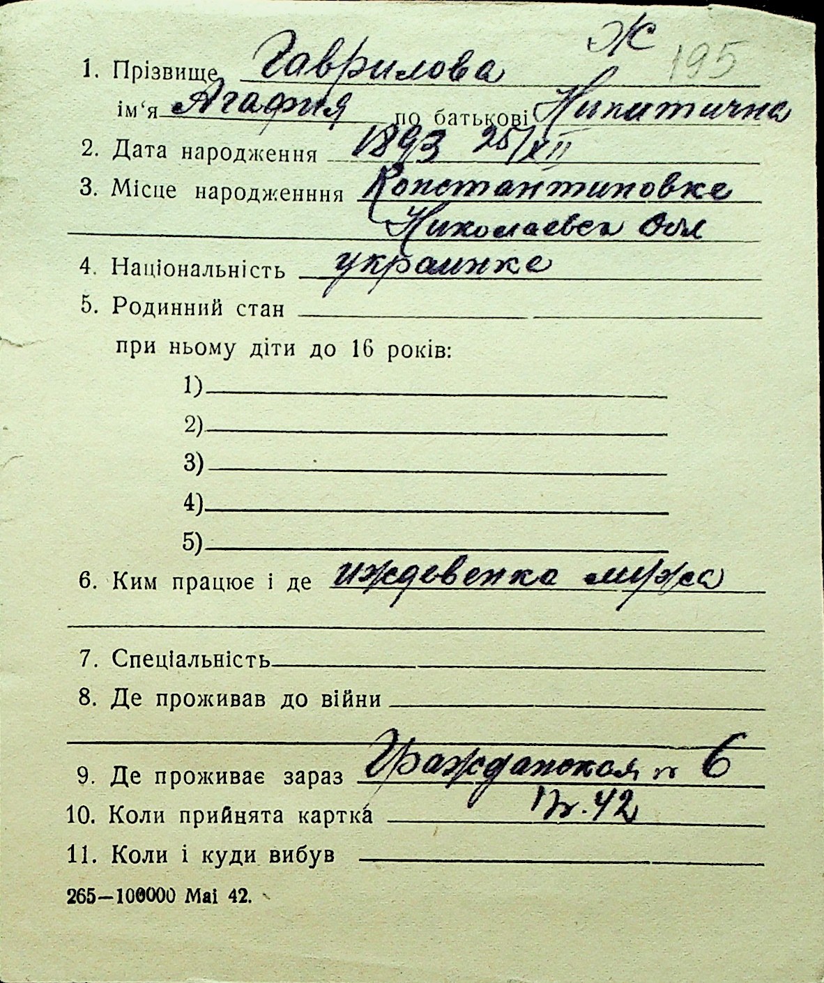 • • Перелік карток до фонду № Н-1016