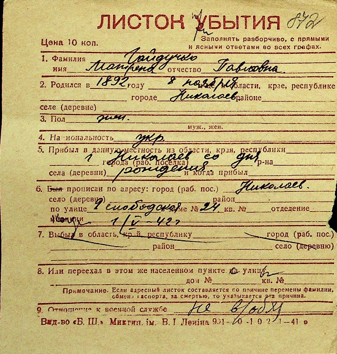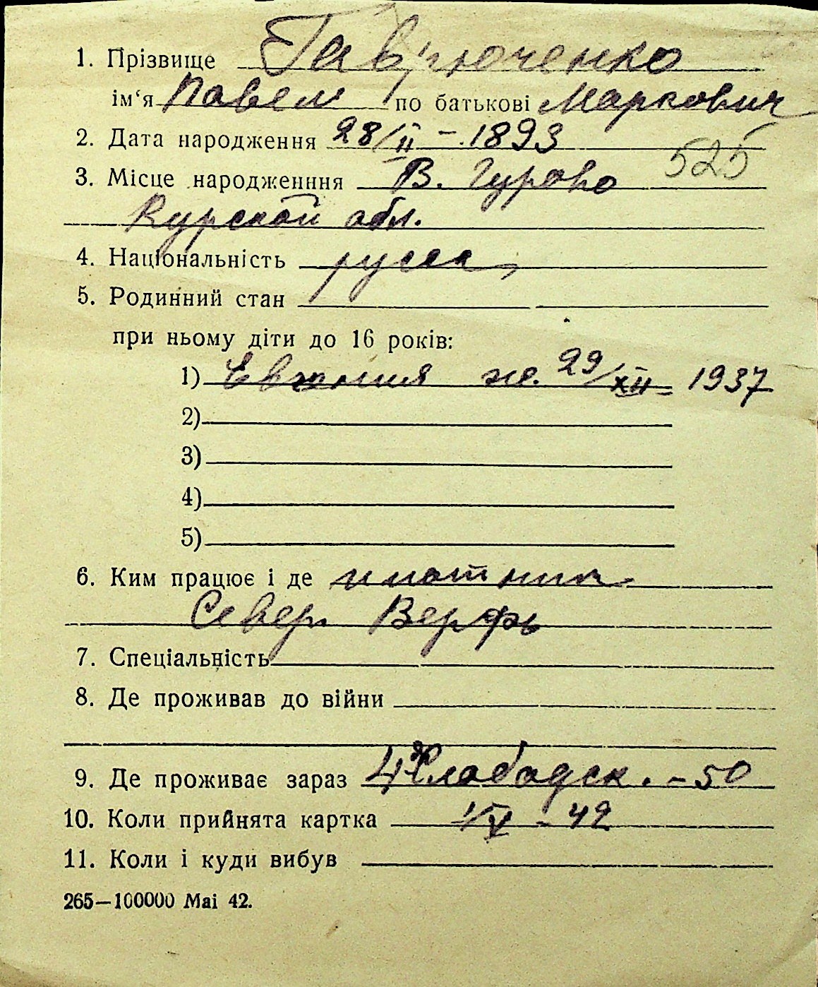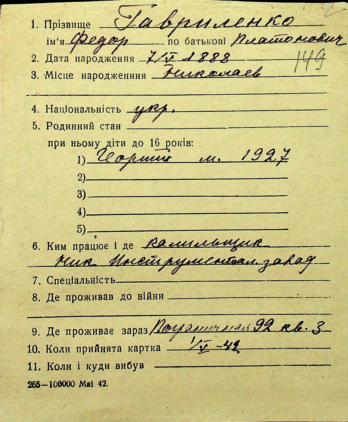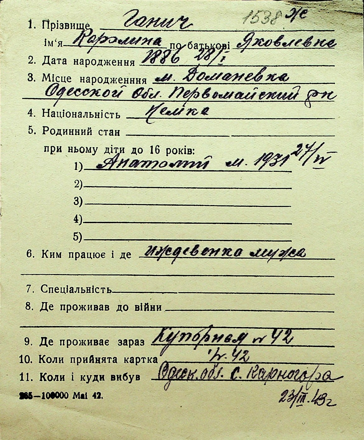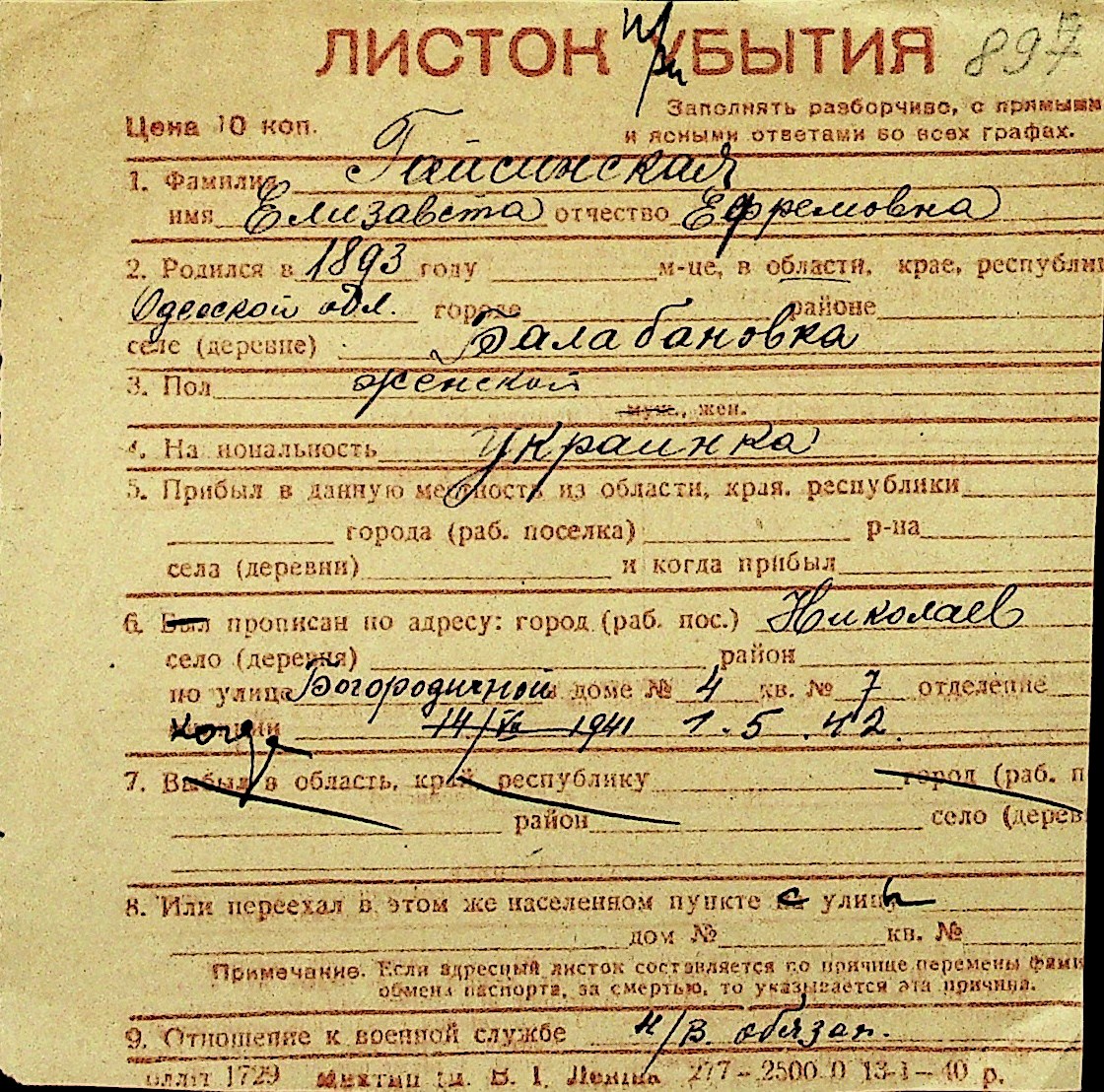 • • Перелік карток до фонду № Н-1016