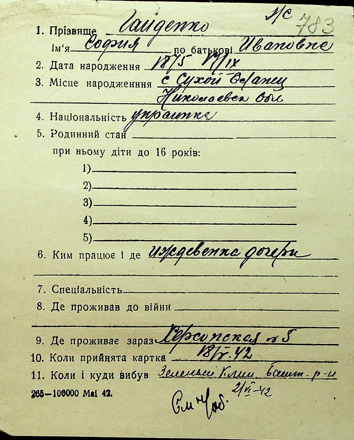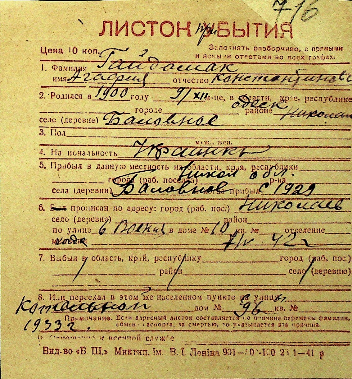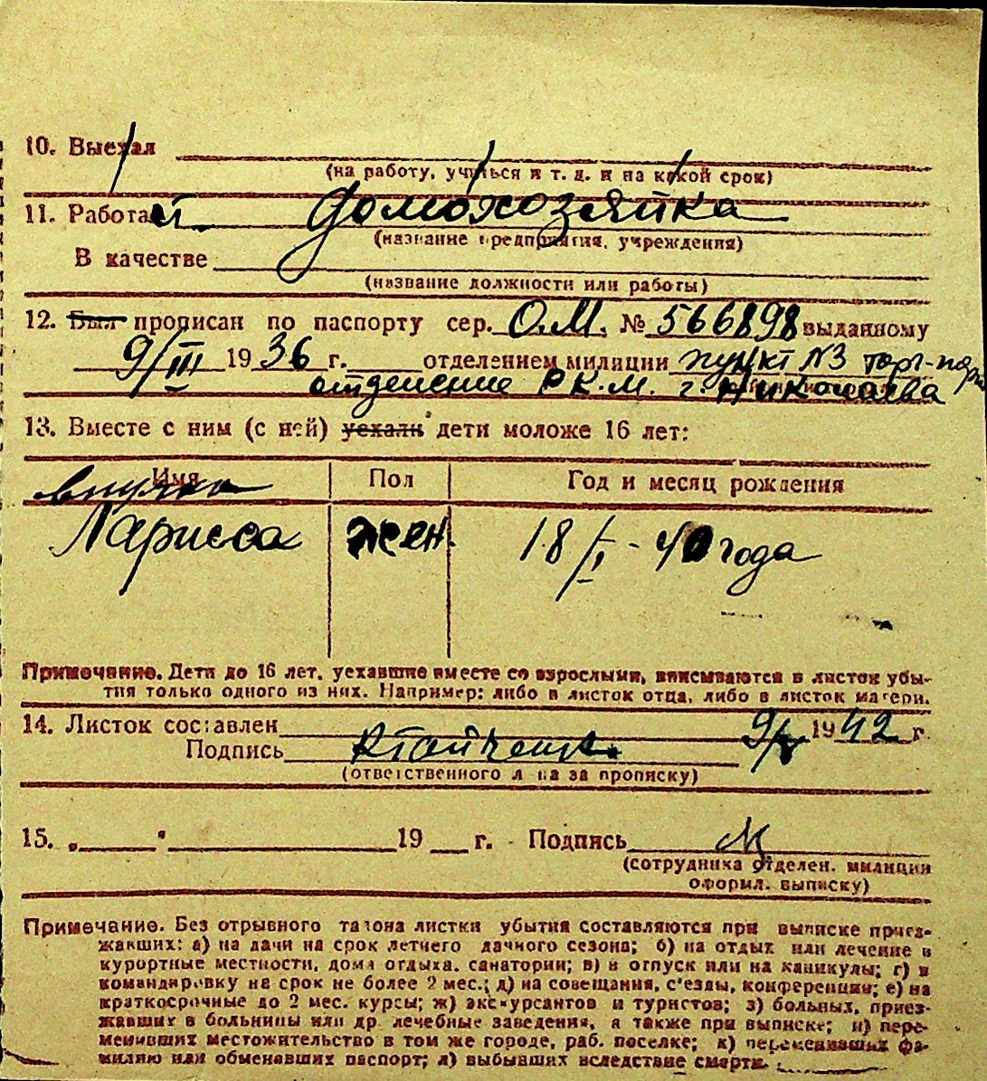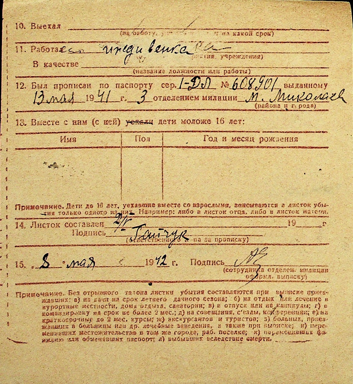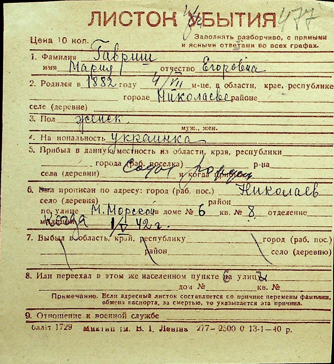 • • Перелік карток до фонду № Н-1016