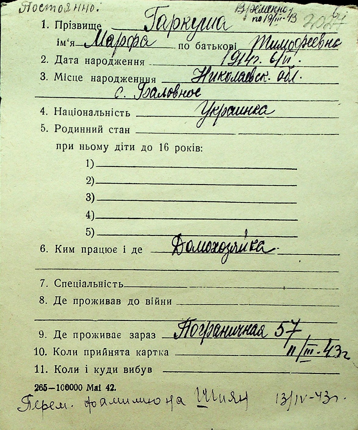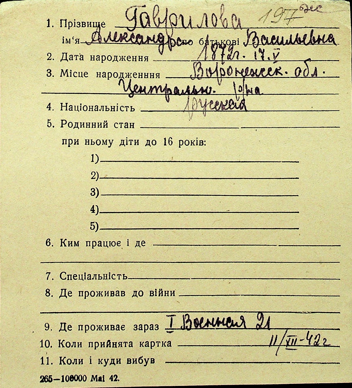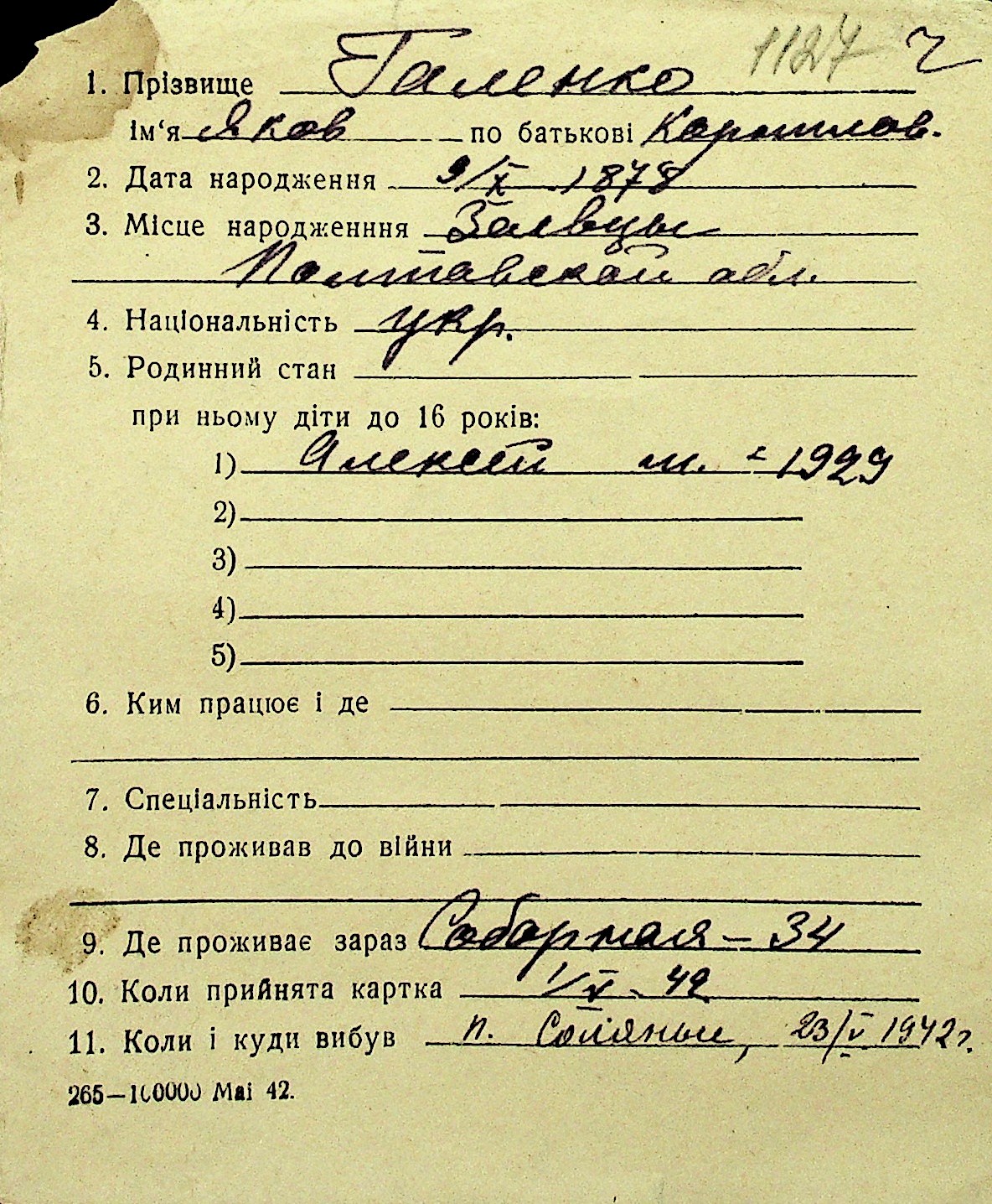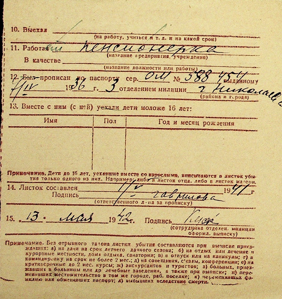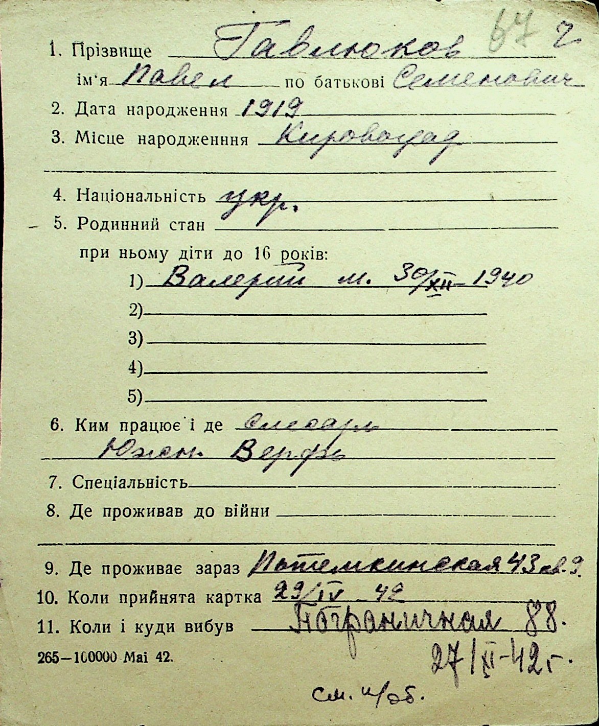 • • Перелік карток до фонду № Н-1016