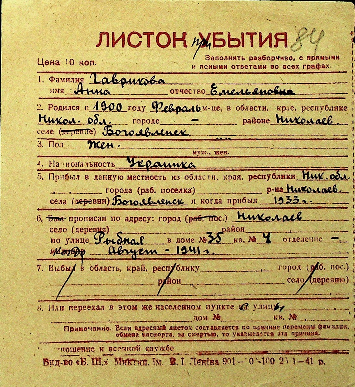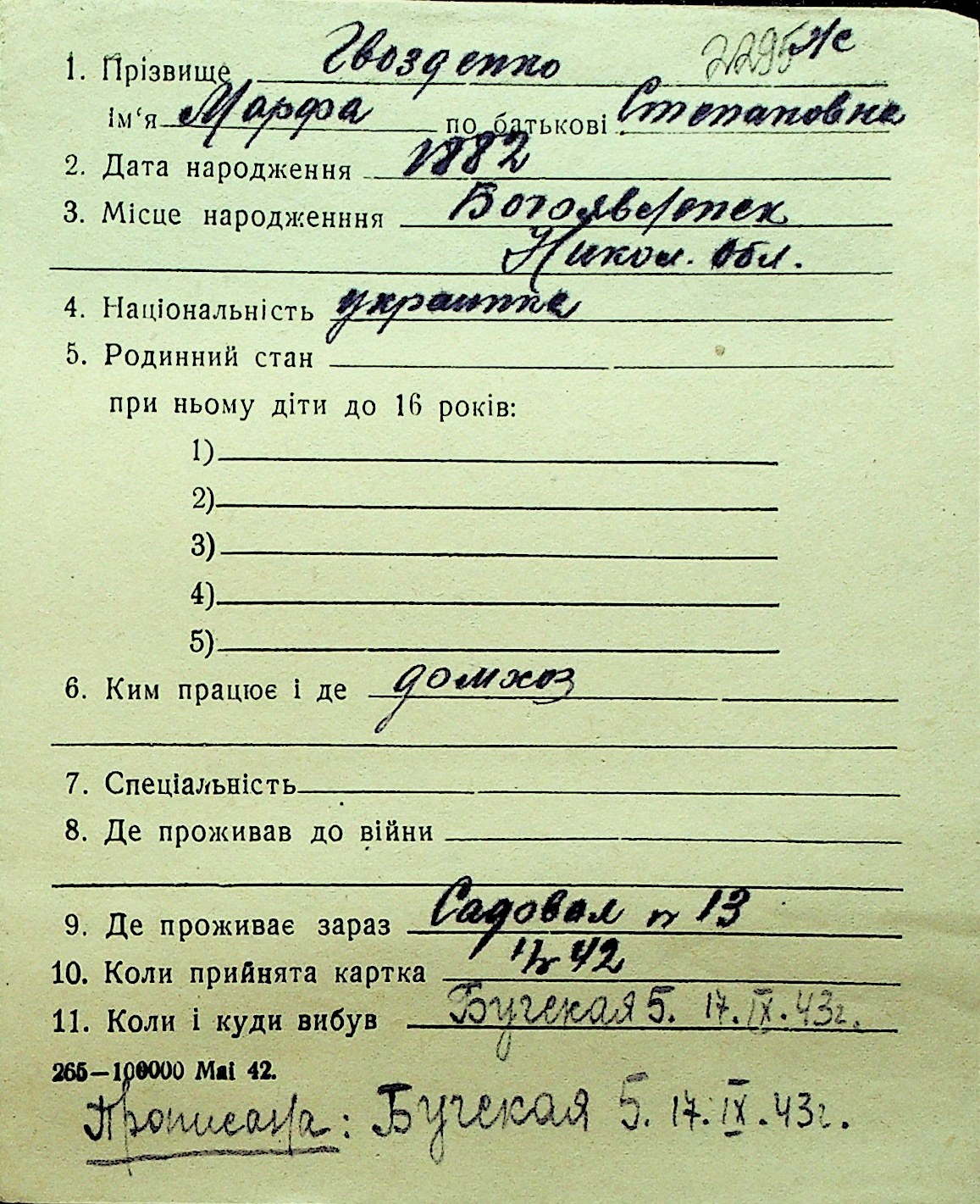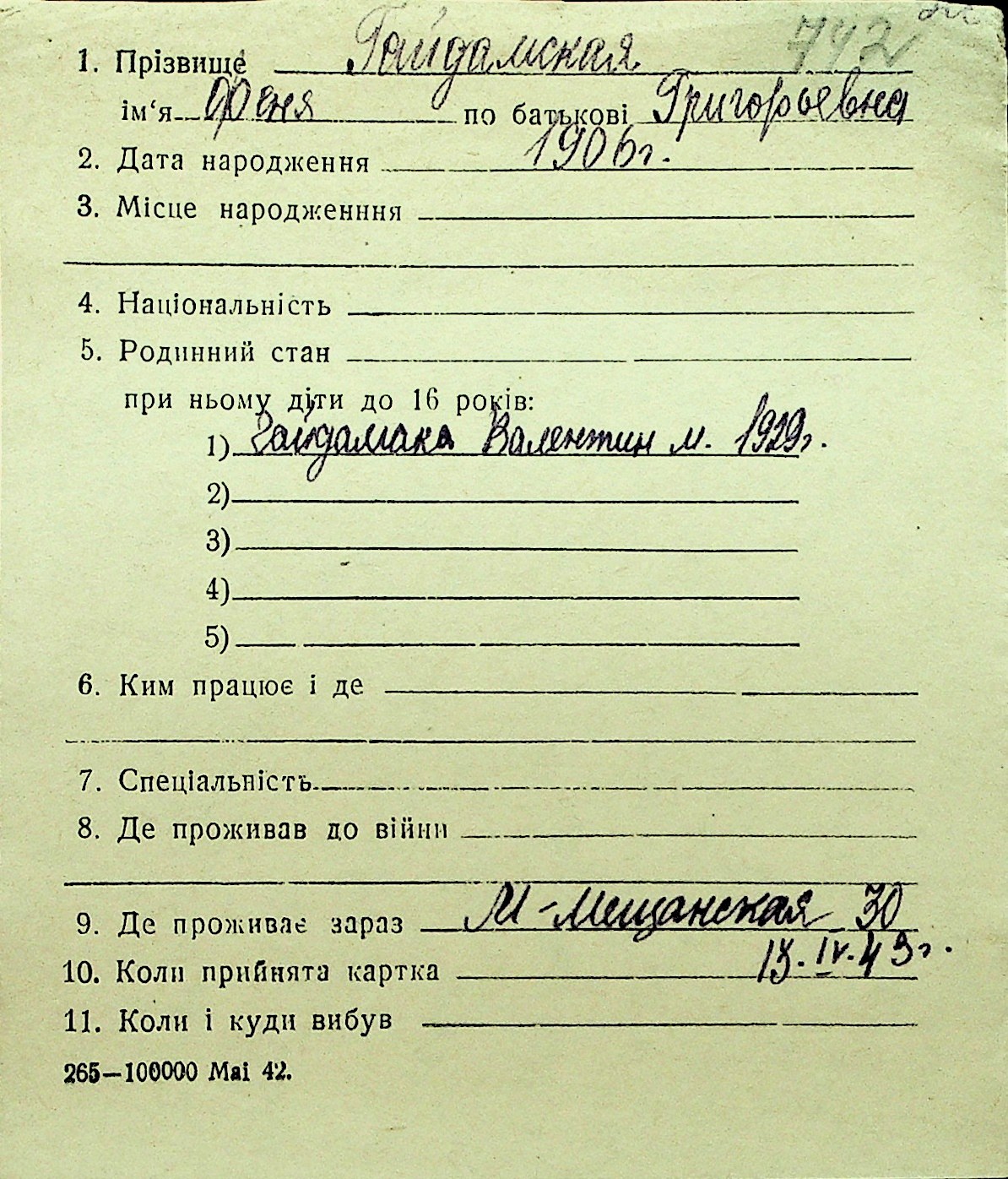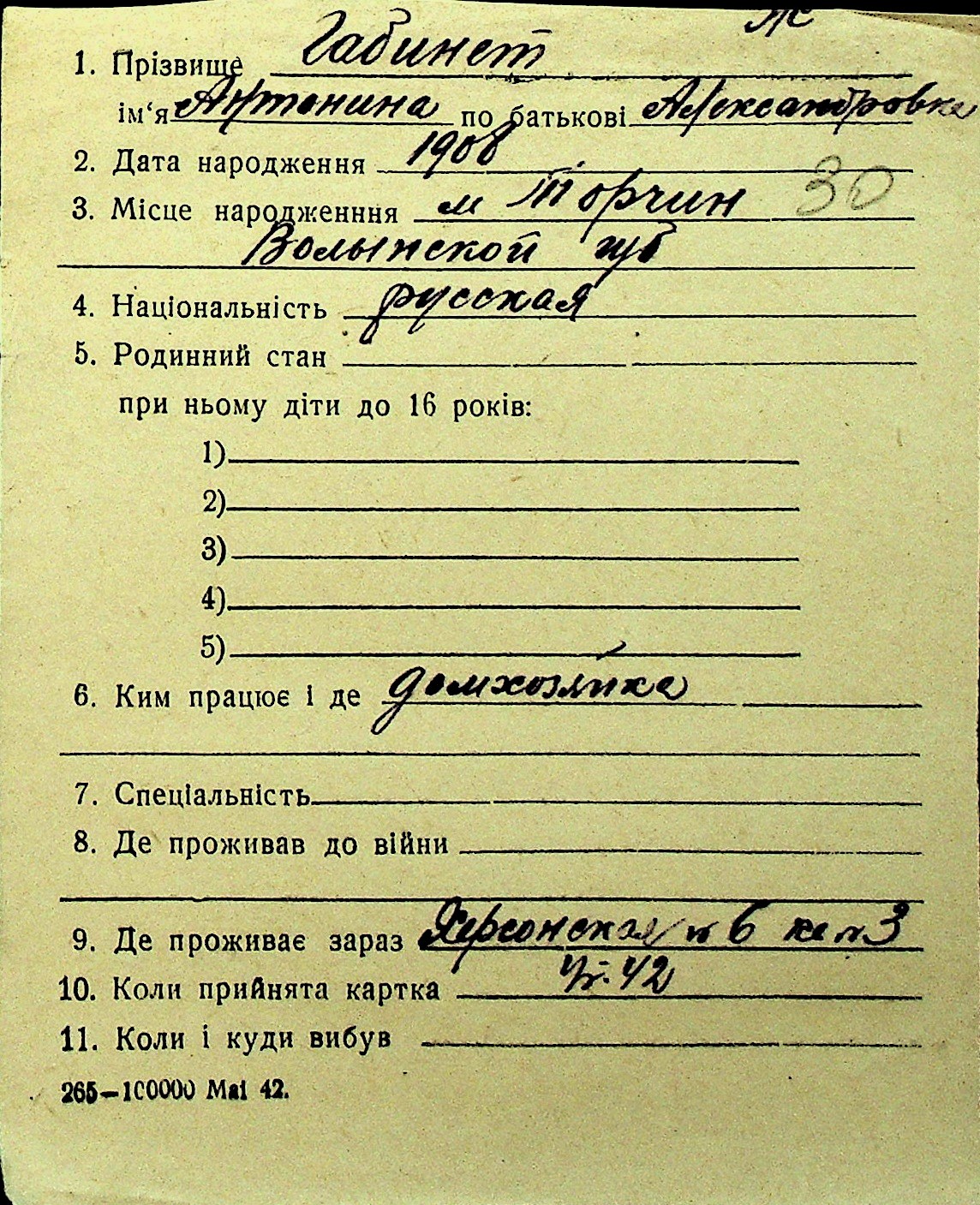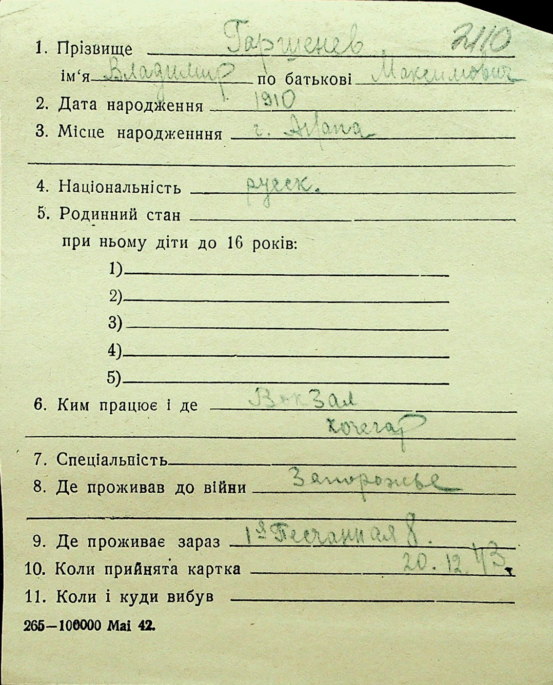• • Перелік карток до фонду № Н-1016