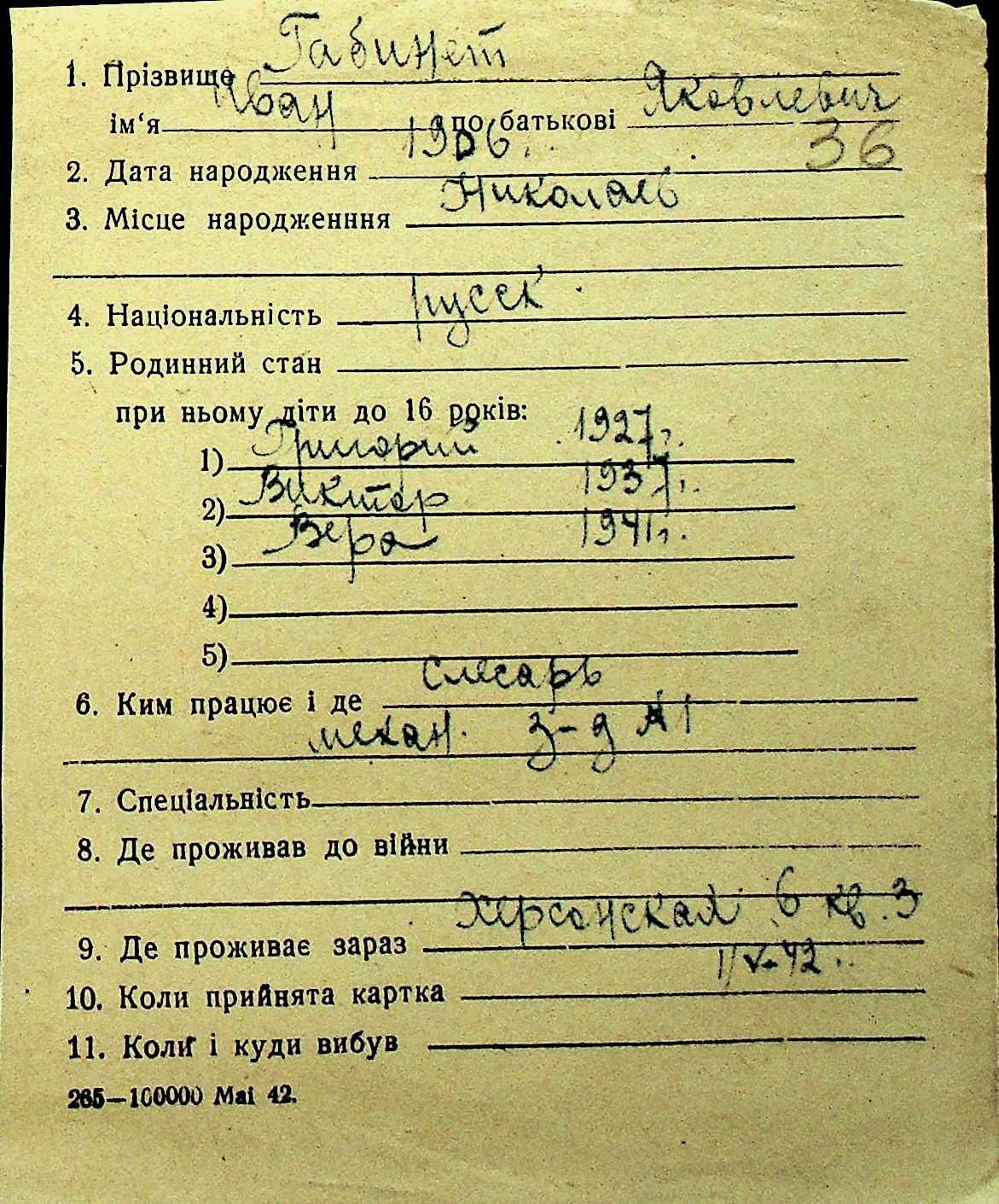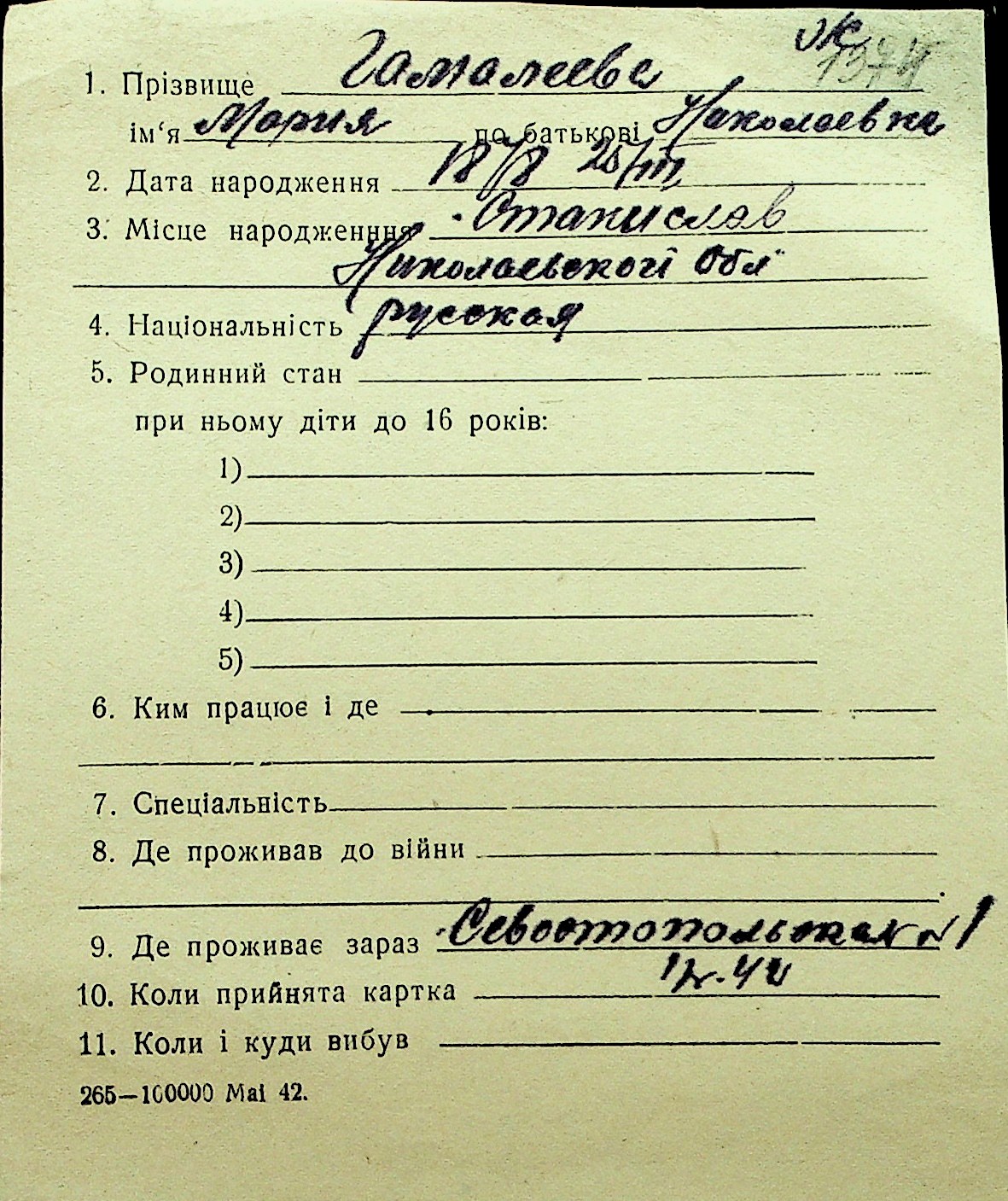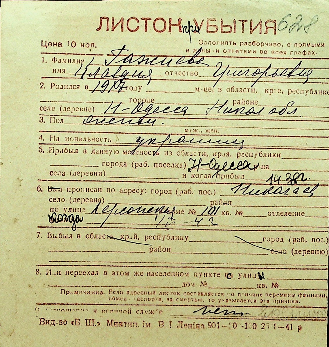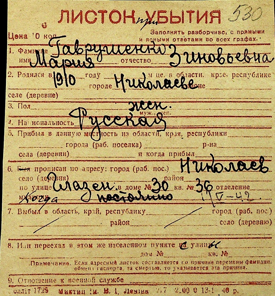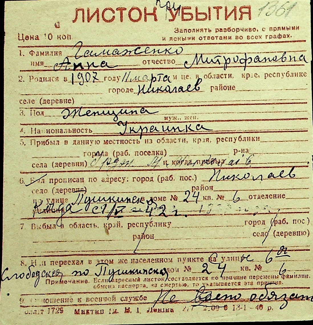 • • Перелік карток до фонду № Н-1016