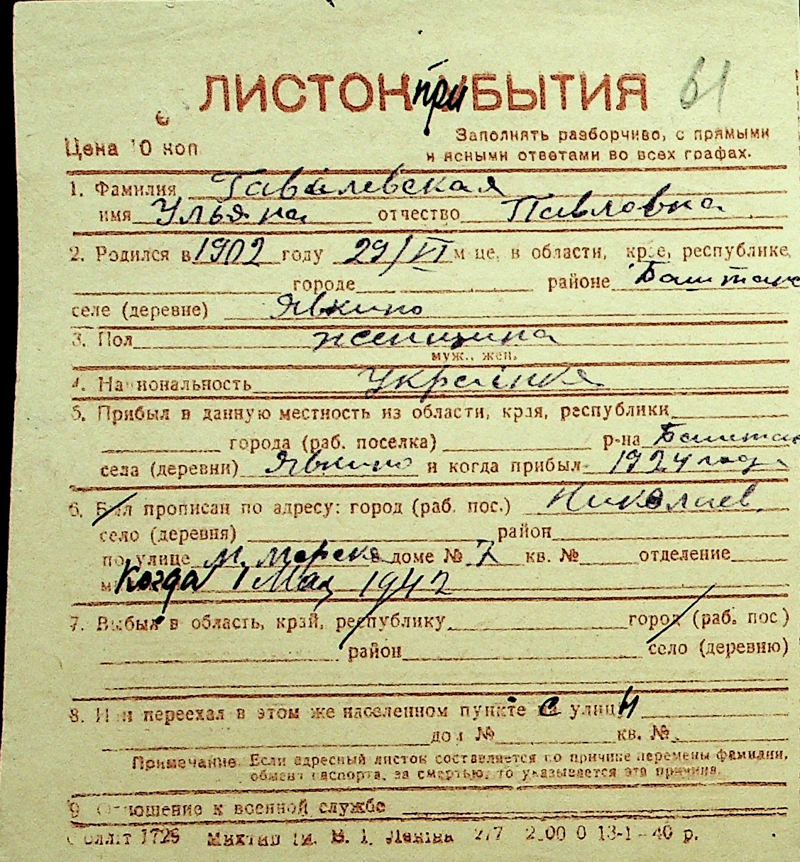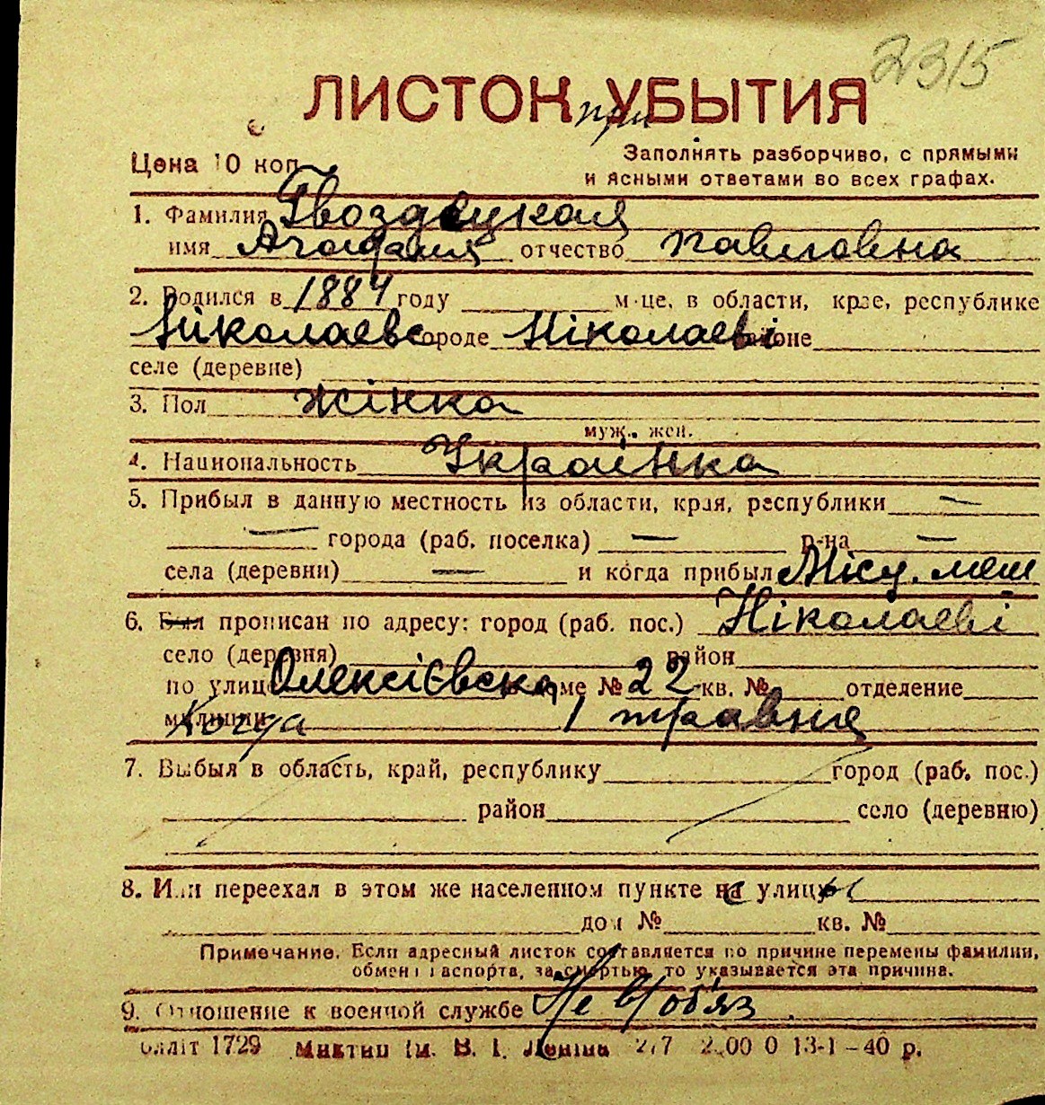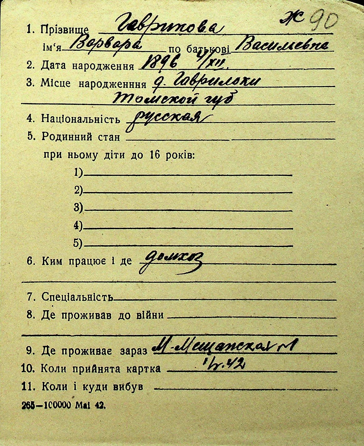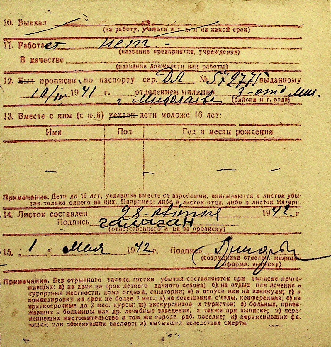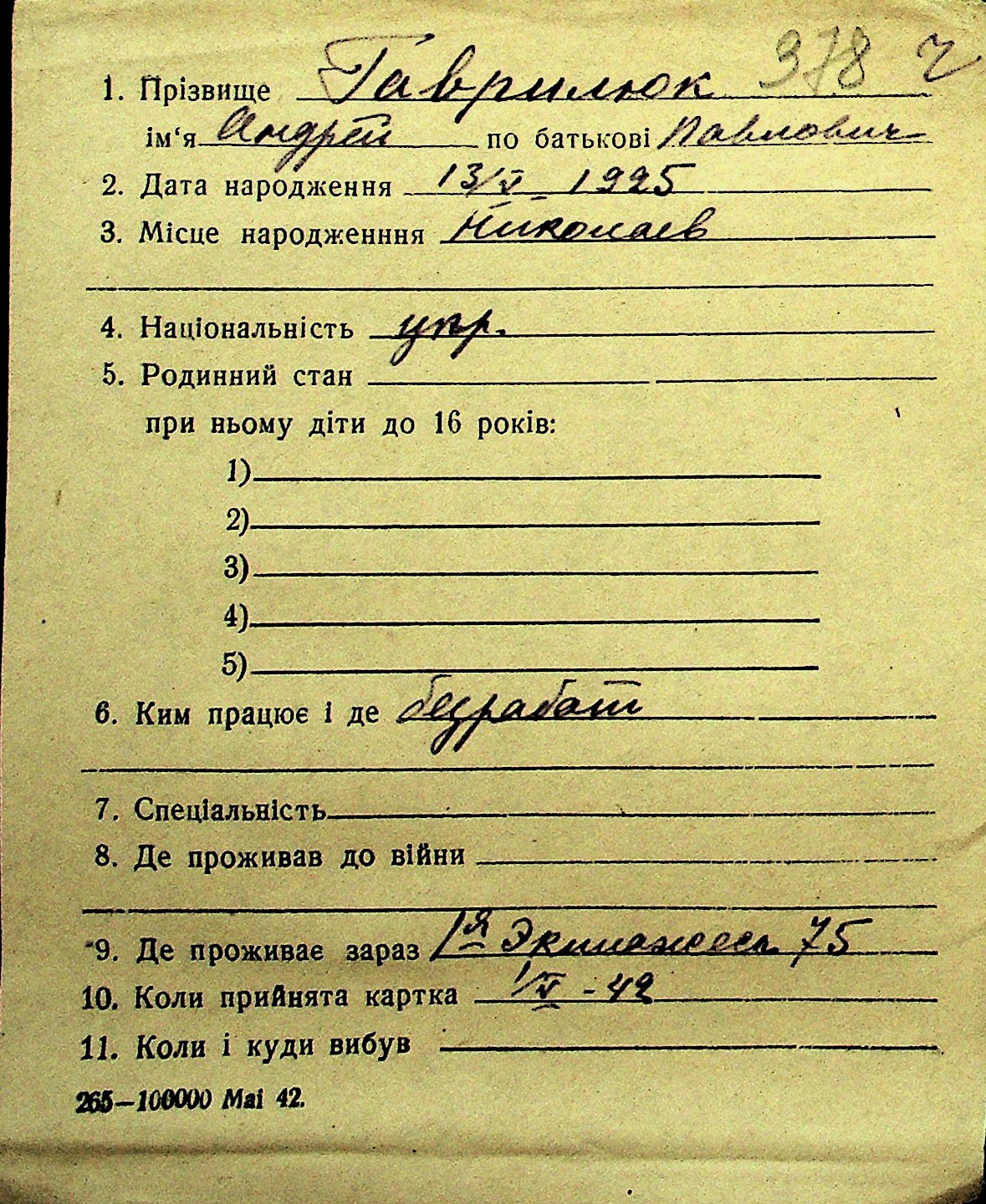 • • Перелік карток до фонду № Н-1016