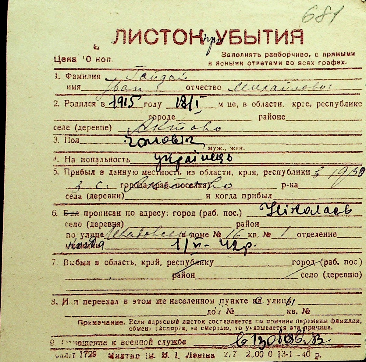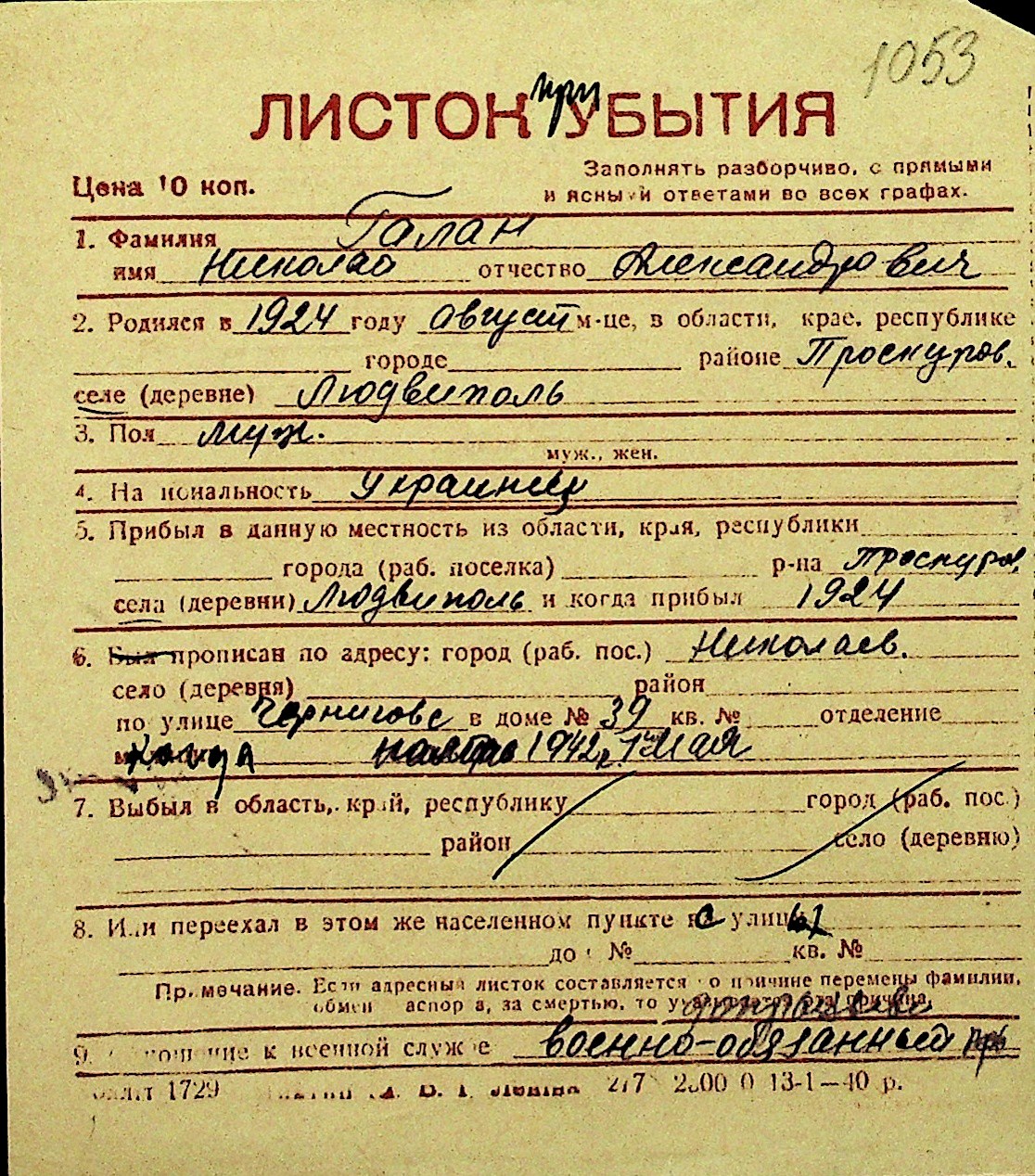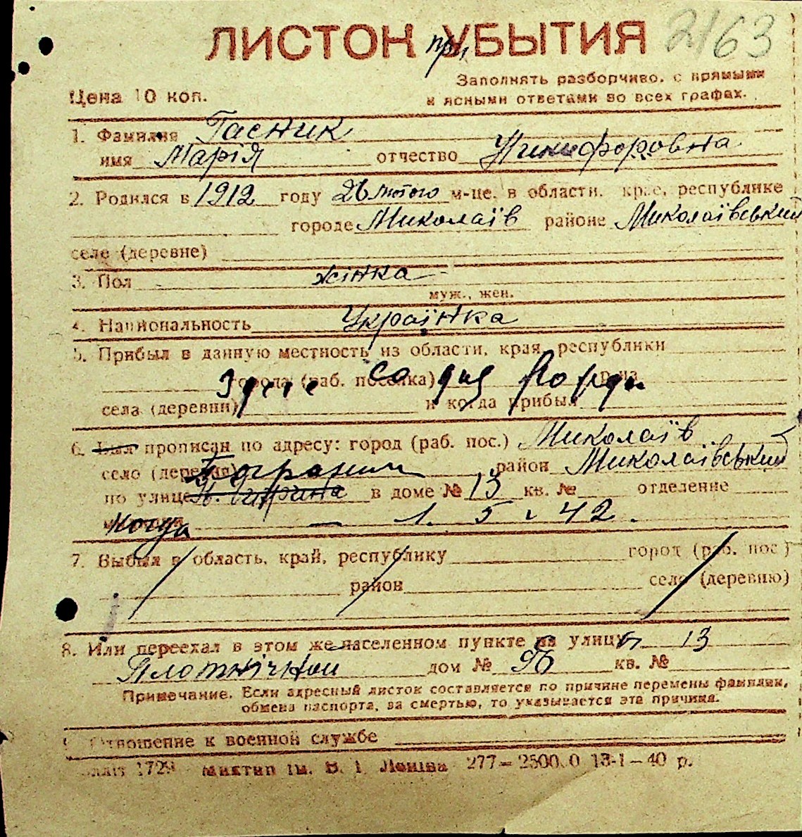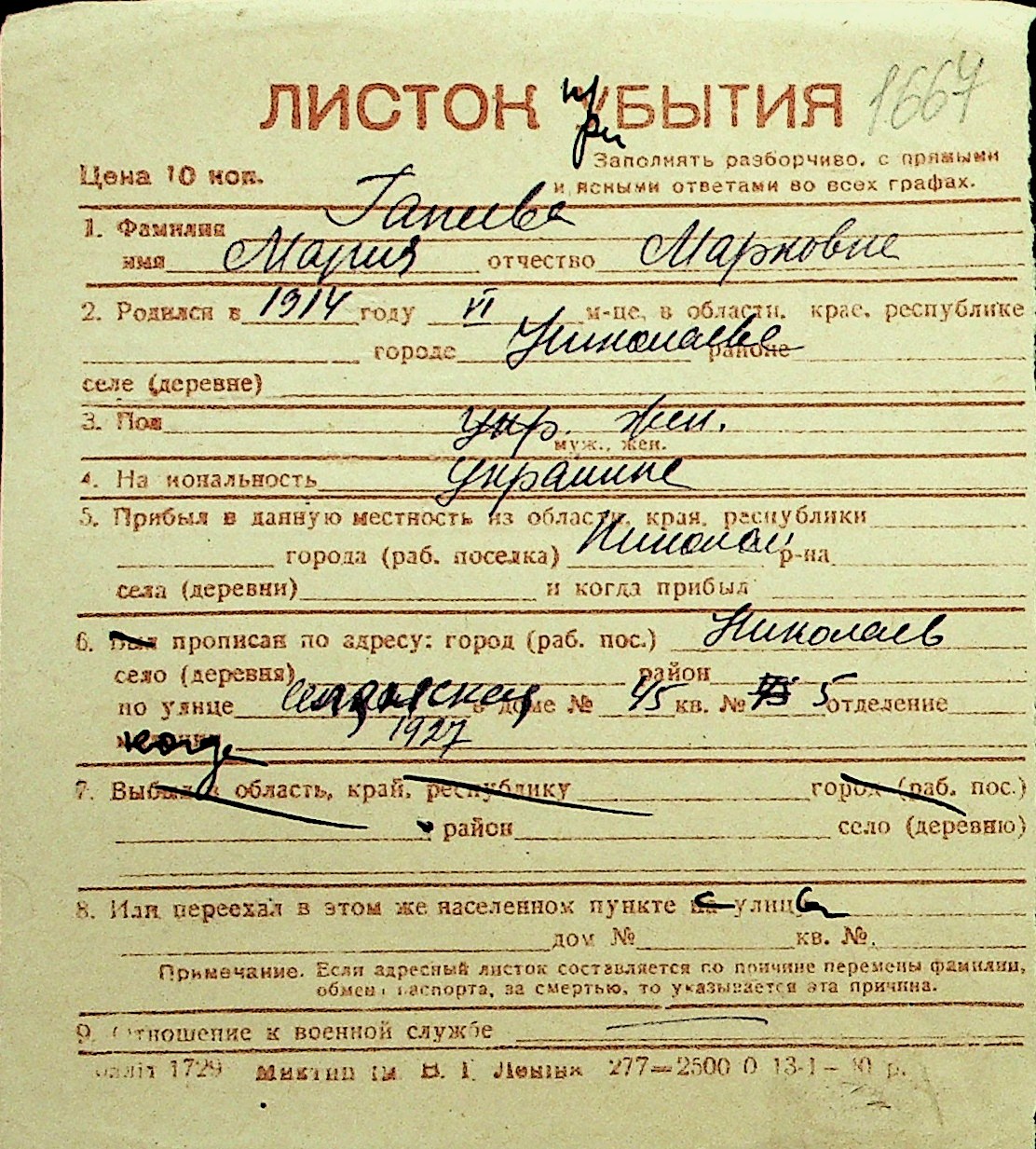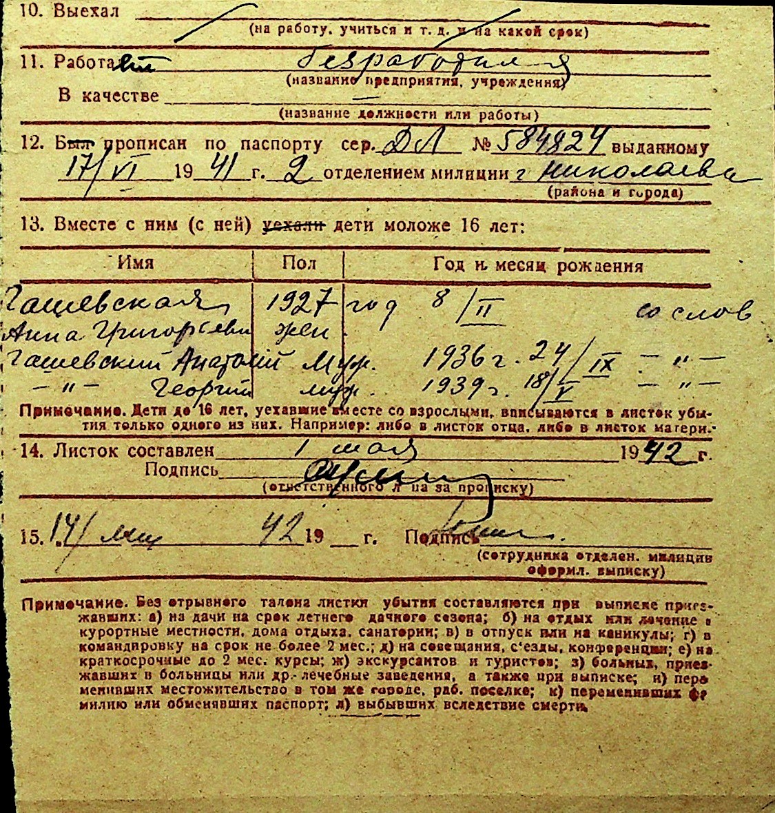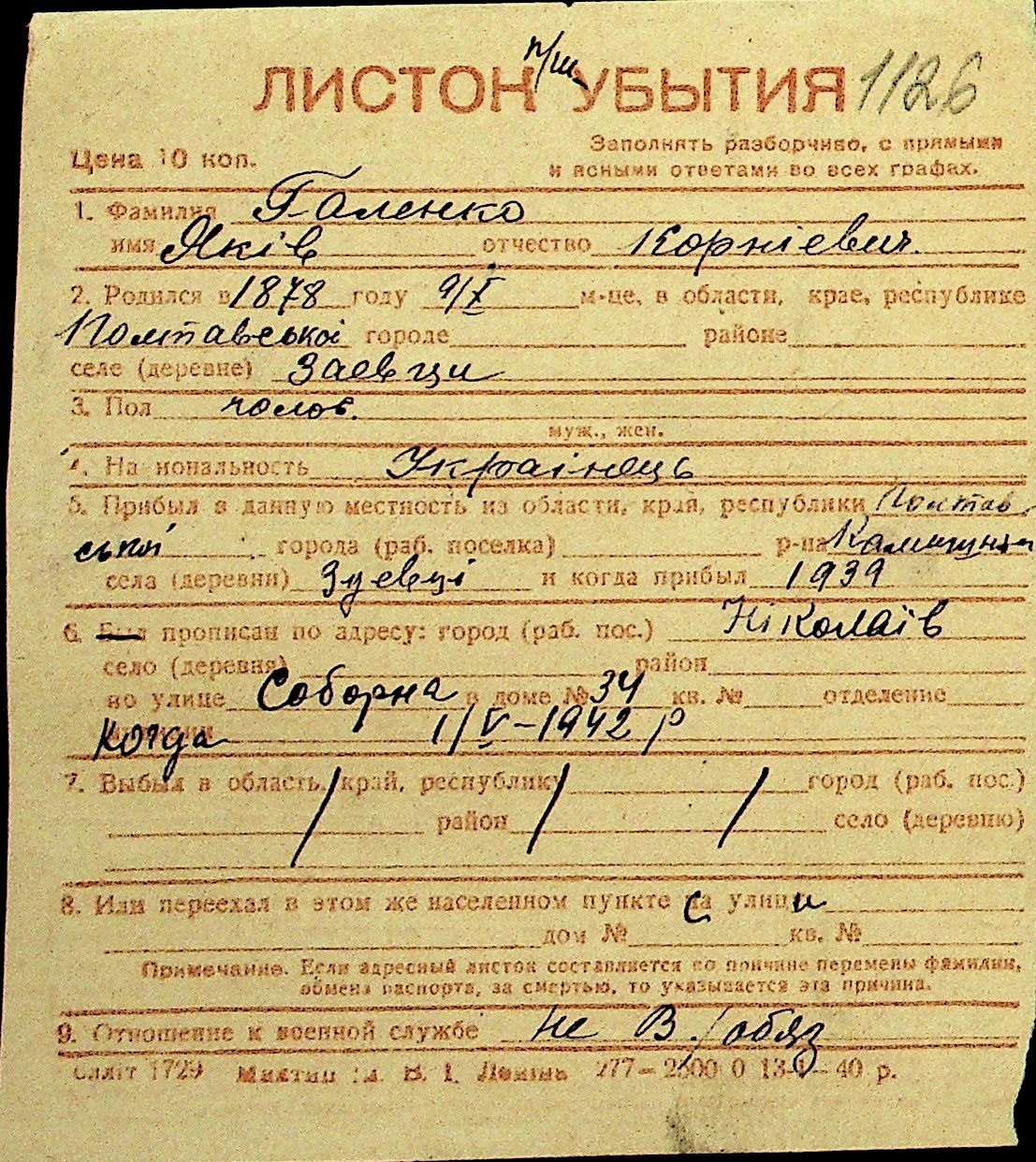 • • Перелік карток до фонду № Н-1016