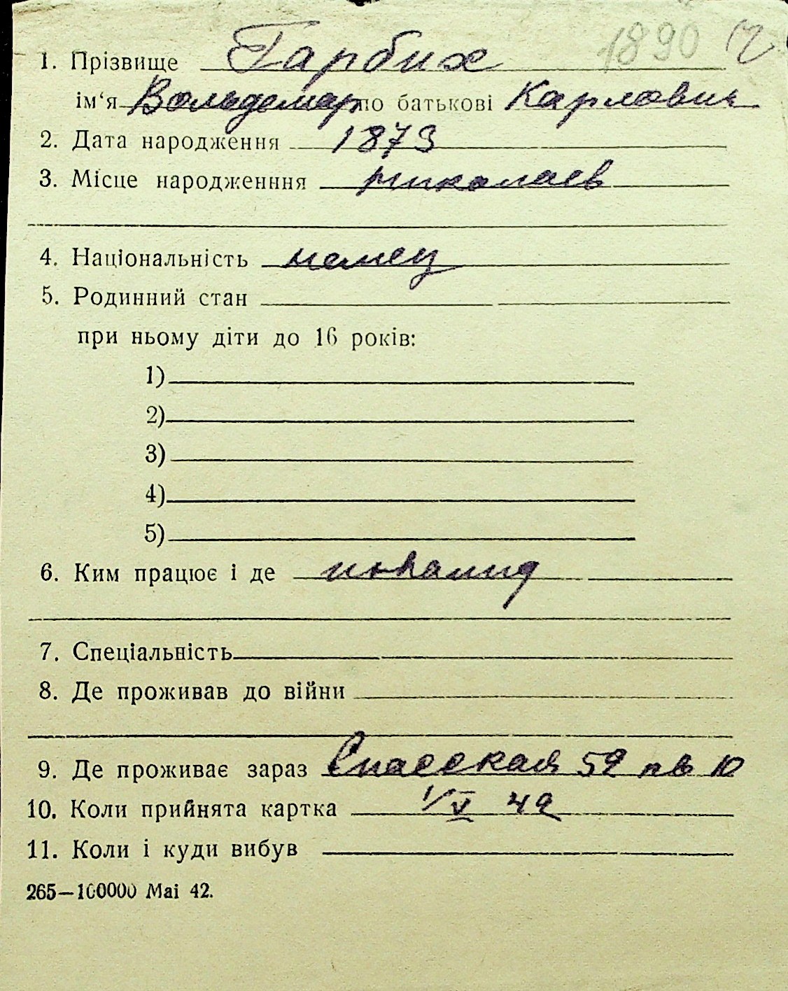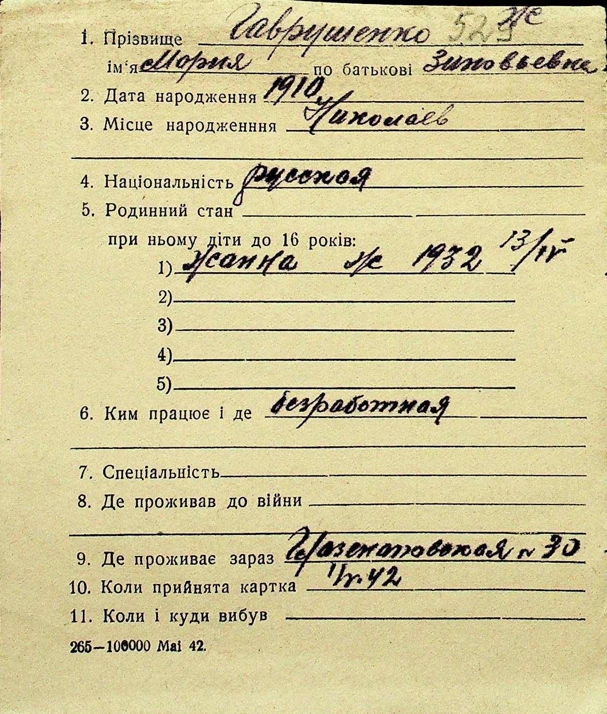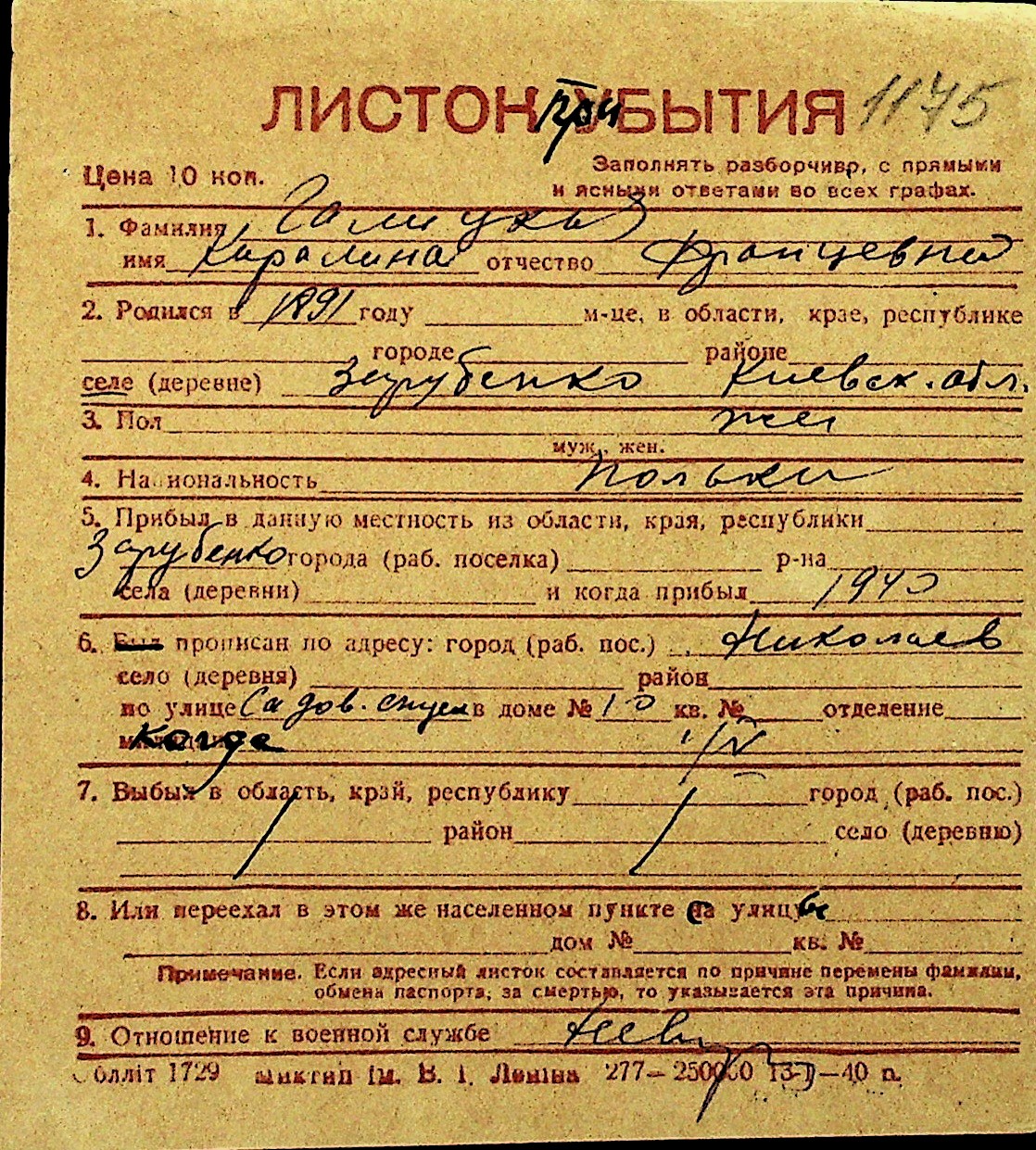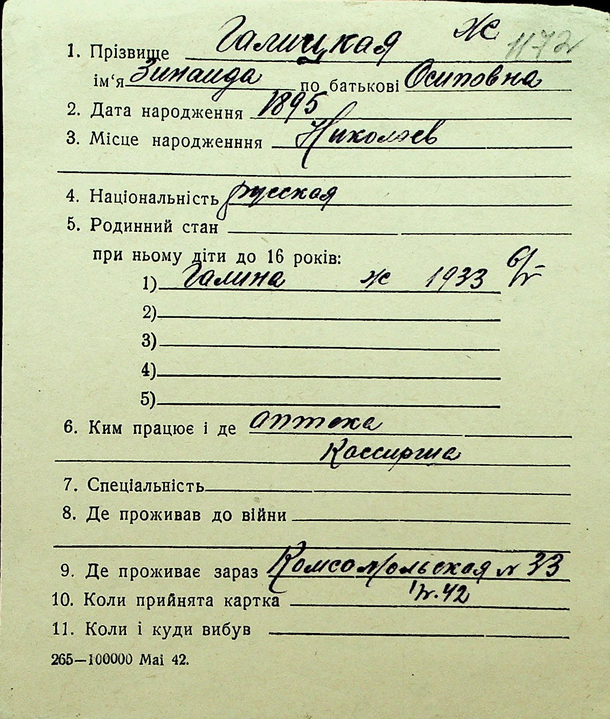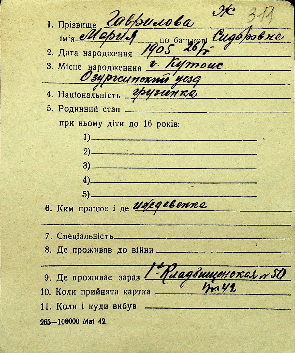 • • Перелік карток до фонду № Н-1016