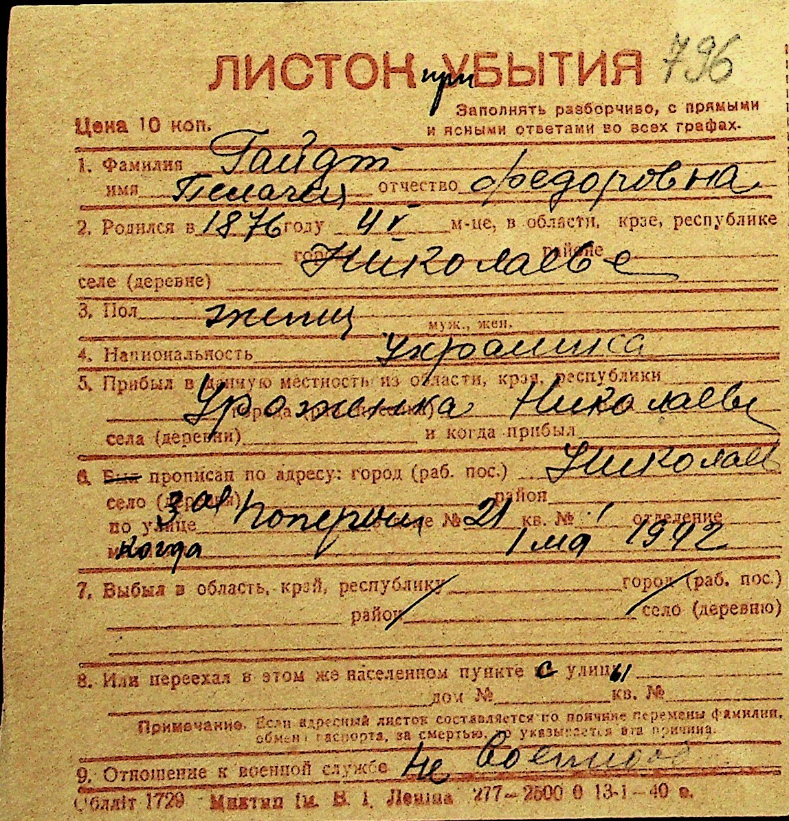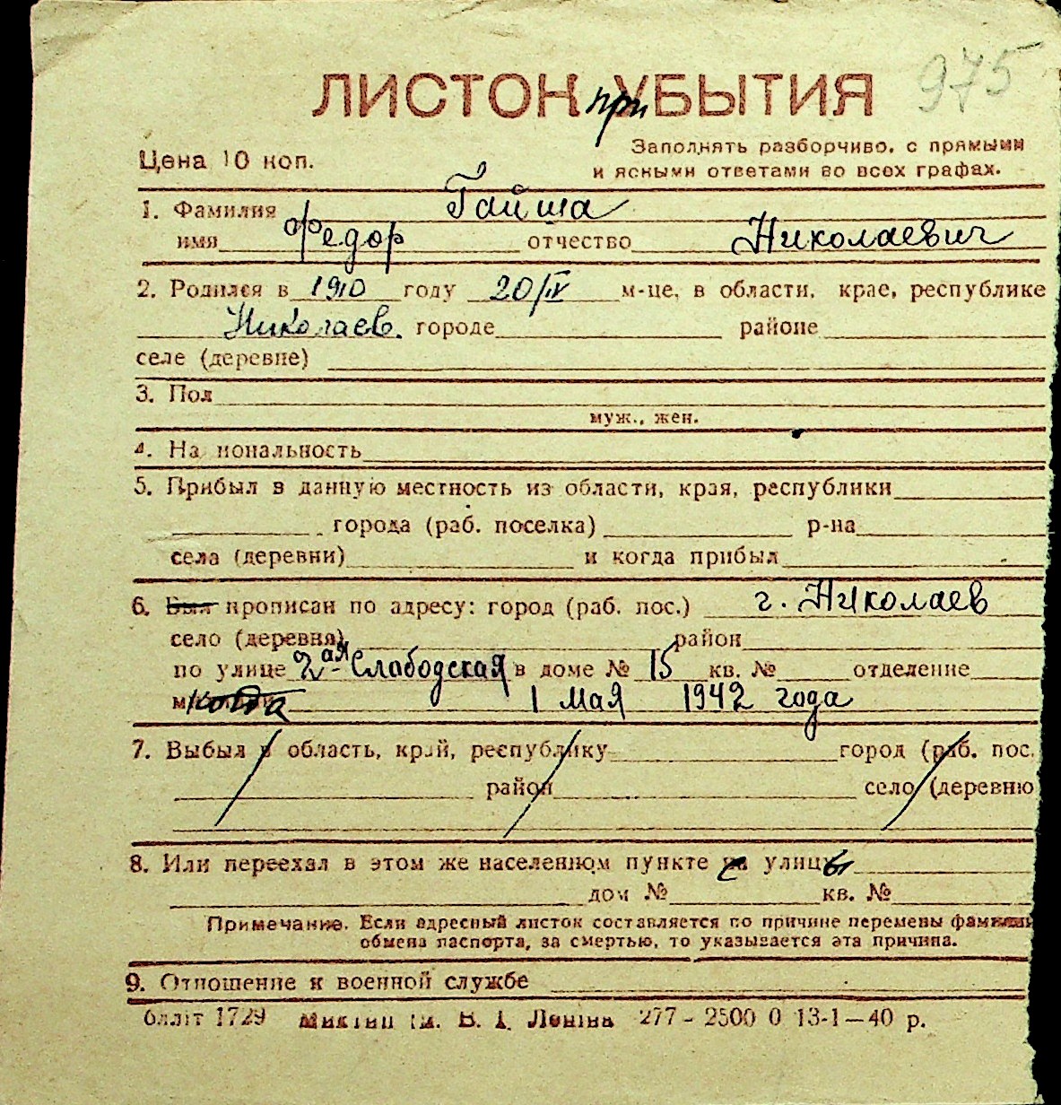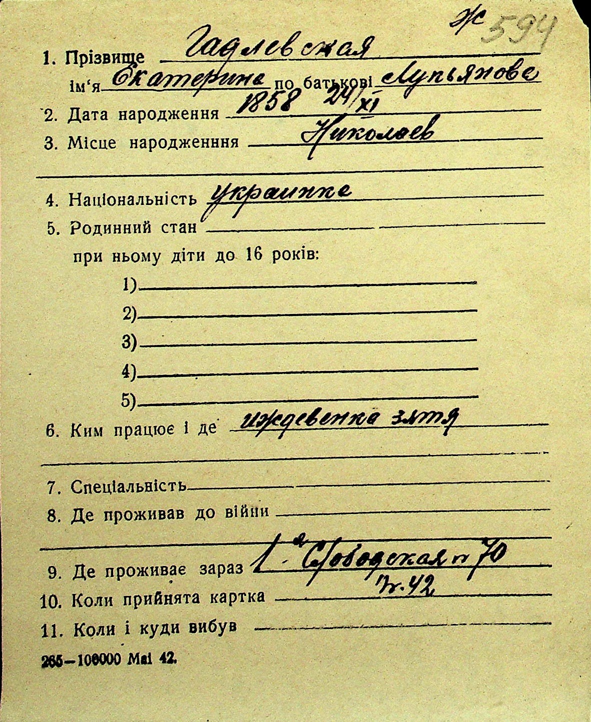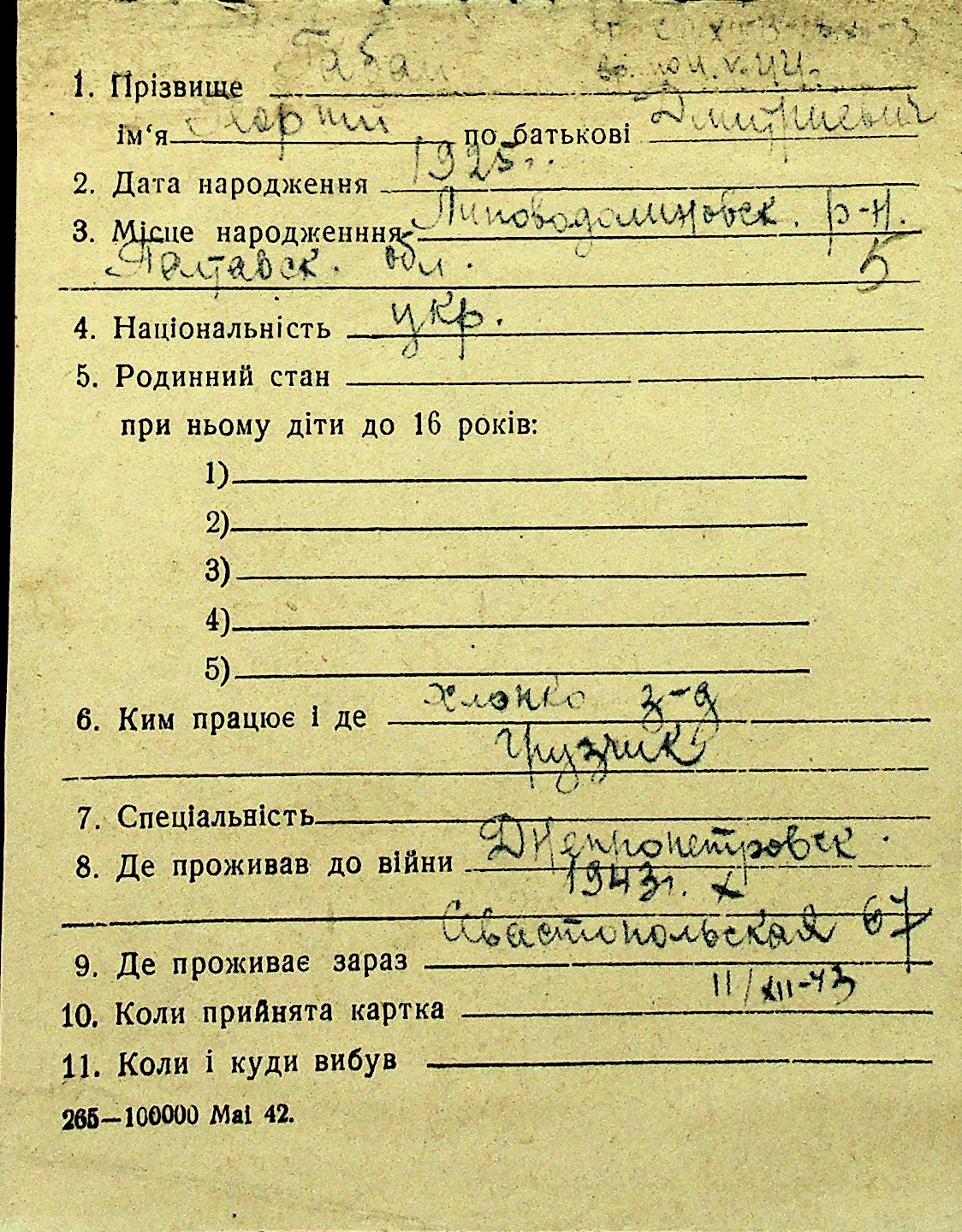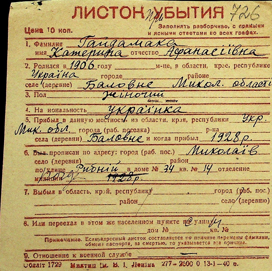 • • Перелік карток до фонду № Н-1016