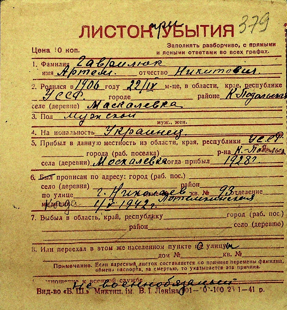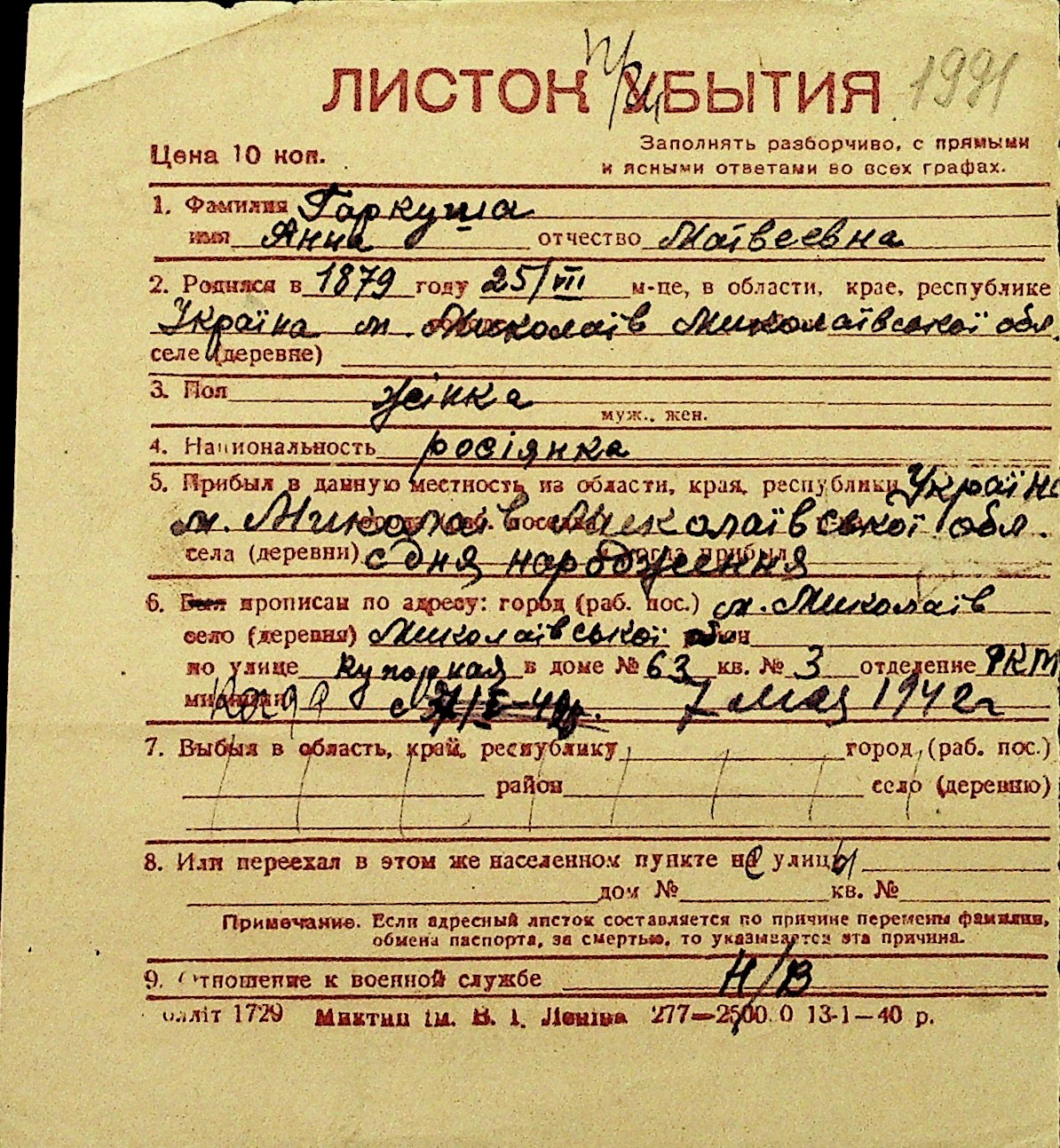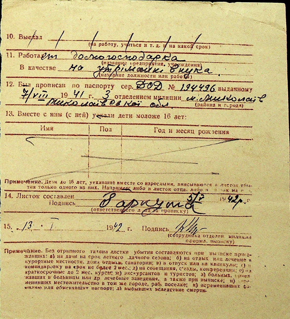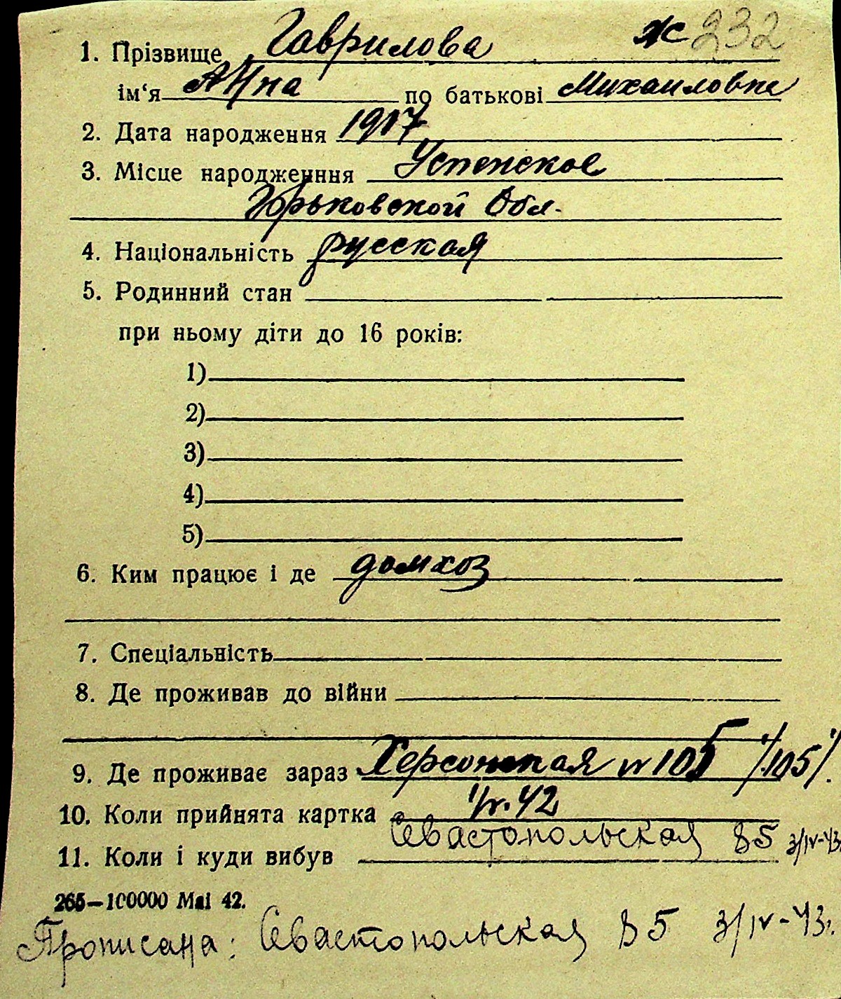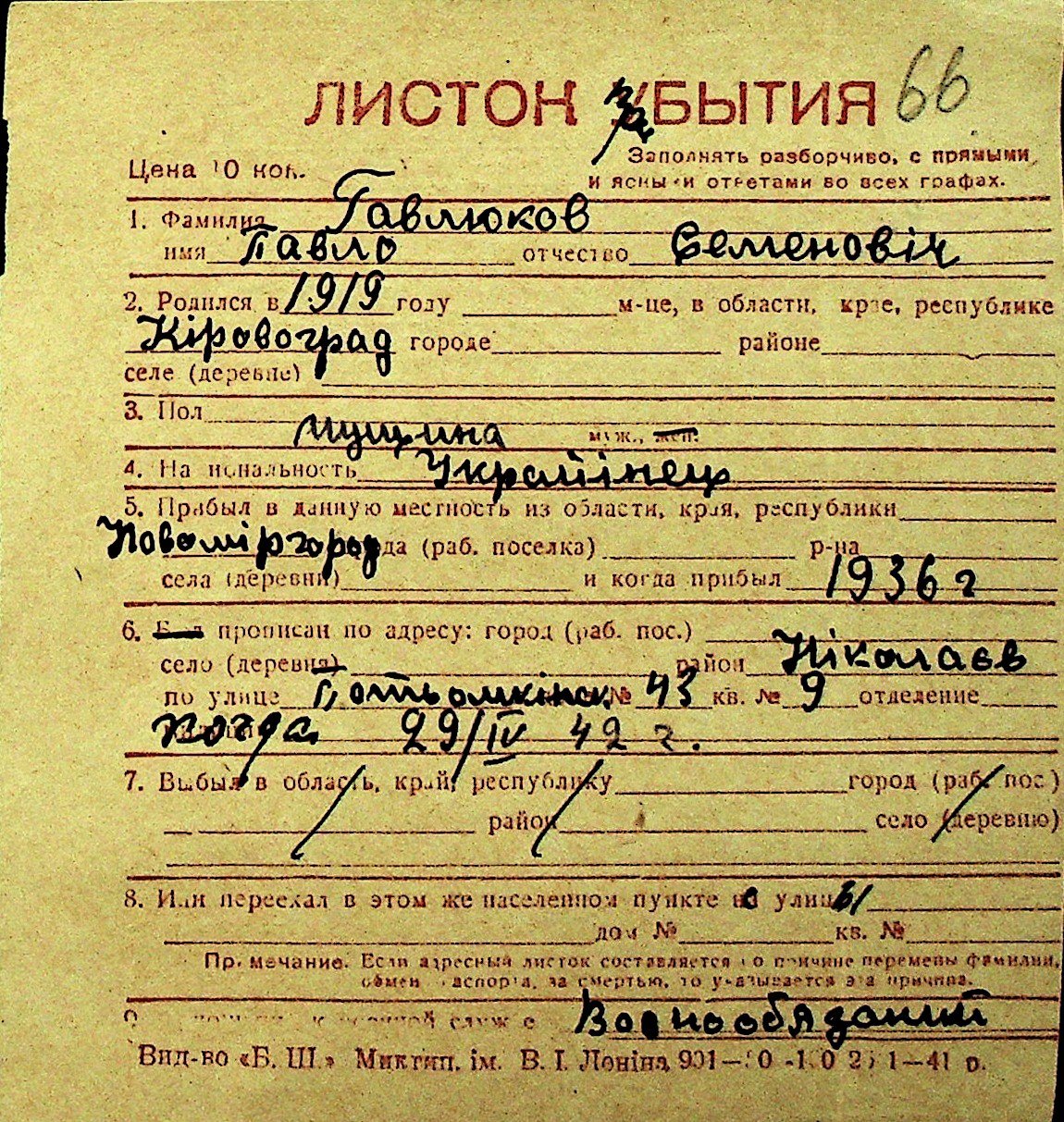 • • Перелік карток до фонду № Н-1016