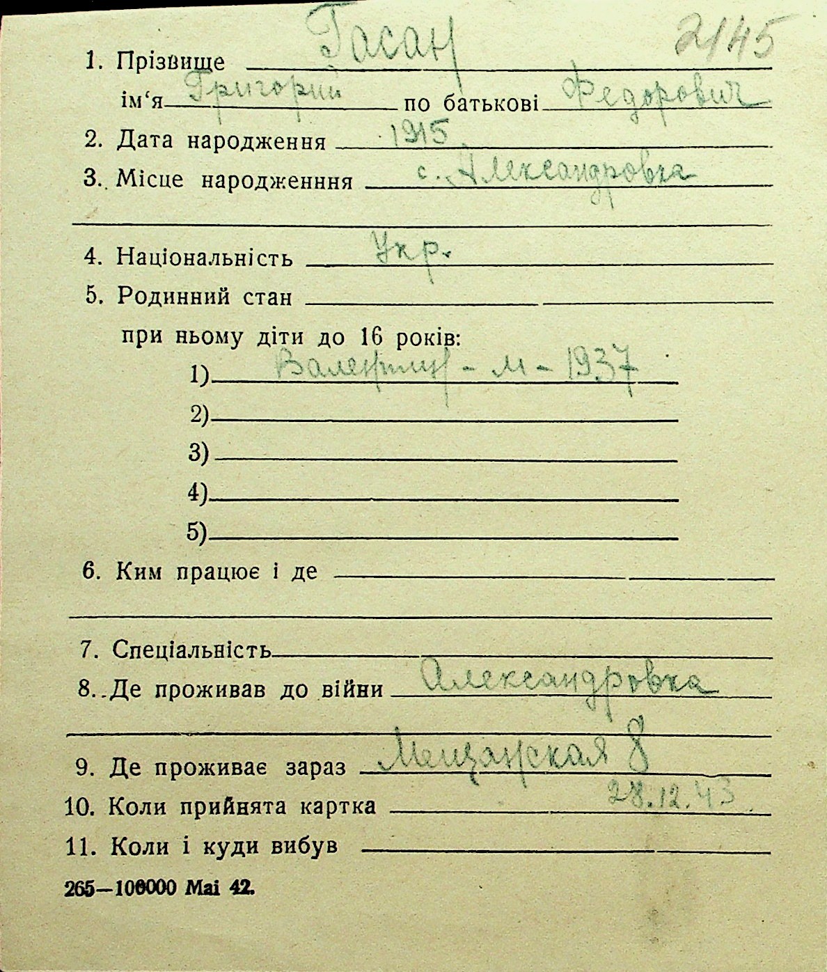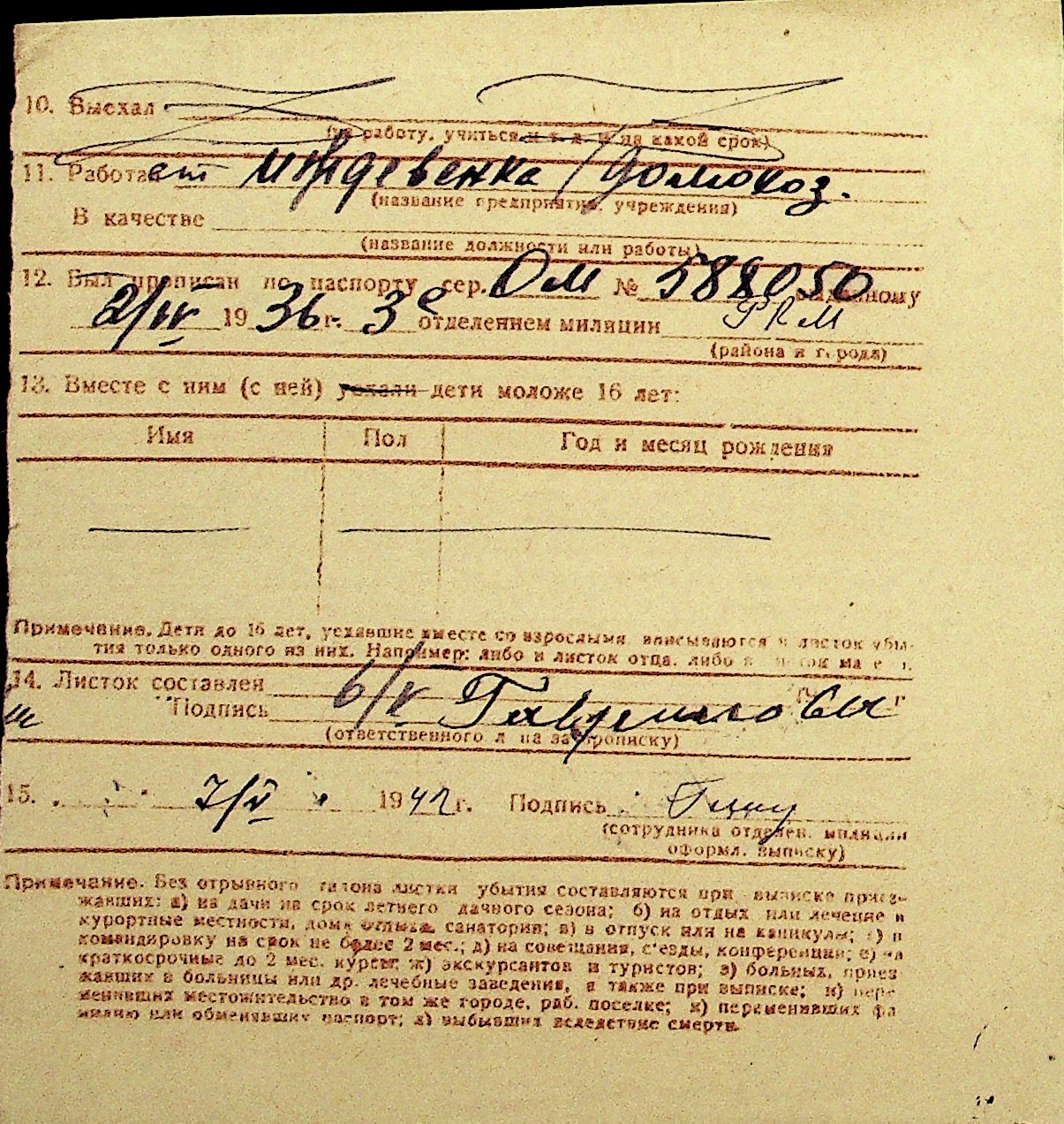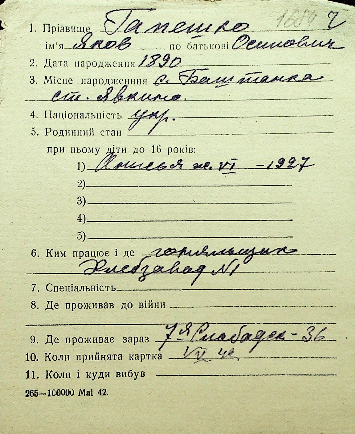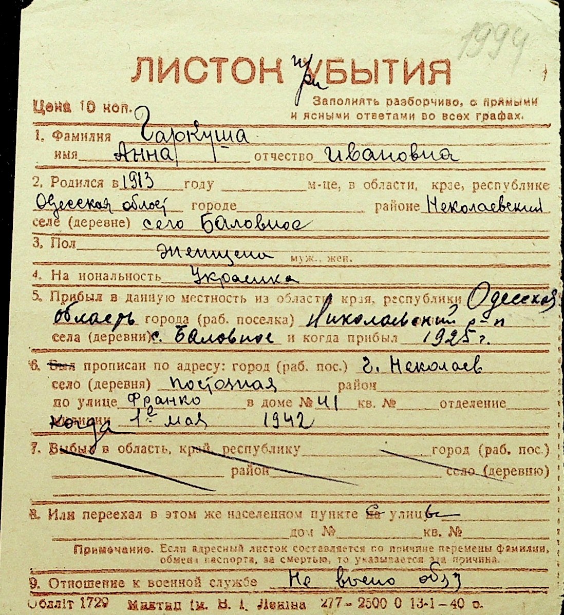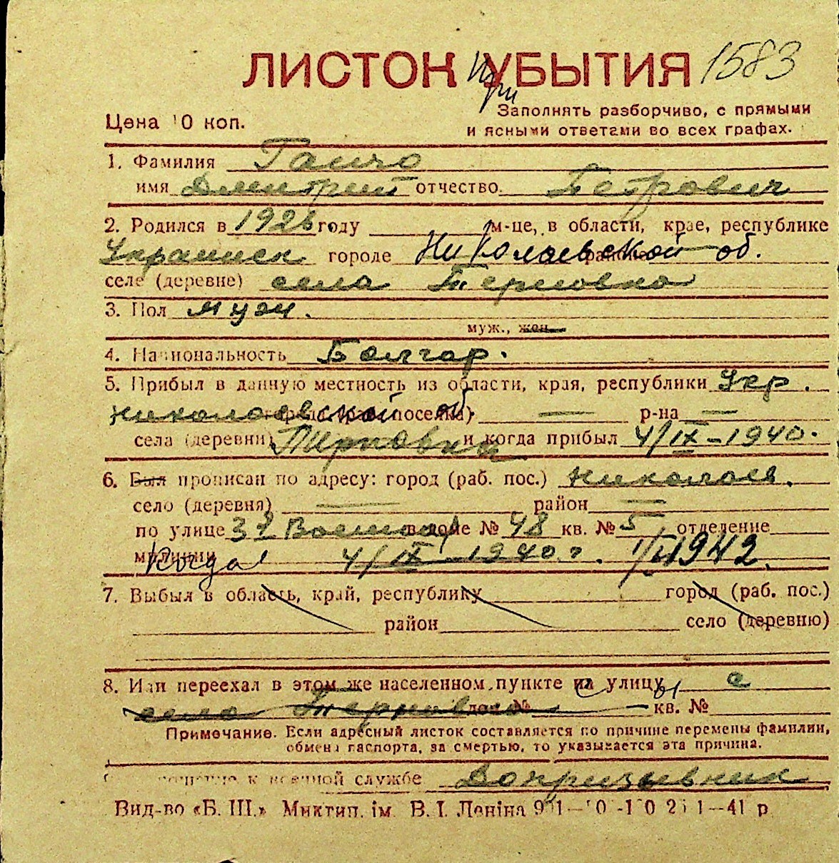 • • Перелік карток до фонду № Н-1016