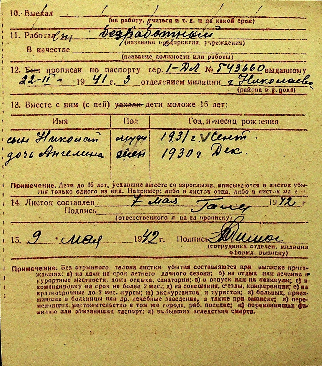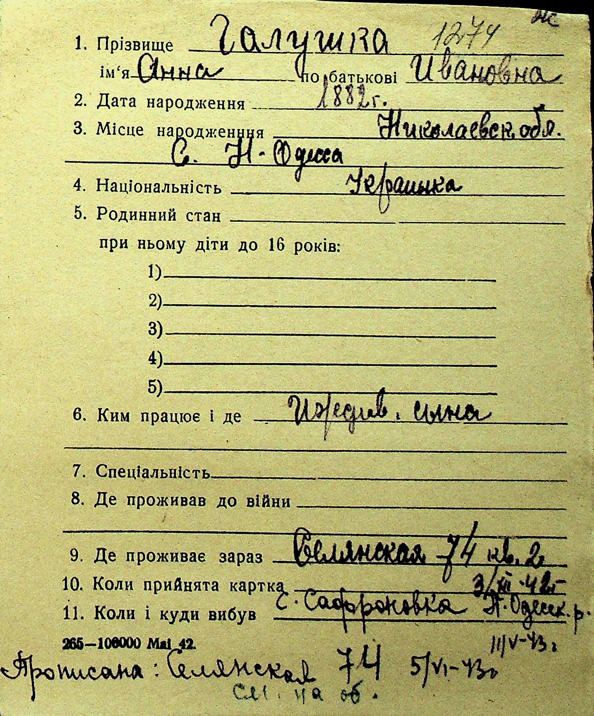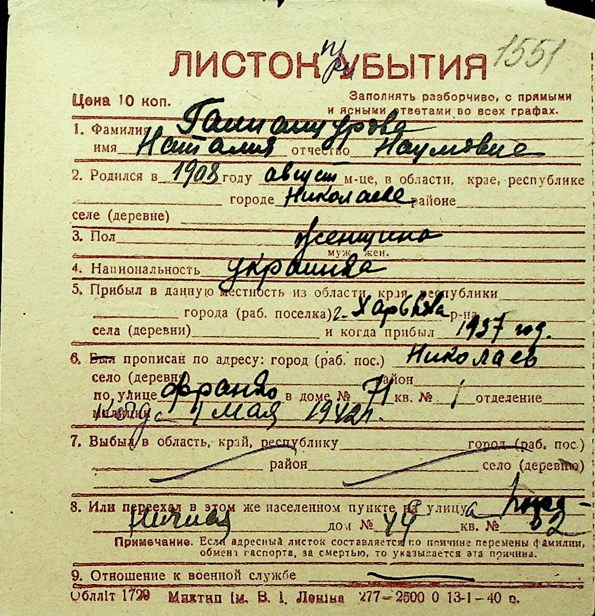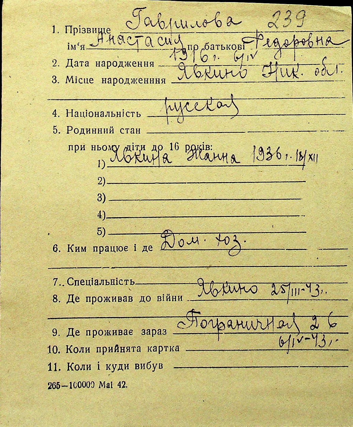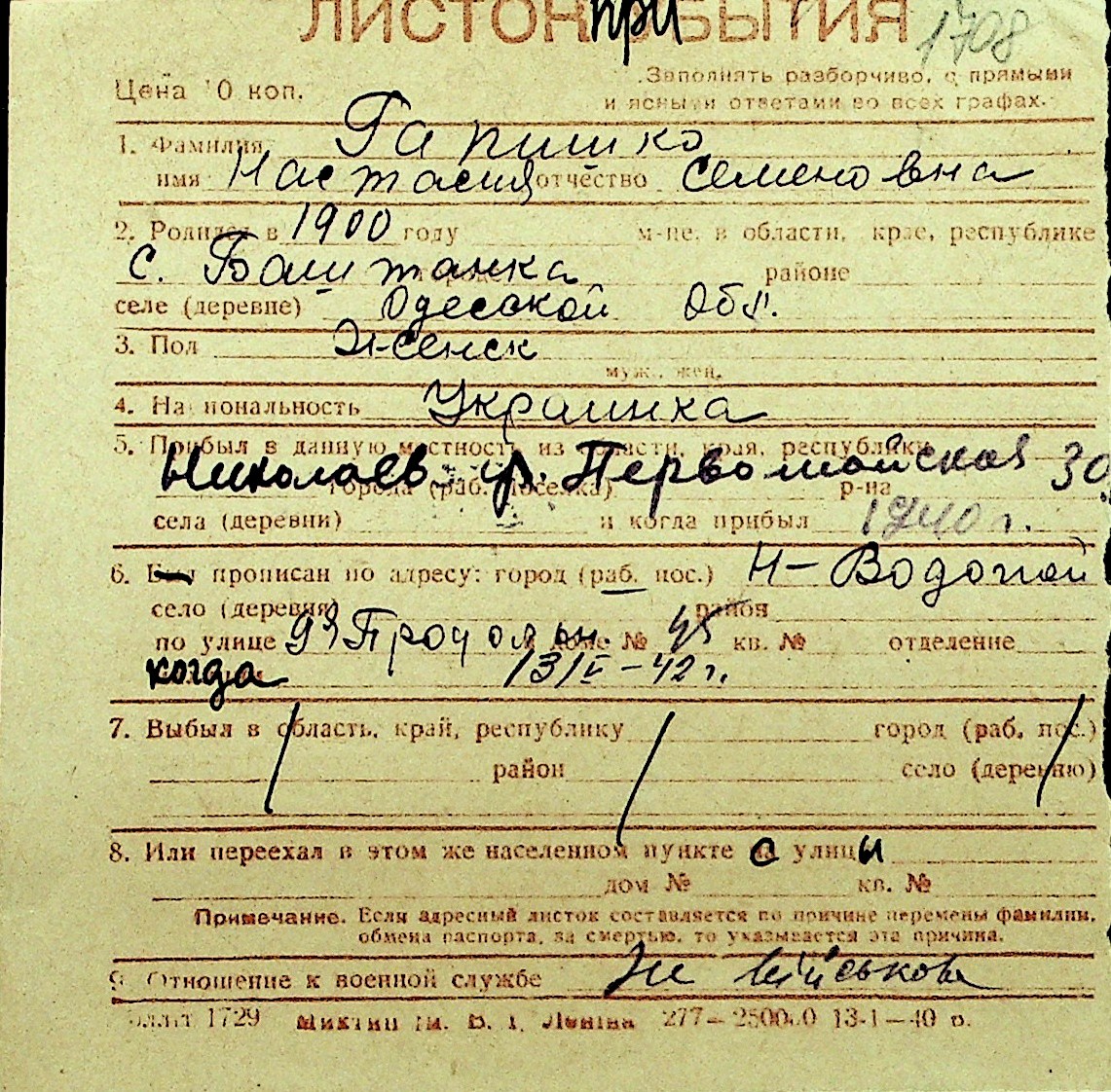• • Перелік карток до фонду № Н-1016