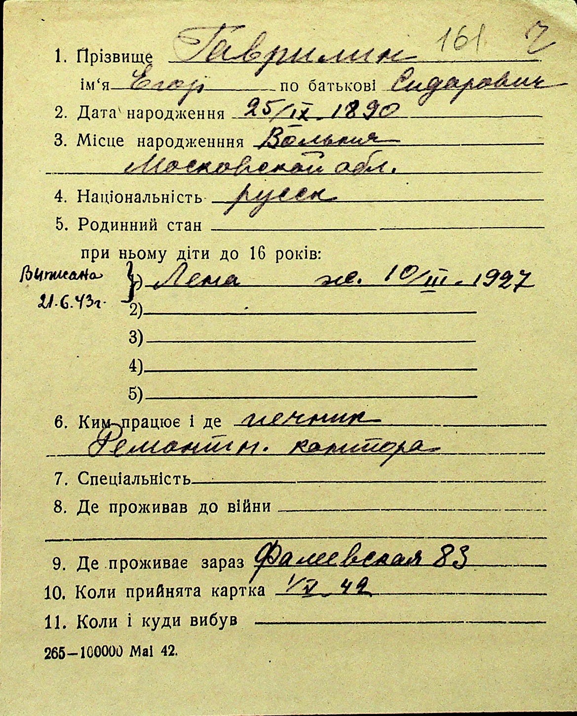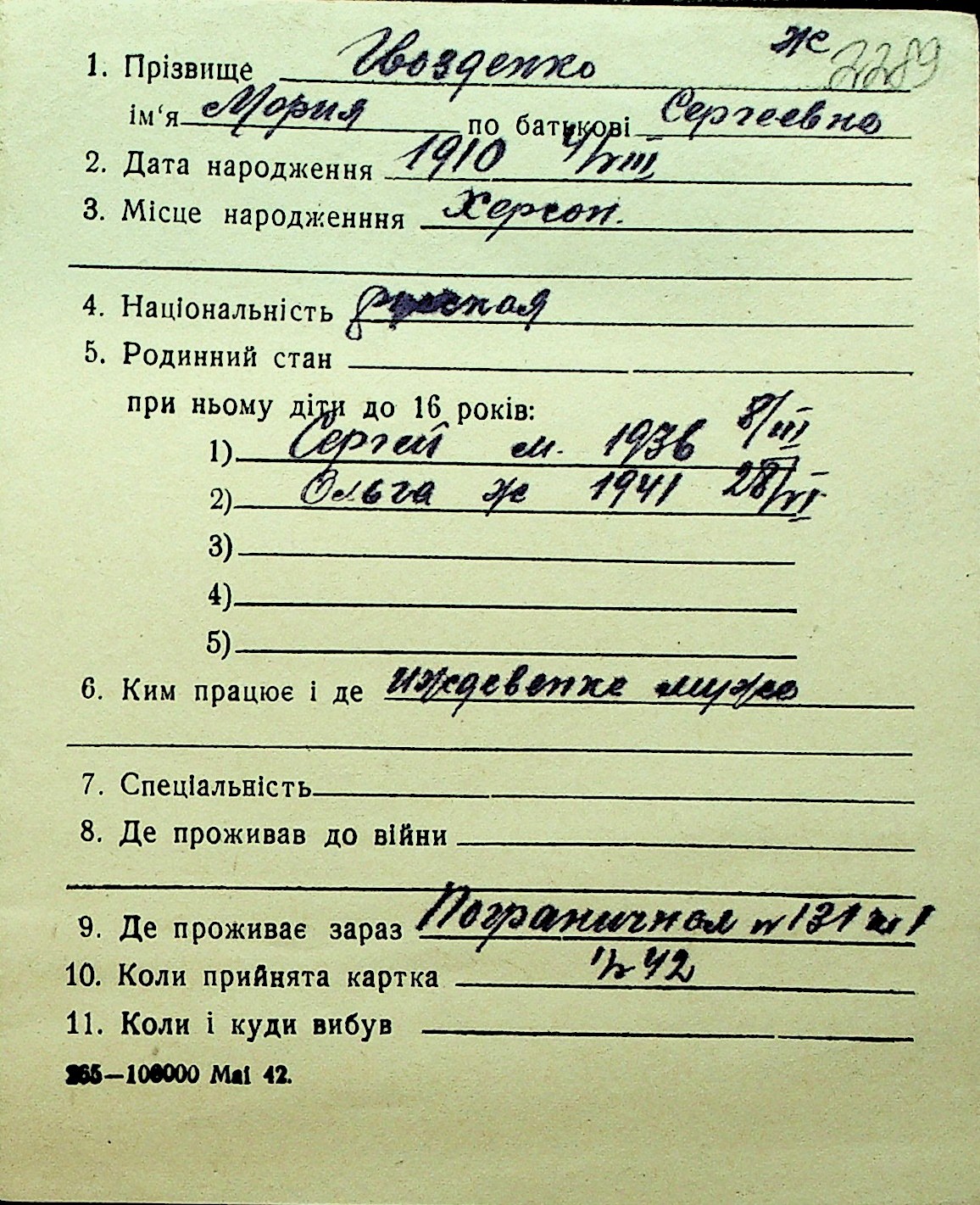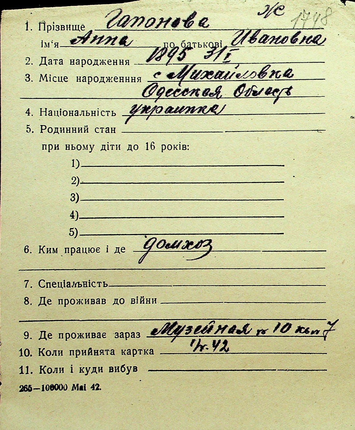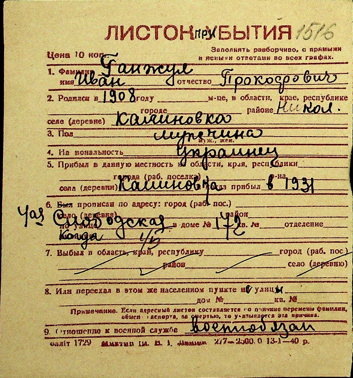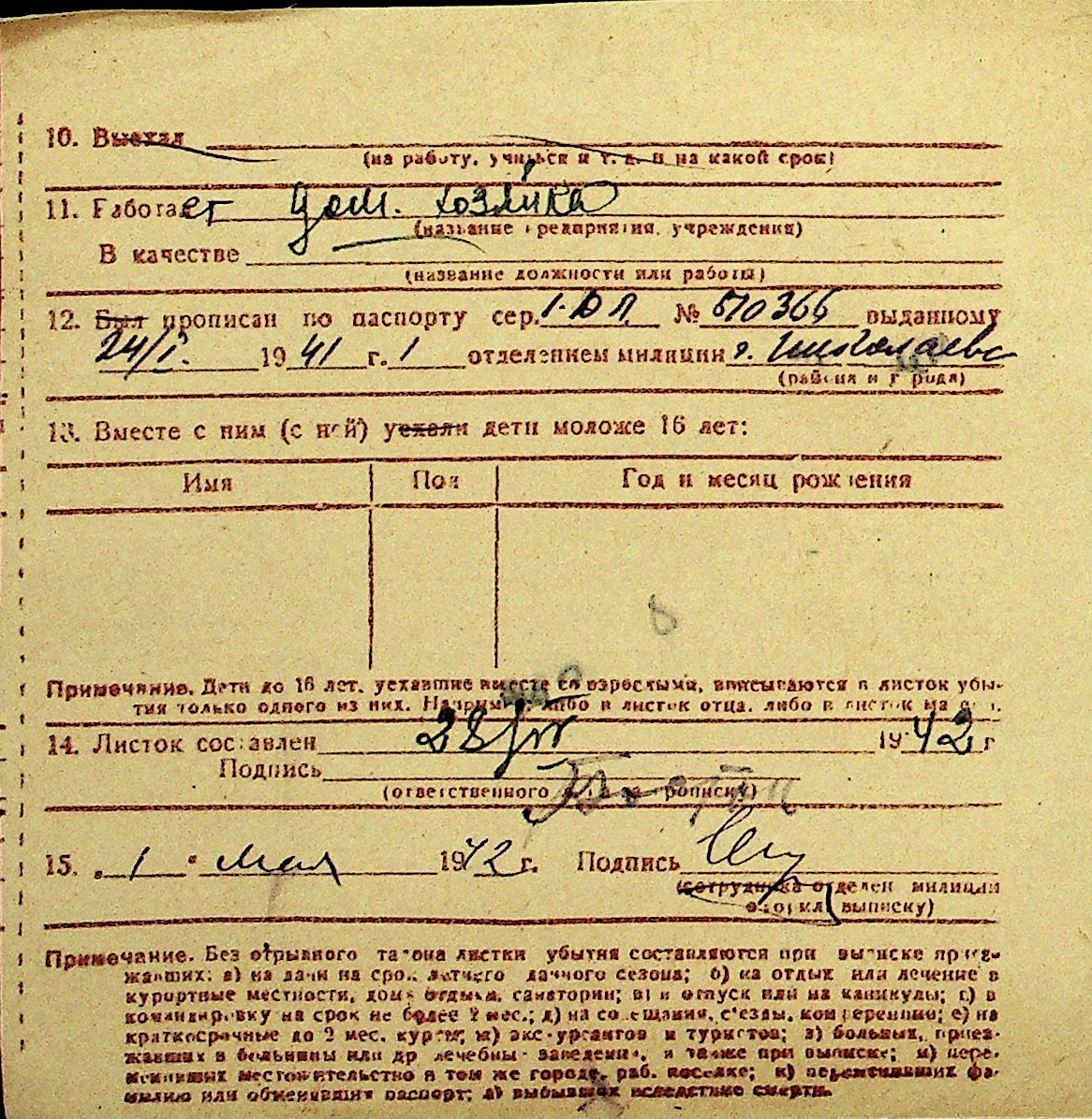 • • Перелік карток до фонду № Н-1016