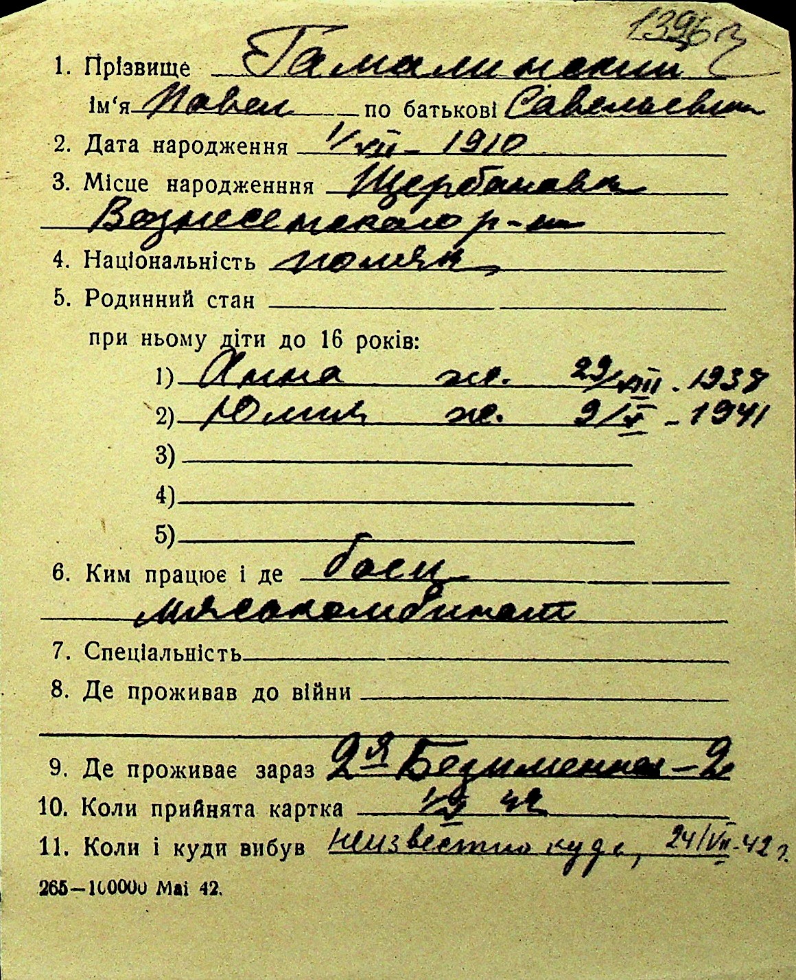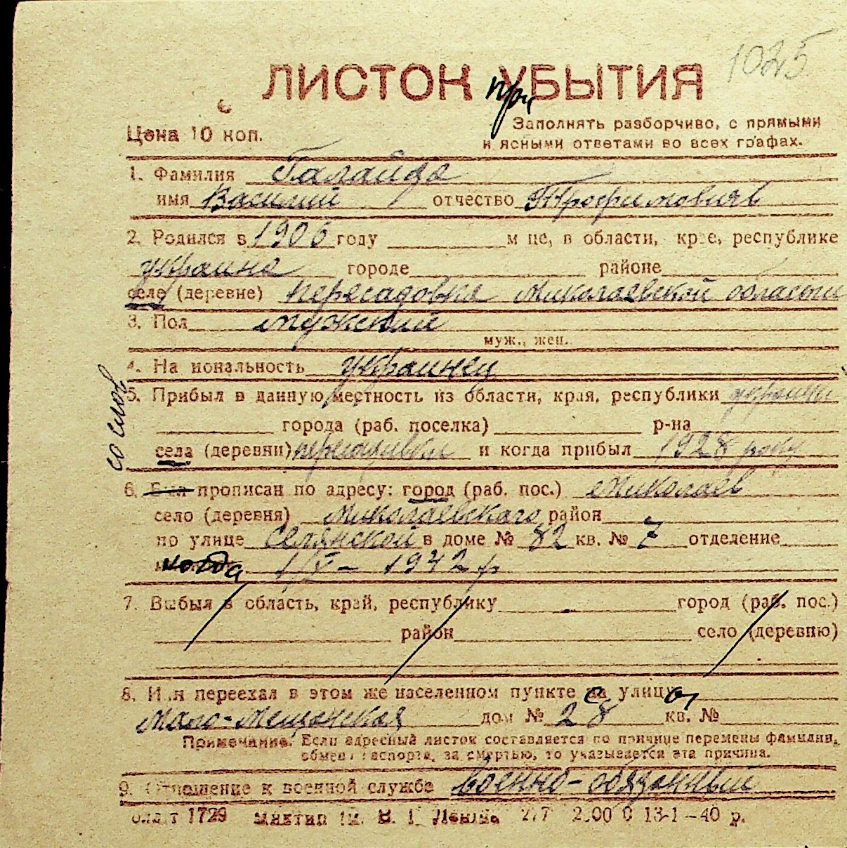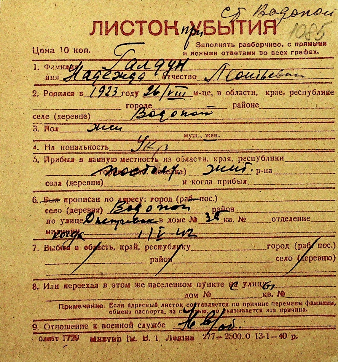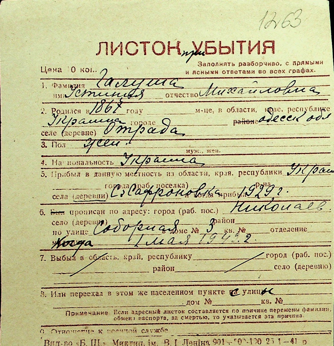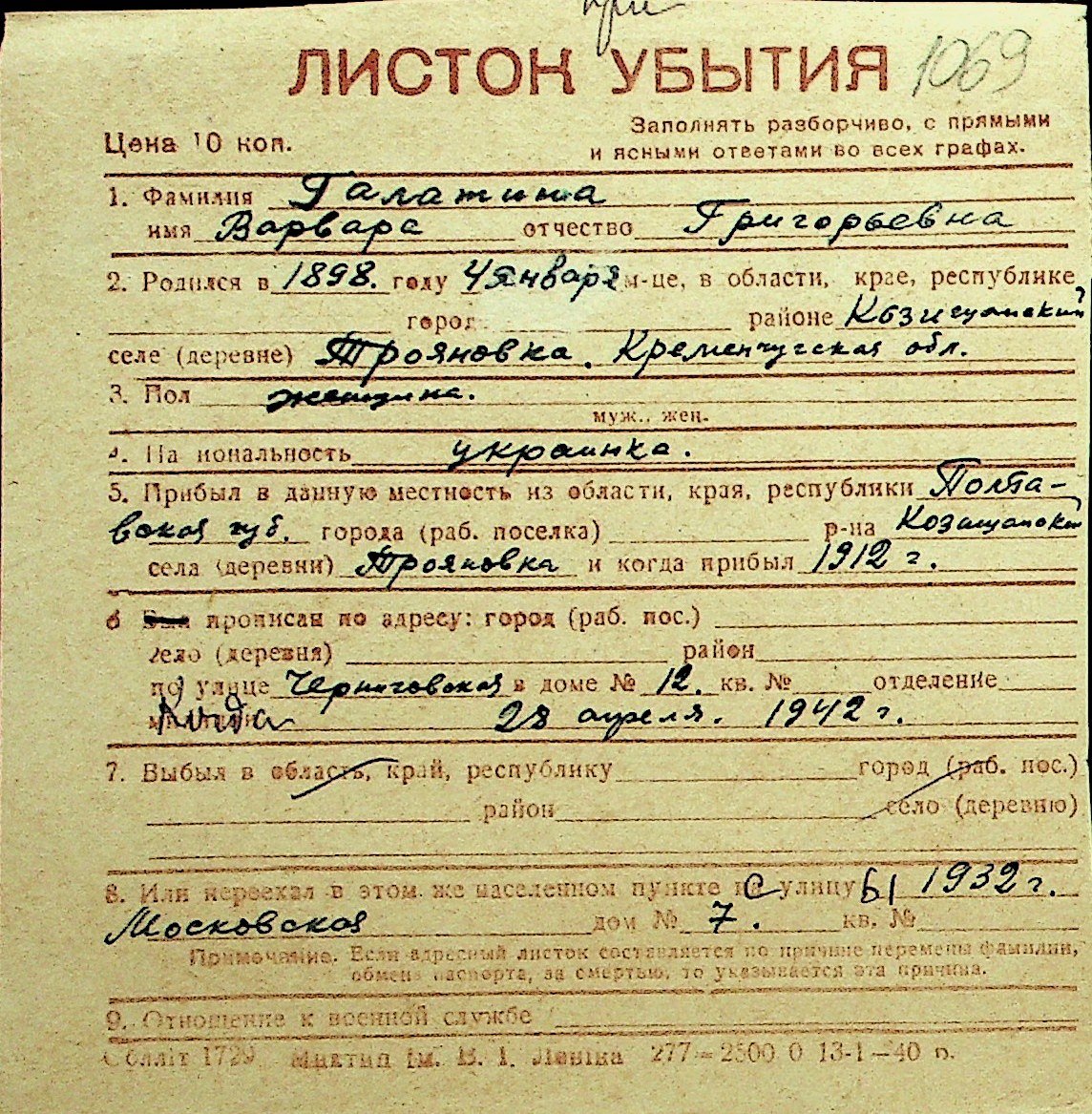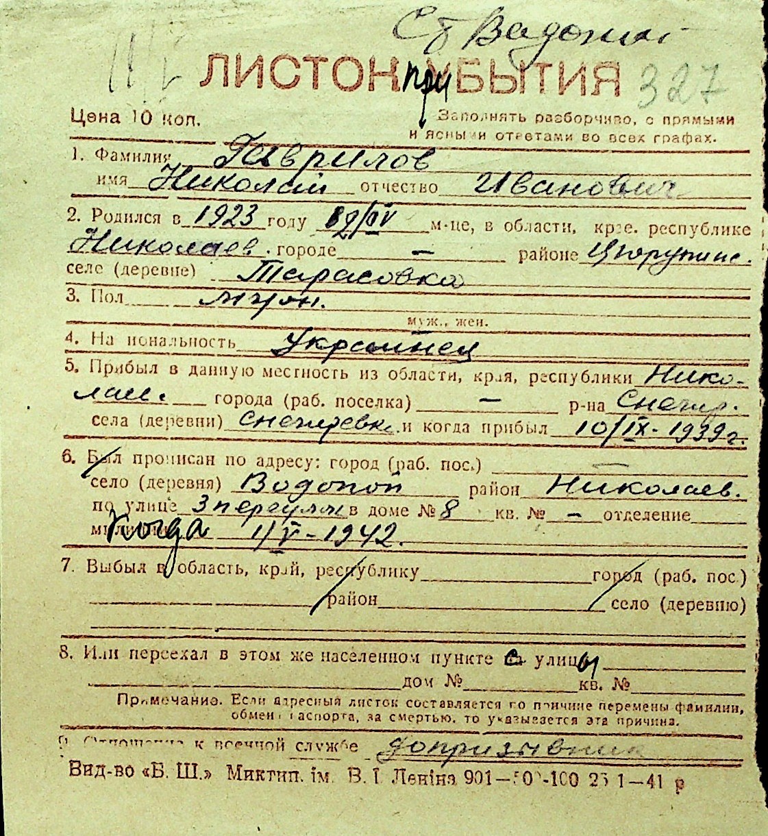 • • Перелік карток до фонду № Н-1016