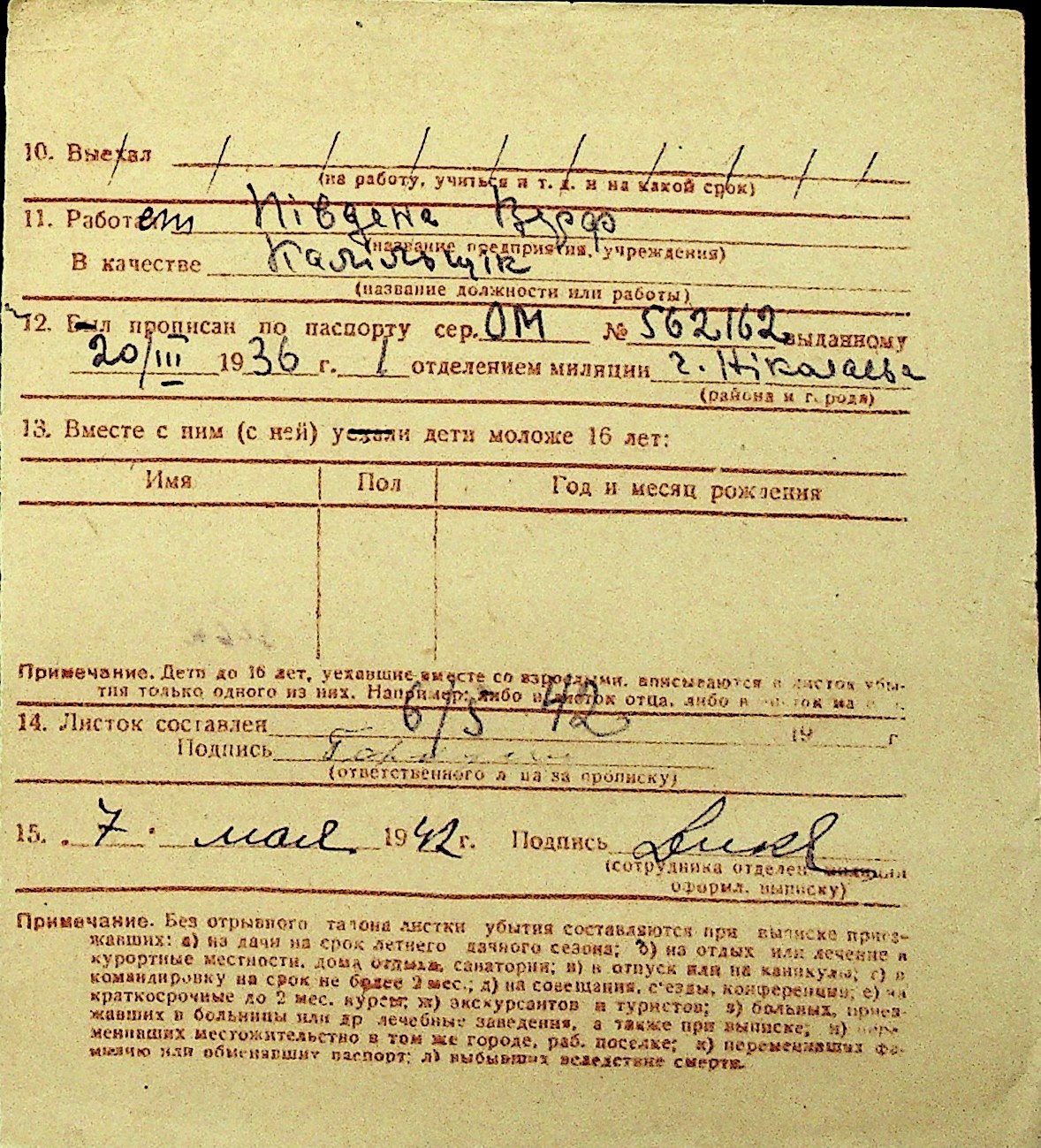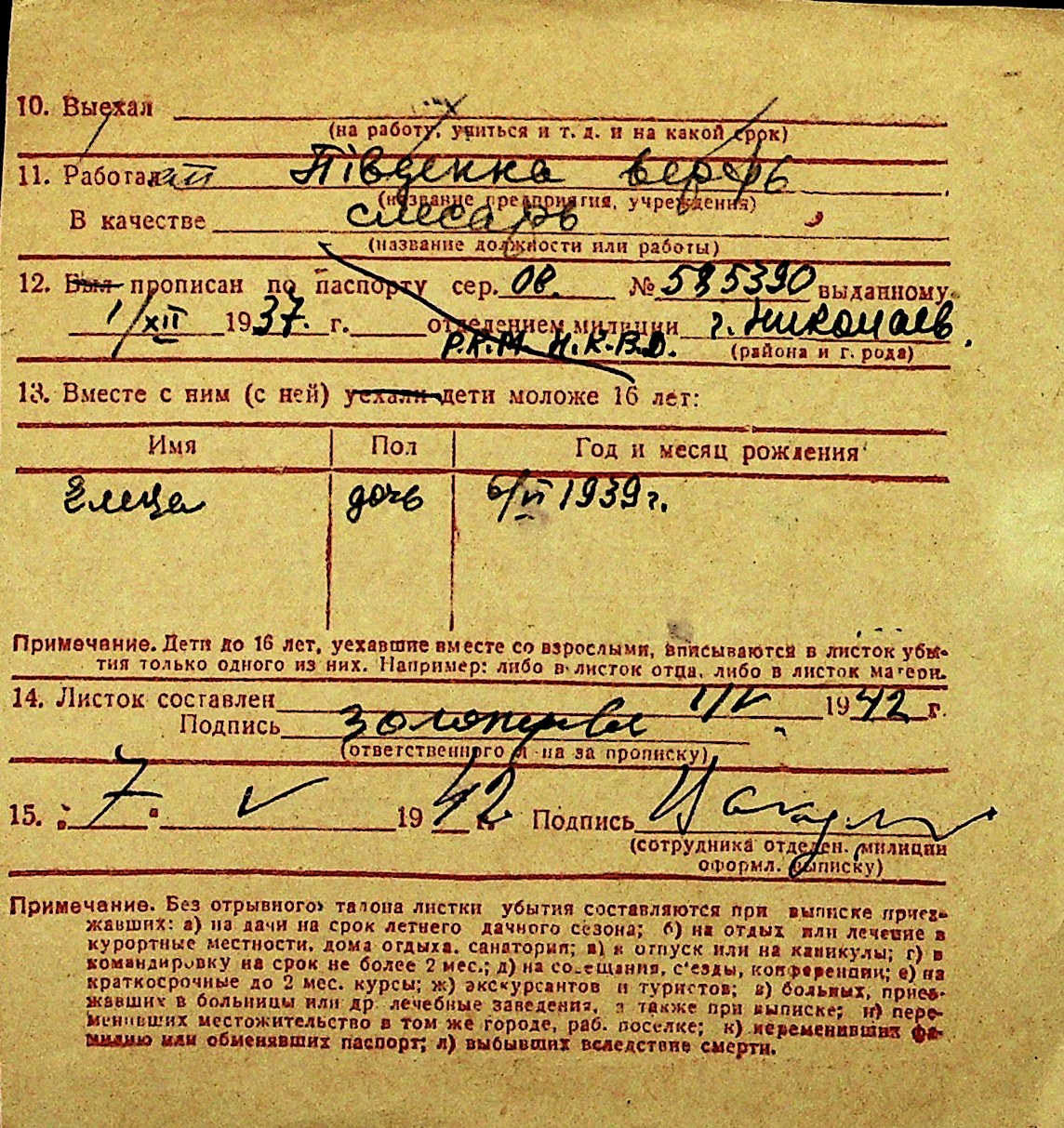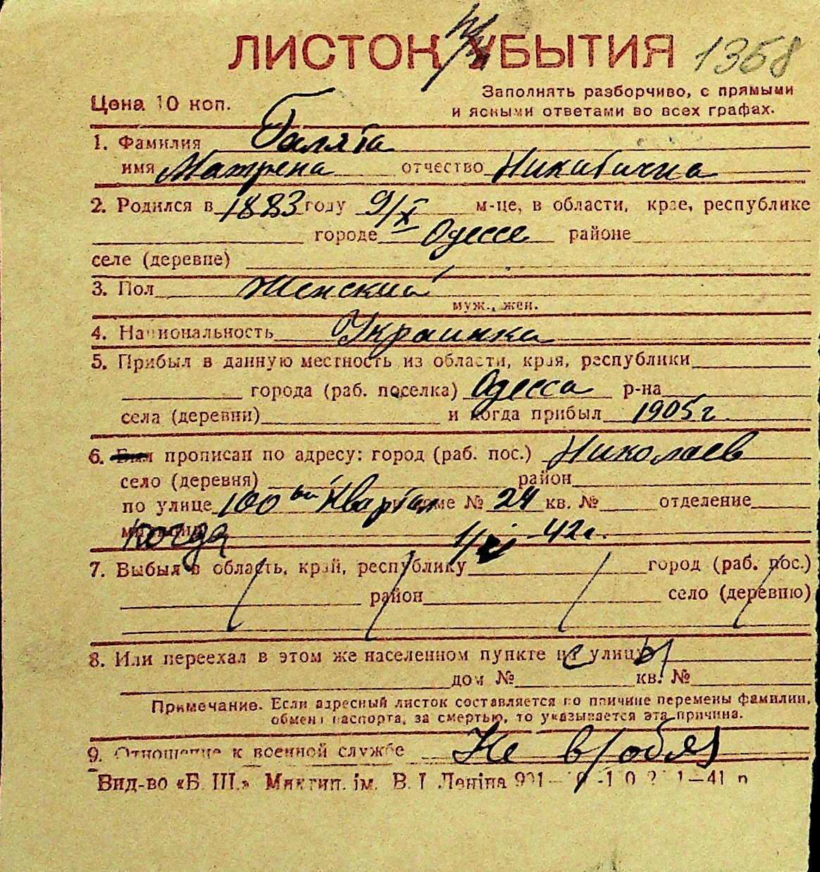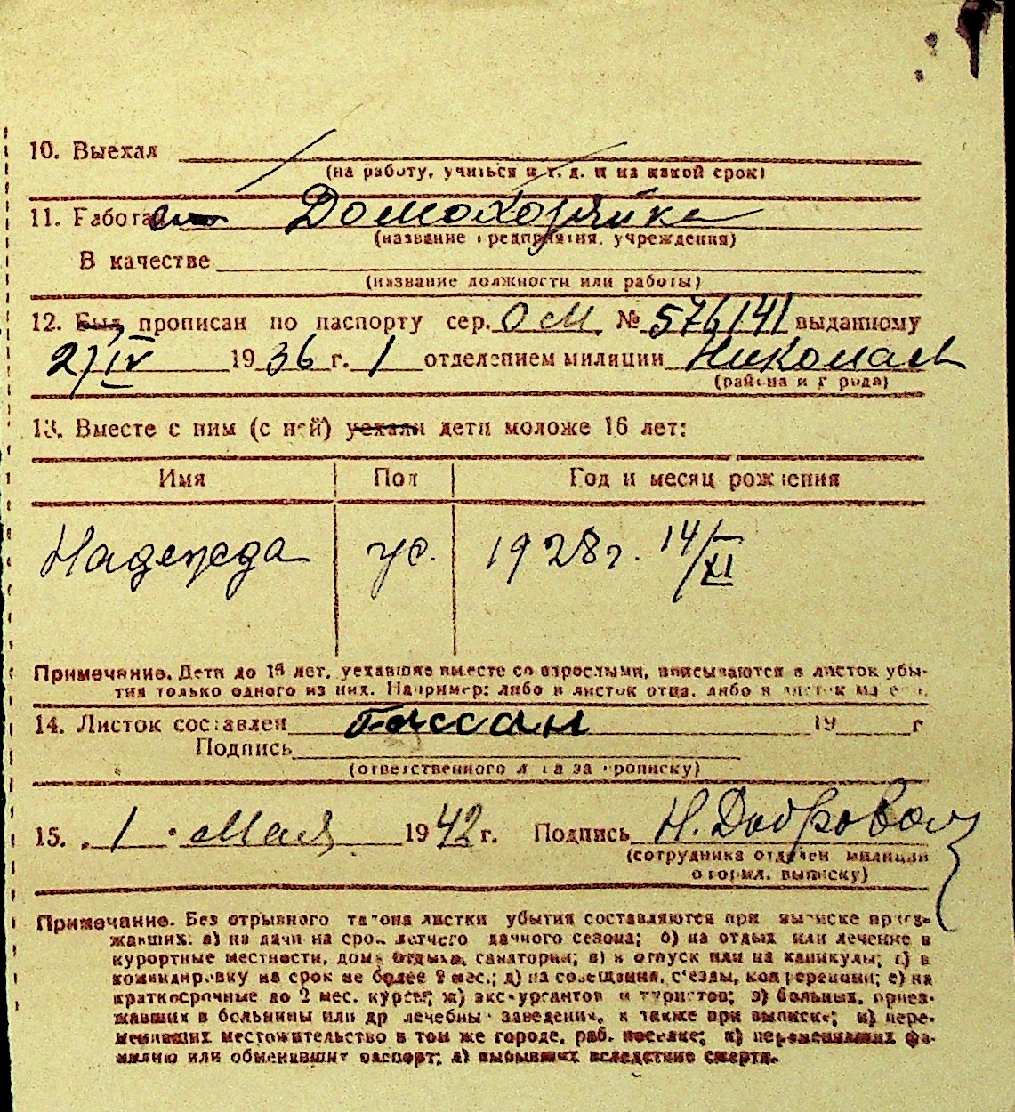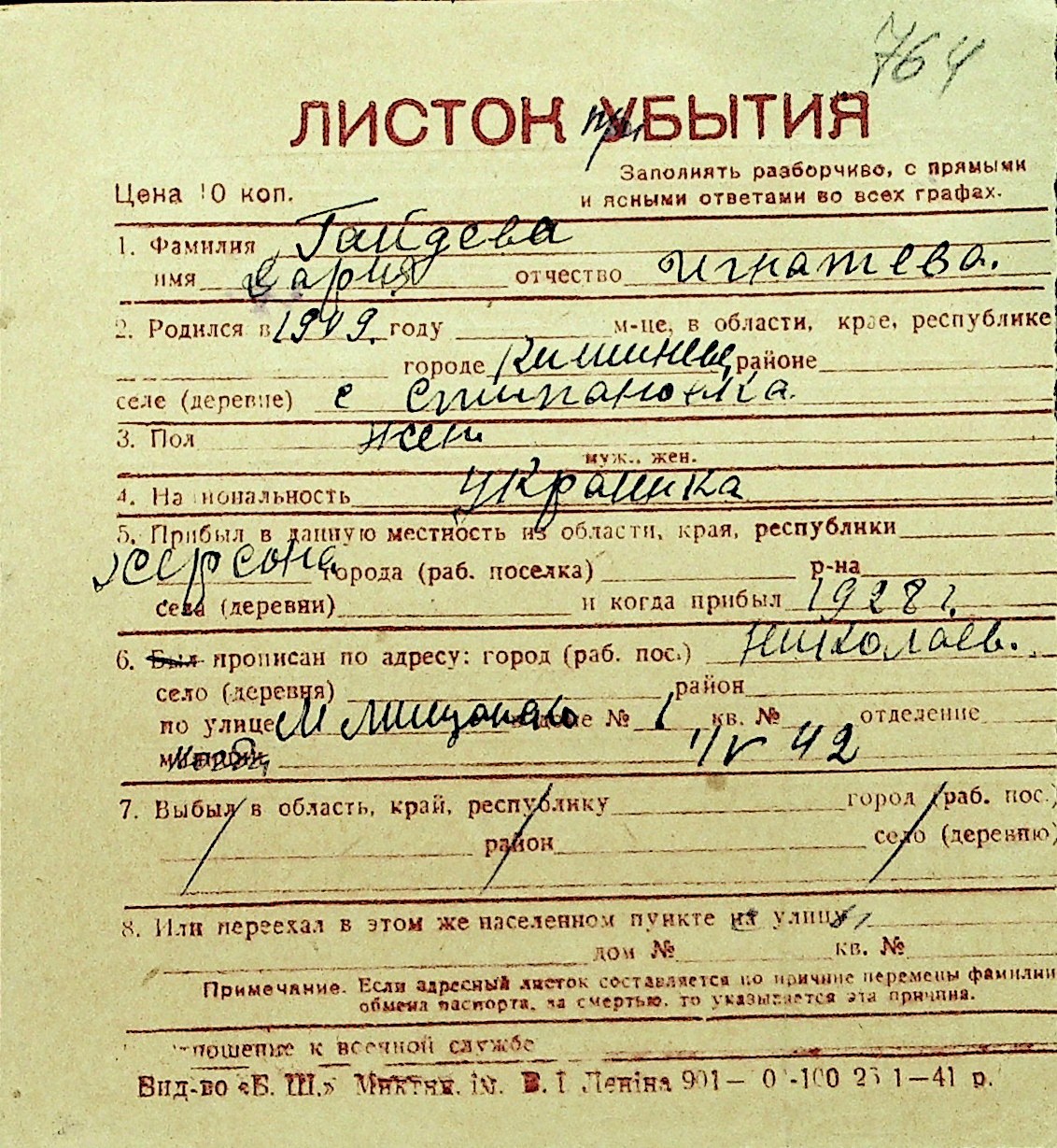 • • Перелік карток до фонду № Н-1016