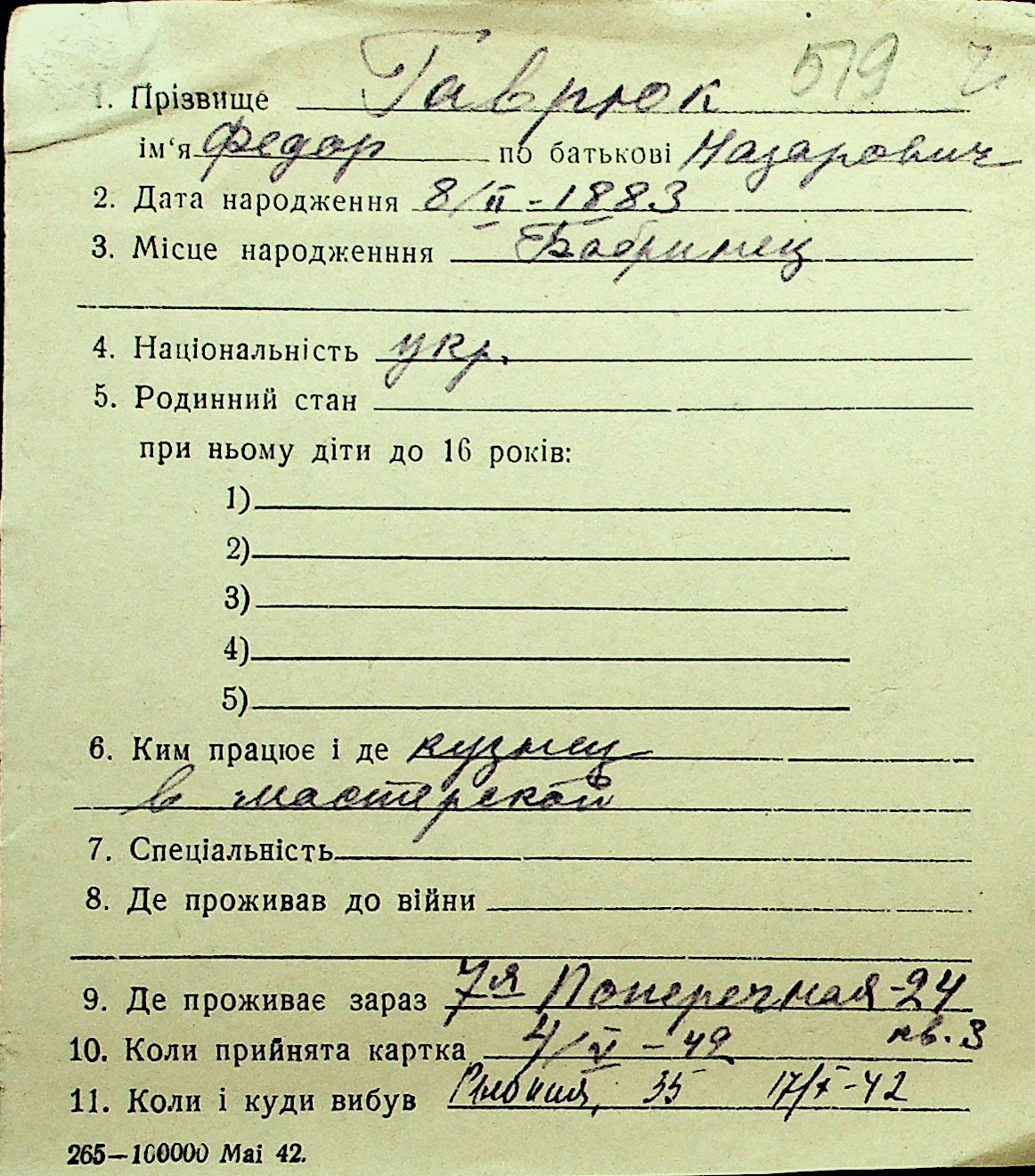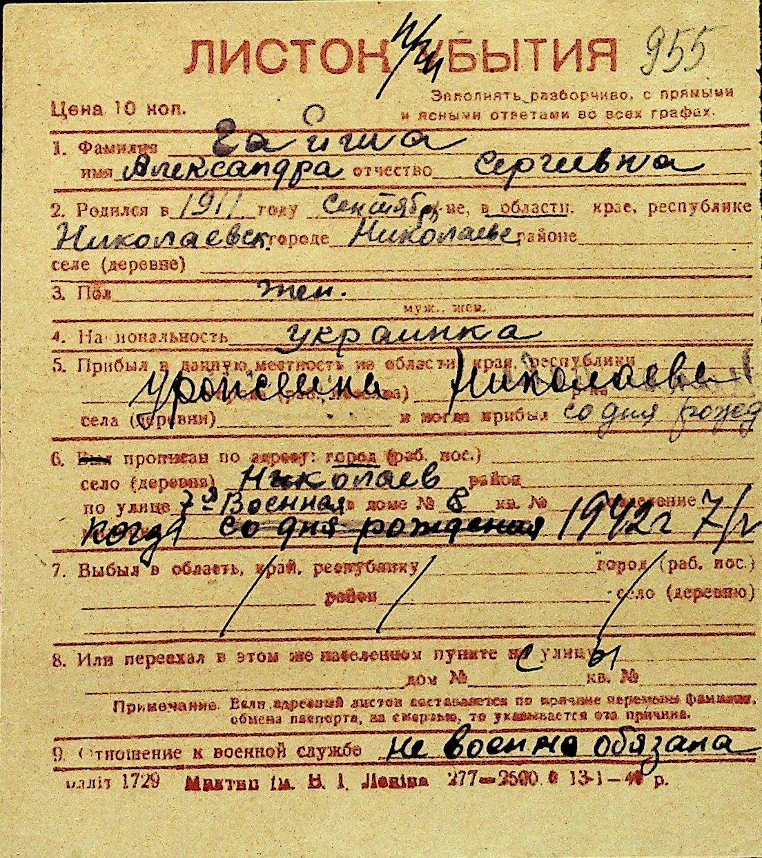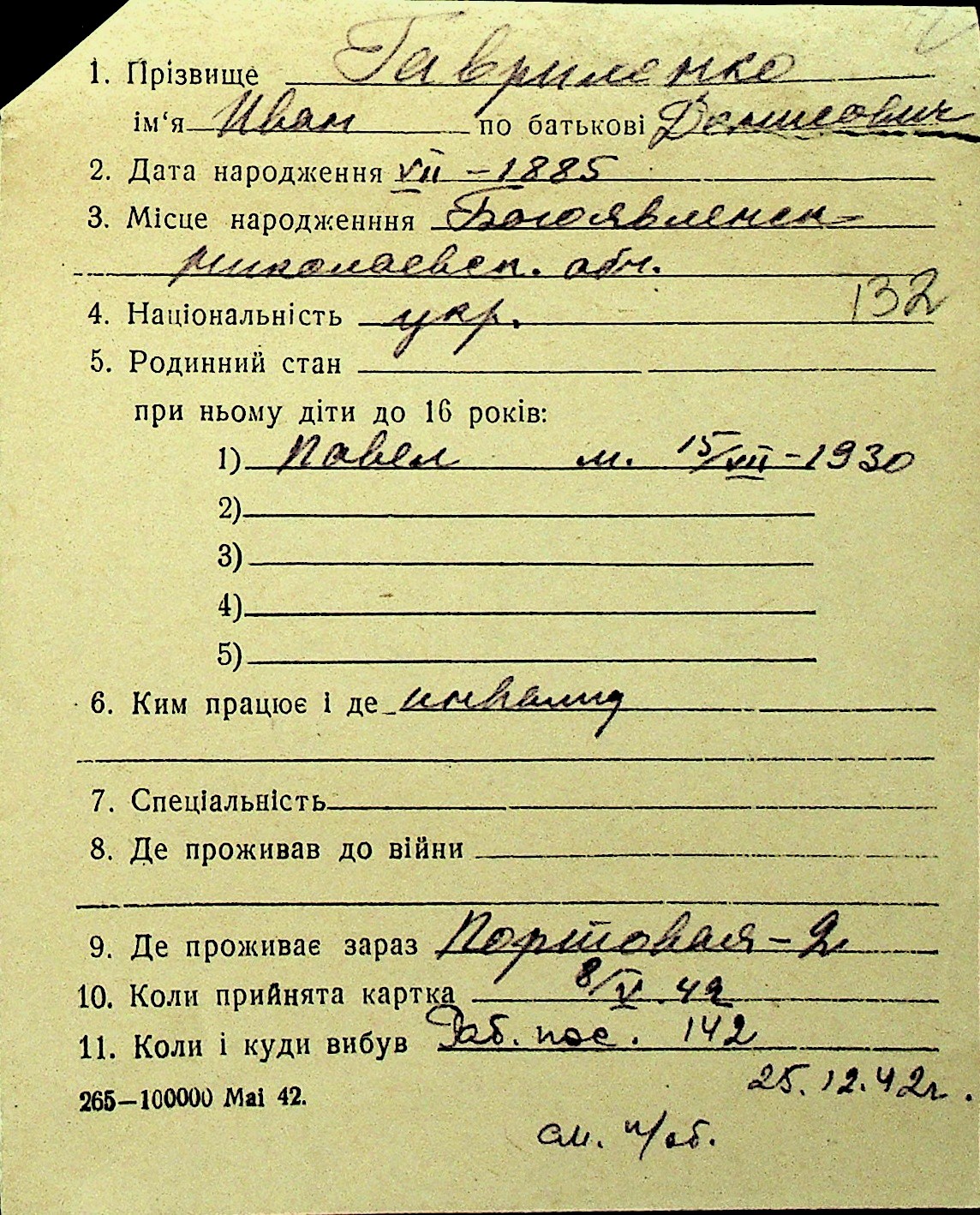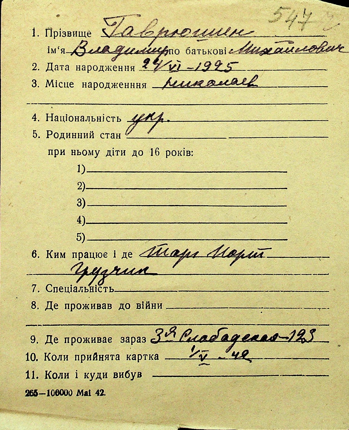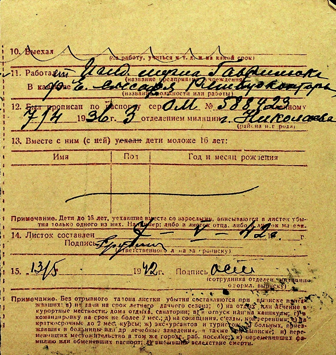 • • Перелік карток до фонду № Н-1016