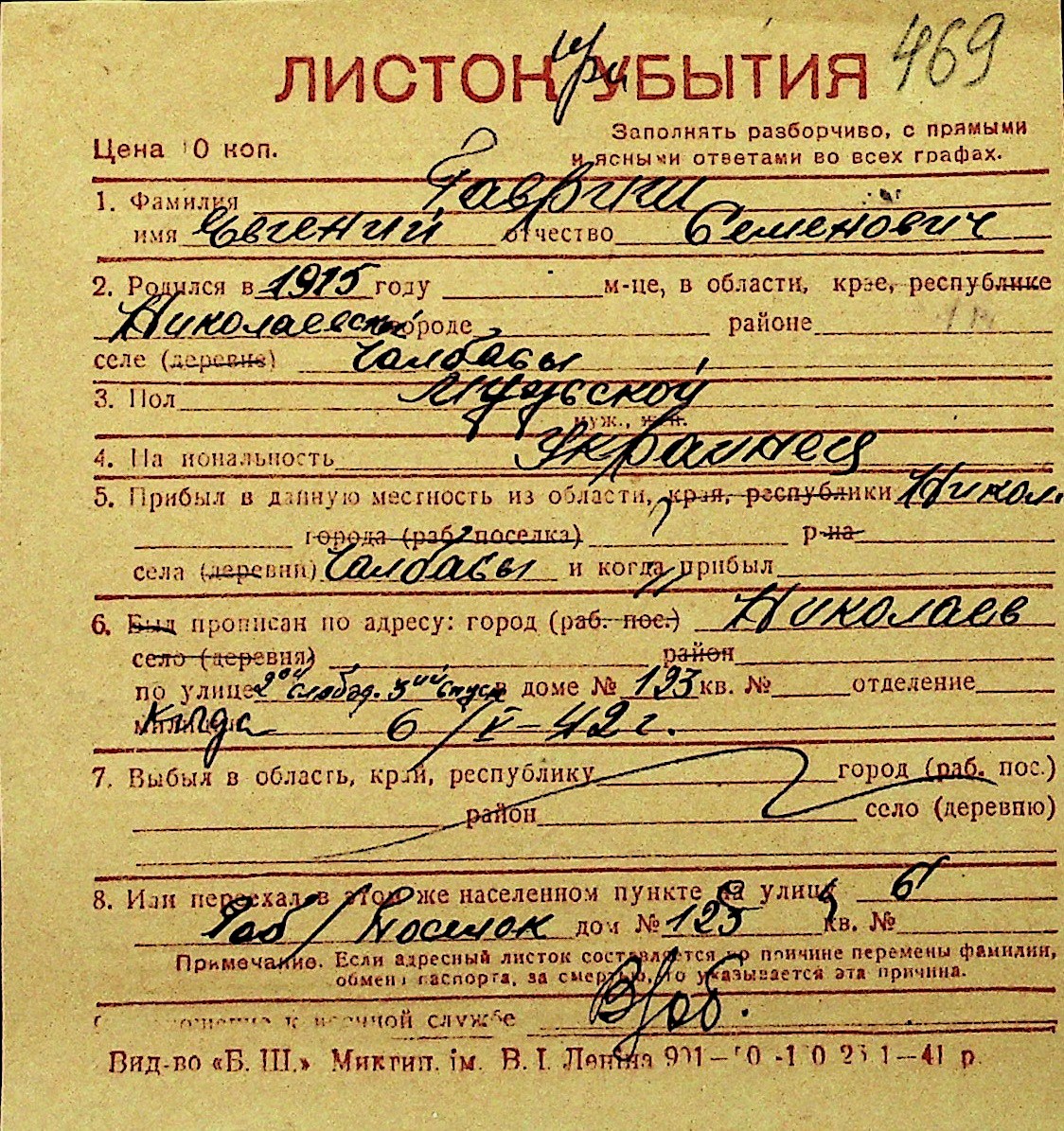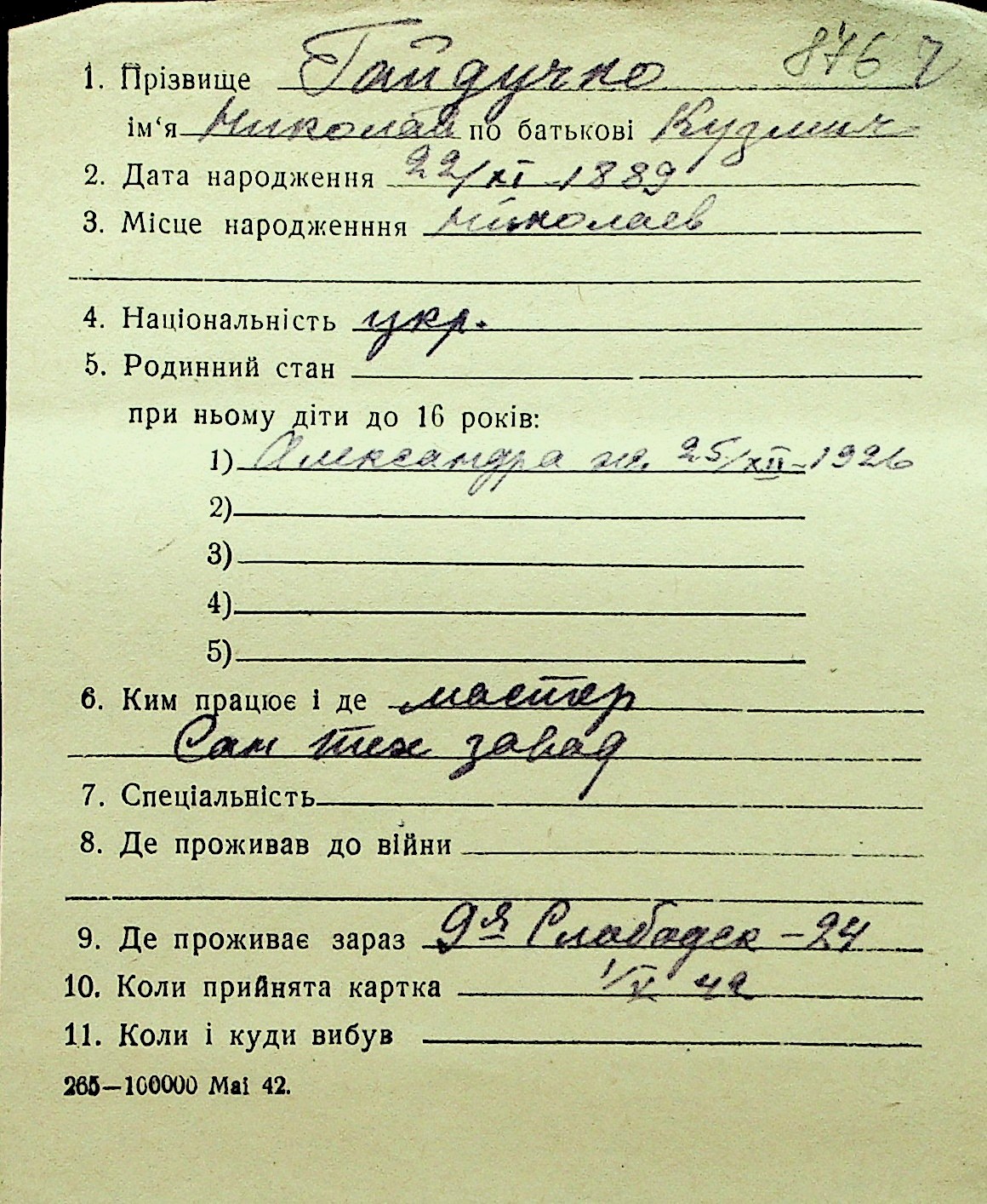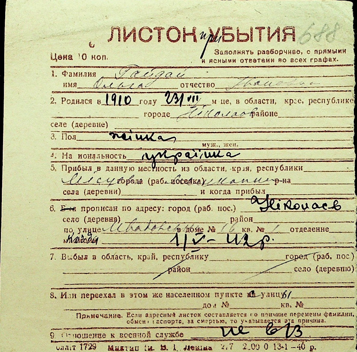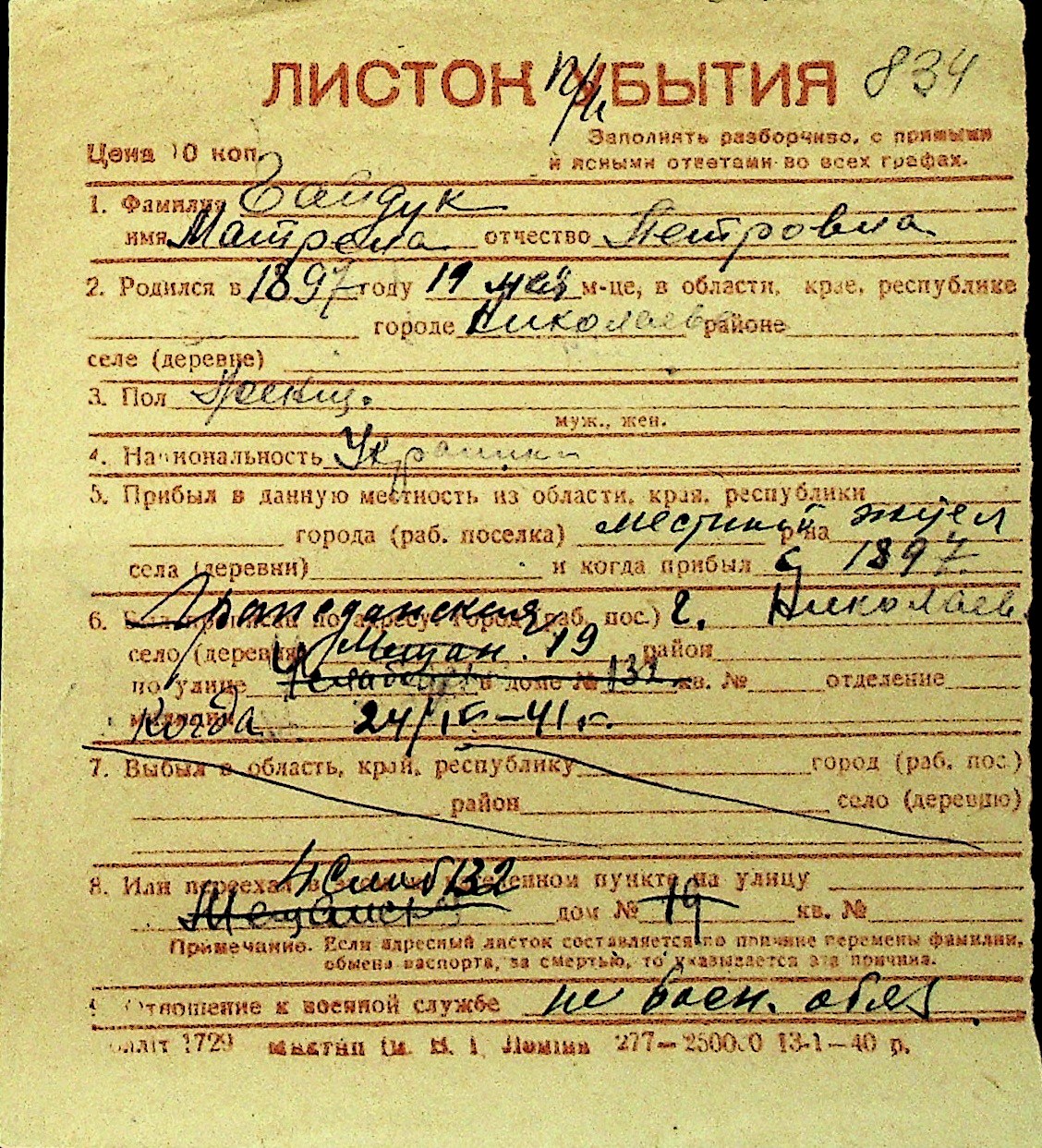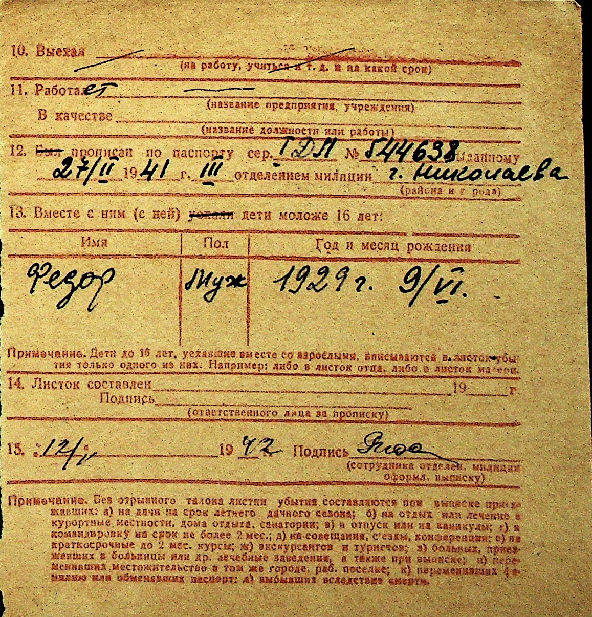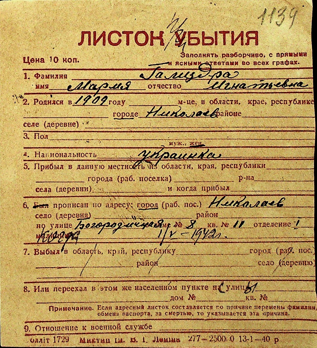 • • Перелік карток до фонду № Н-1016