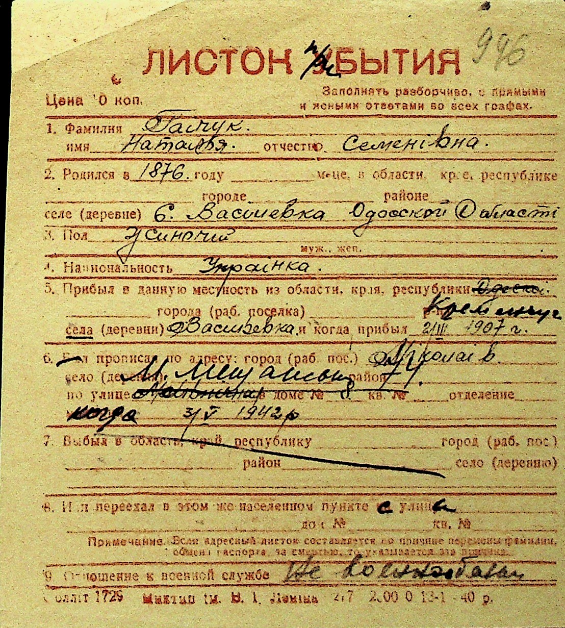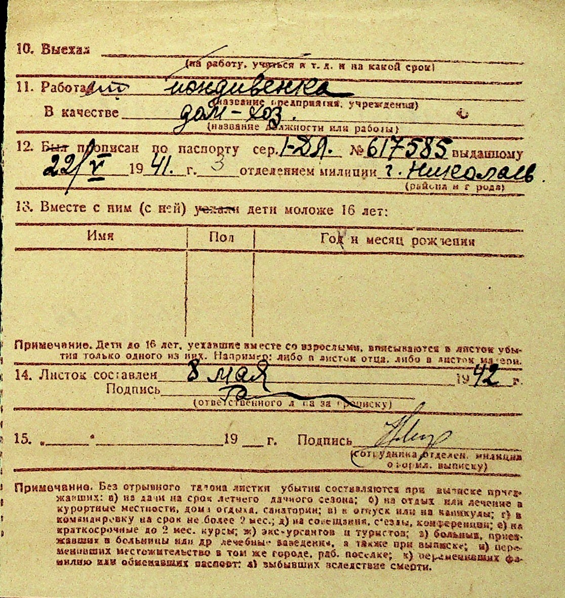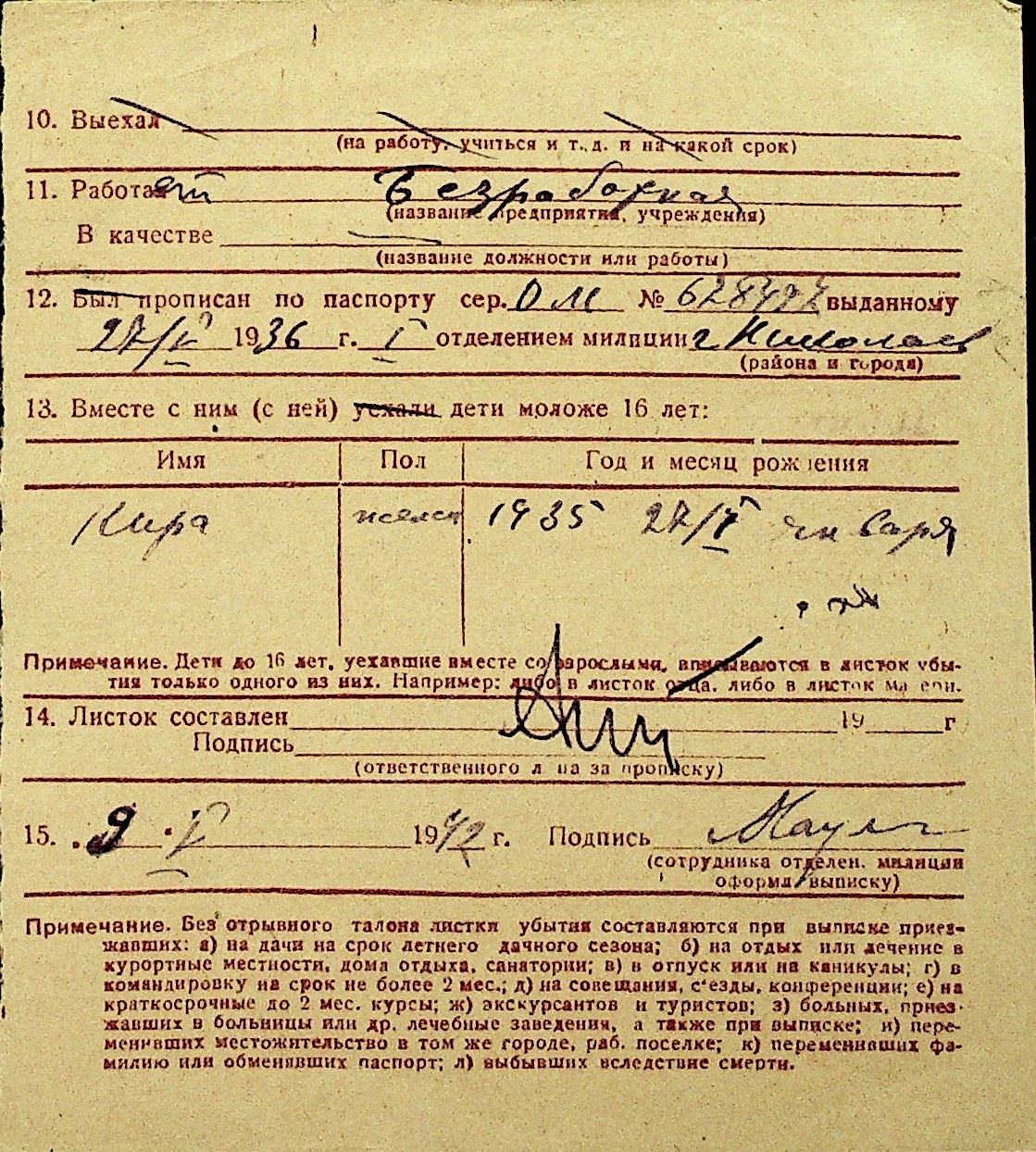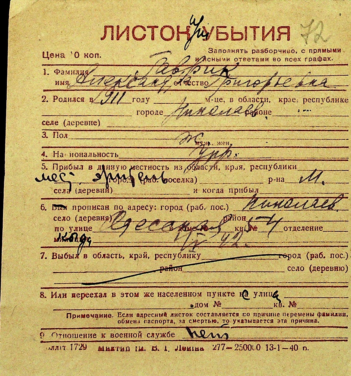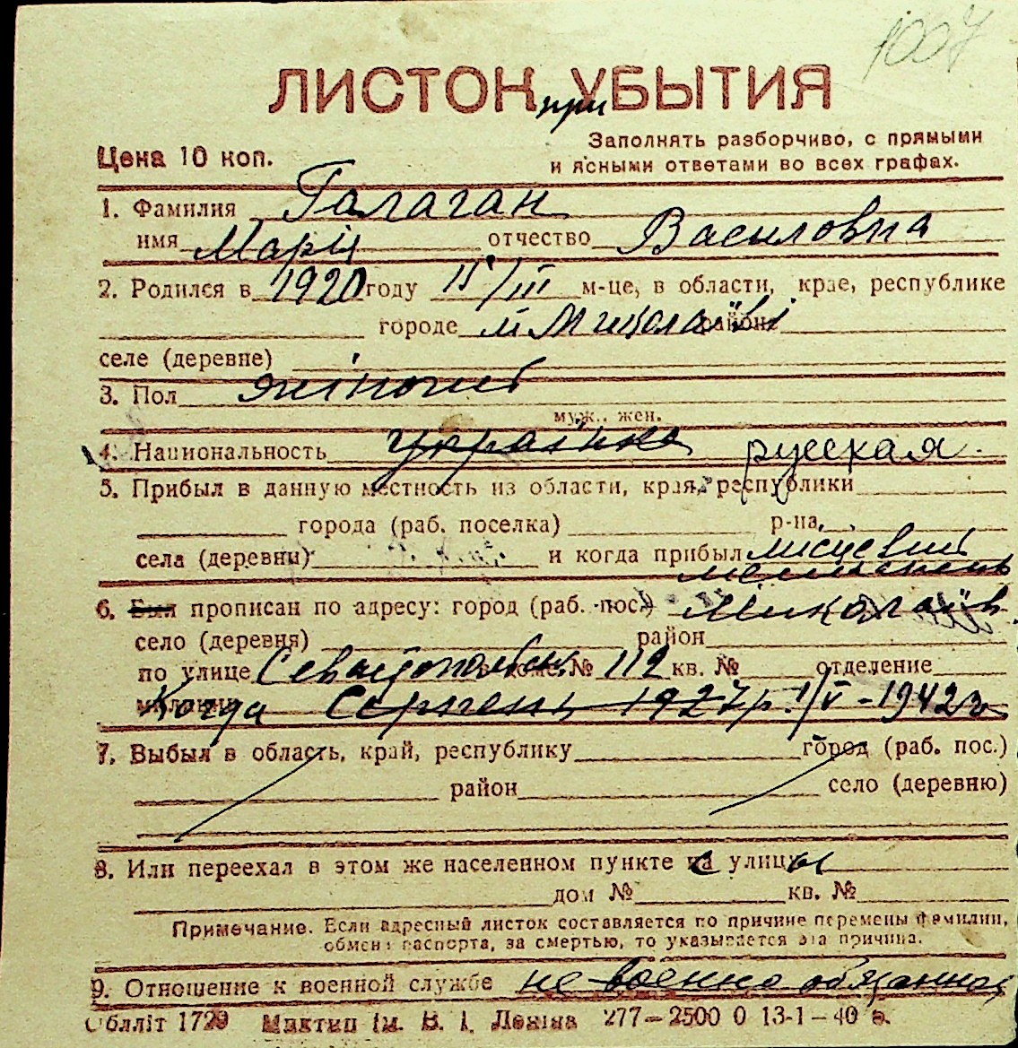 • • Перелік карток до фонду № Н-1016