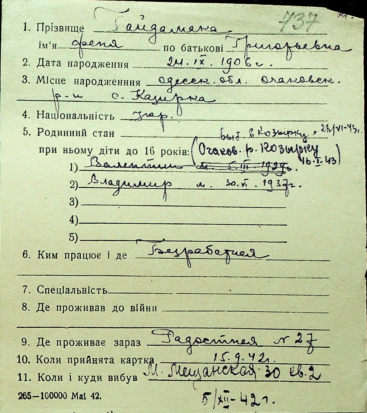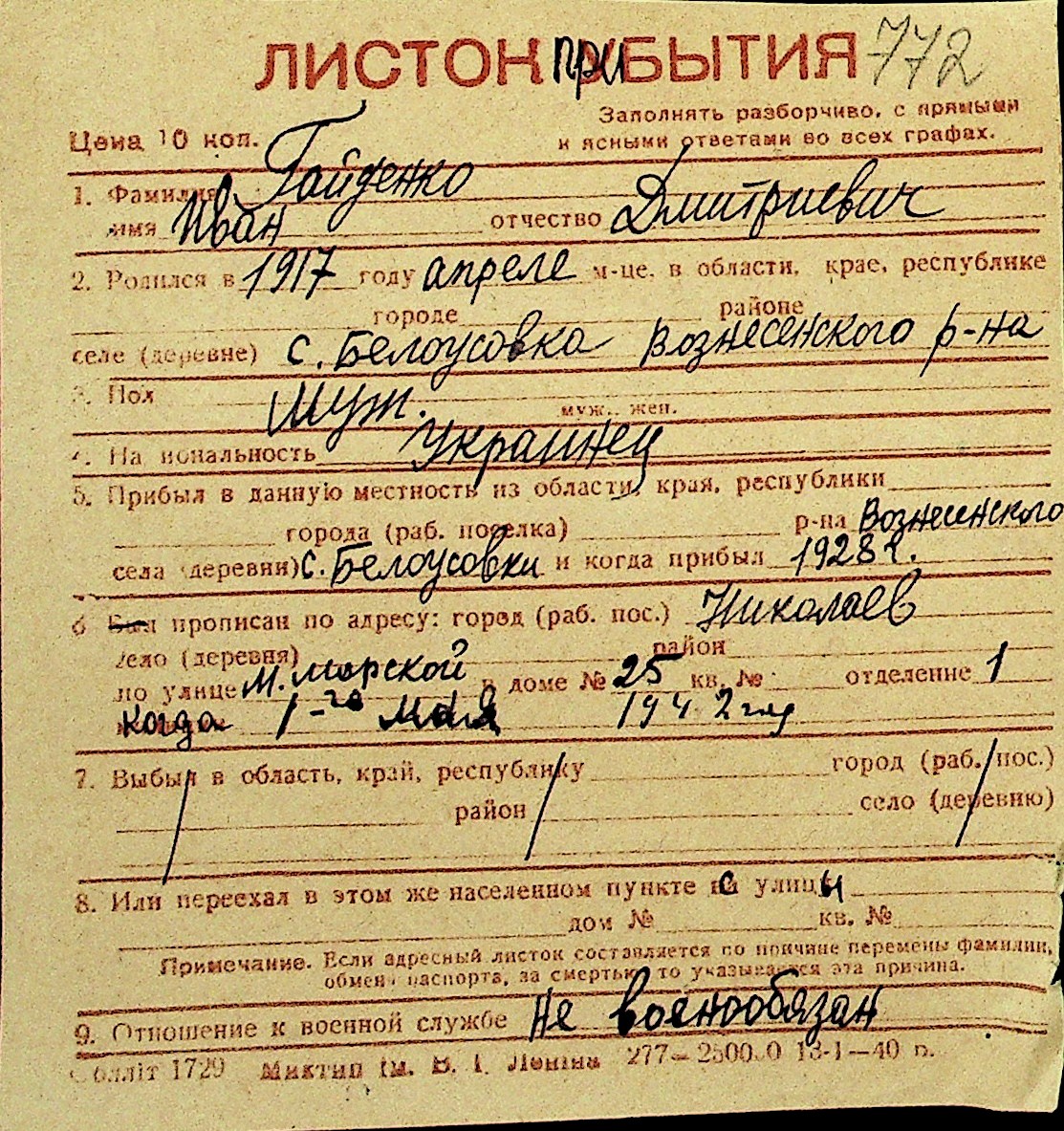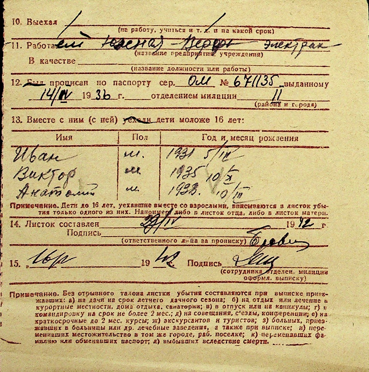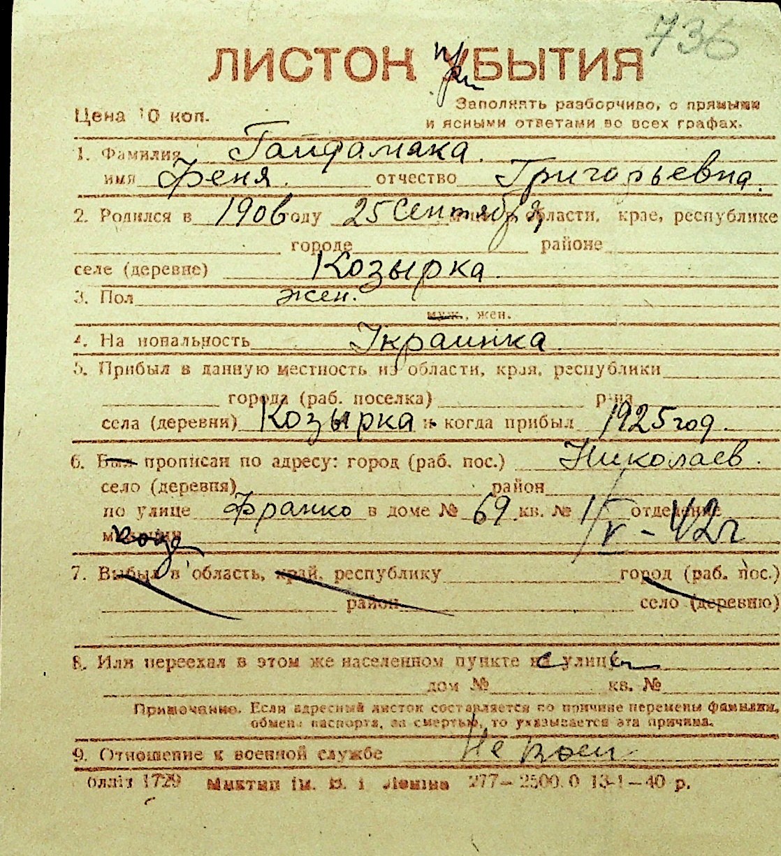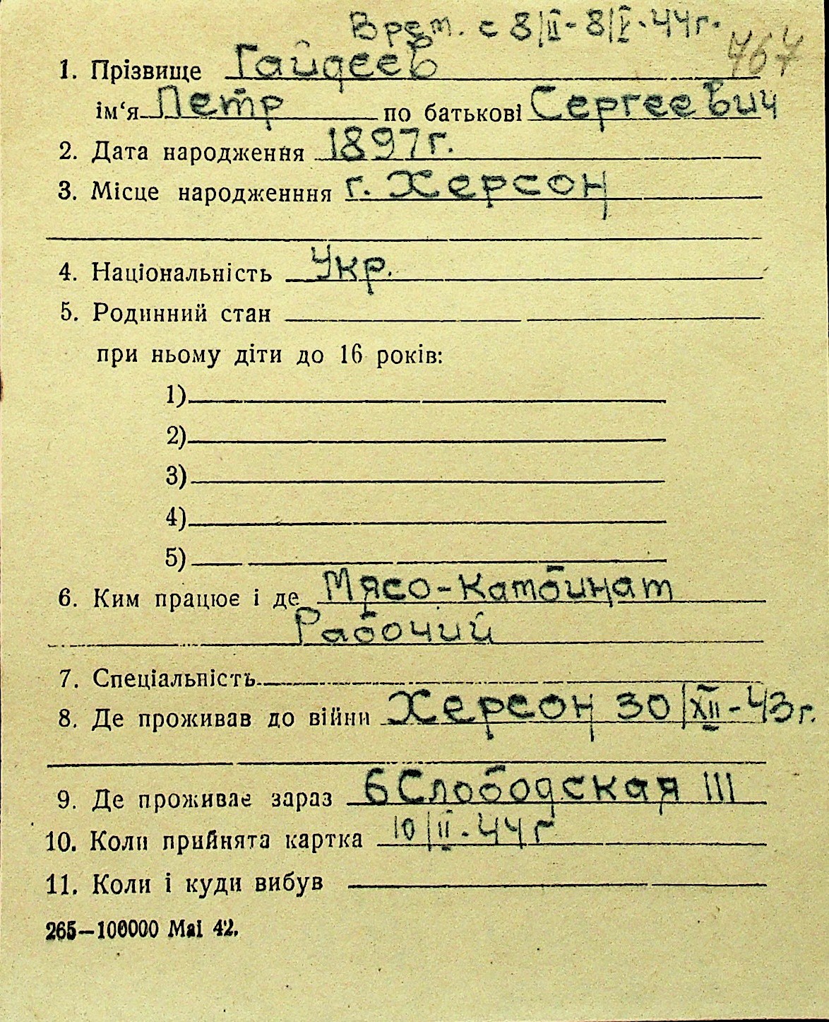 • • Перелік карток до фонду № Н-1016