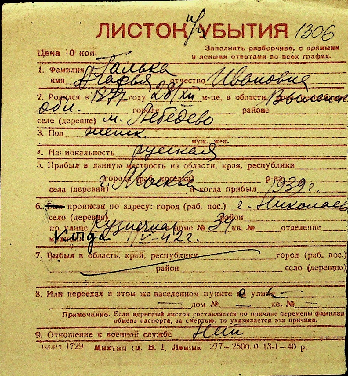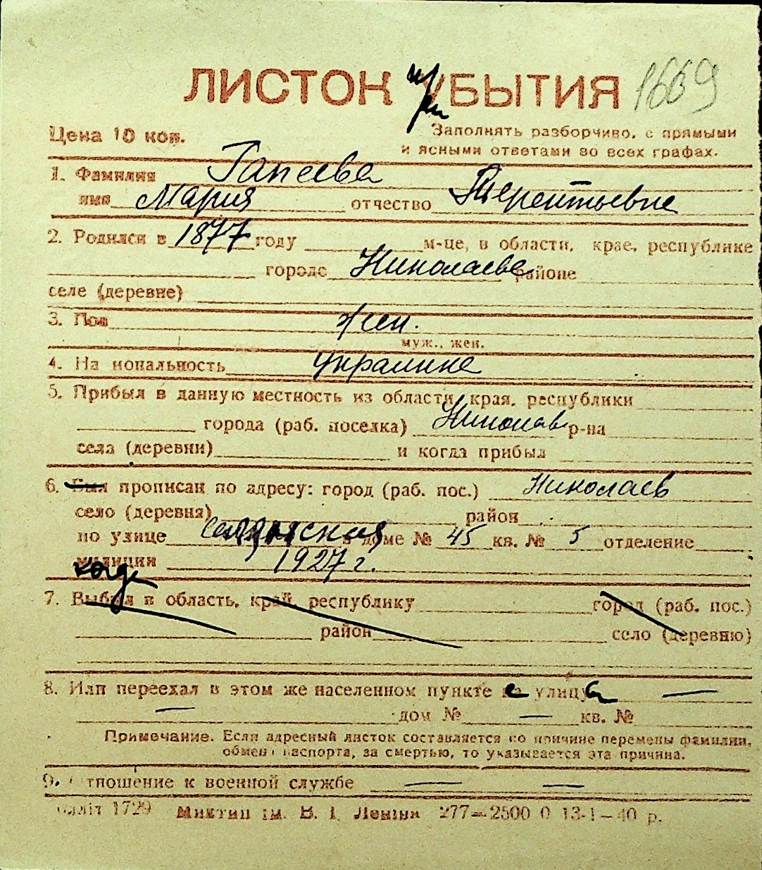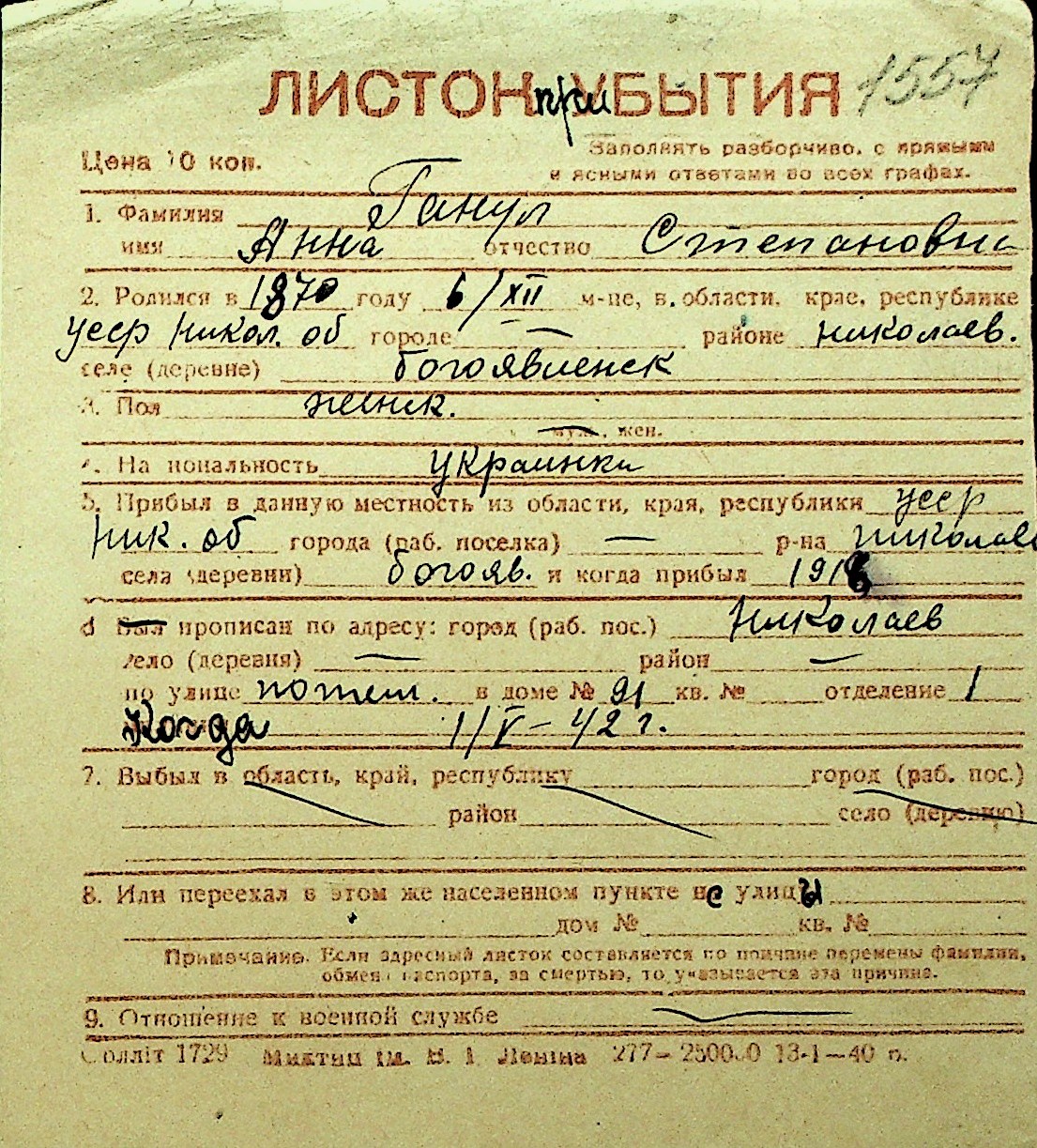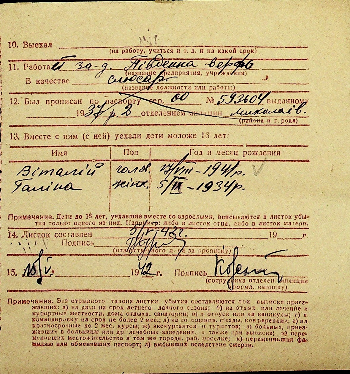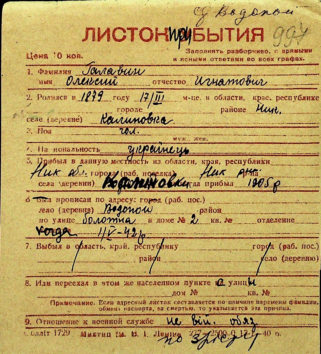 • • Перелік карток до фонду № Н-1016