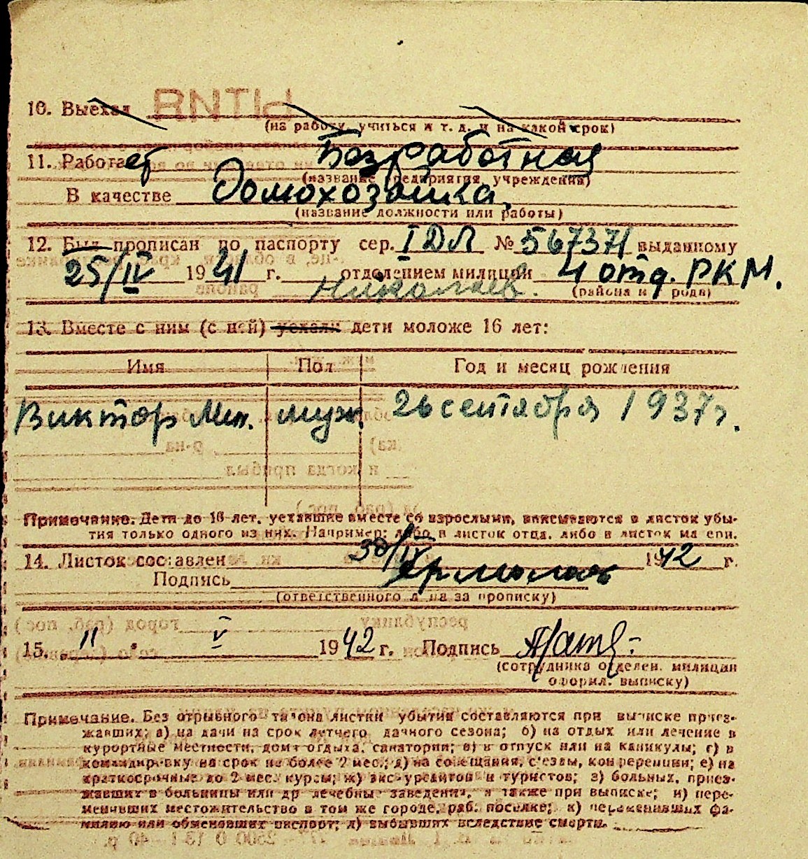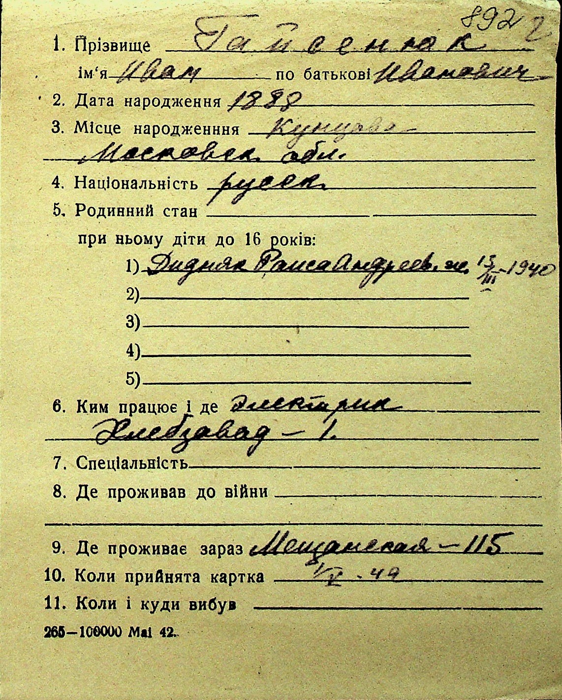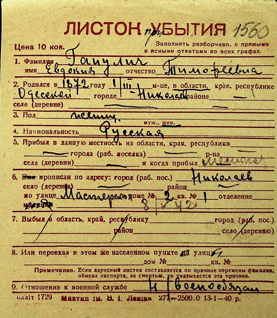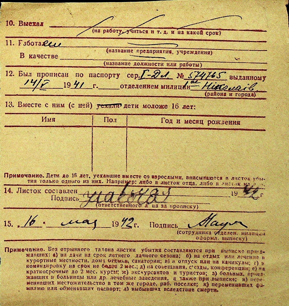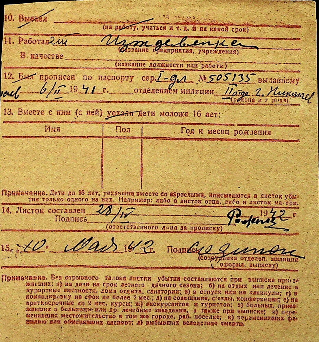 • • Перелік карток до фонду № Н-1016