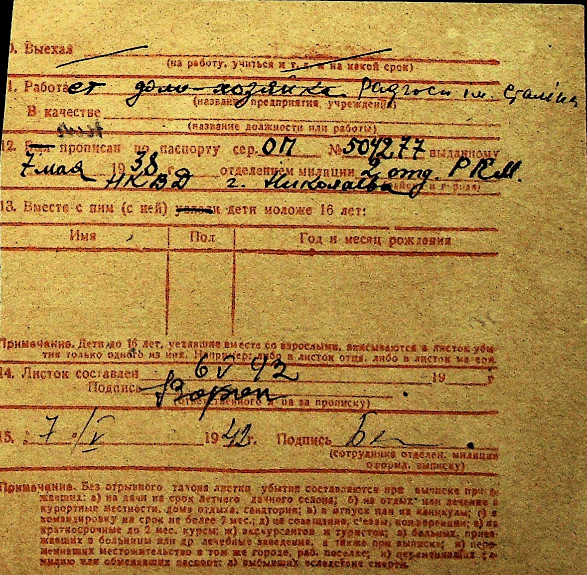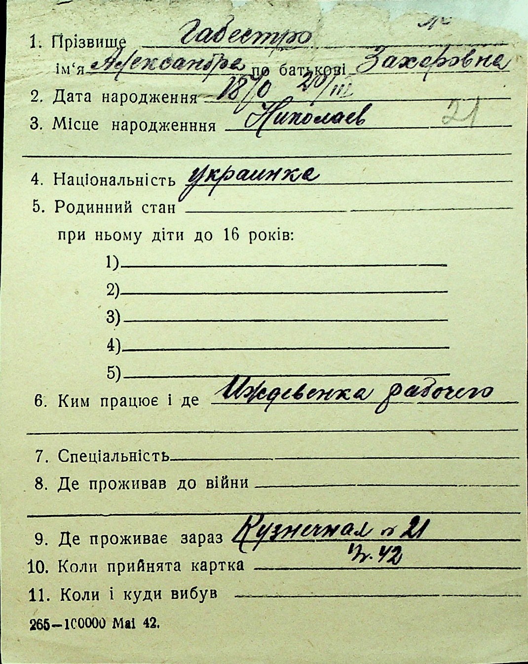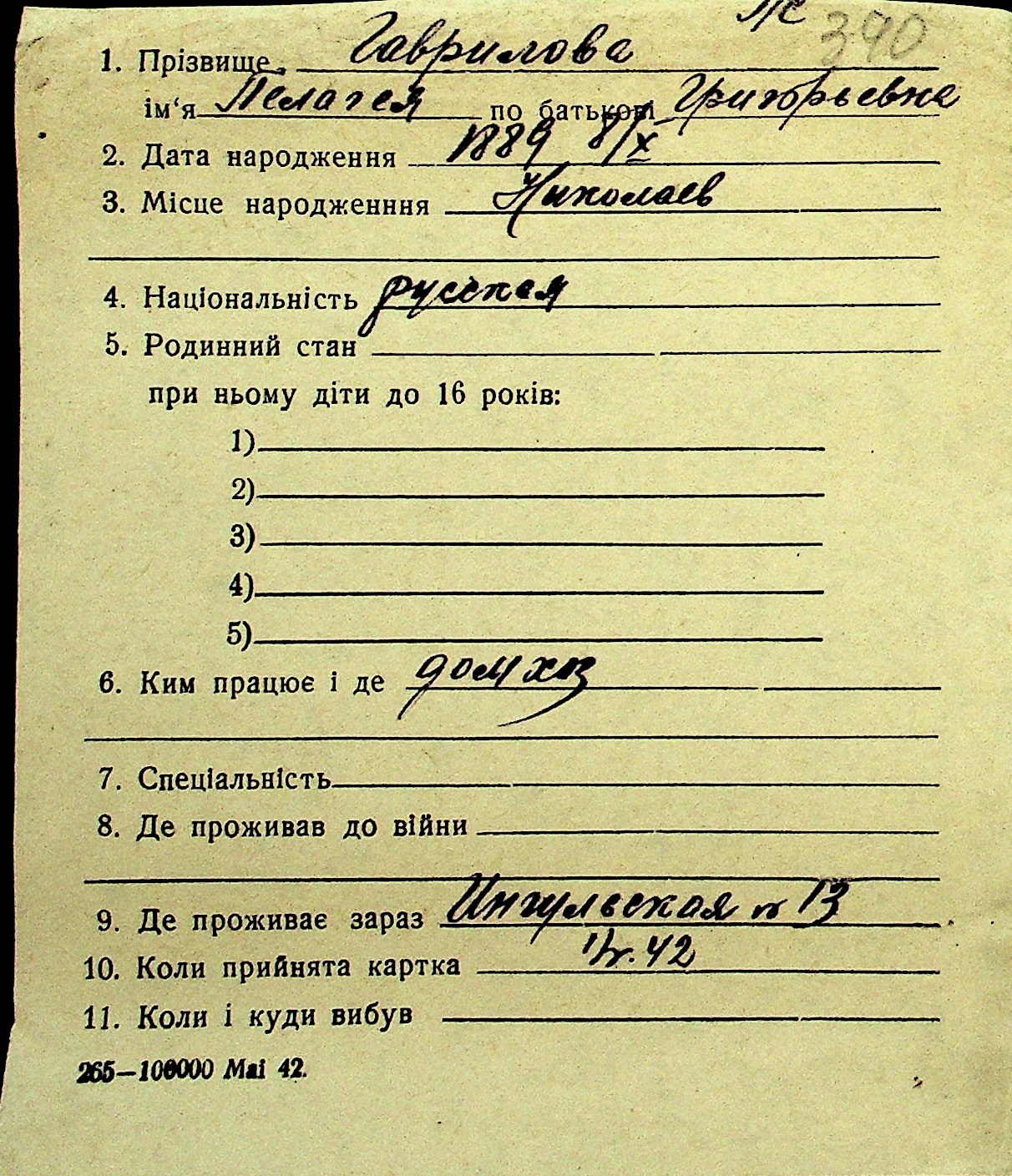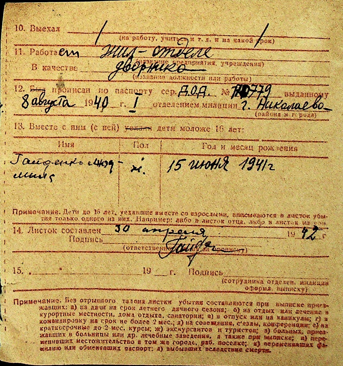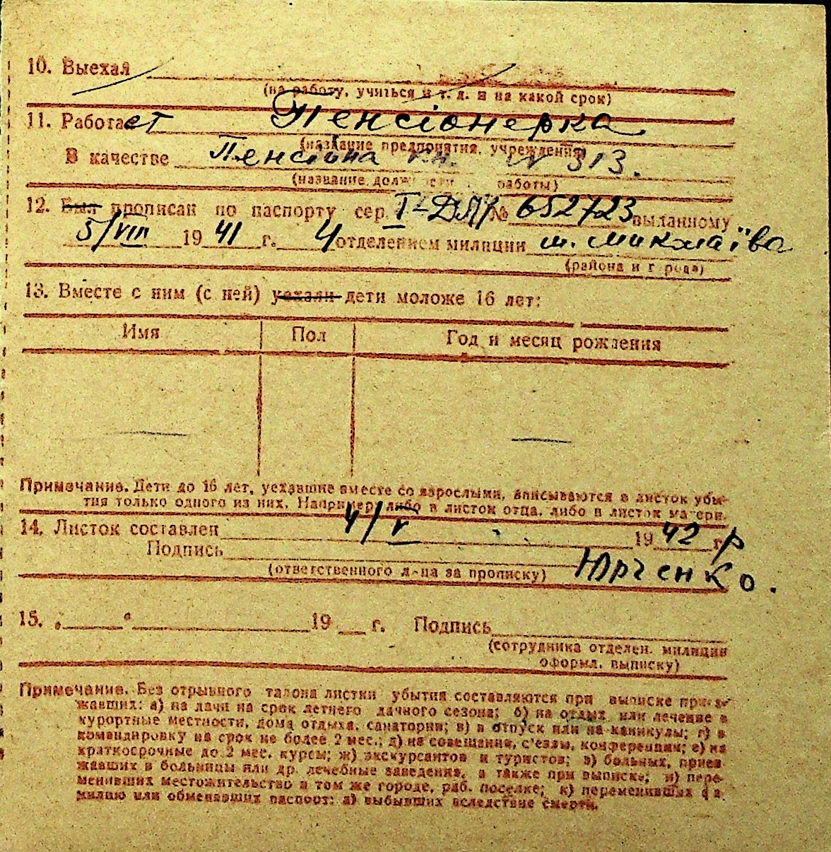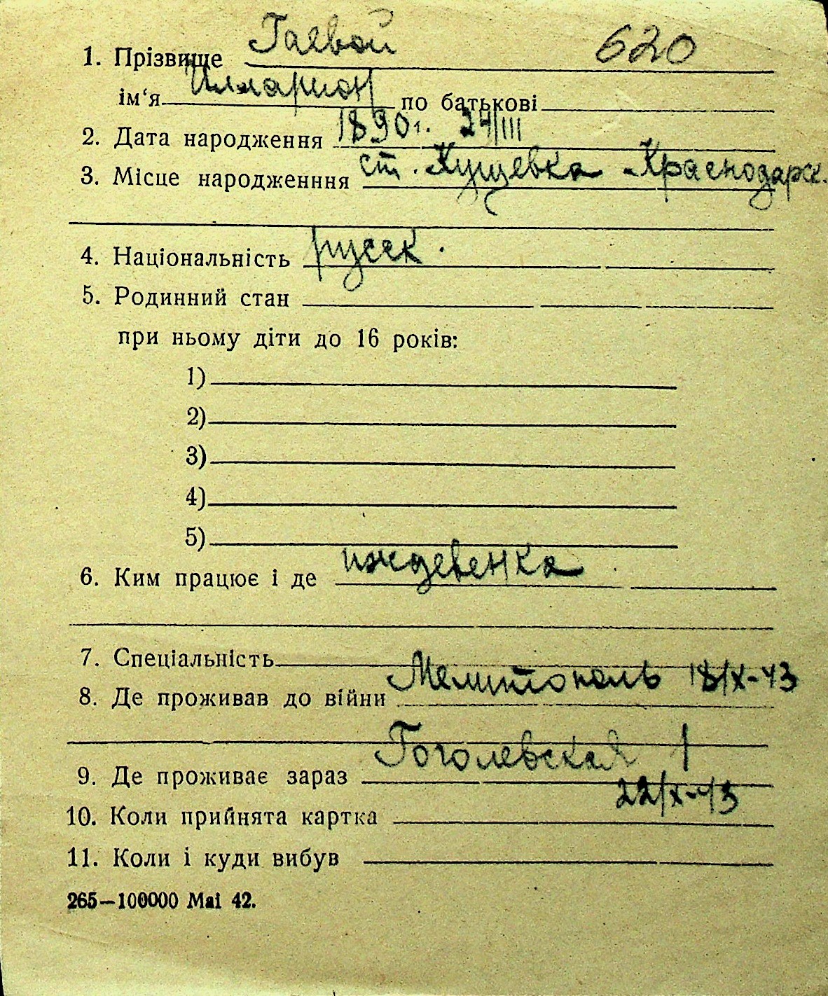 • • Перелік карток до фонду № Н-1016