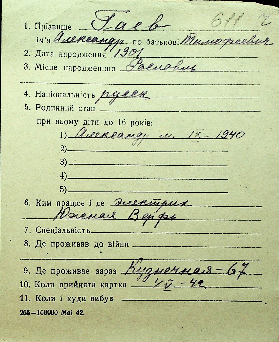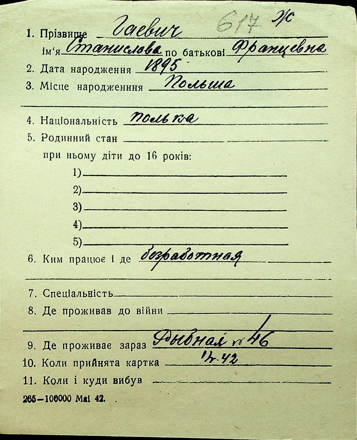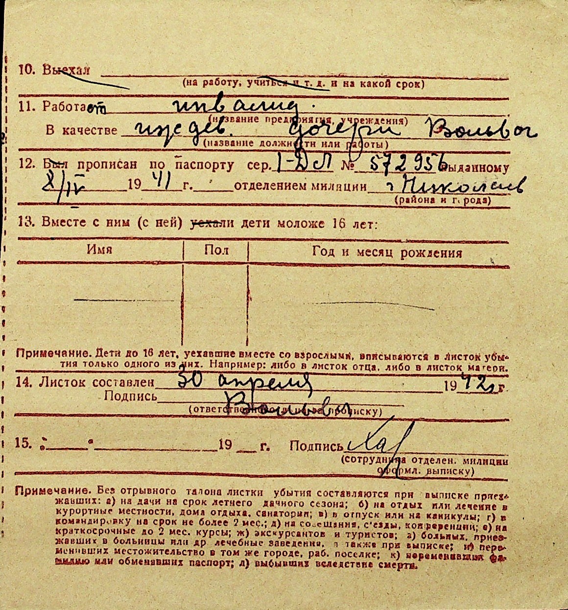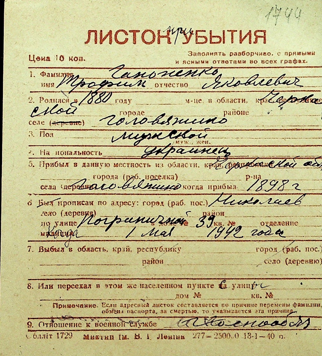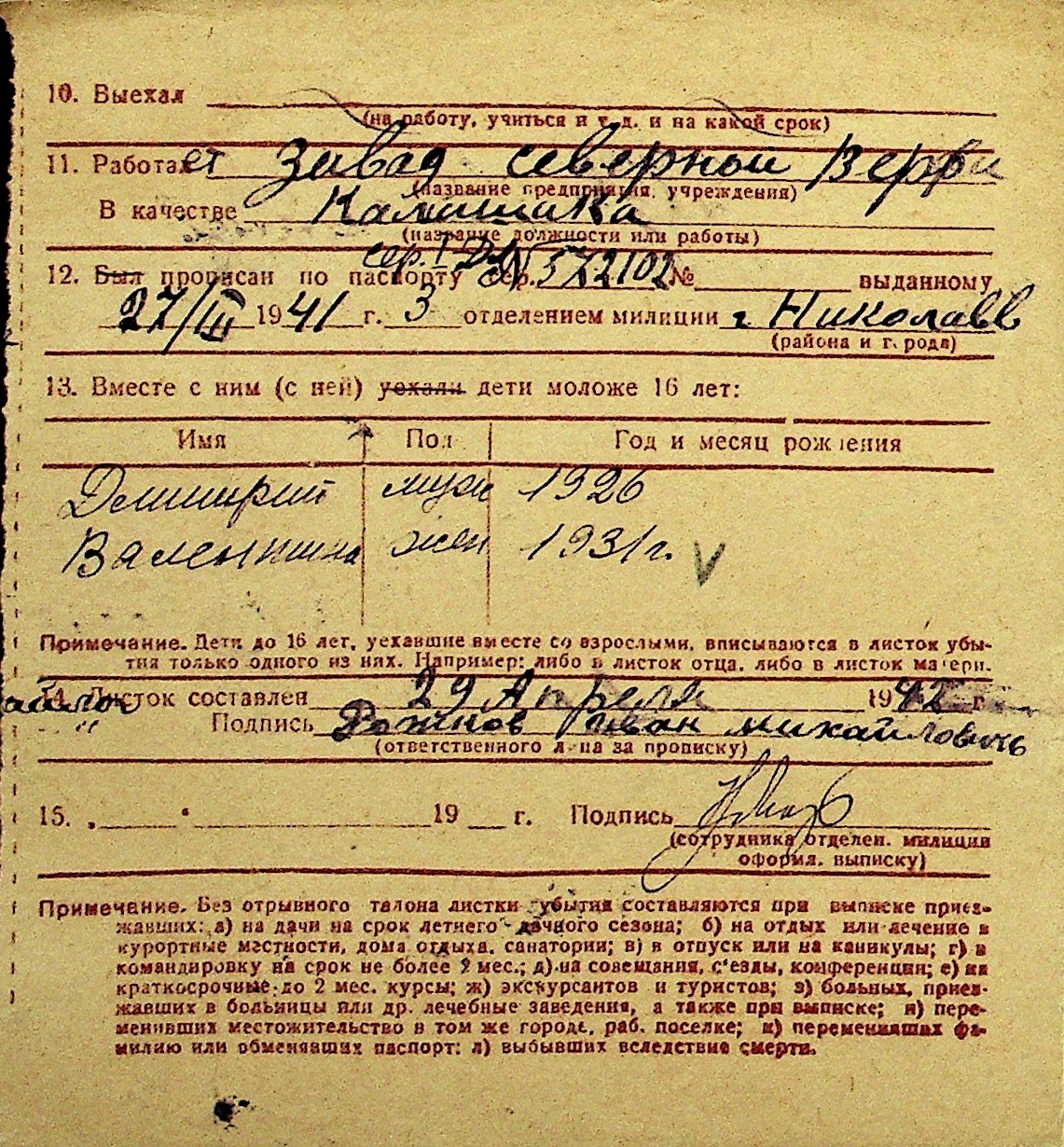 • • Перелік карток до фонду № Н-1016
