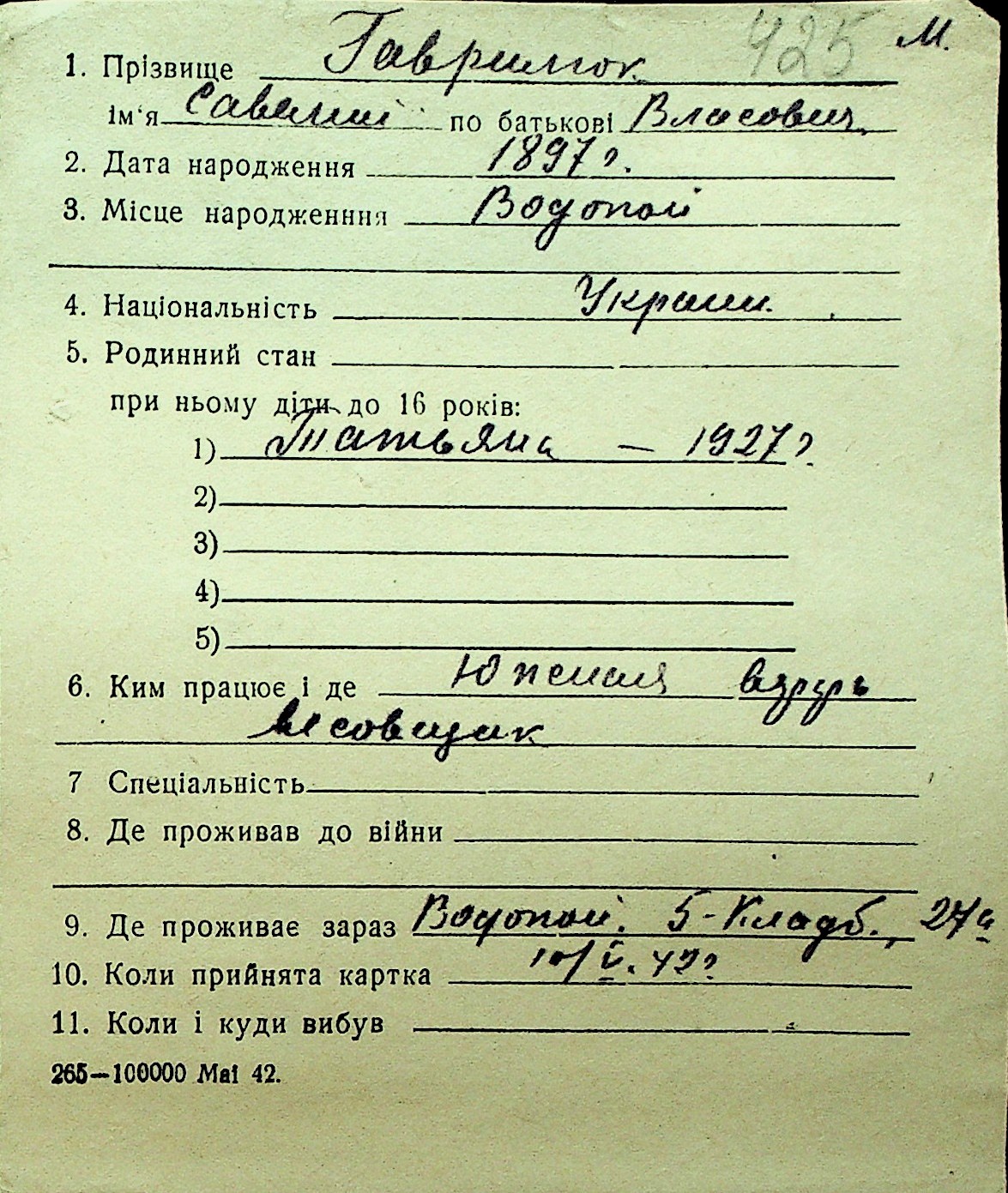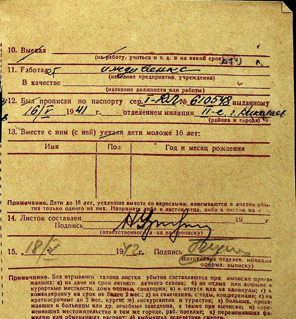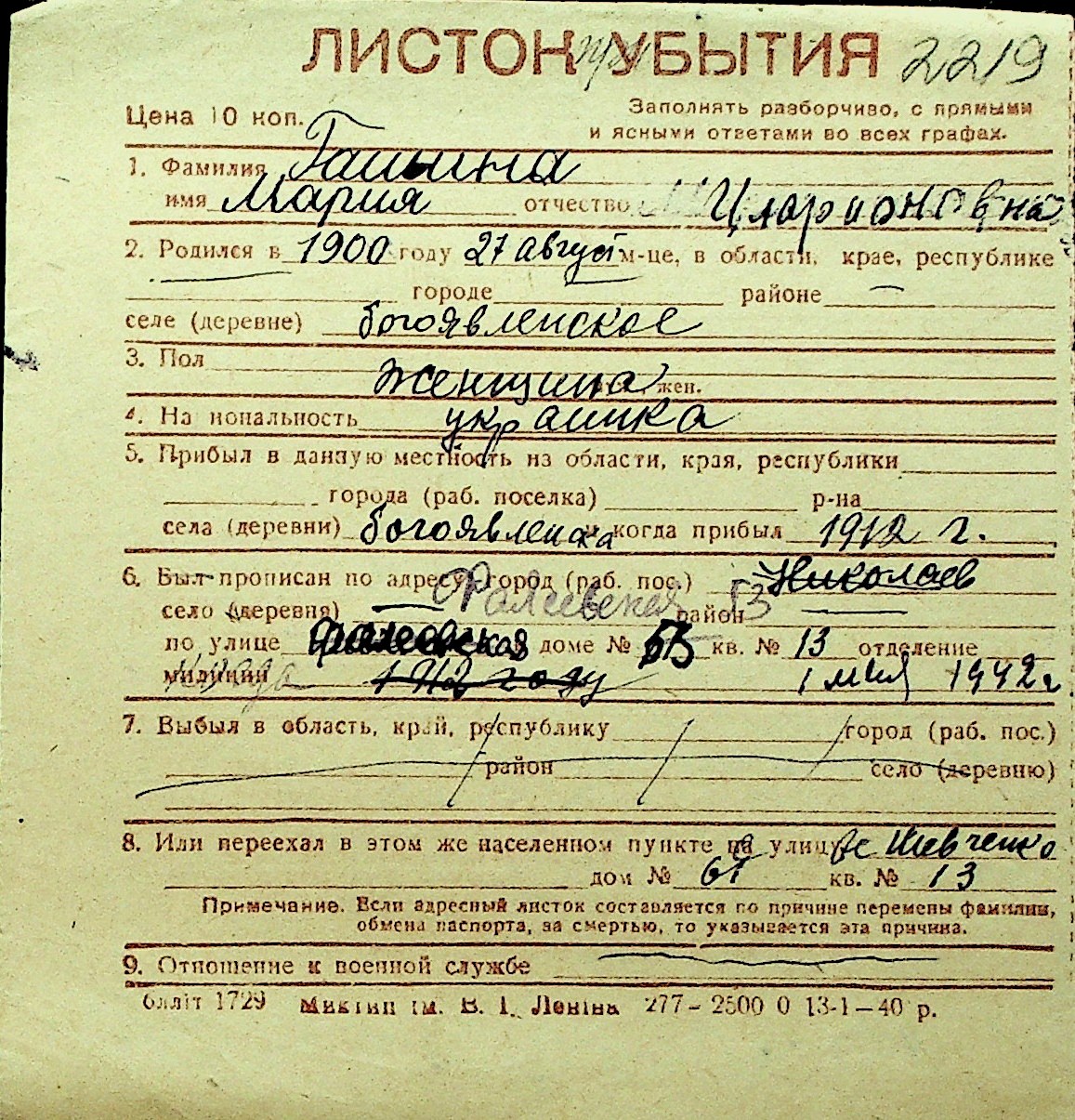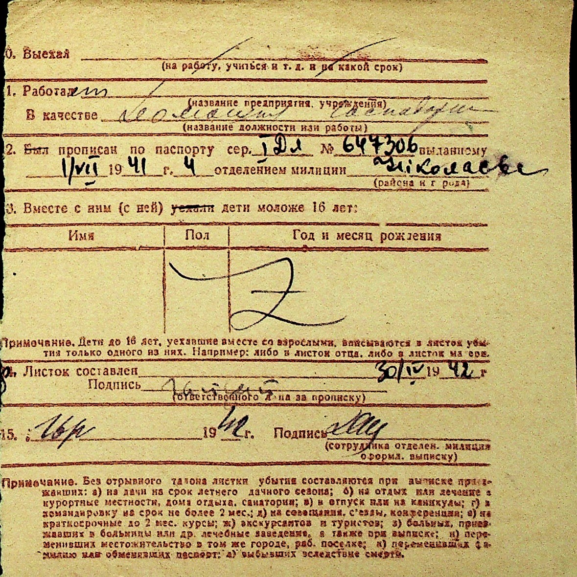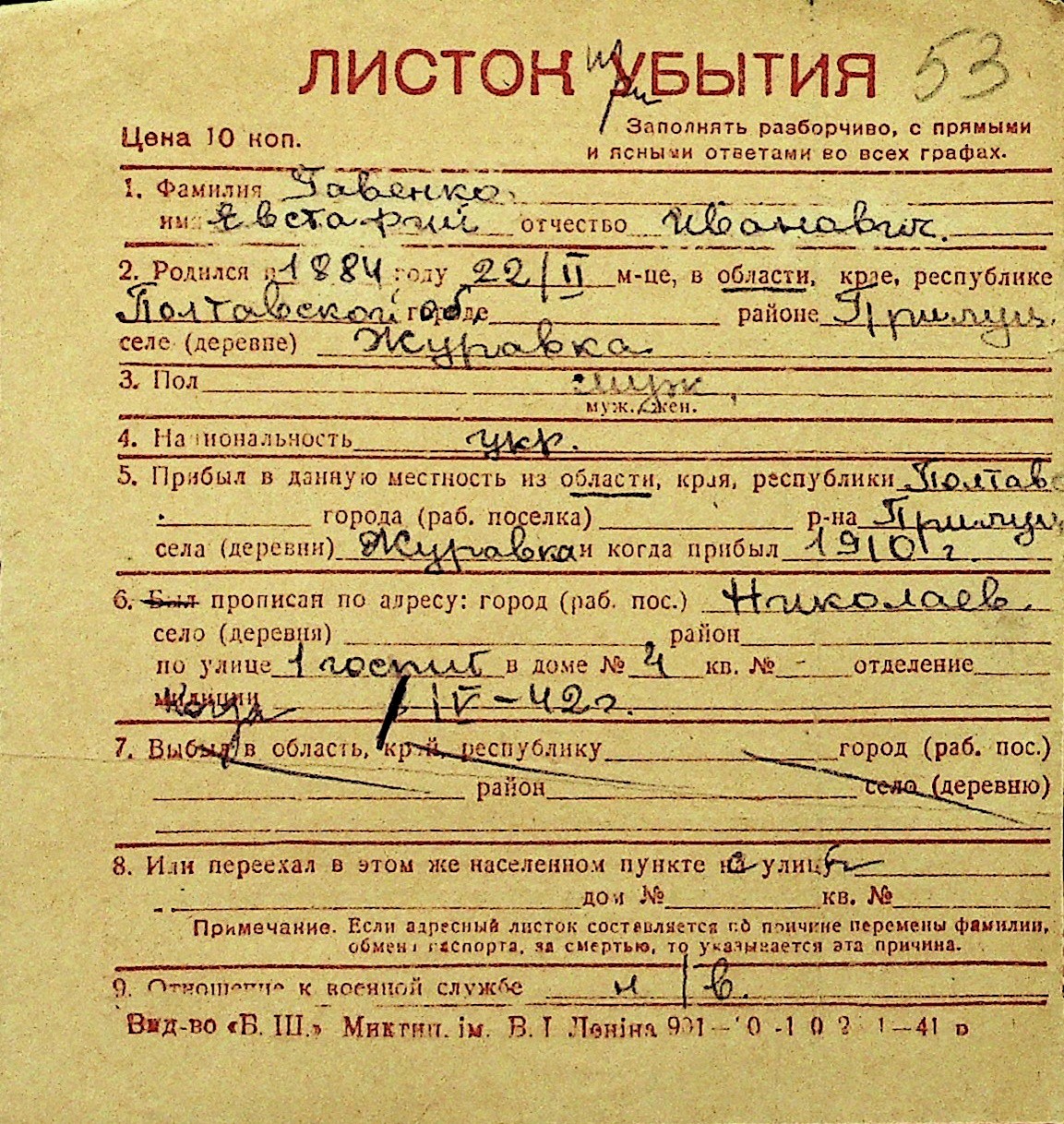 • • Перелік карток до фонду № Н-1016