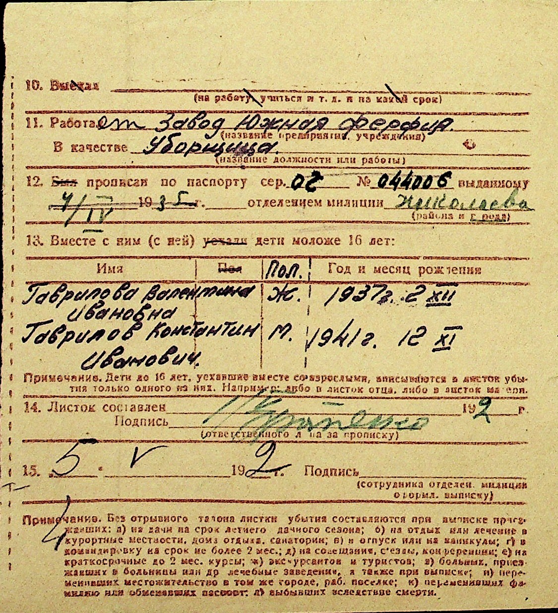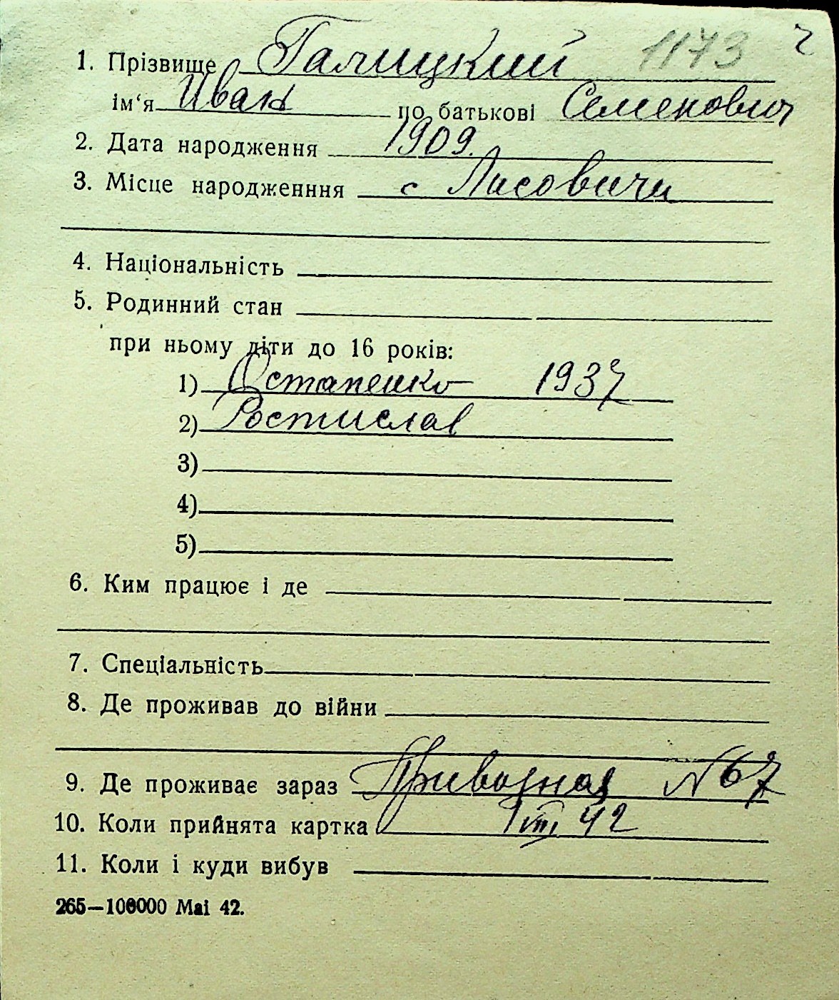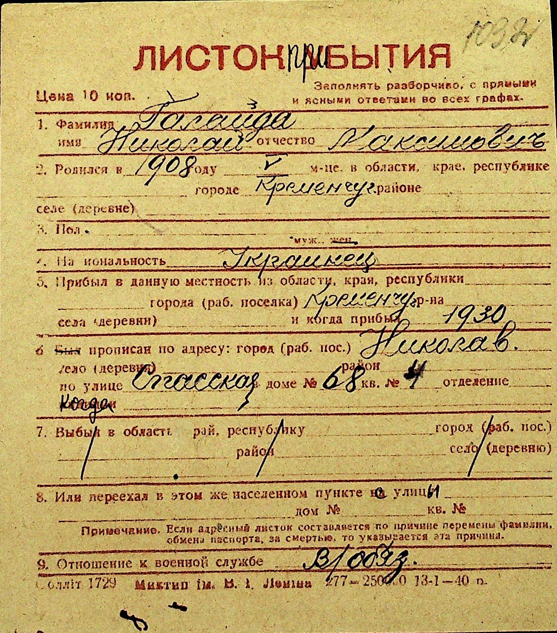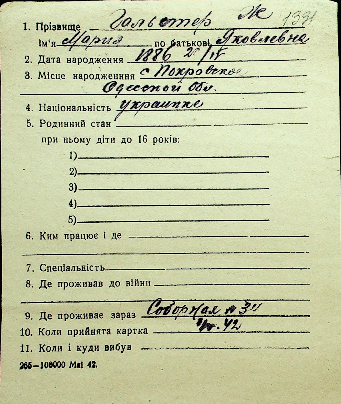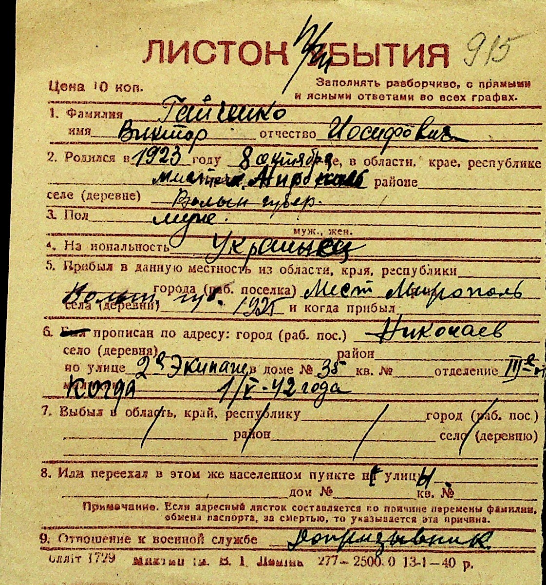 • • Перелік карток до фонду № Н-1016