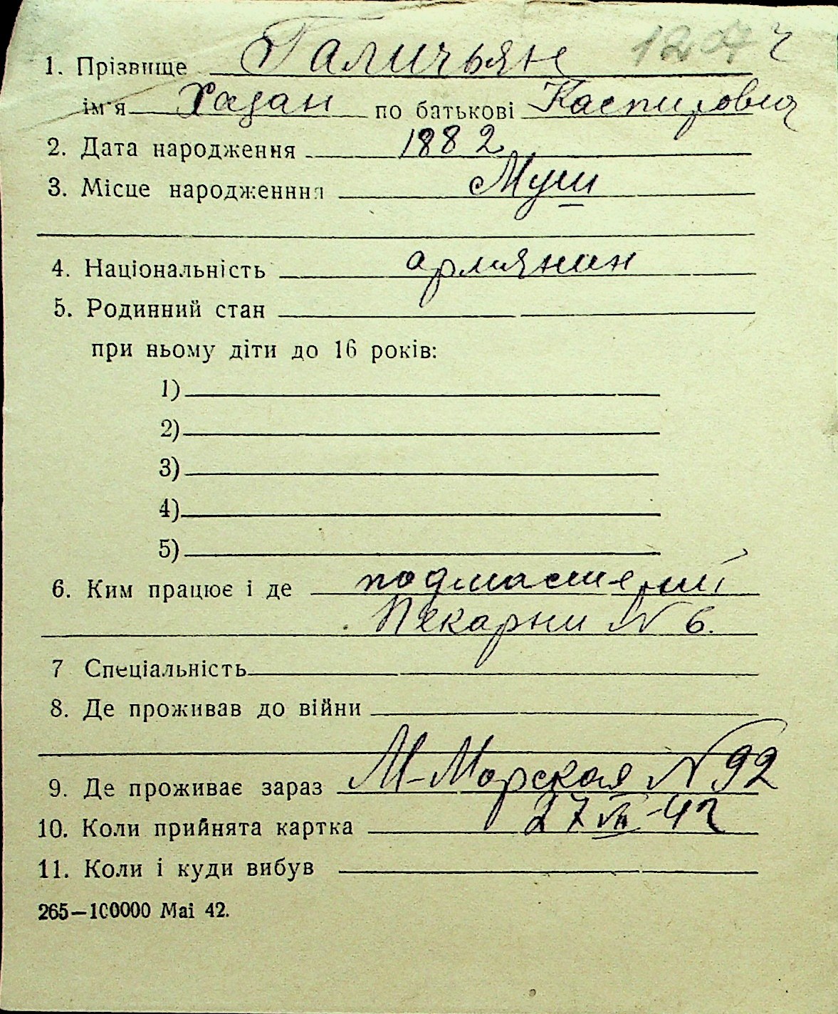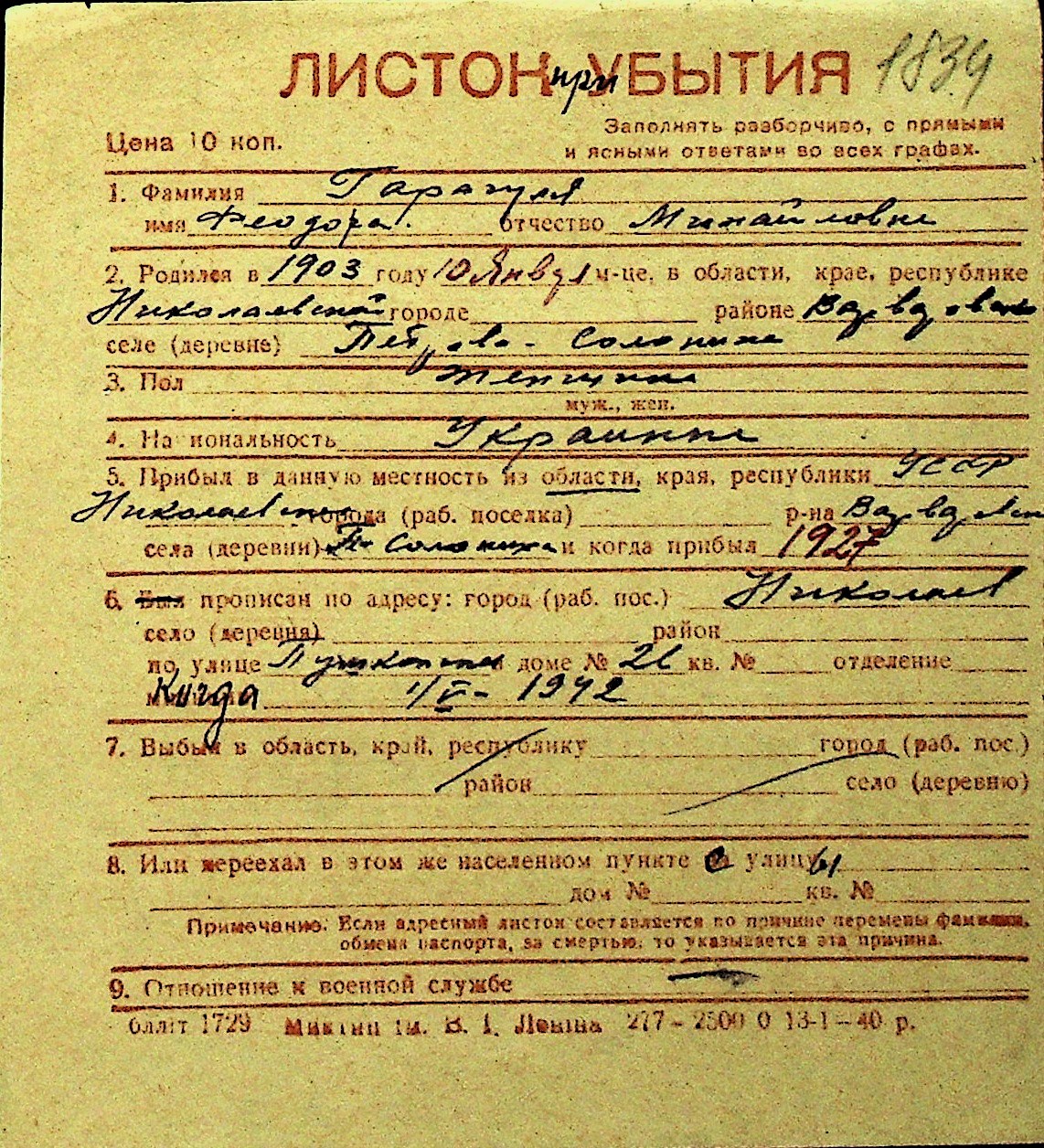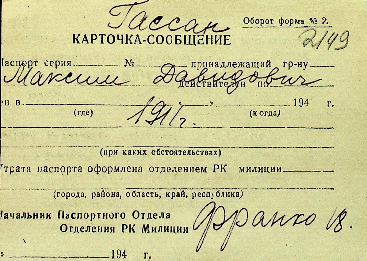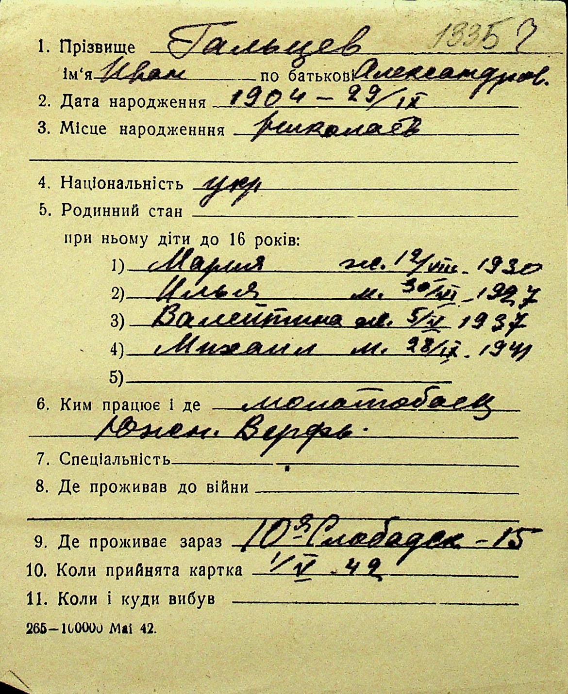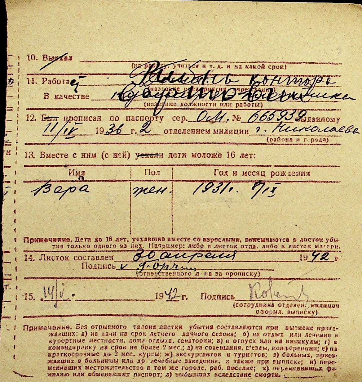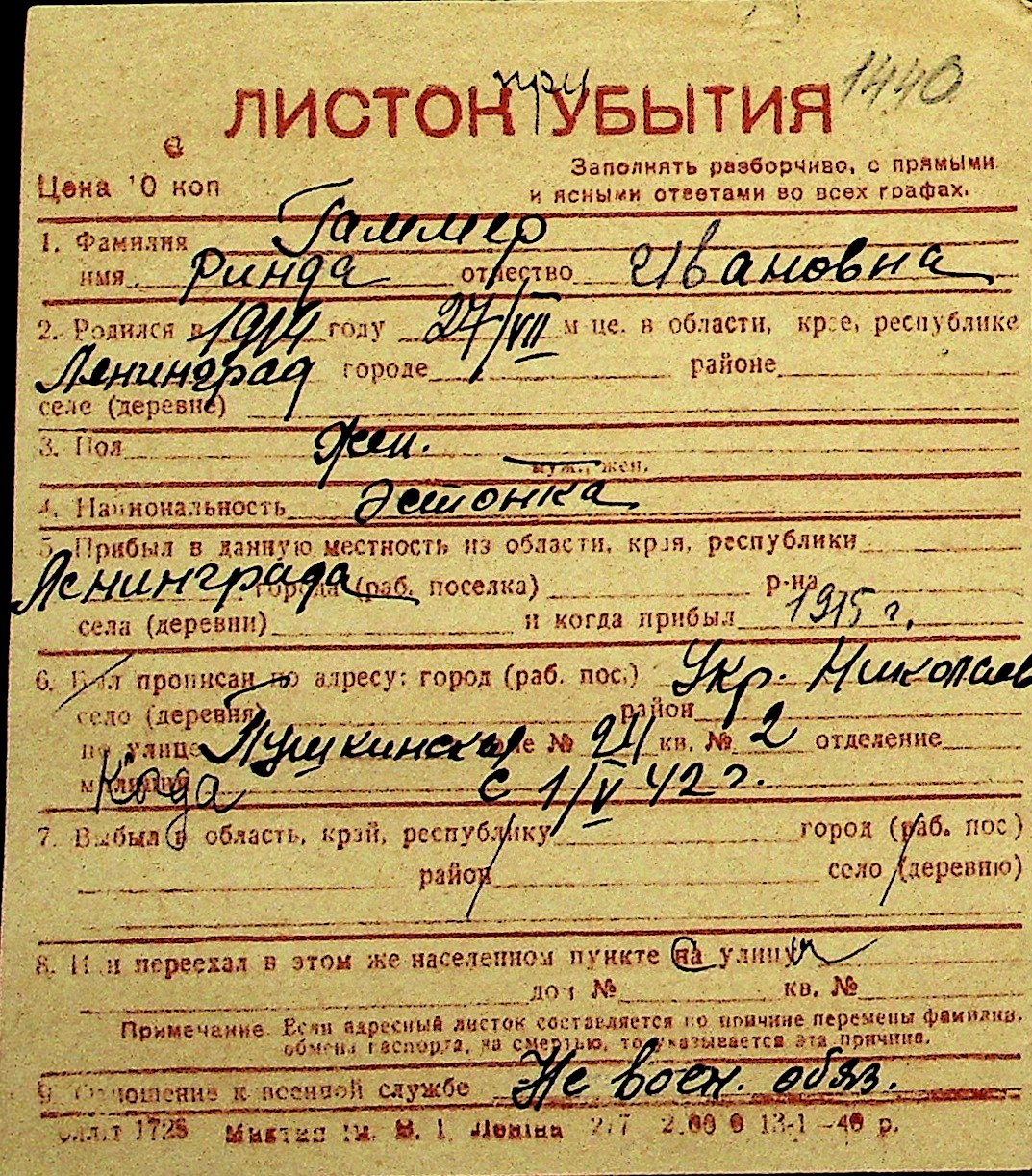 • • Перелік карток до фонду № Н-1016