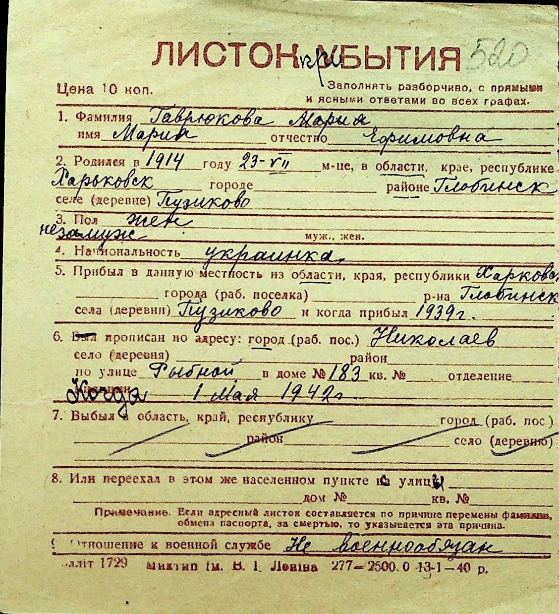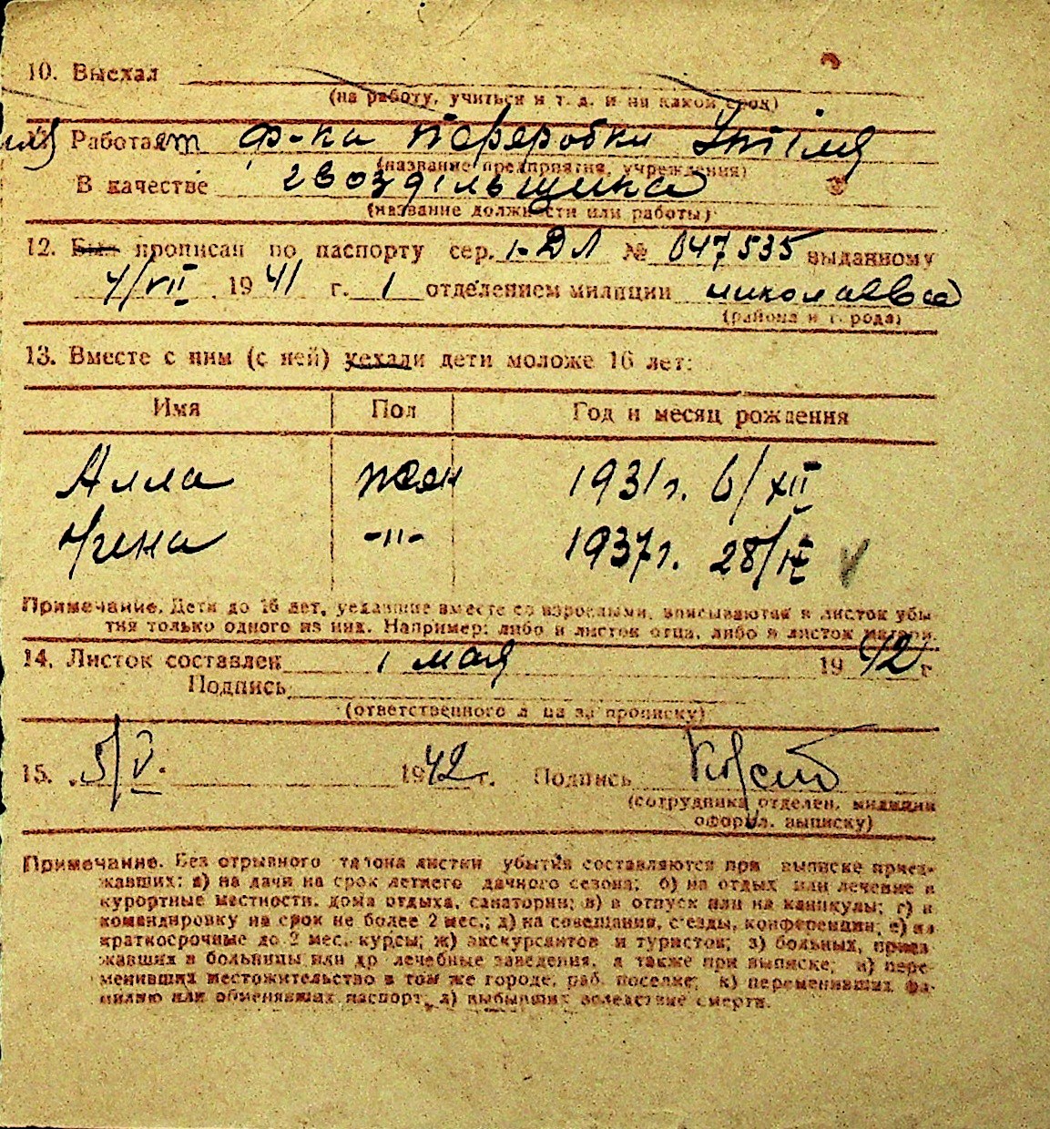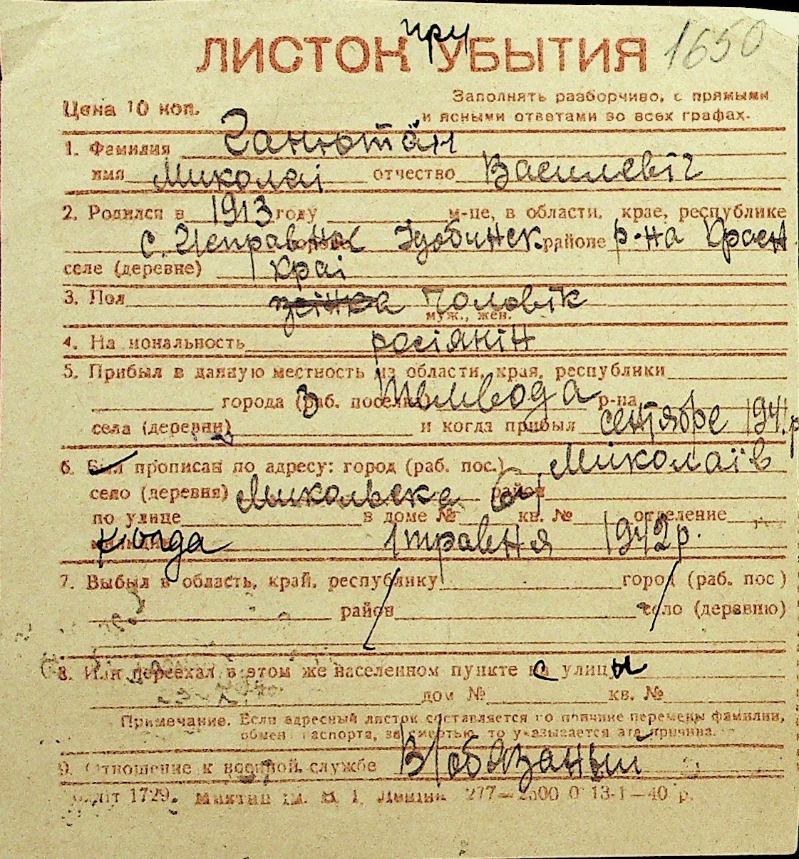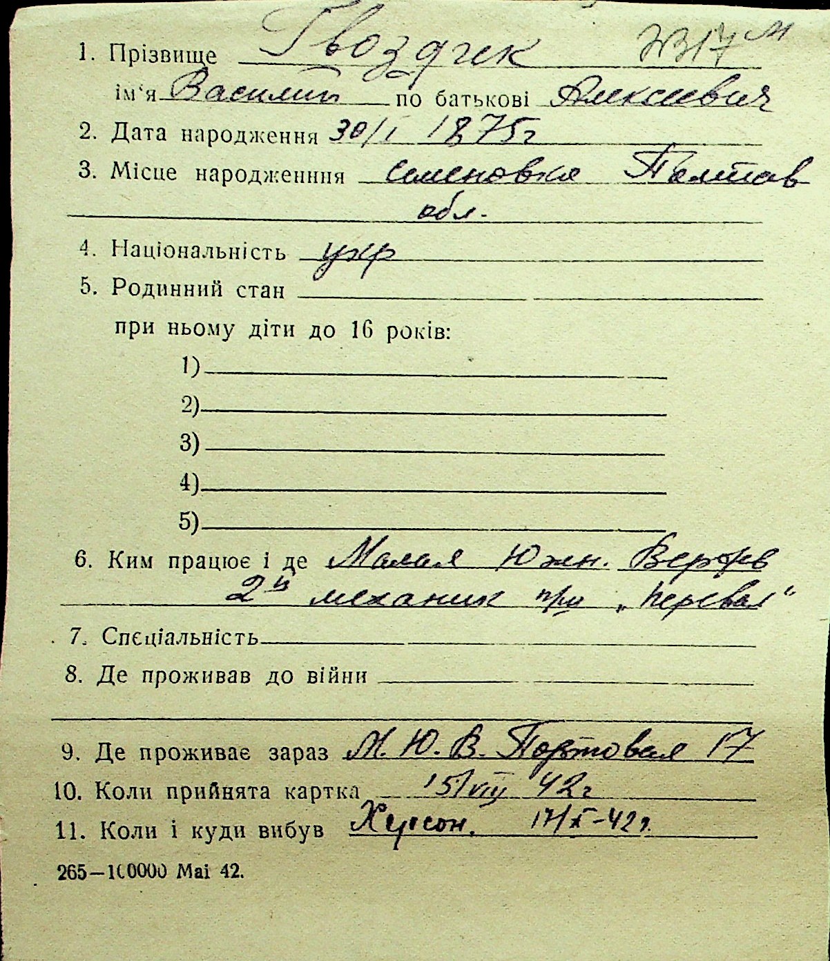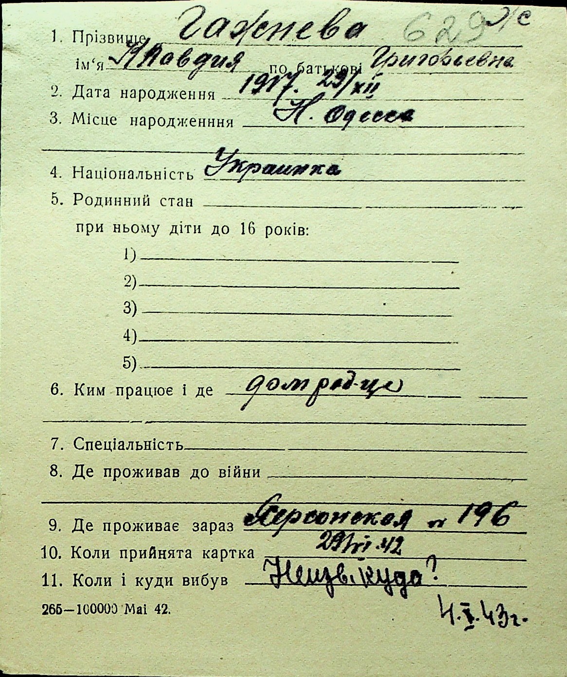 • • Перелік карток до фонду № Н-1016