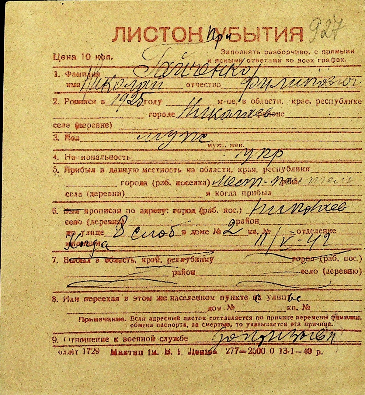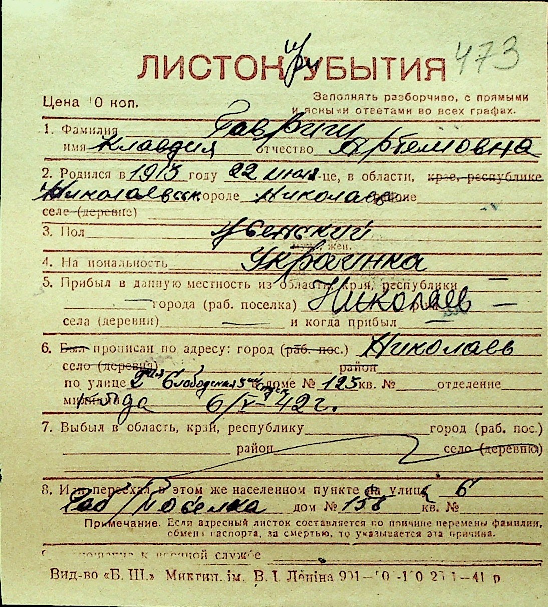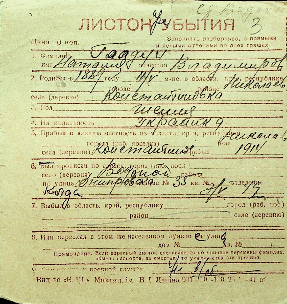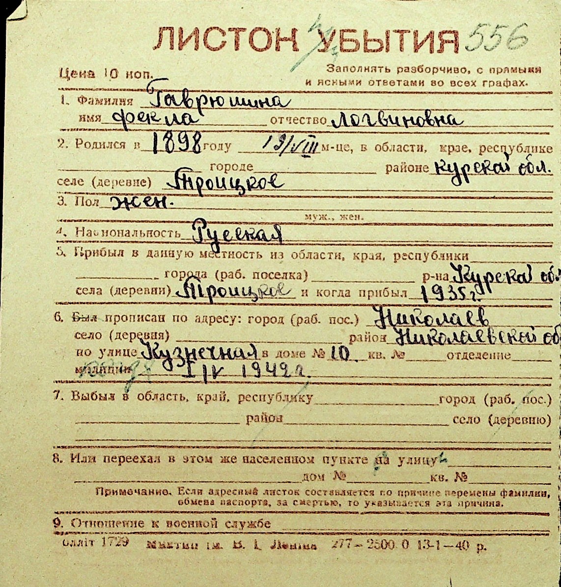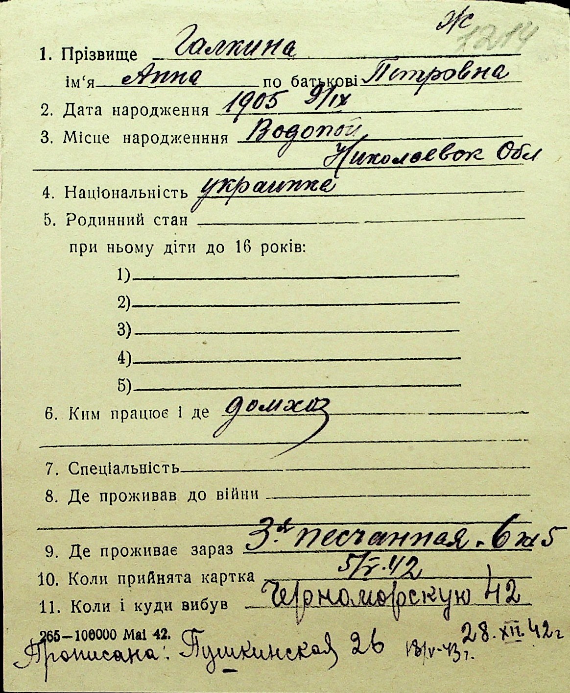 • • Перелік карток до фонду № Н-1016