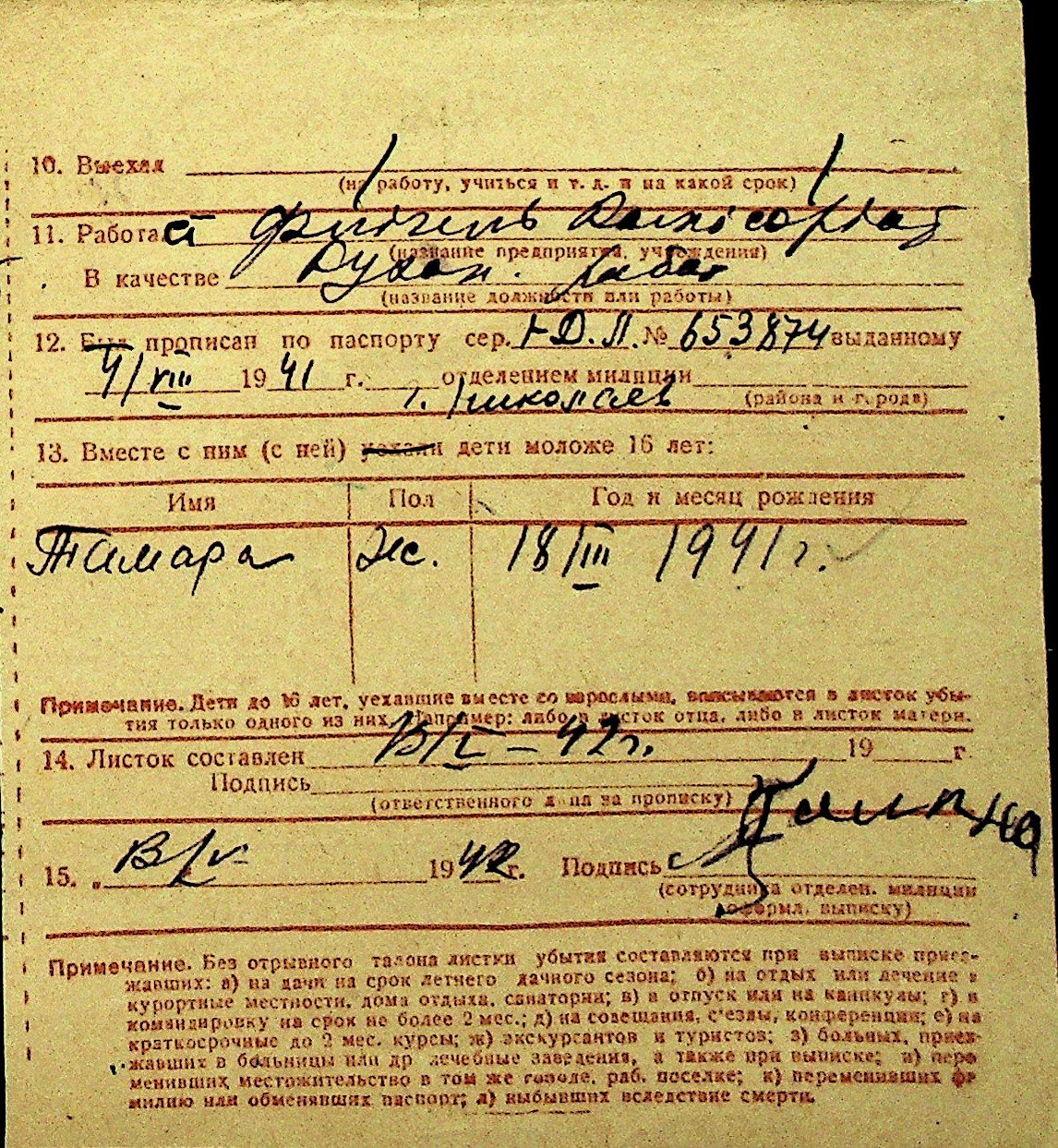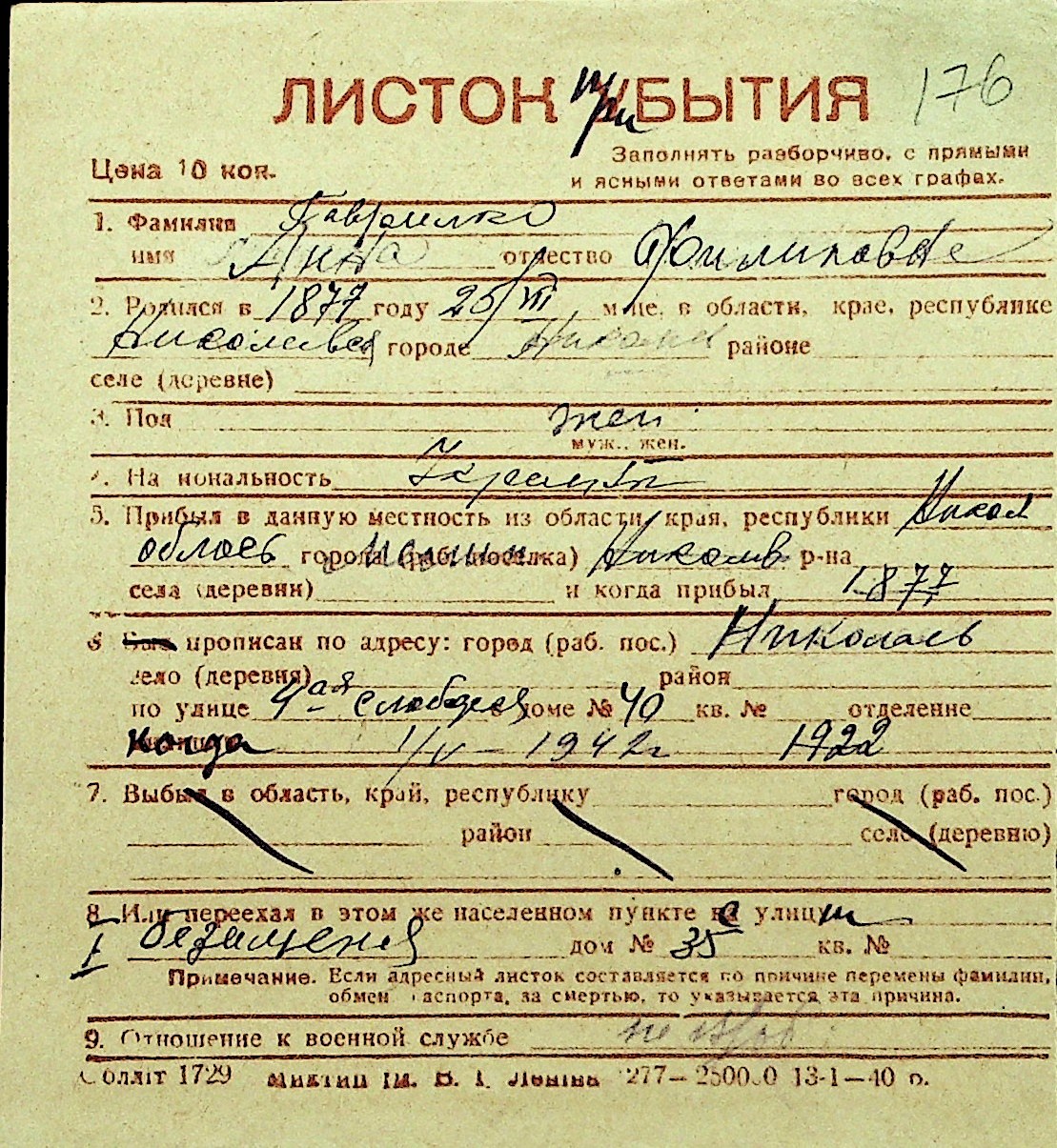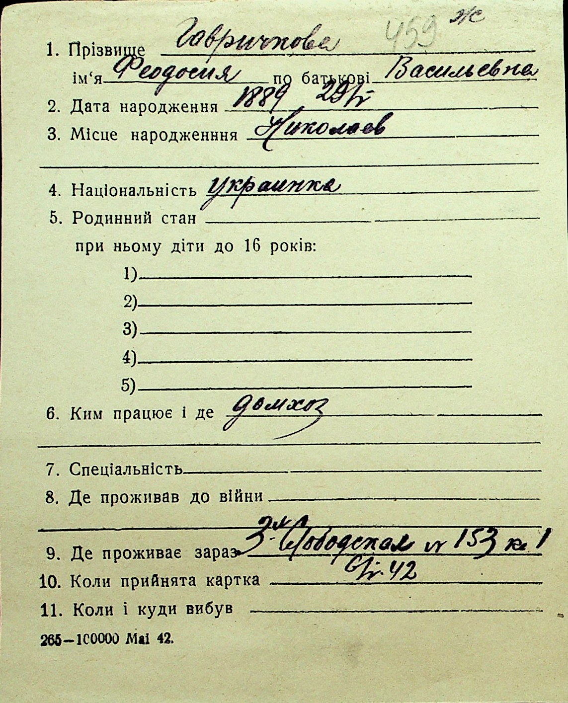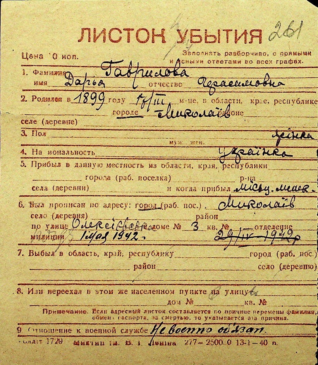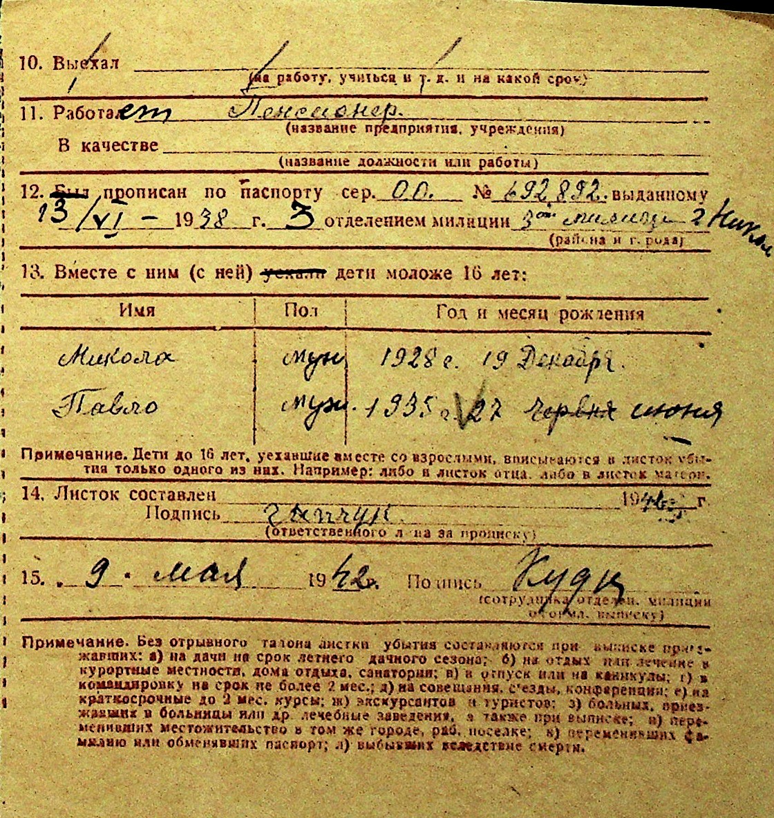 • • Перелік карток до фонду № Н-1016